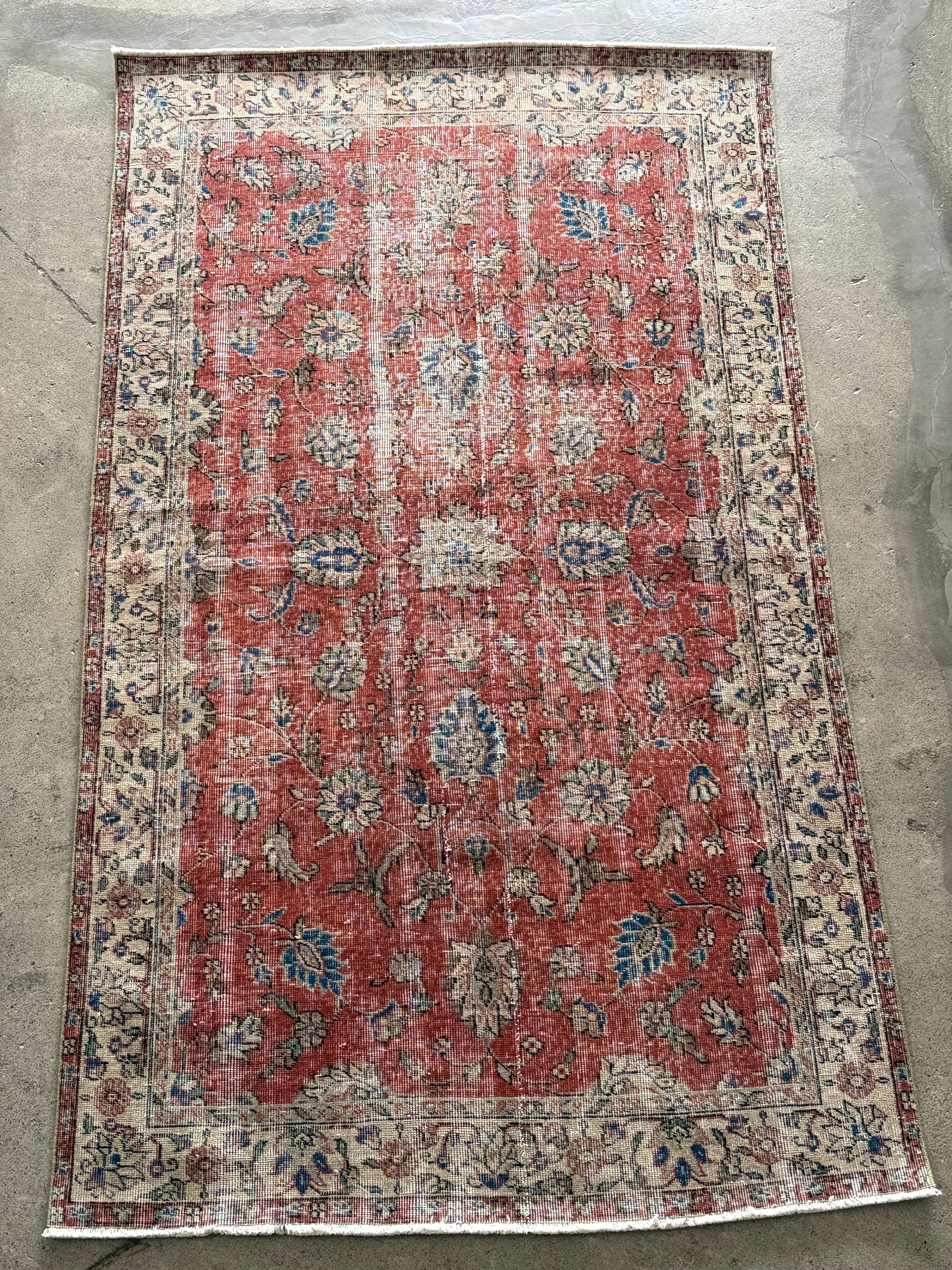 【送料込み】ヴィンテージ トルコラグ イスパルタ絨毯 オーバーダイ 117x214 TRB3908