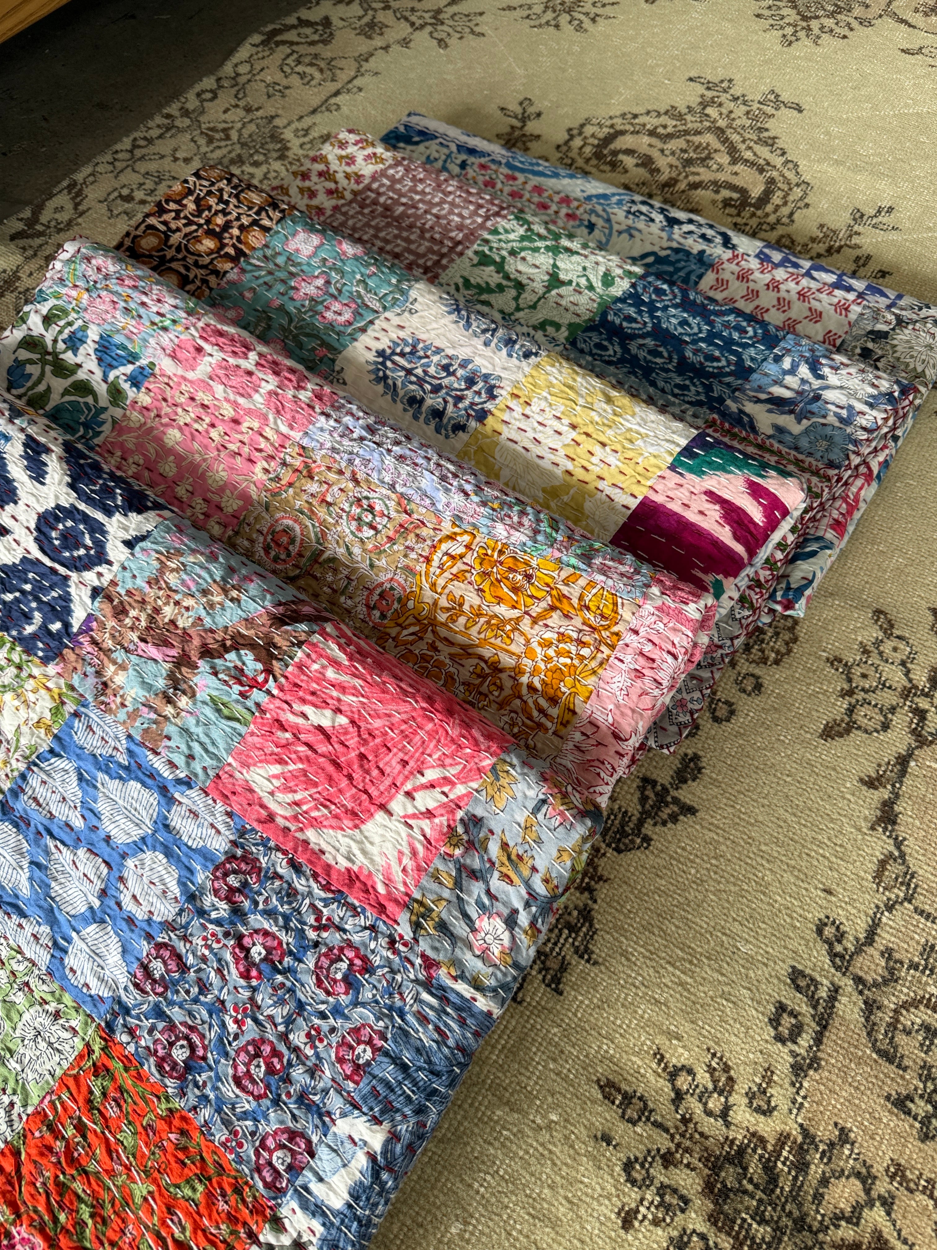 【送料込み】インド パッチワーク キルト マルチカラー IND24