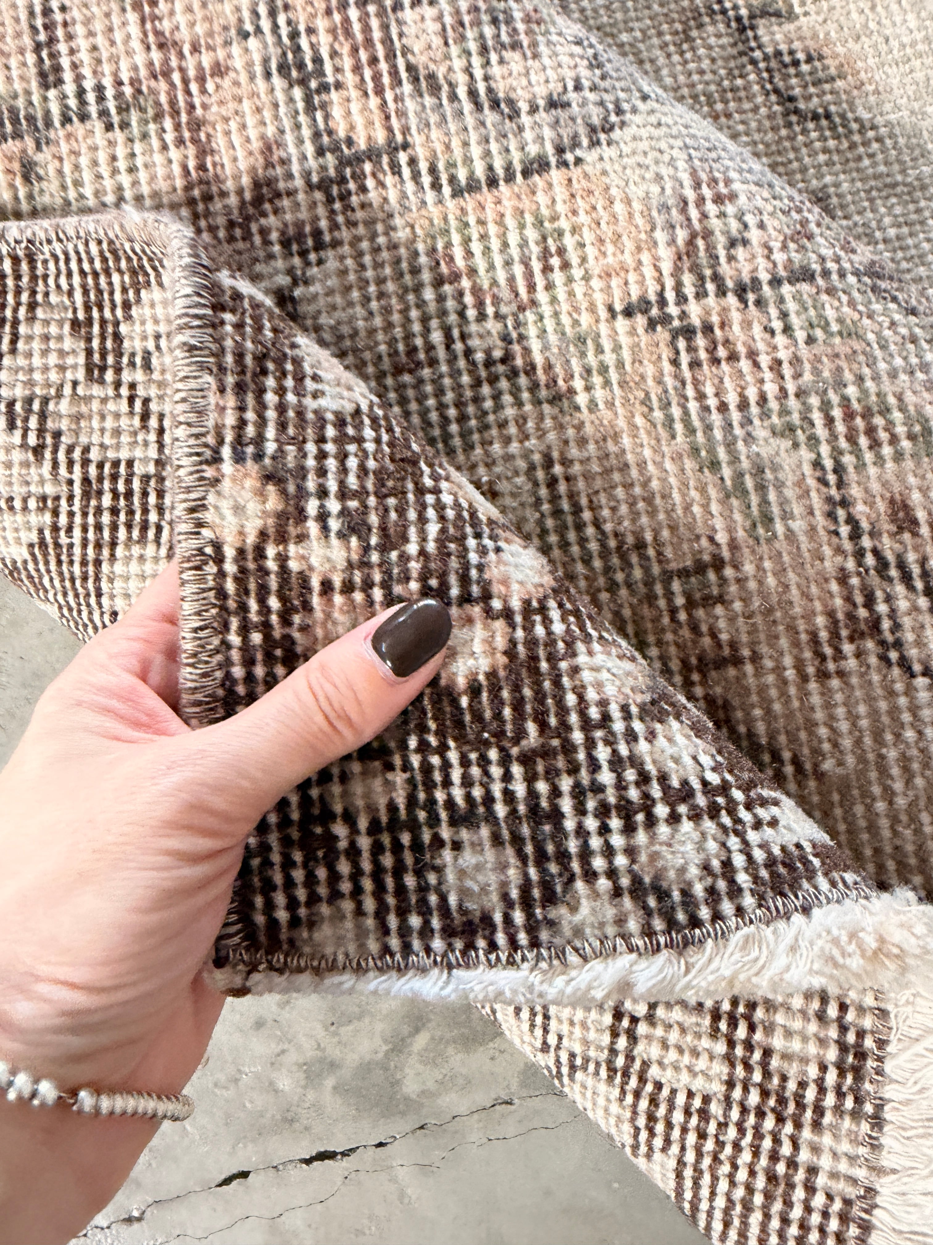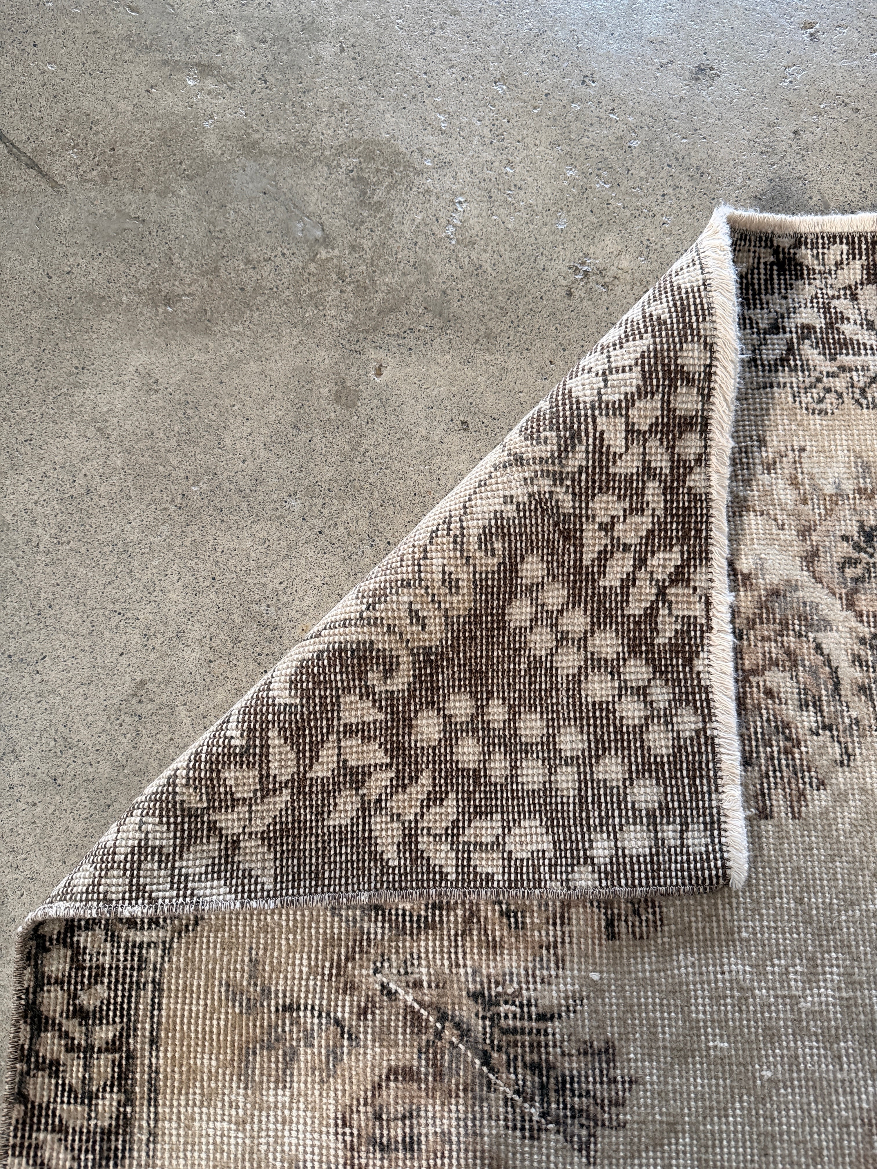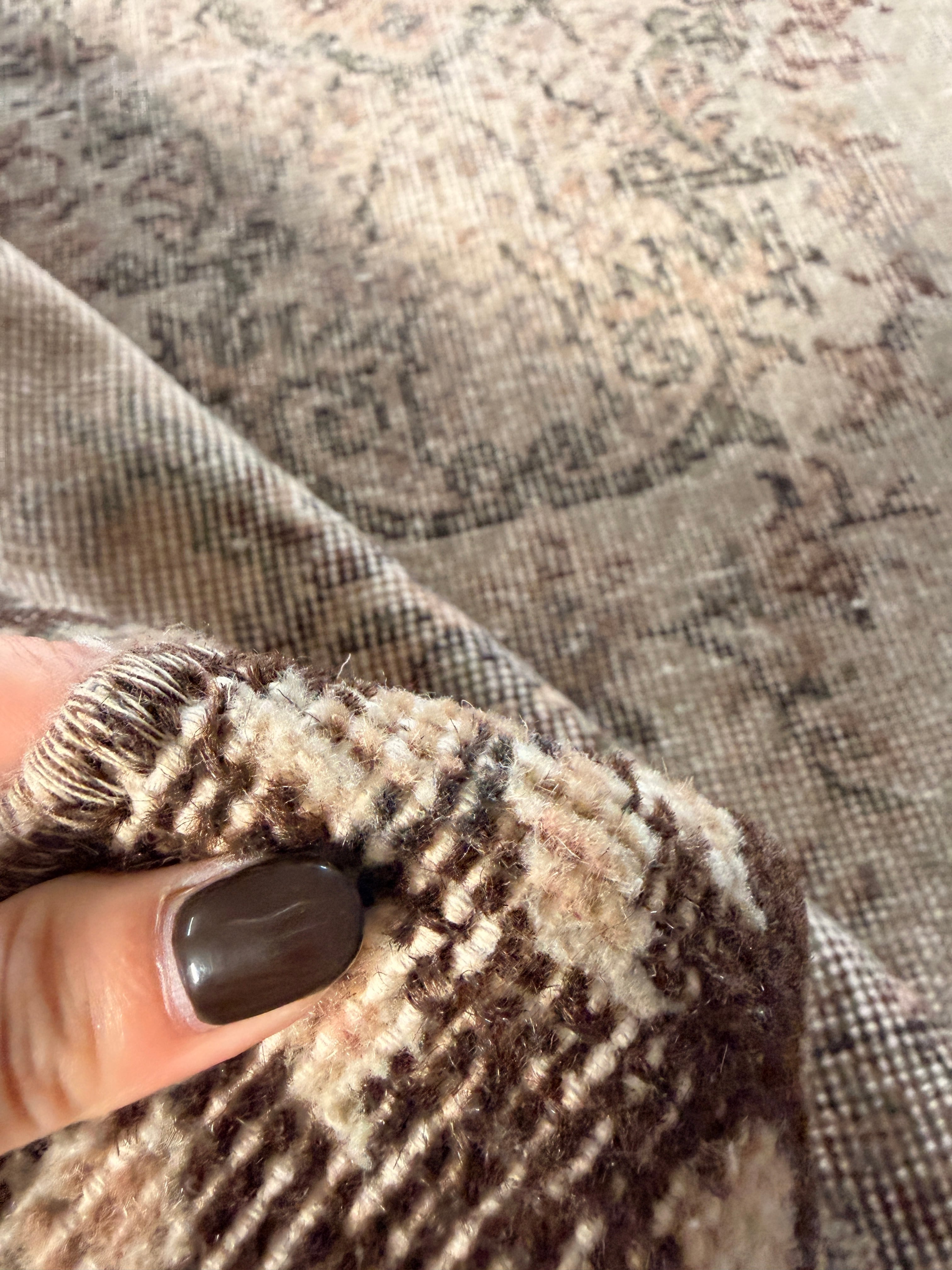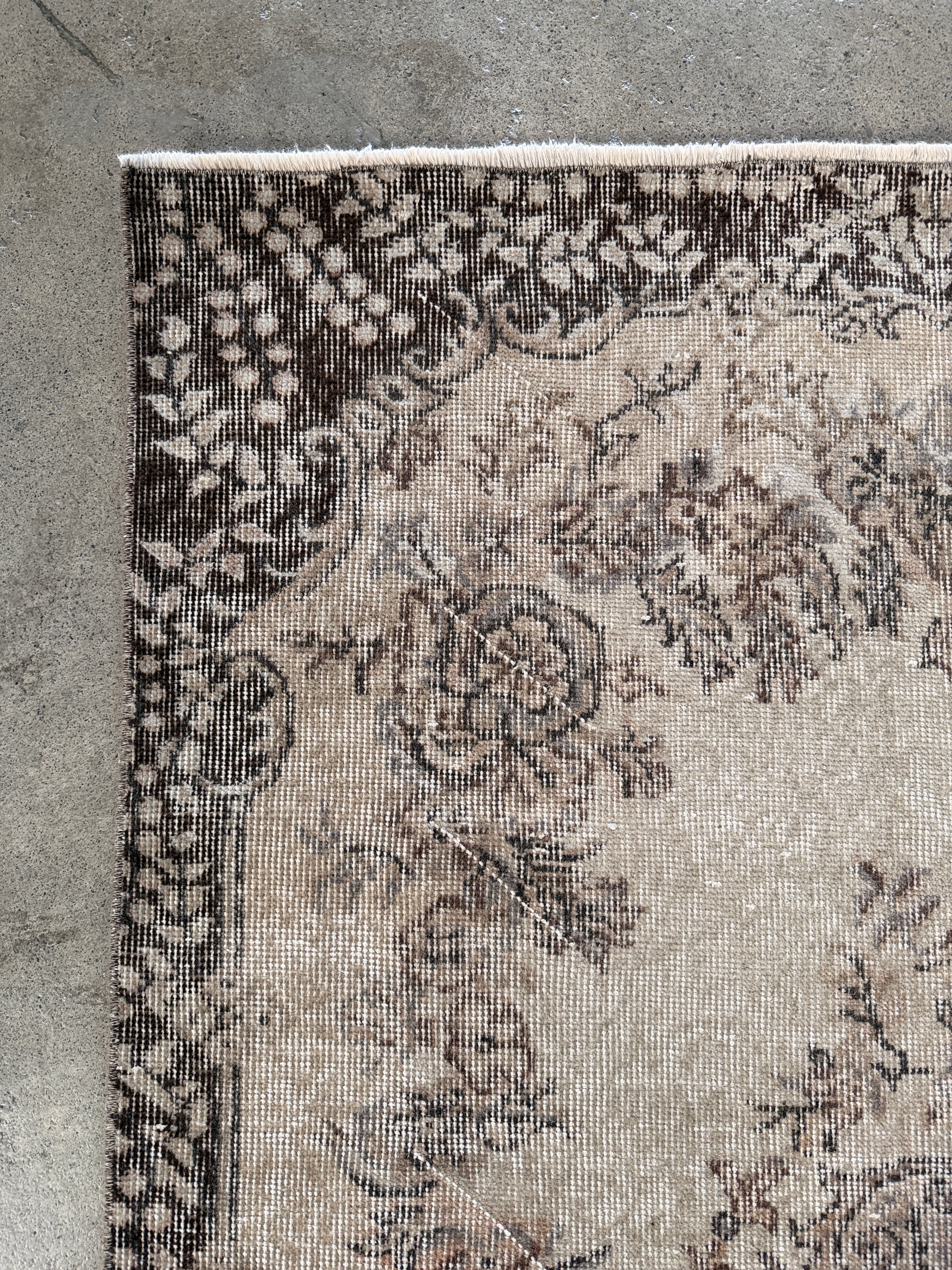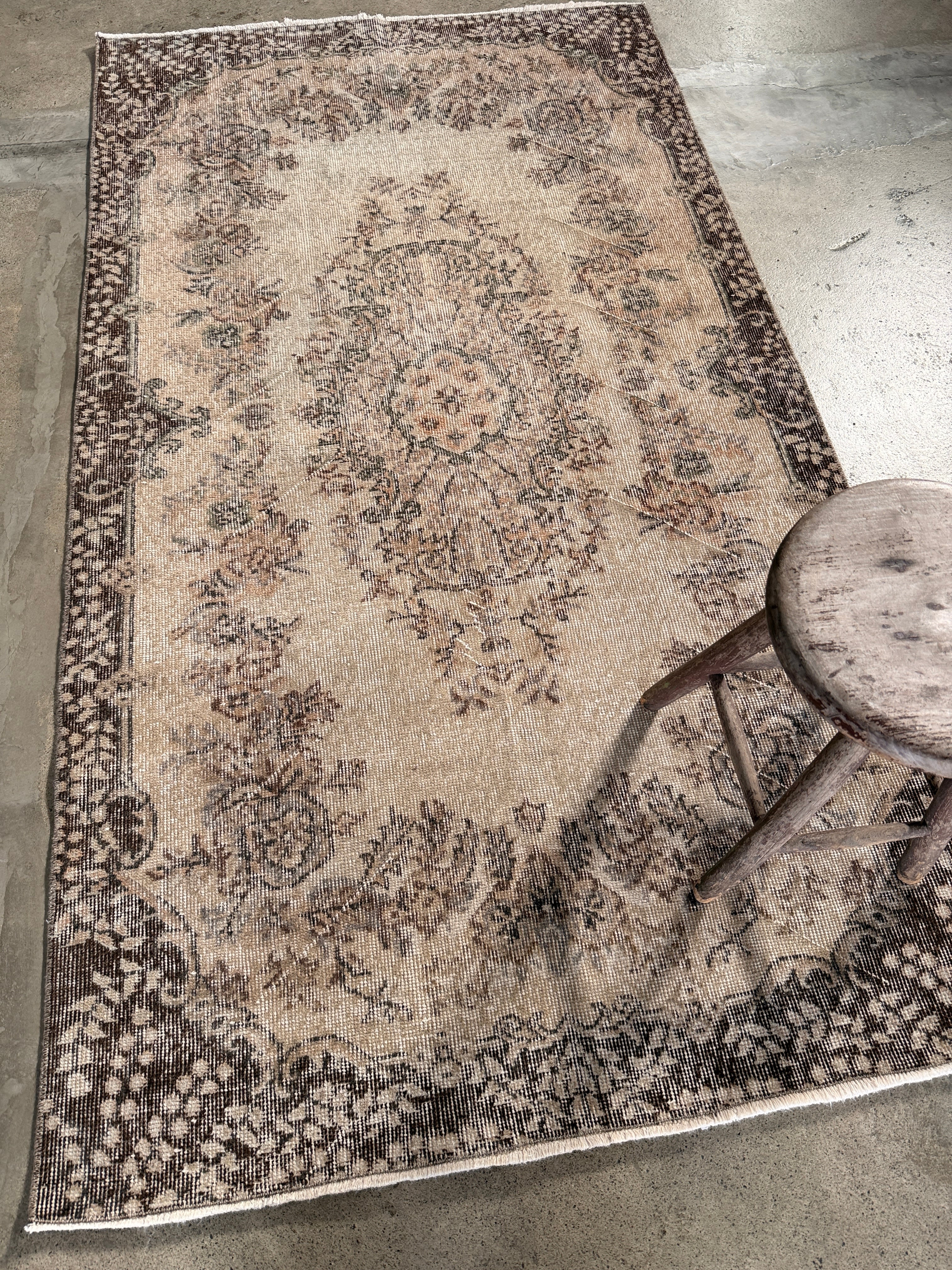 イスパルタ絨毯の代表的なデザインから、淡いピンクベージュのアンティーク感たっぷりに1枚をセレクトいたしました。華やかな花模様に落ち着いたブラウン、淡いピンクの色合いが温かみを感じさせてくれます。