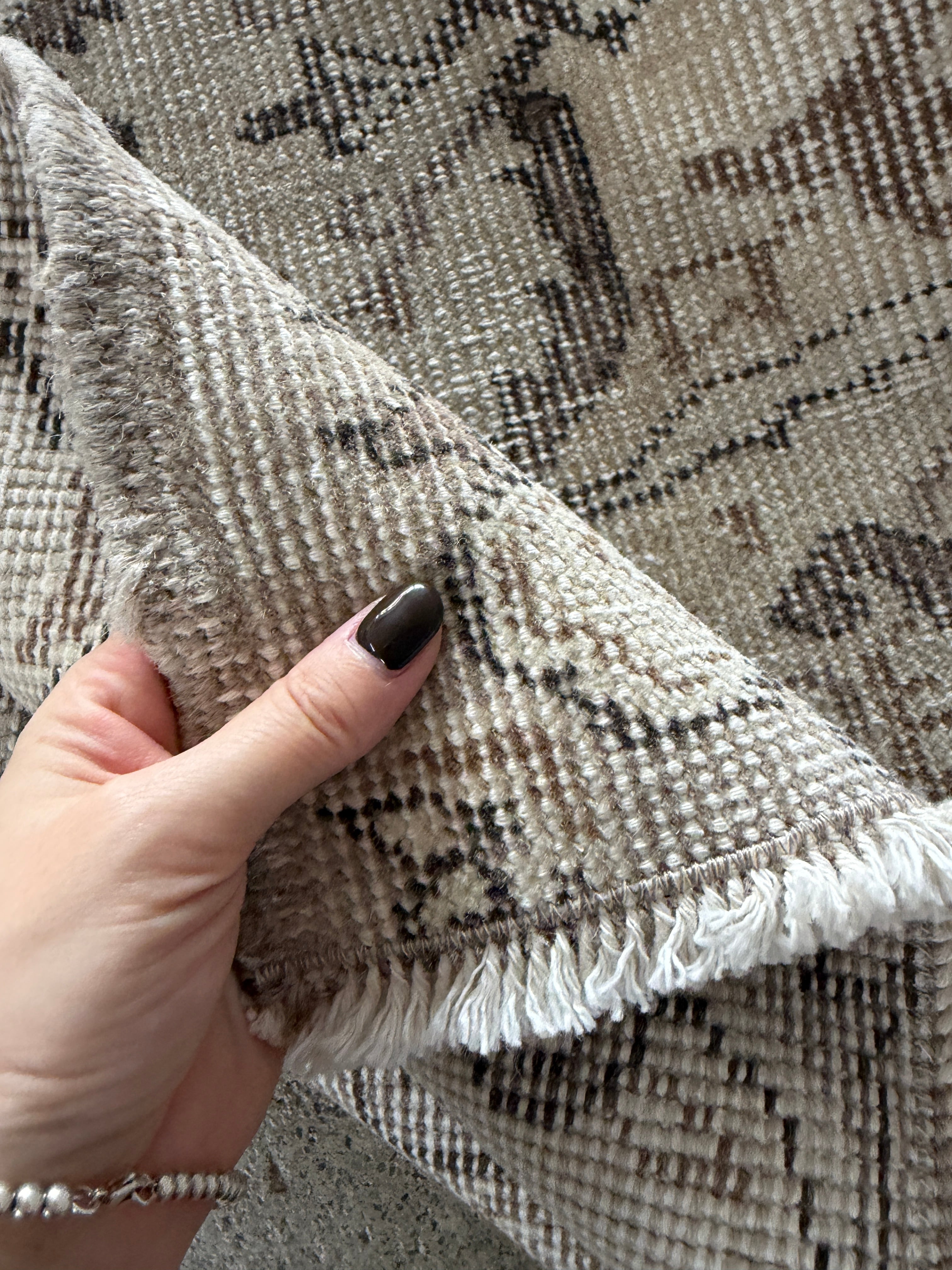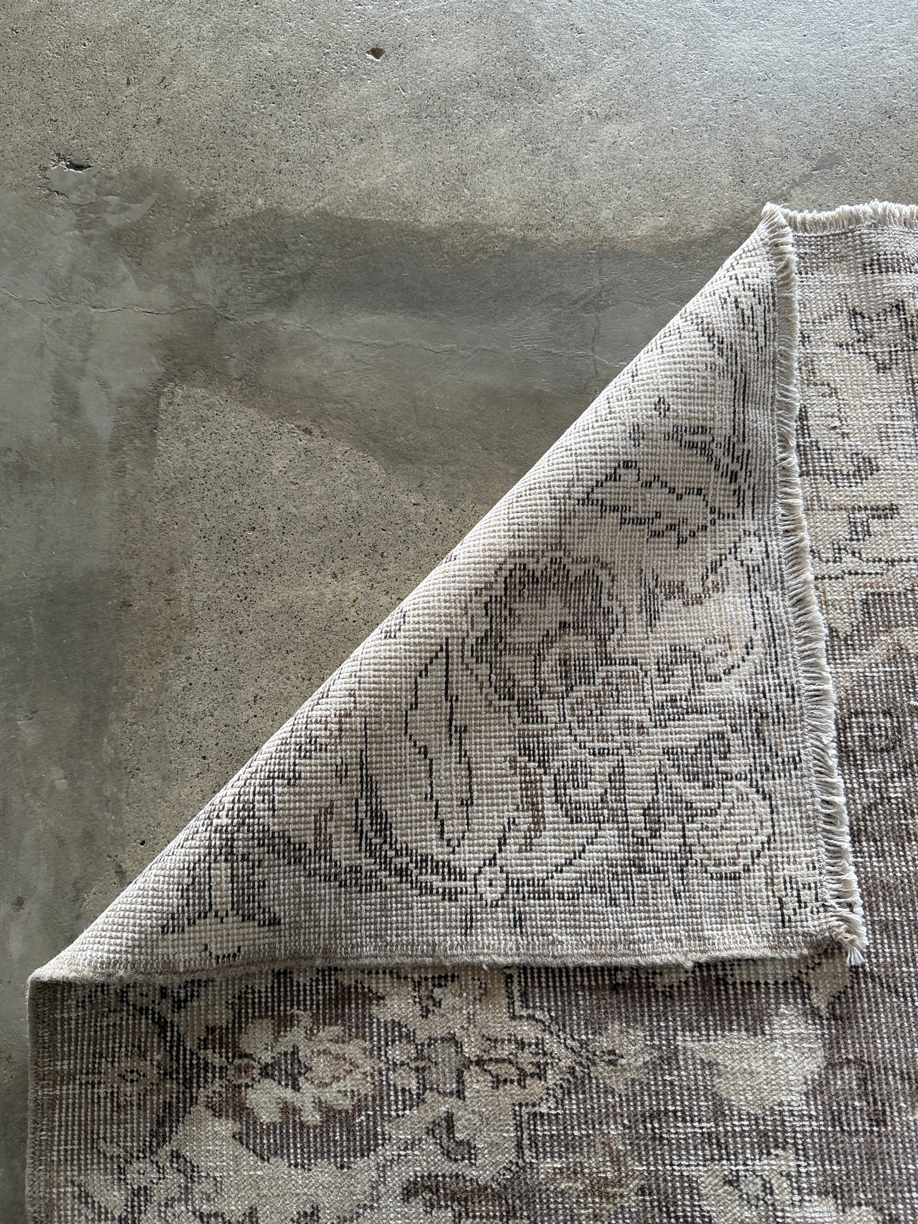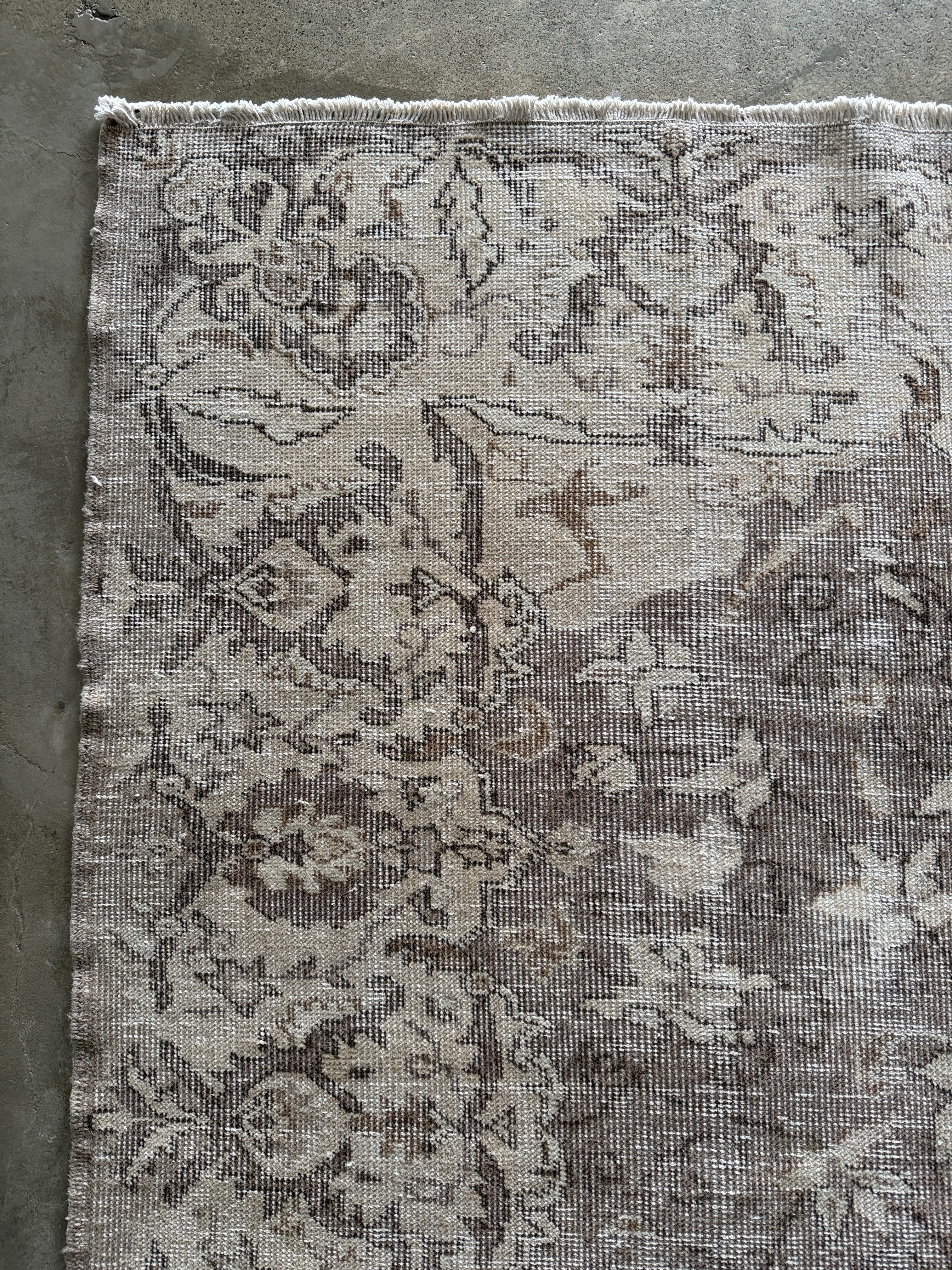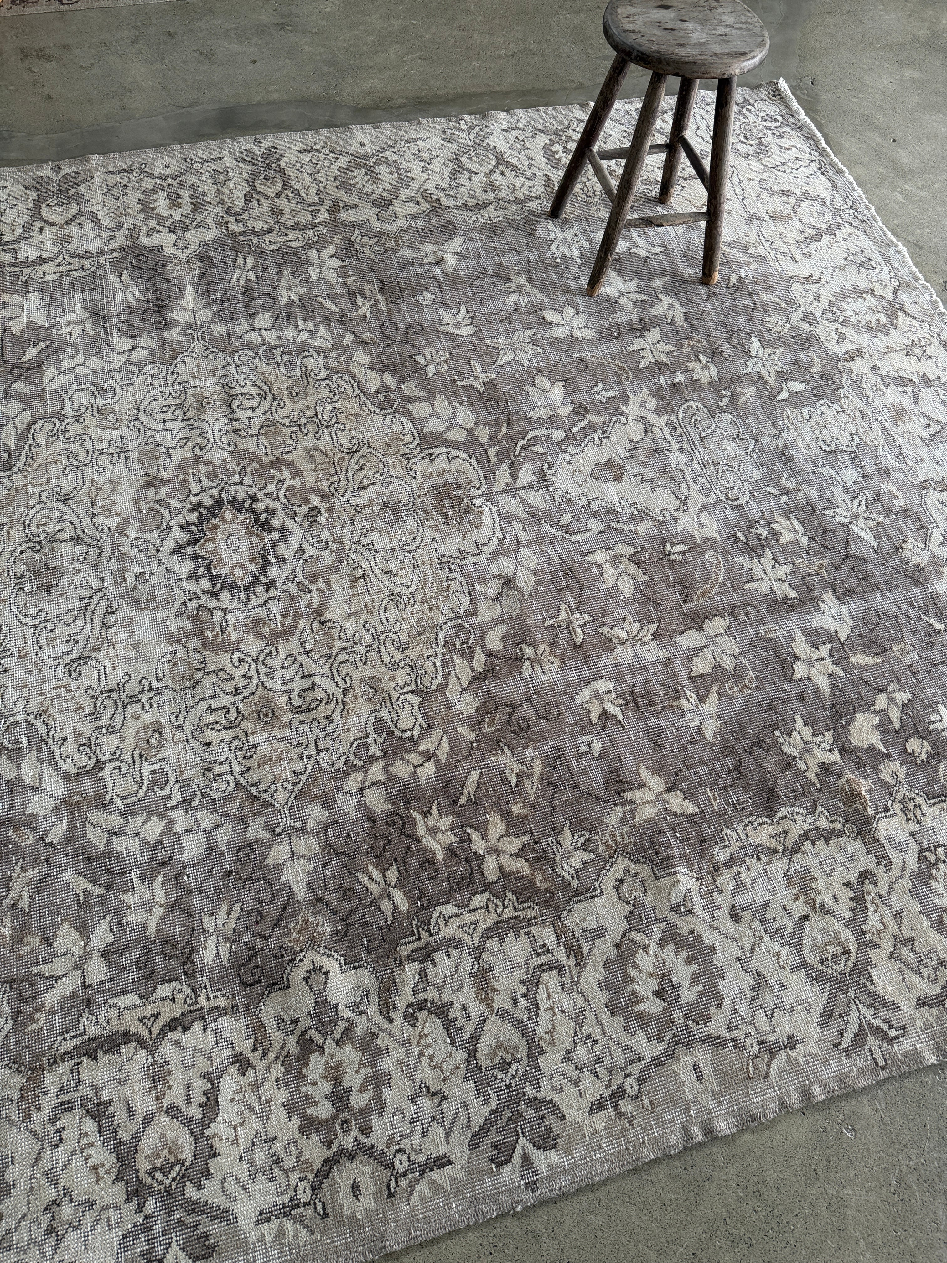 カフェオレベージュとレトロな花模様の組み合わせがかなりお気に入りの1枚です。絶妙なカスレ感もあってアンティーク家具や和室などを温かみのある空間に演出してくれること間違いなしの1枚。この絶妙な色合いは新品の絨毯では出せない深みのある味わいです。これからの季節にぴったりの風合いではないでしょうか。