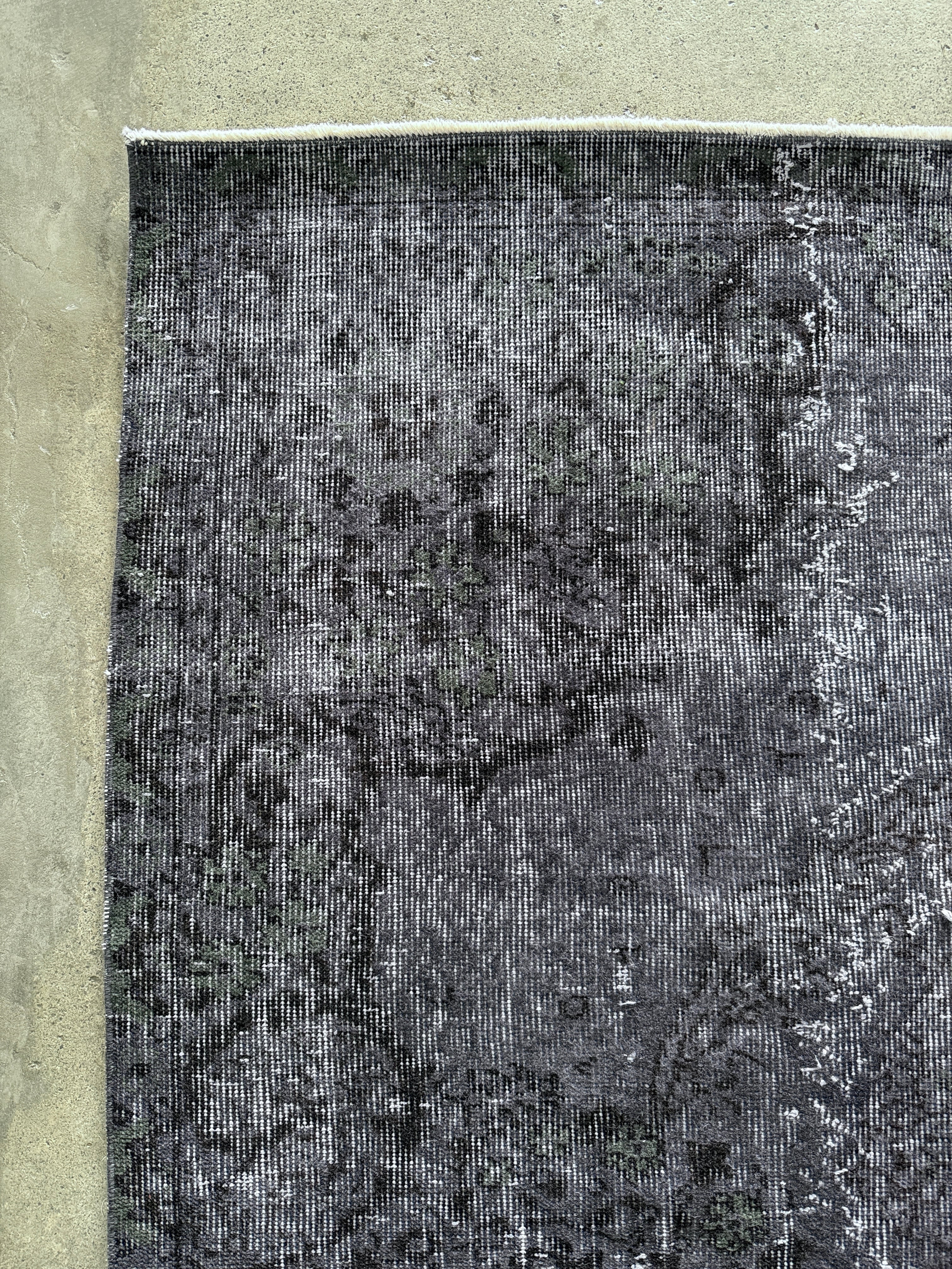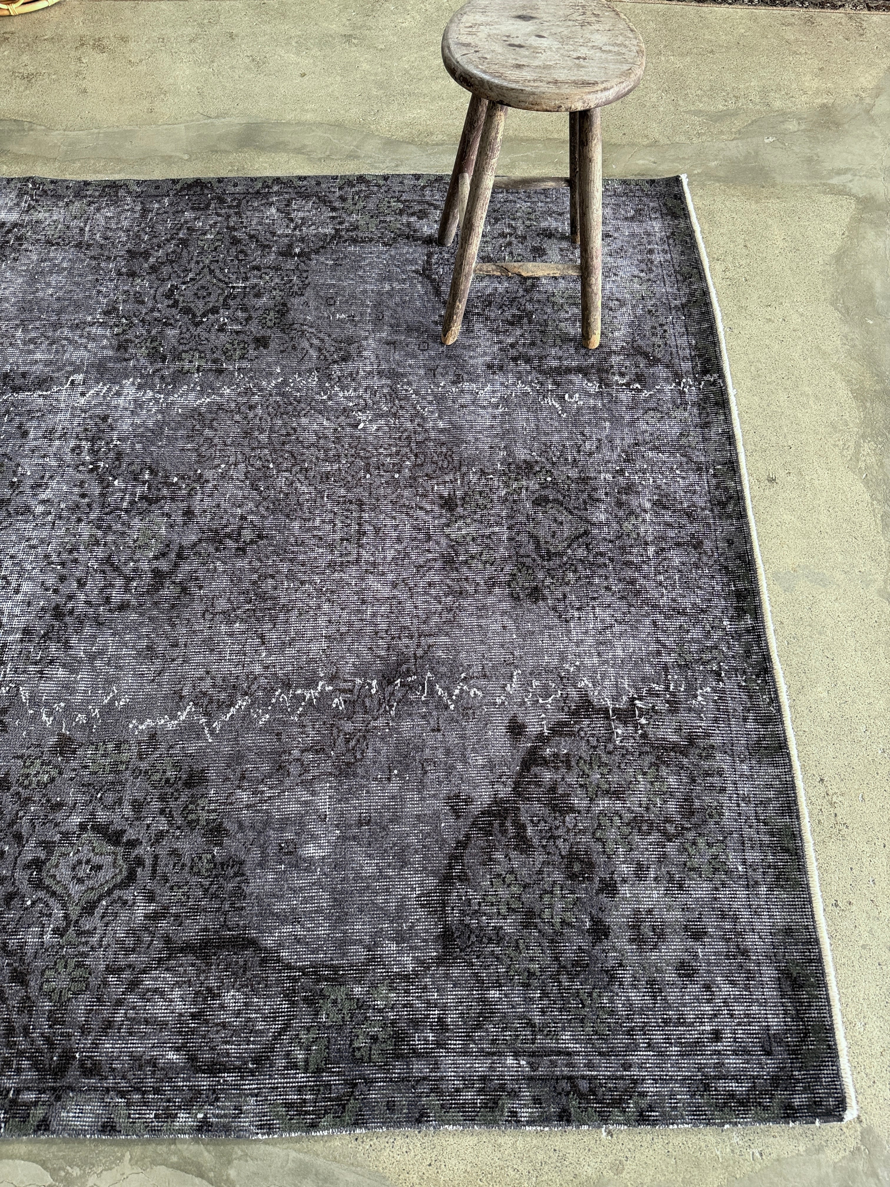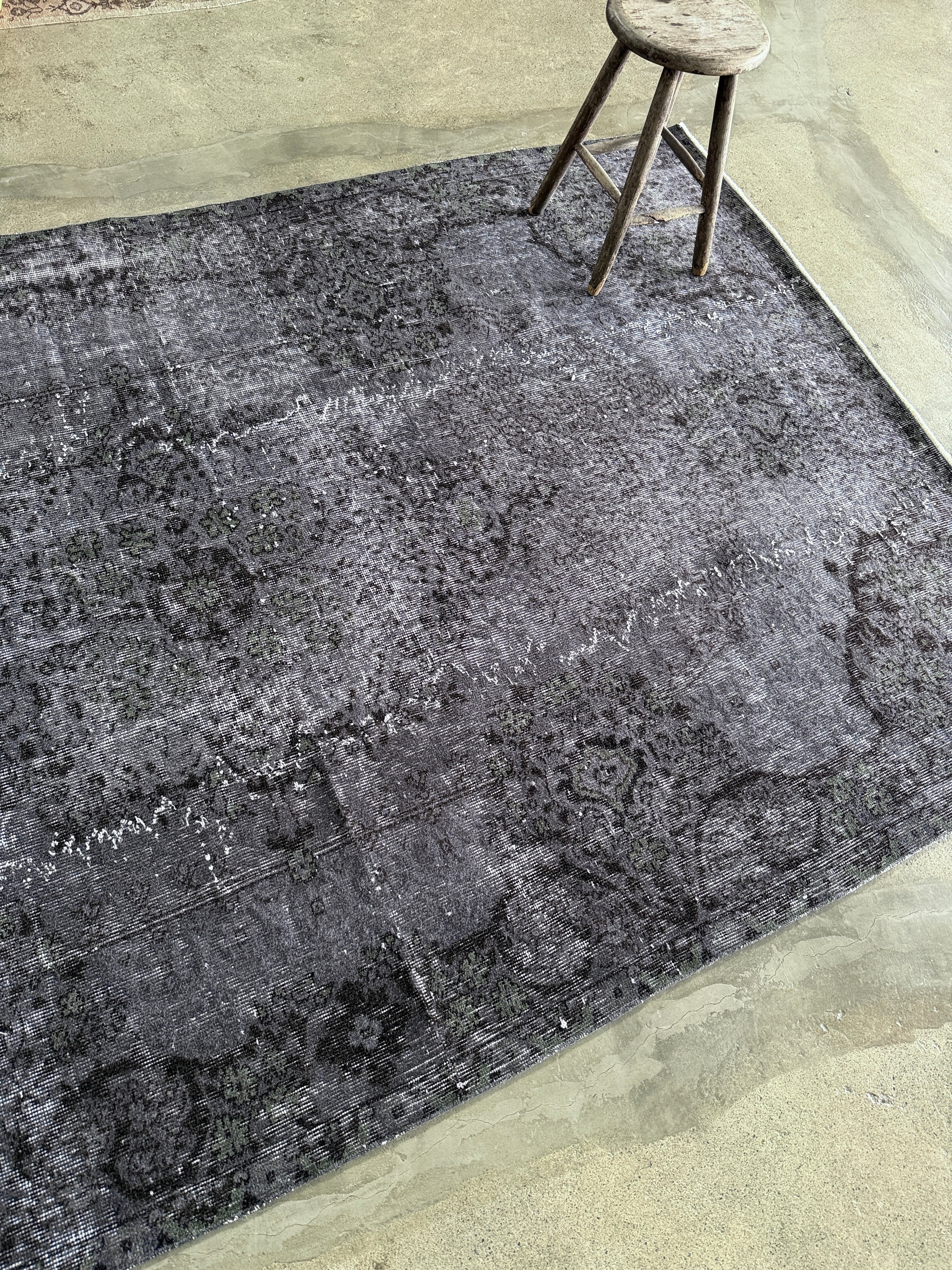 個人的にマイブームなシックなオーバダイ。写真で良さが伝われば嬉しいのですが、ネイビーブラックに隠れた花模様がたまらなく好きです。隠れた華やかさを持つ大人なヴィンテージラグ。私のイチオシ!
