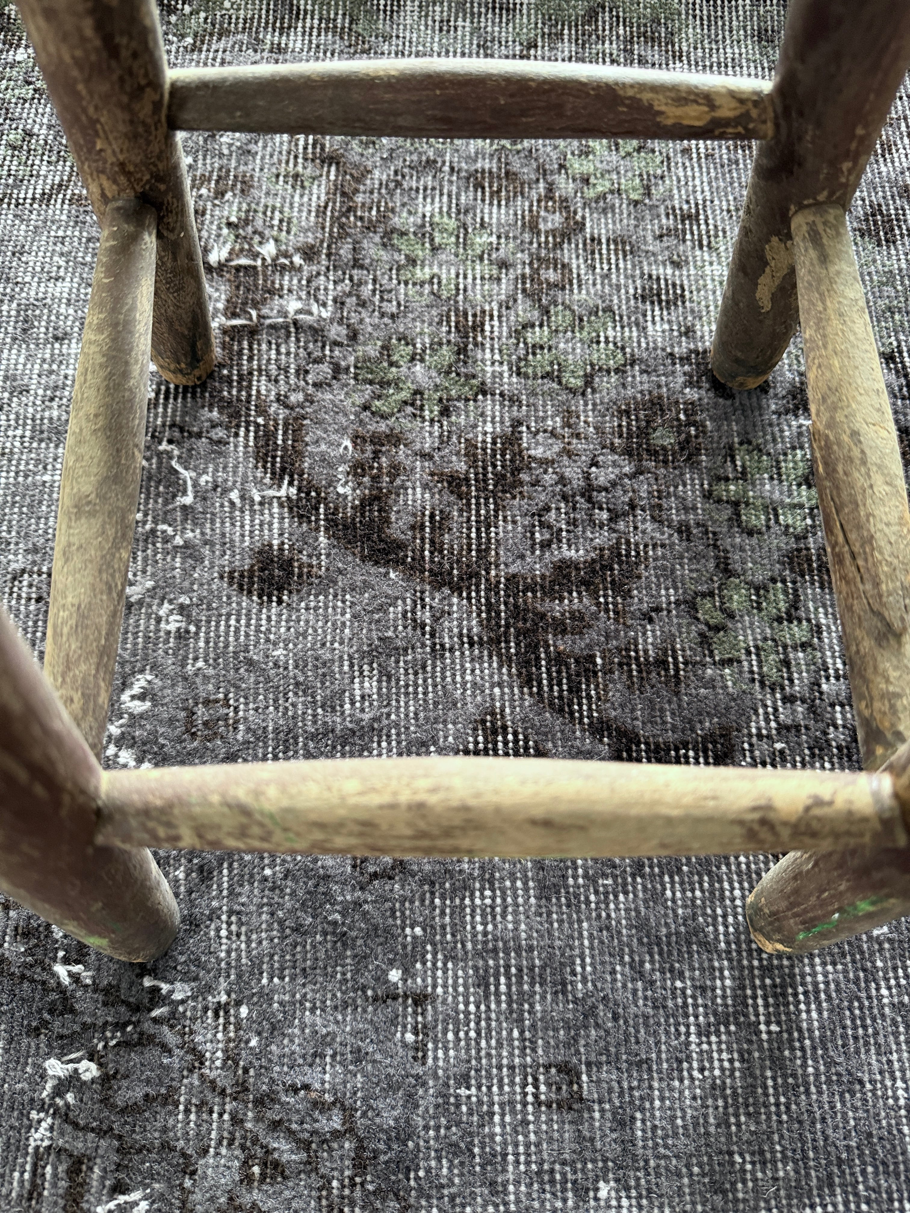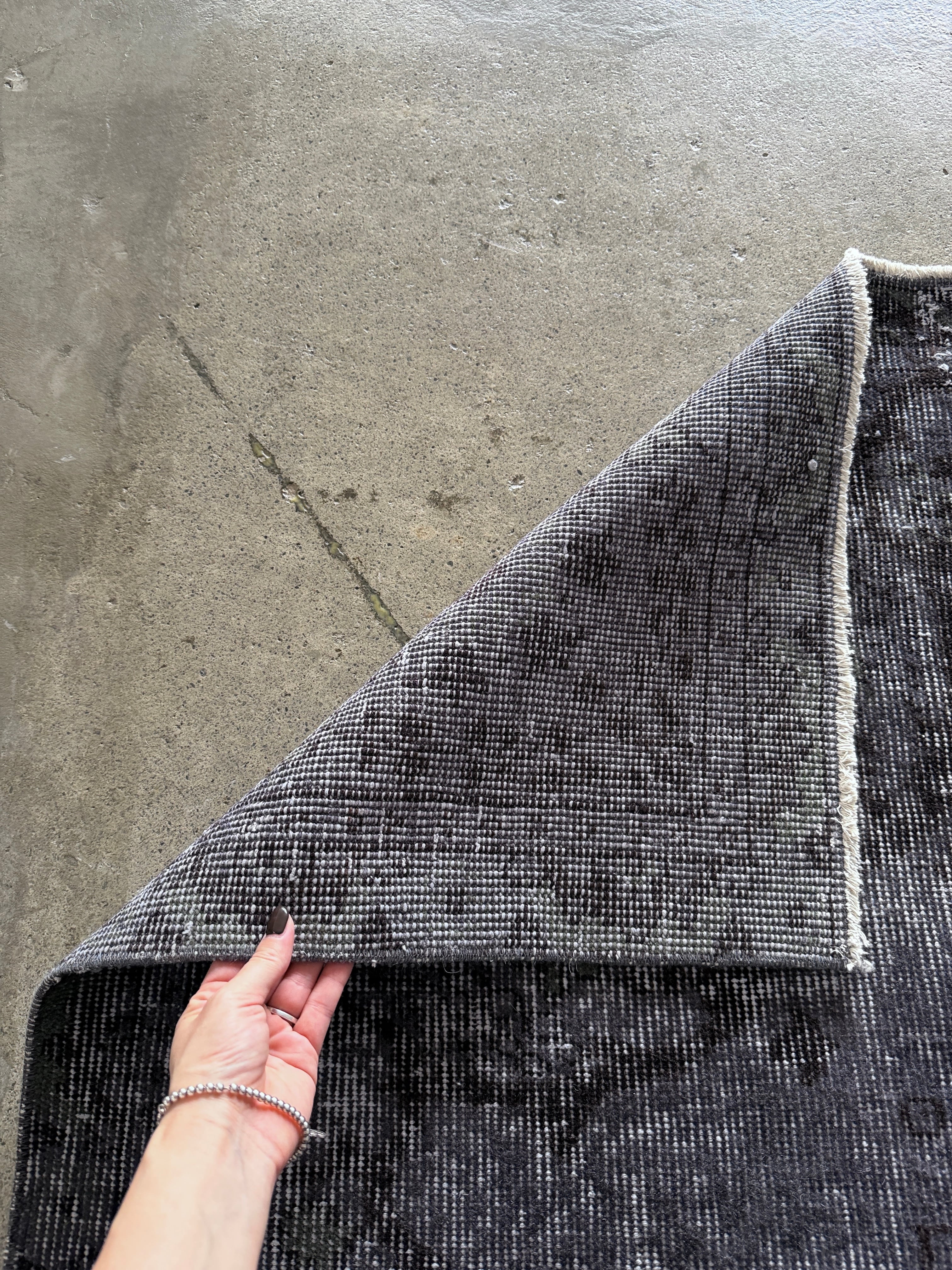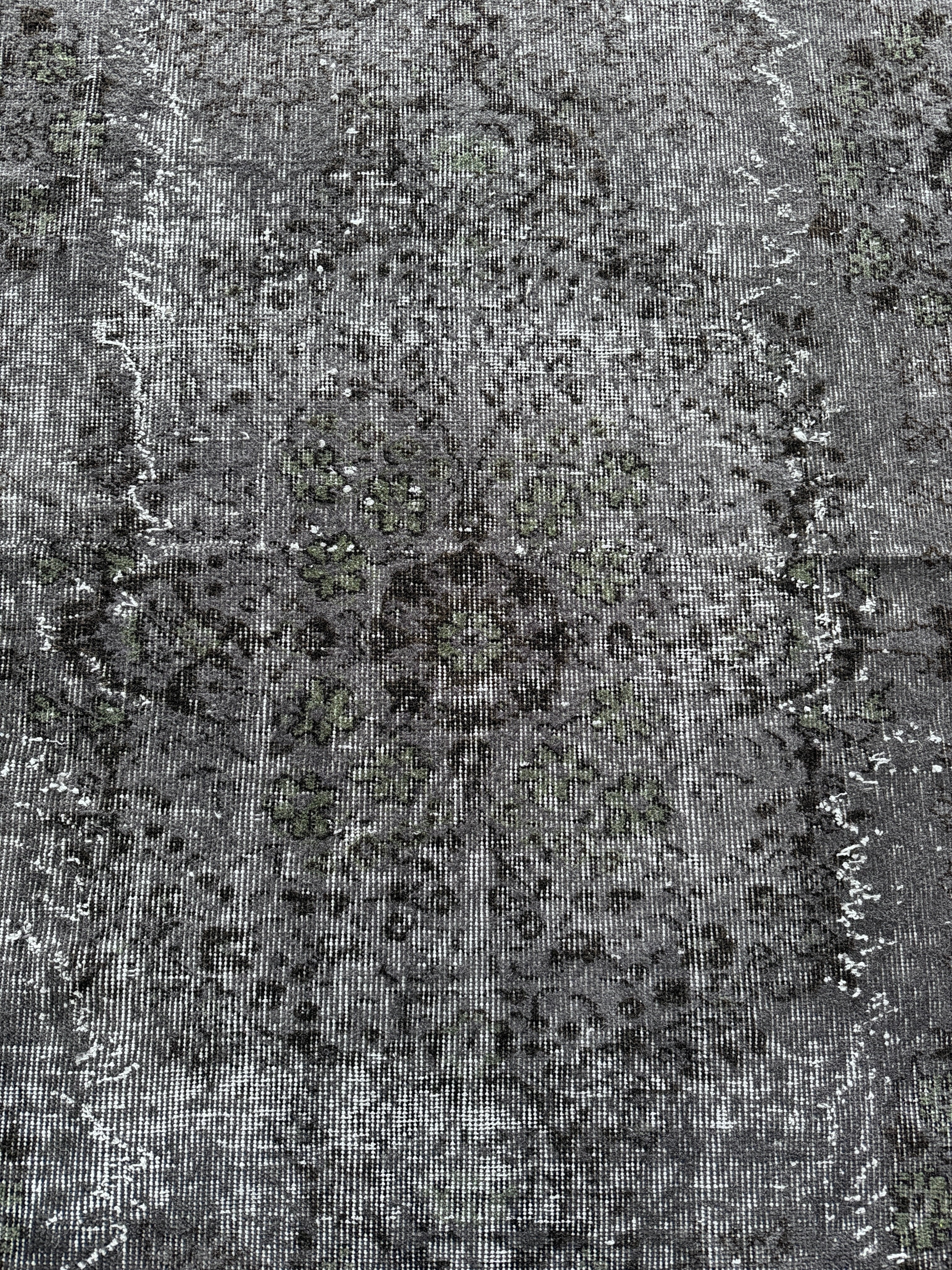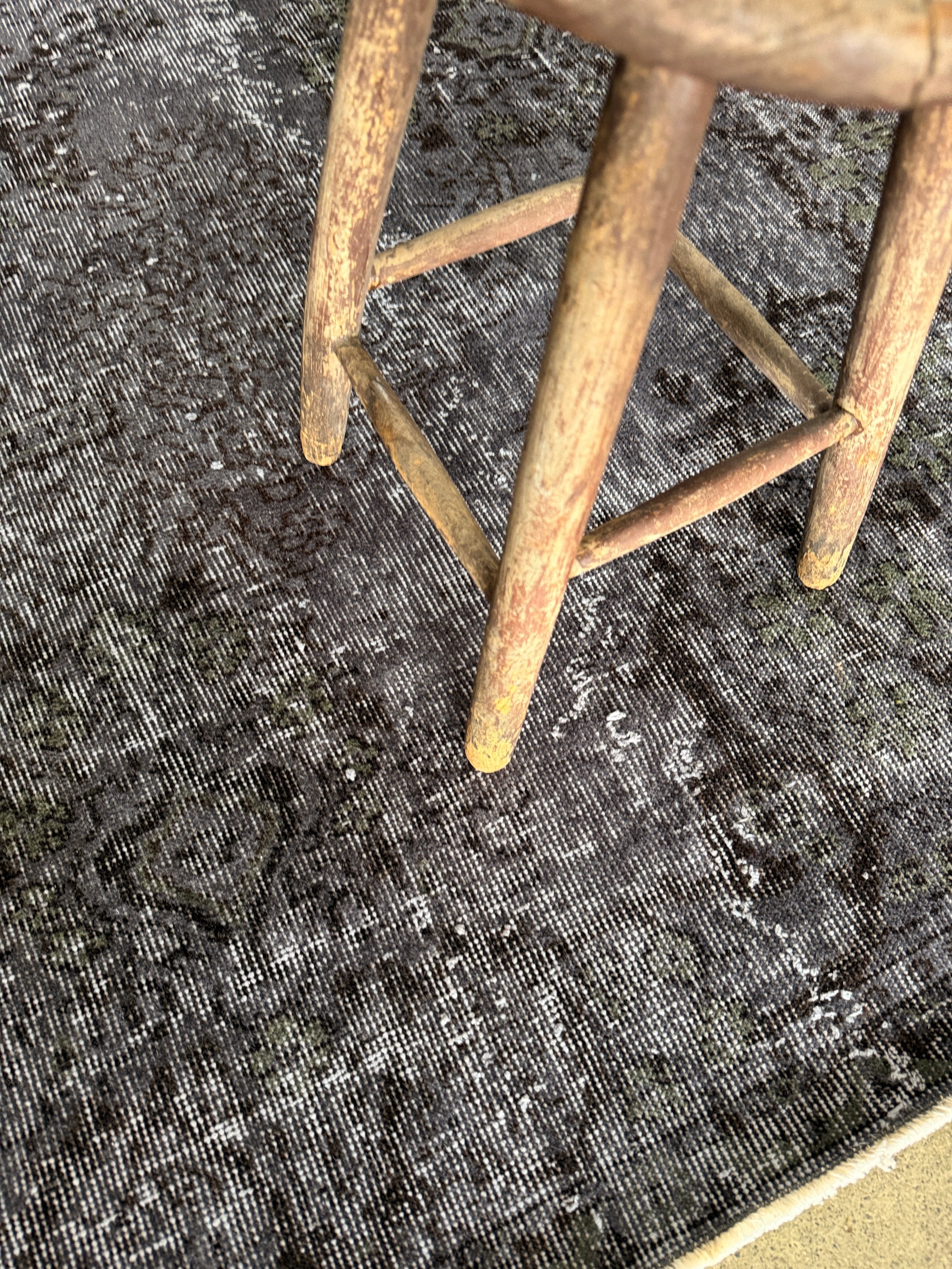 個人的にマイブームなシックなオーバダイ。写真で良さが伝われば嬉しいのですが、ネイビーブラックに隠れた花模様がたまらなく好きです。隠れた華やかさを持つ大人なヴィンテージラグ。私のイチオシ!