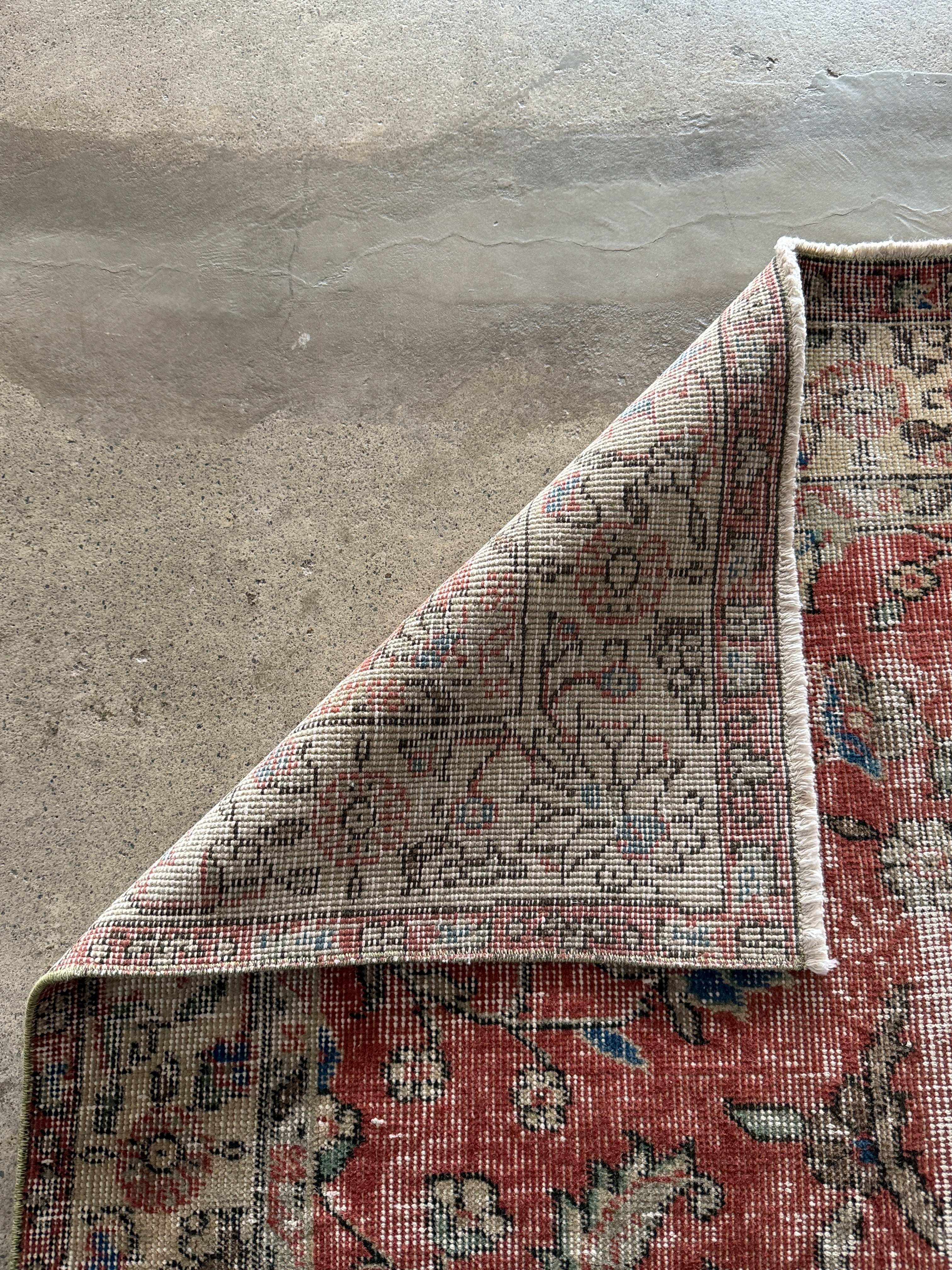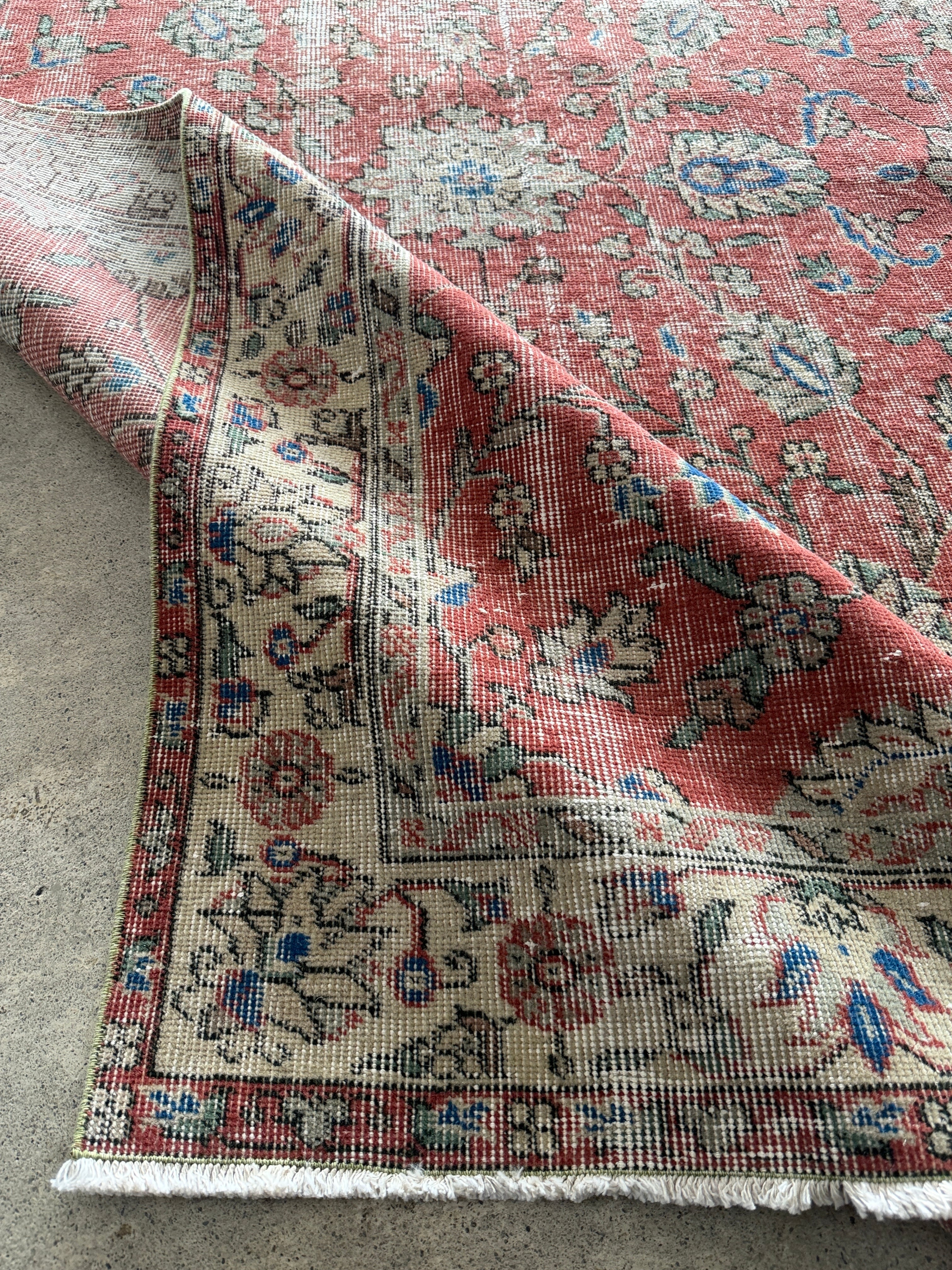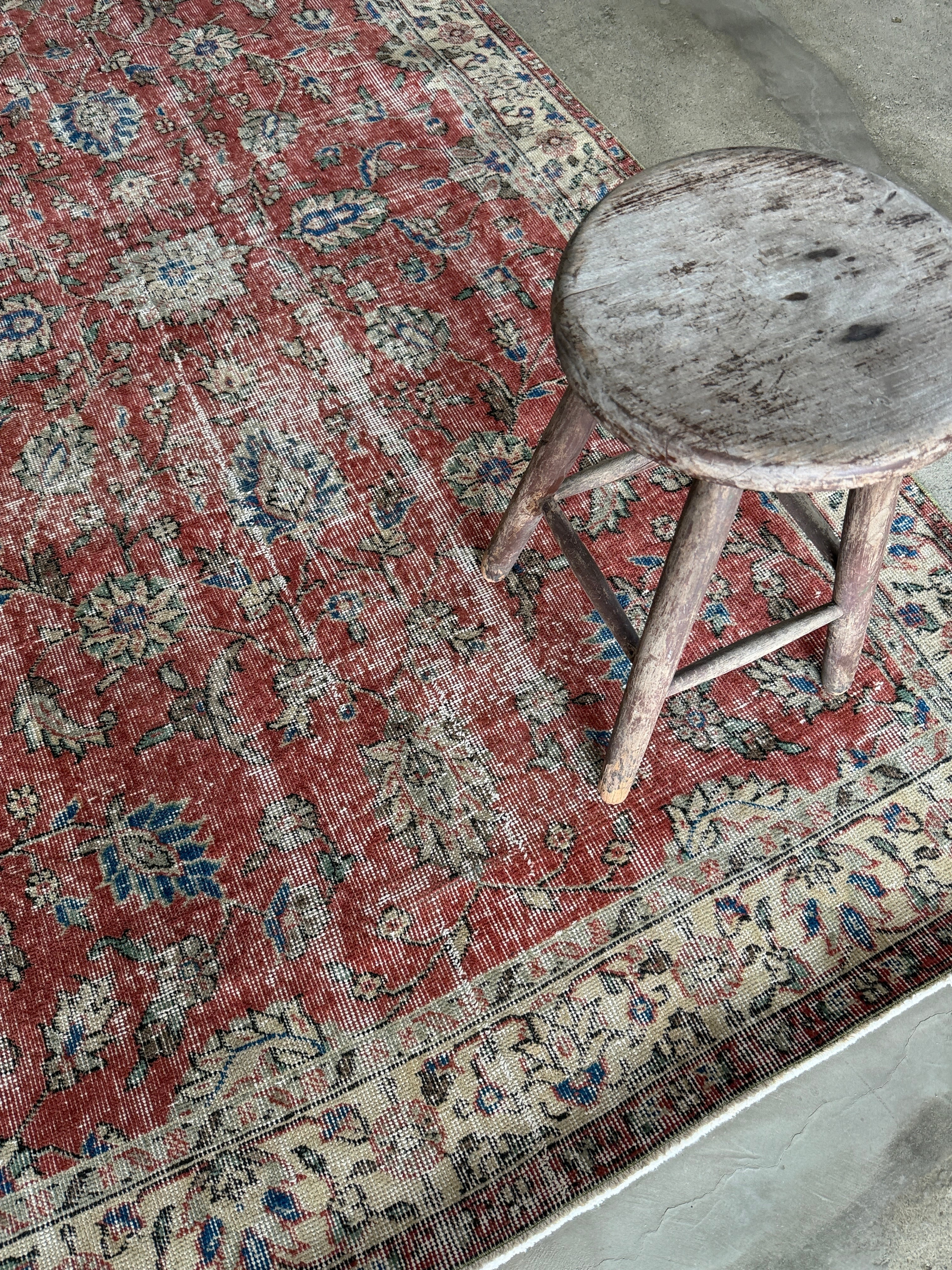 アンティーク感たっぷりのクラシックレトロな色合いと、存在感のある花模様が印象的な1枚。絶妙なかすれ感もあってヴィンテージの良さを最大限に感じていただけるラグです。これも古民家や和室との相性もよく、敷くだけでインパクトがあるラグなのでショップにもオススメです!