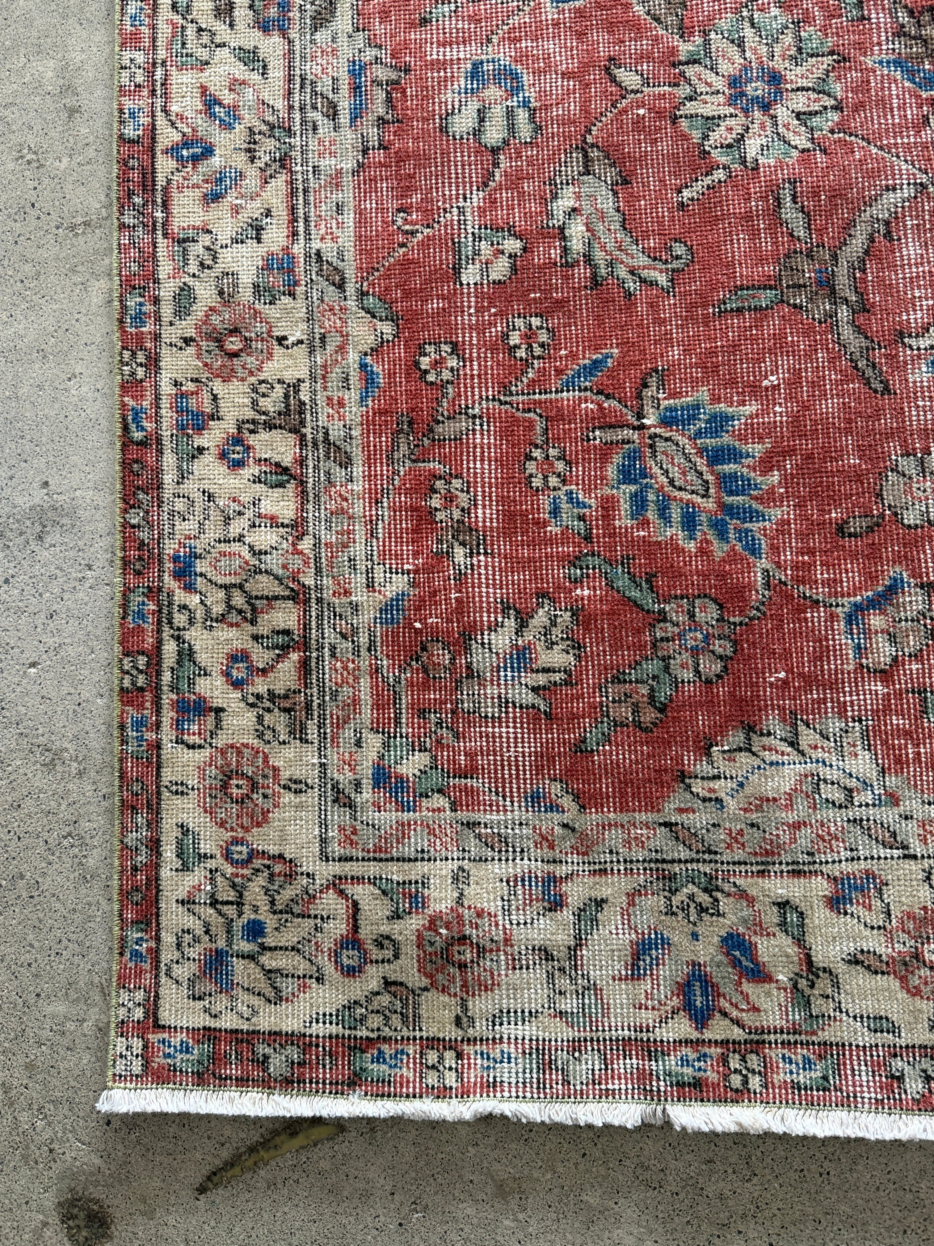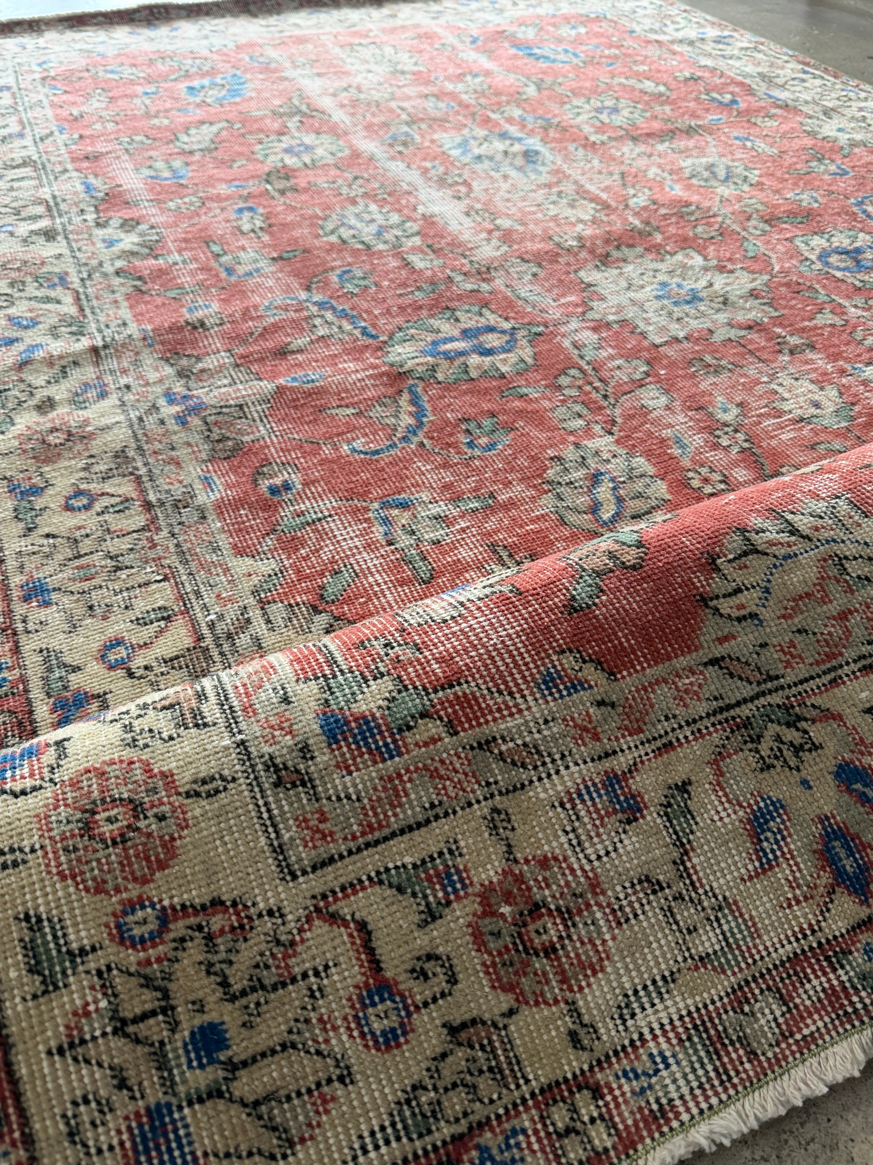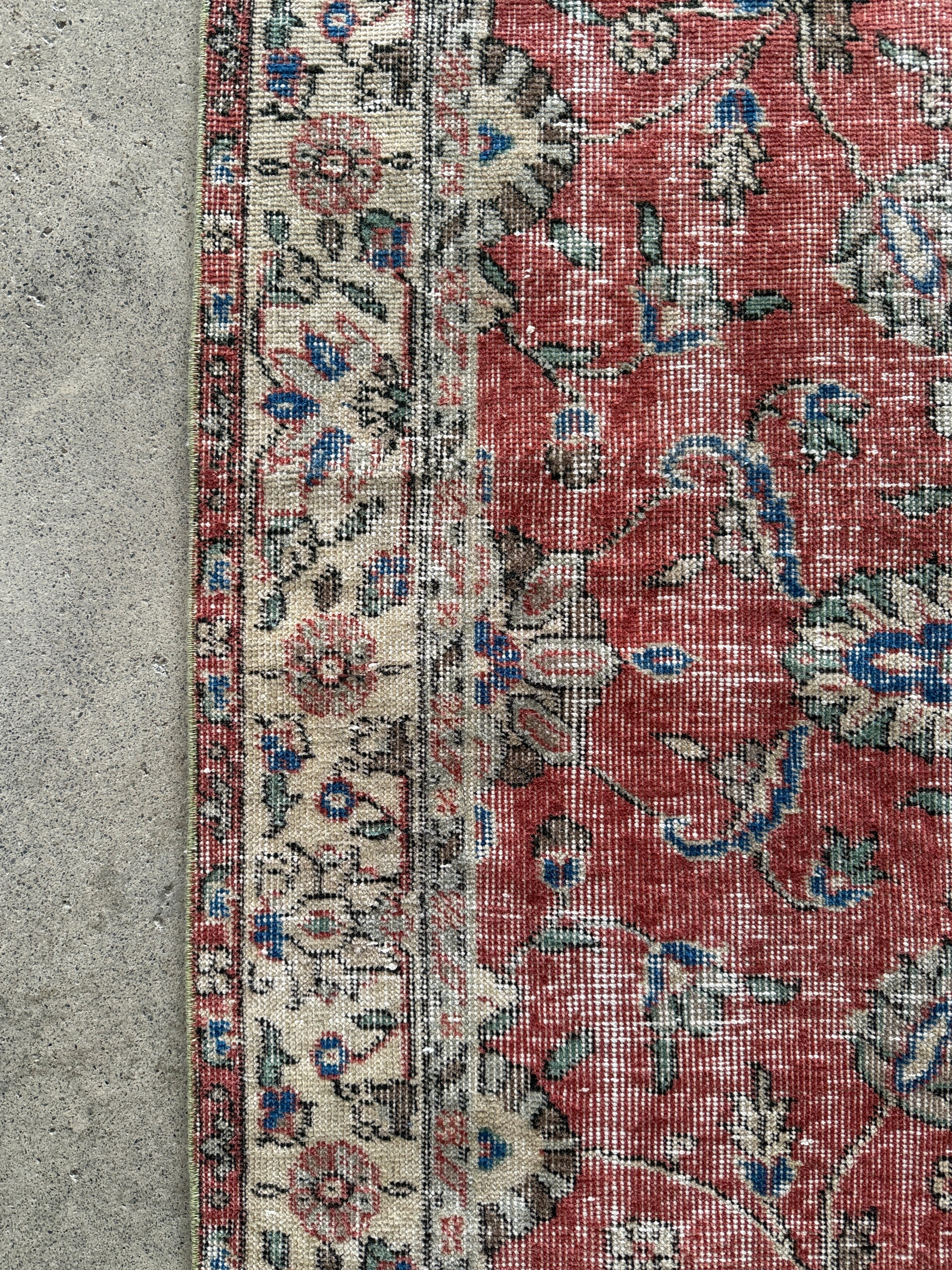 アンティーク感たっぷりのクラシックレトロな色合いと、存在感のある花模様が印象的な1枚。絶妙なかすれ感もあってヴィンテージの良さを最大限に感じていただけるラグです。これも古民家や和室との相性もよく、敷くだけでインパクトがあるラグなのでショップにもオススメです!