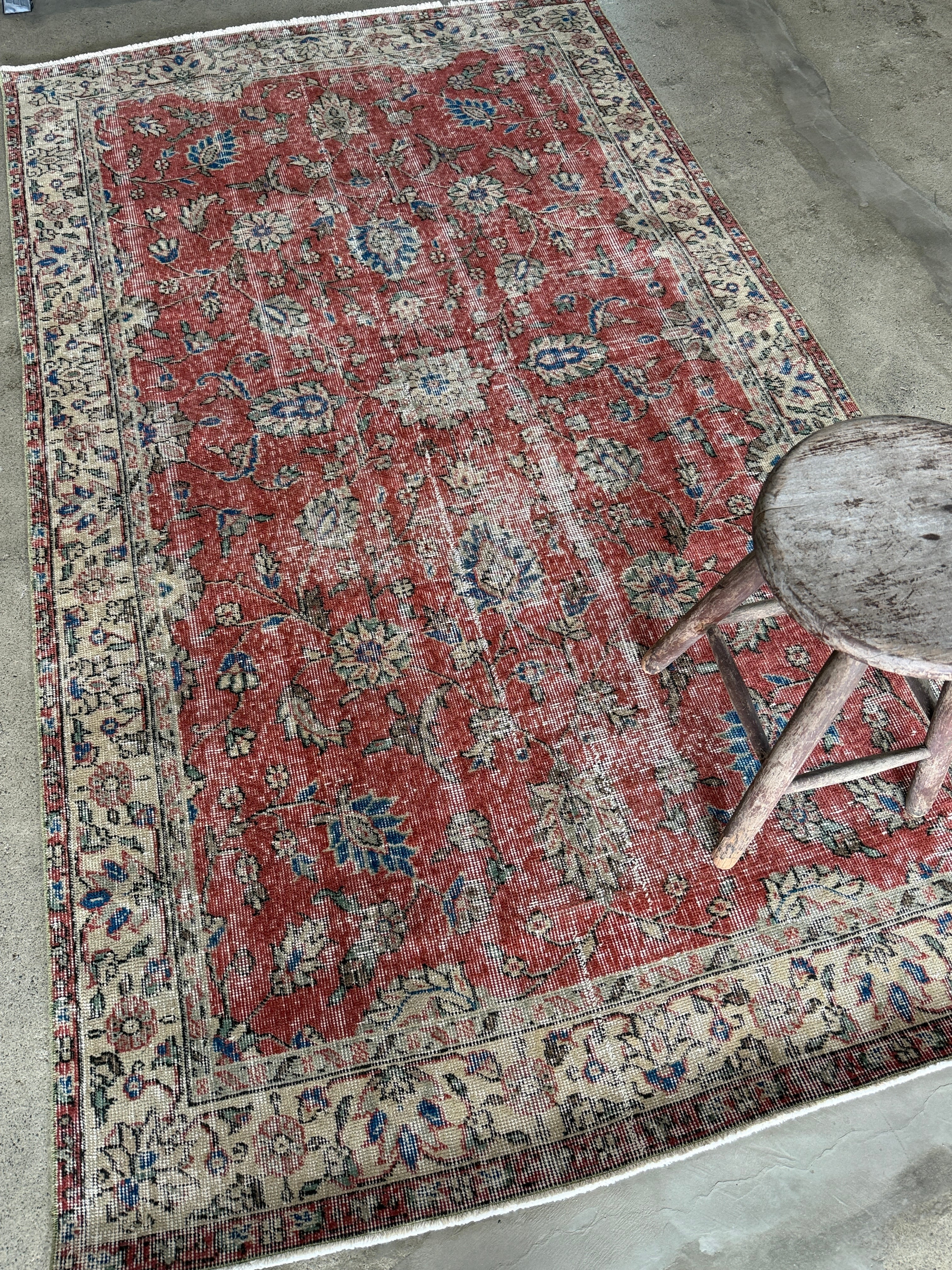 1970年代にトルコのイスパルタでハンドメイドで織られたヴィンテージラグ。