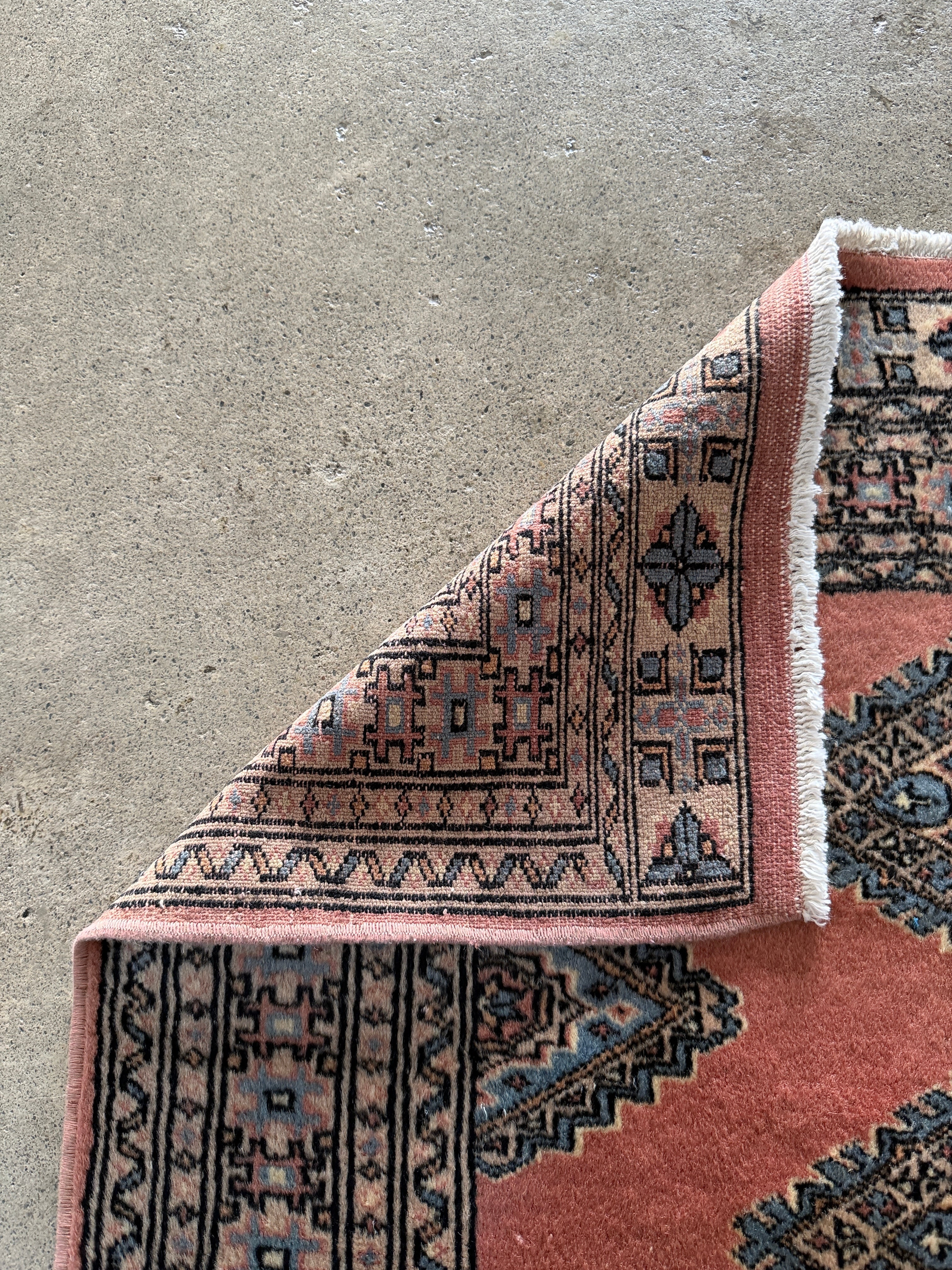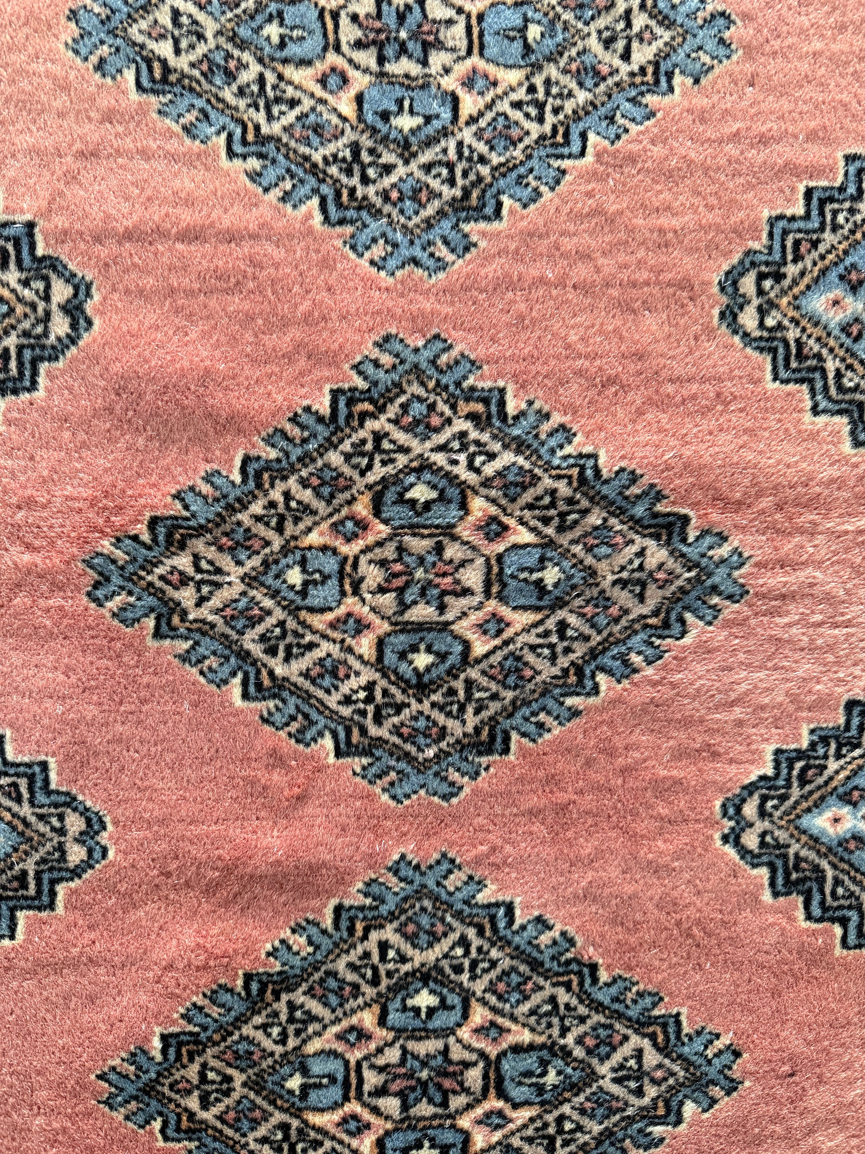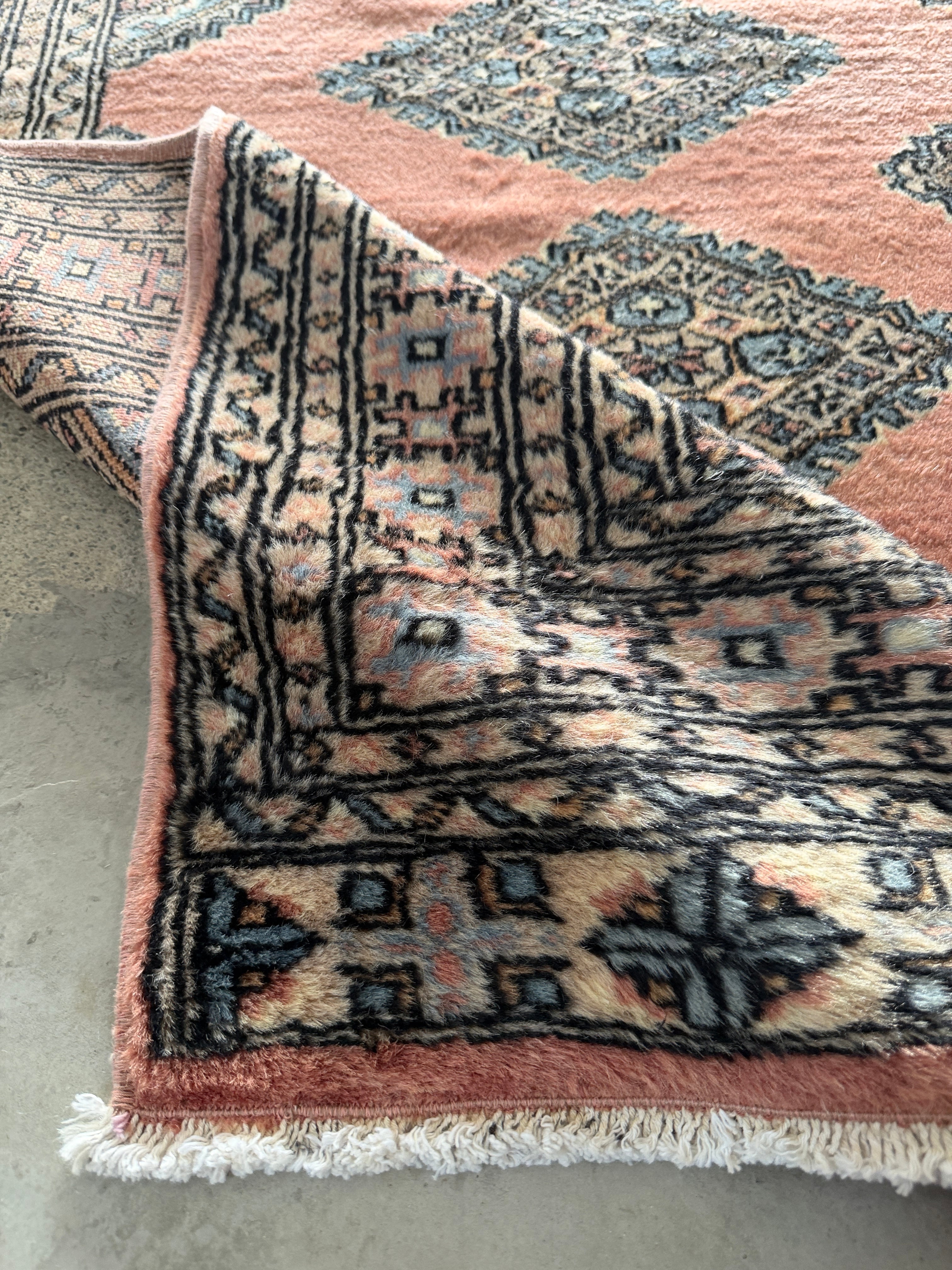 カイセリでの買い付けの際に偶然見つけた、可愛らしいサーモンピンクが印象的なパキスタンラグです。ピンクとブルーの組み合わせがAntiques&Crafts880らしいなと思い、セレクトさせていただきました。玄関マットやお部屋のちょっとしたスペースにご活用くださいませ。