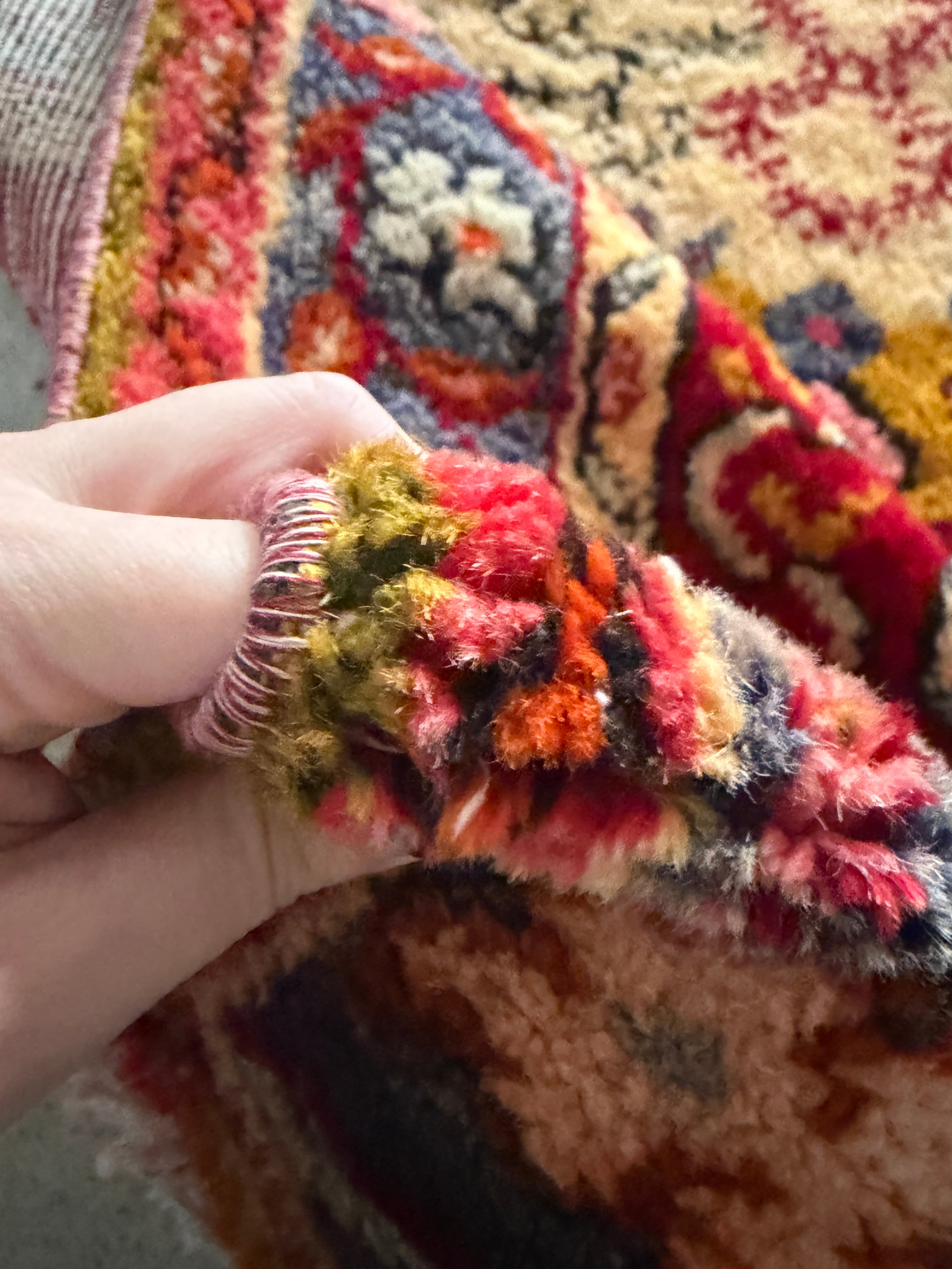 今回の絨毯もメンテナンスも素晴らしく、ウール独特の香りも少なく(こちらは個人差がありますのでご参考まで)、さっぱりとした素晴らしい洗い上がり!初めて毛足の長い絨毯ラグにチャレンジされるお客様にも自信を持っておすすめできます。ラグの基本である縦糸と横糸はコットンなので通気性も良くオールシーズン快適にお使いいただけます。