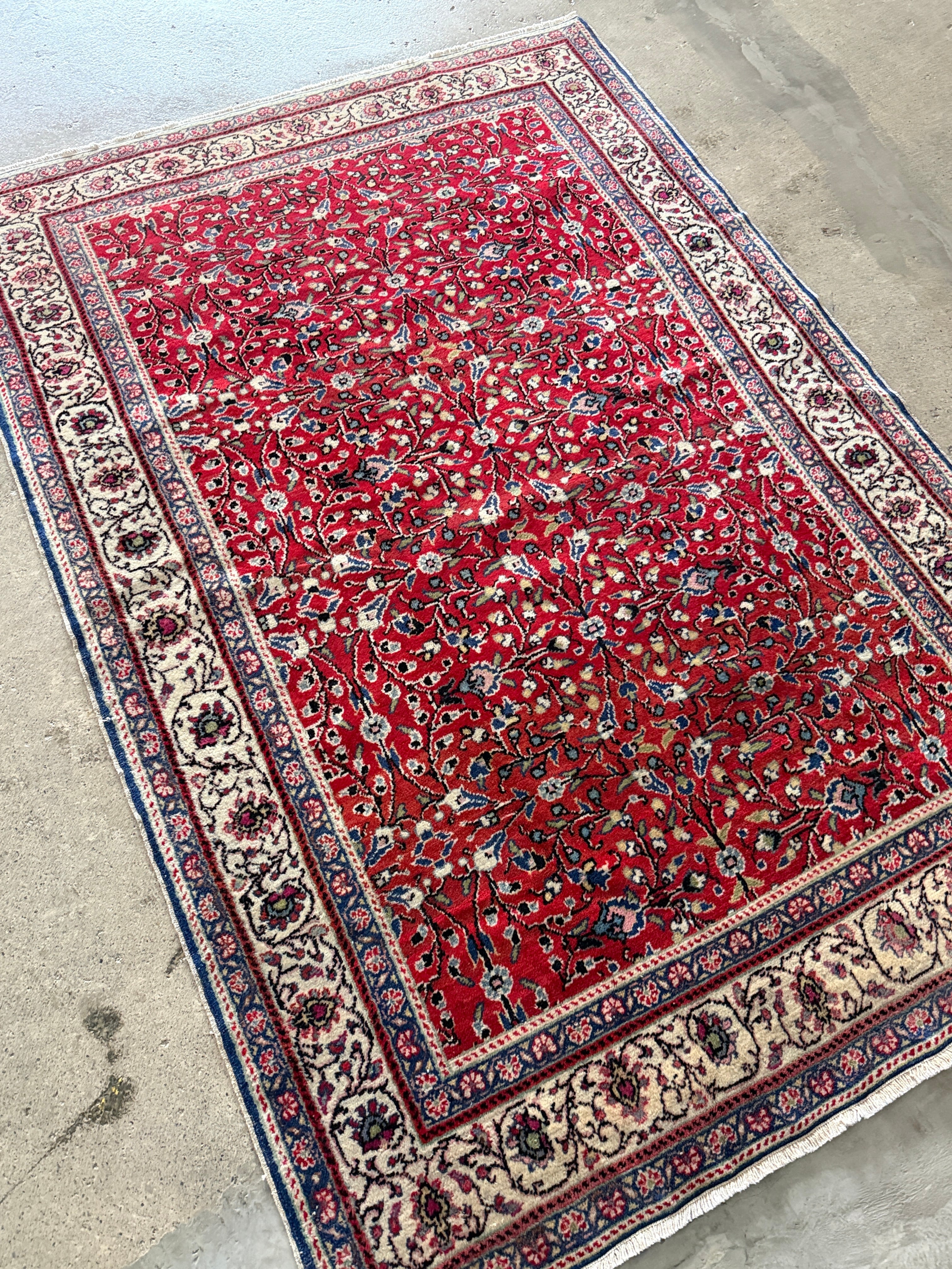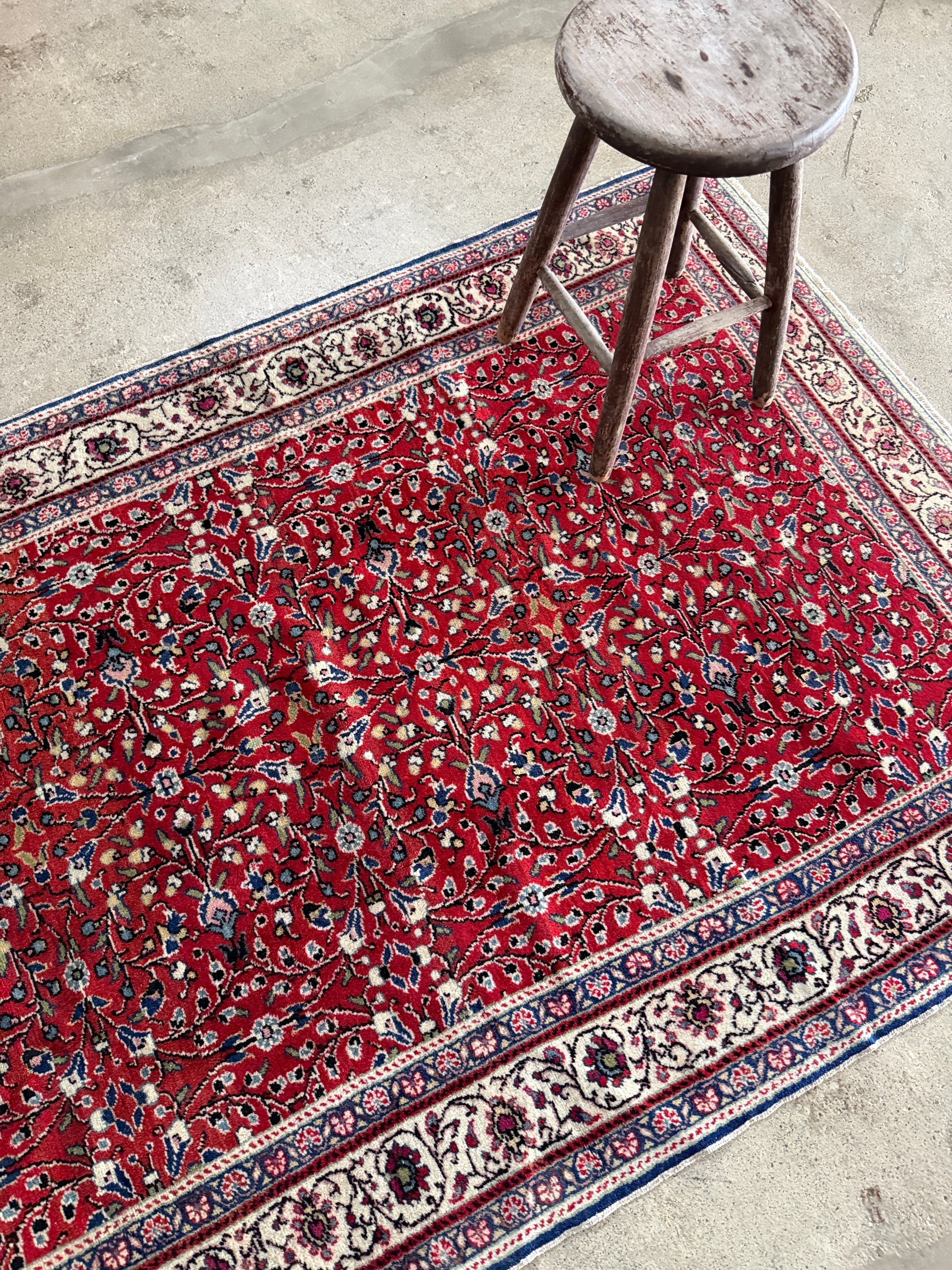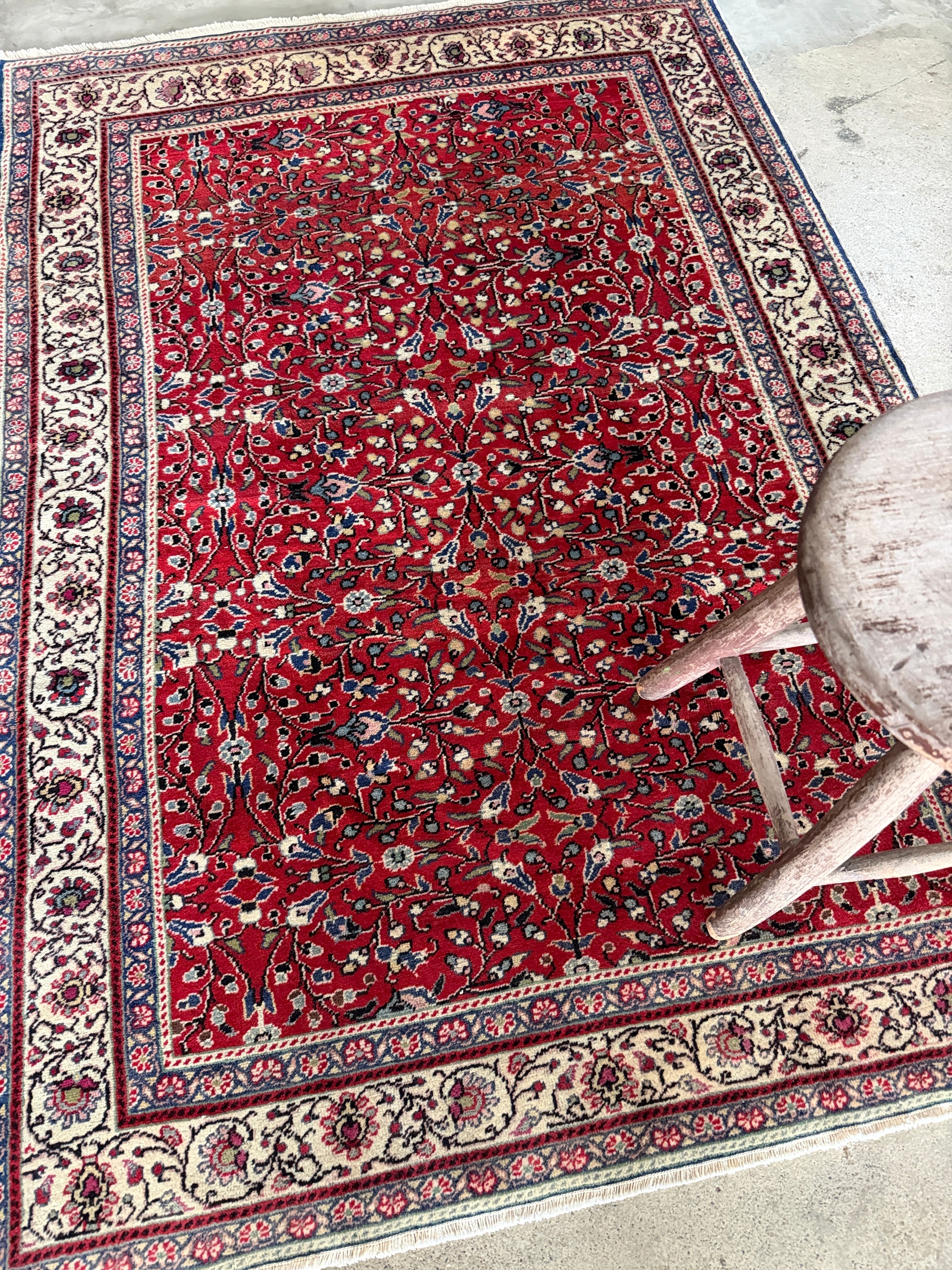 人気の小花模様の中でも、この時期にリクエストの多いレトロな赤を久々に見つけることができました!深いレッドのカイセリ絨毯は希少性が高く、中でも色落ちしていないオリジナルの赤はなかなか出会えないラグです。和室にも相性がよく、温かみのある素敵な1枚です。