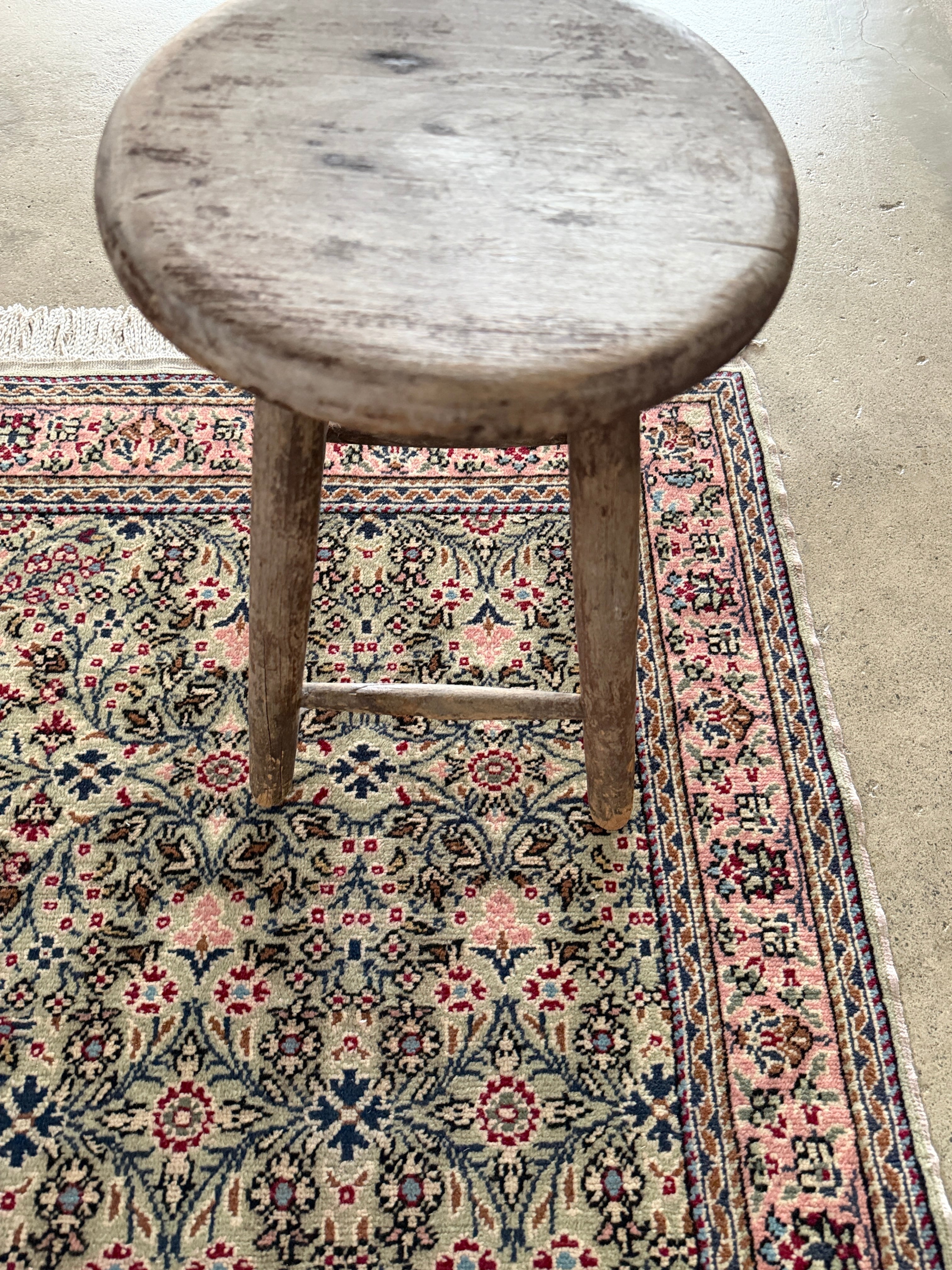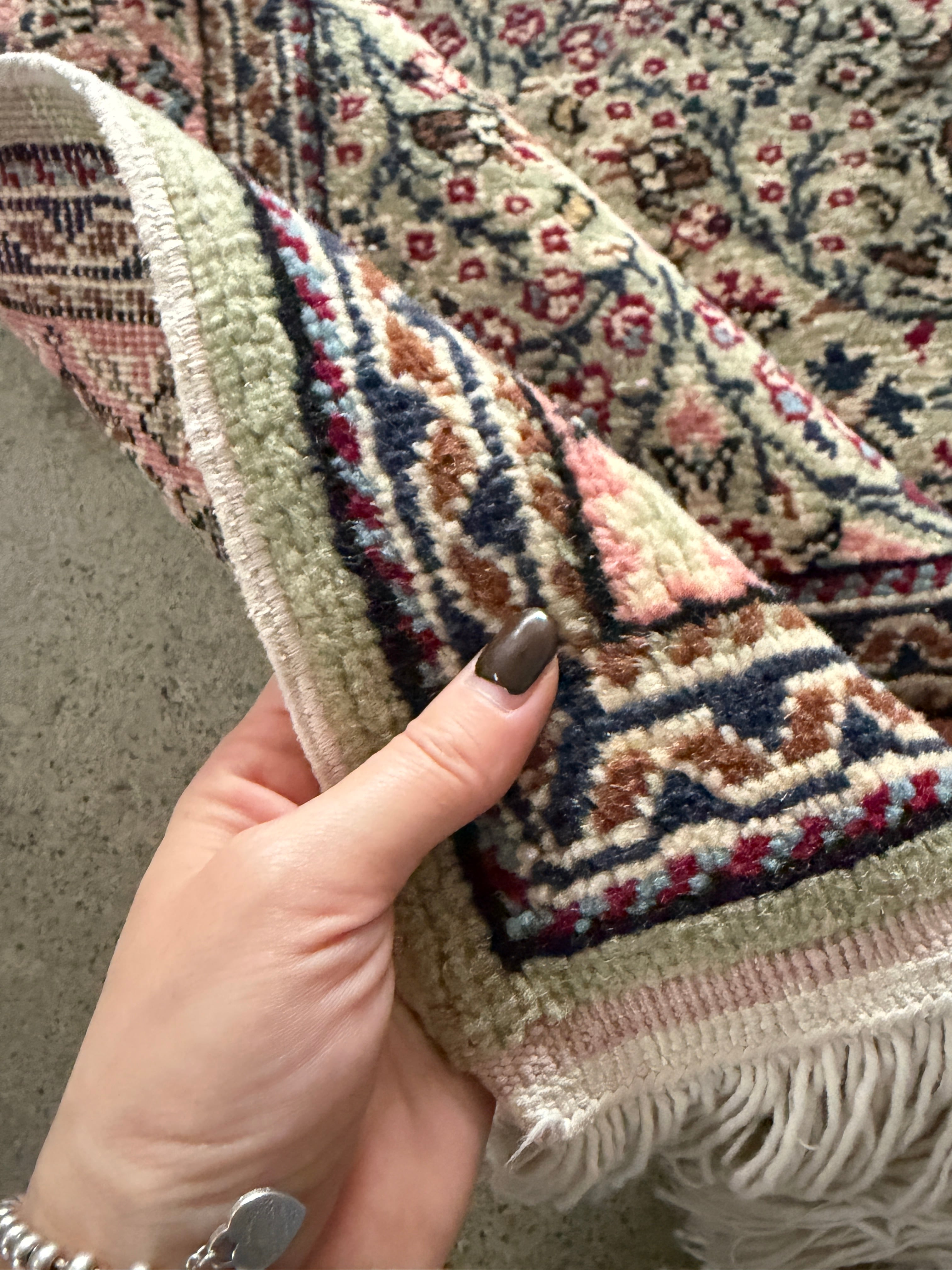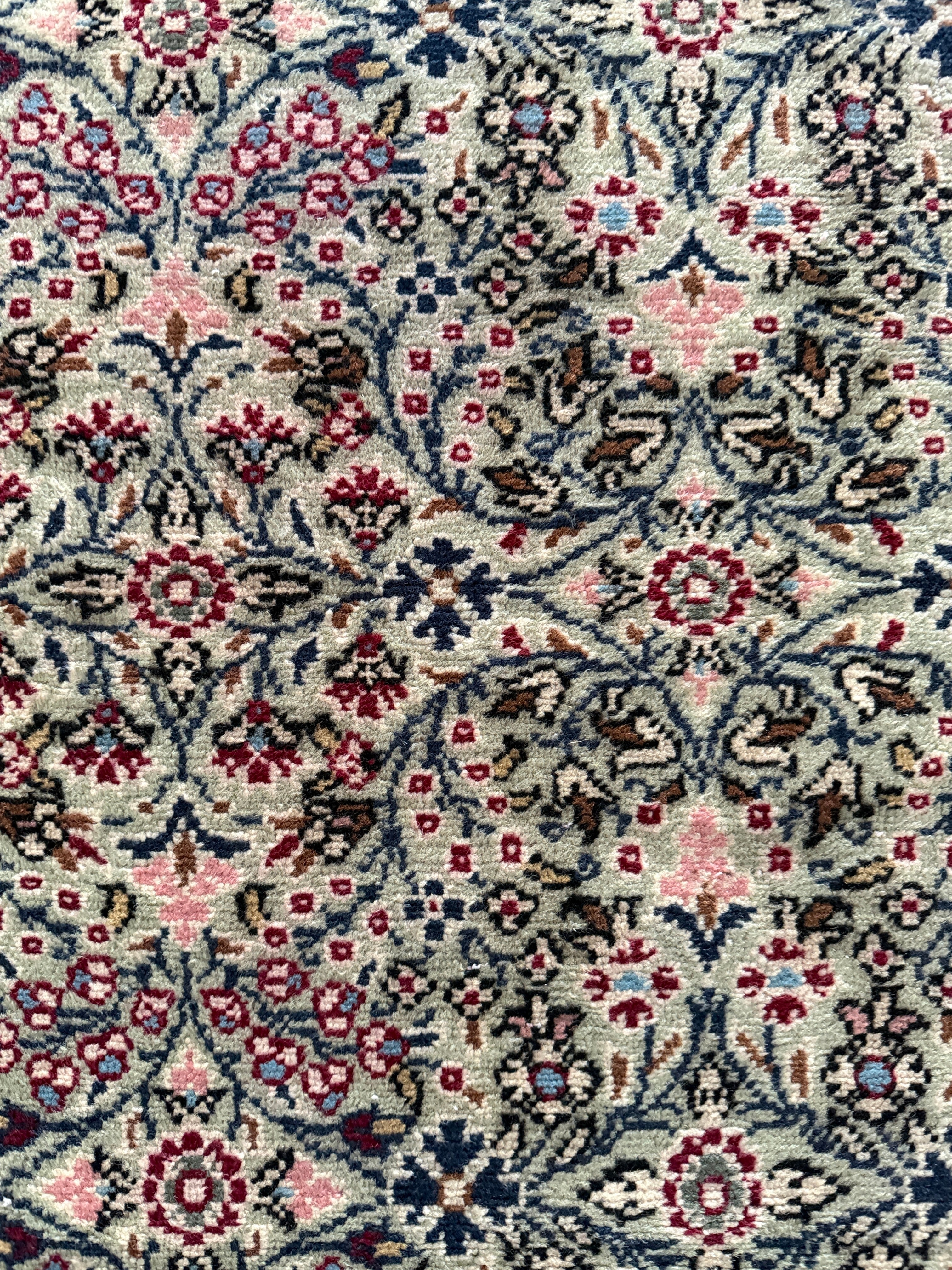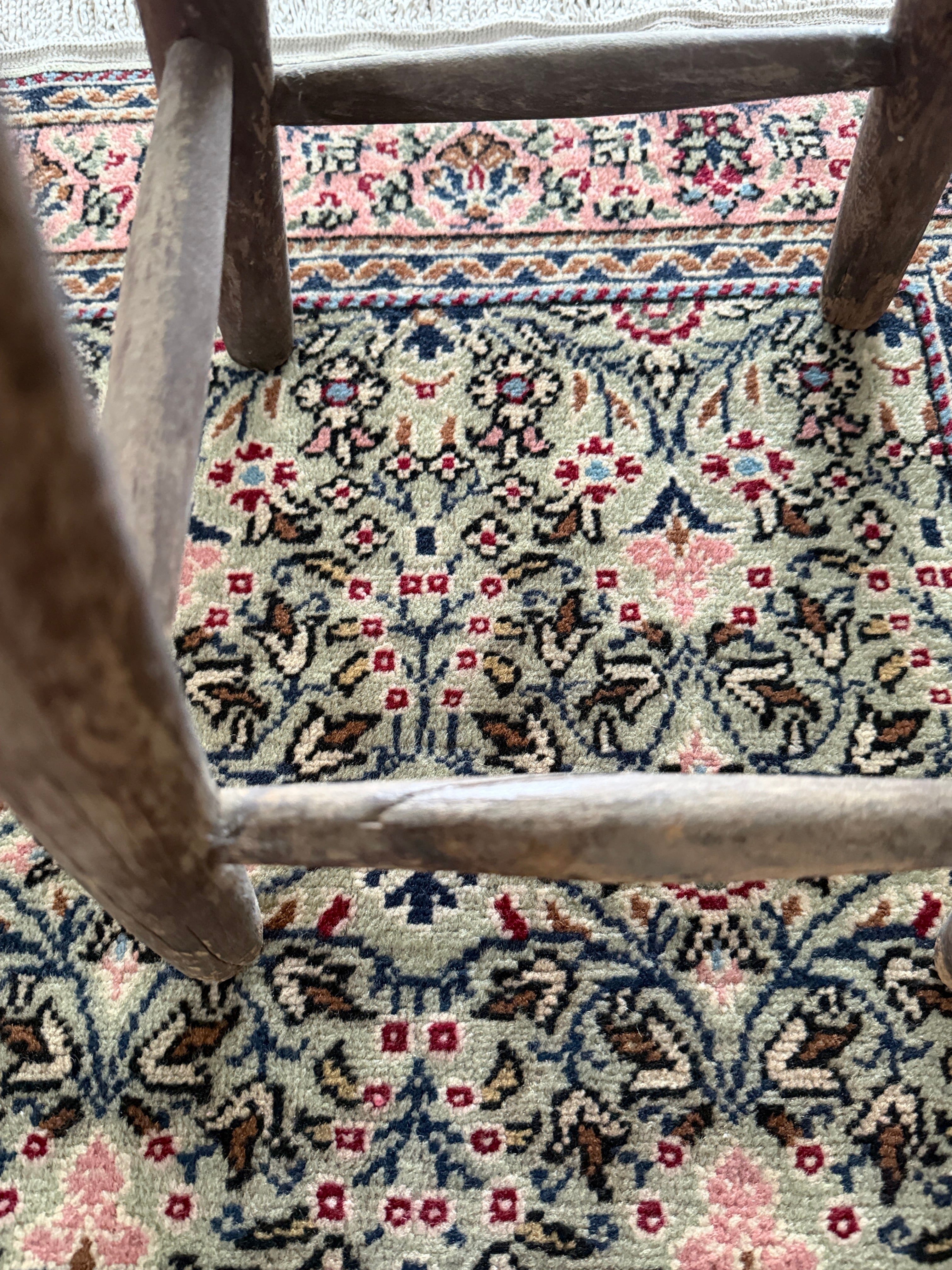 人気のカイセリ絨毯からデッドストック(未使用品)のご紹介です。王道の小花模様デザインに淡いグリーンとピンクという最高に可愛らしい組み合わせでございます!繊細な模様に華やかなフリンジ。織られた時のまま全く使われていなかったことが分かります。フワフワに柔らかな毛足に滑らかな艶。壁に飾りたくなるような絵画のように美しい芸術品です。