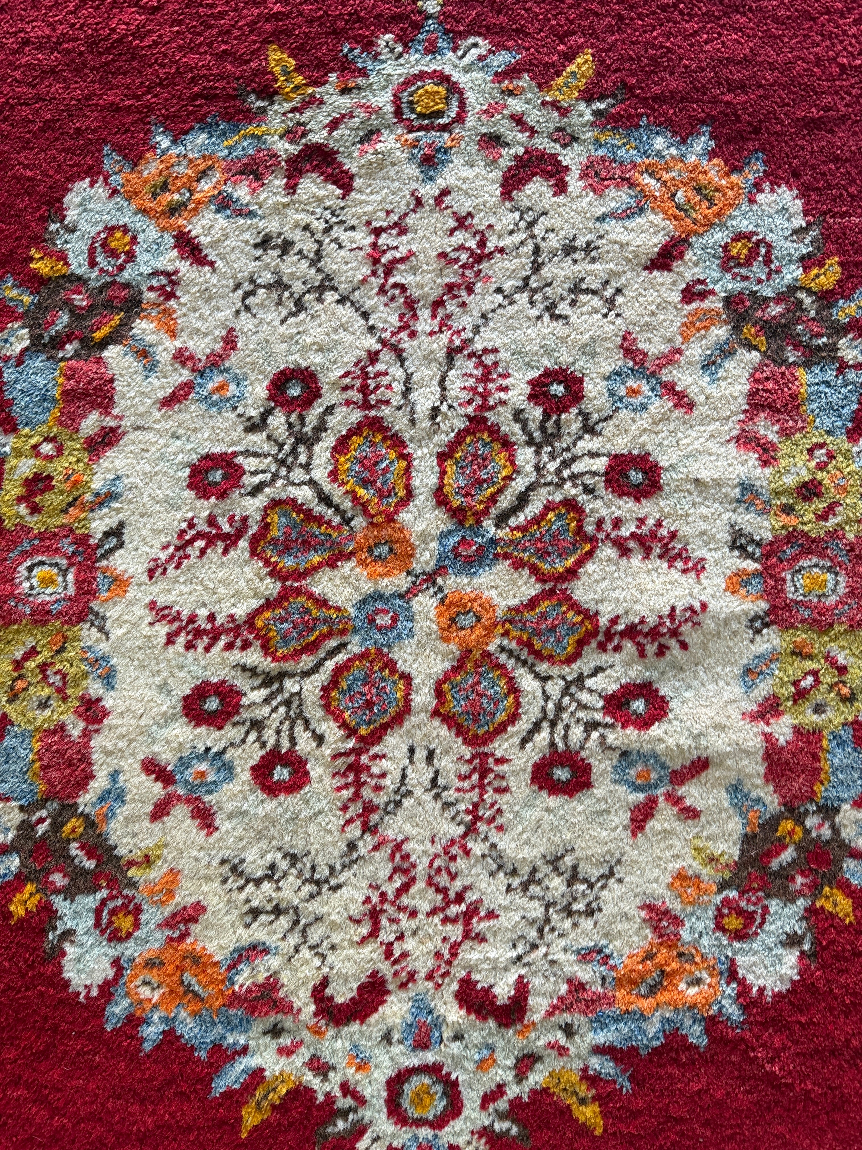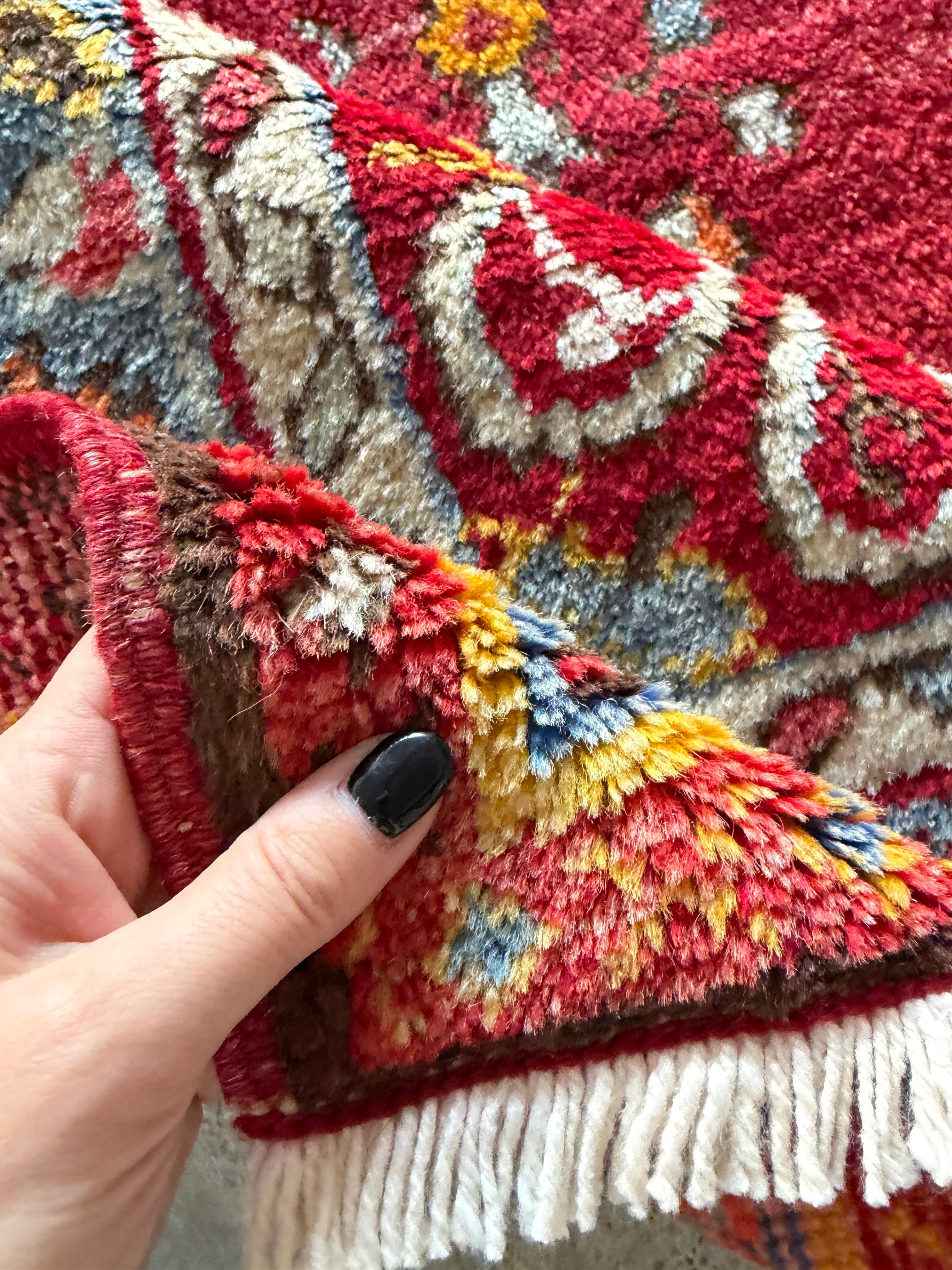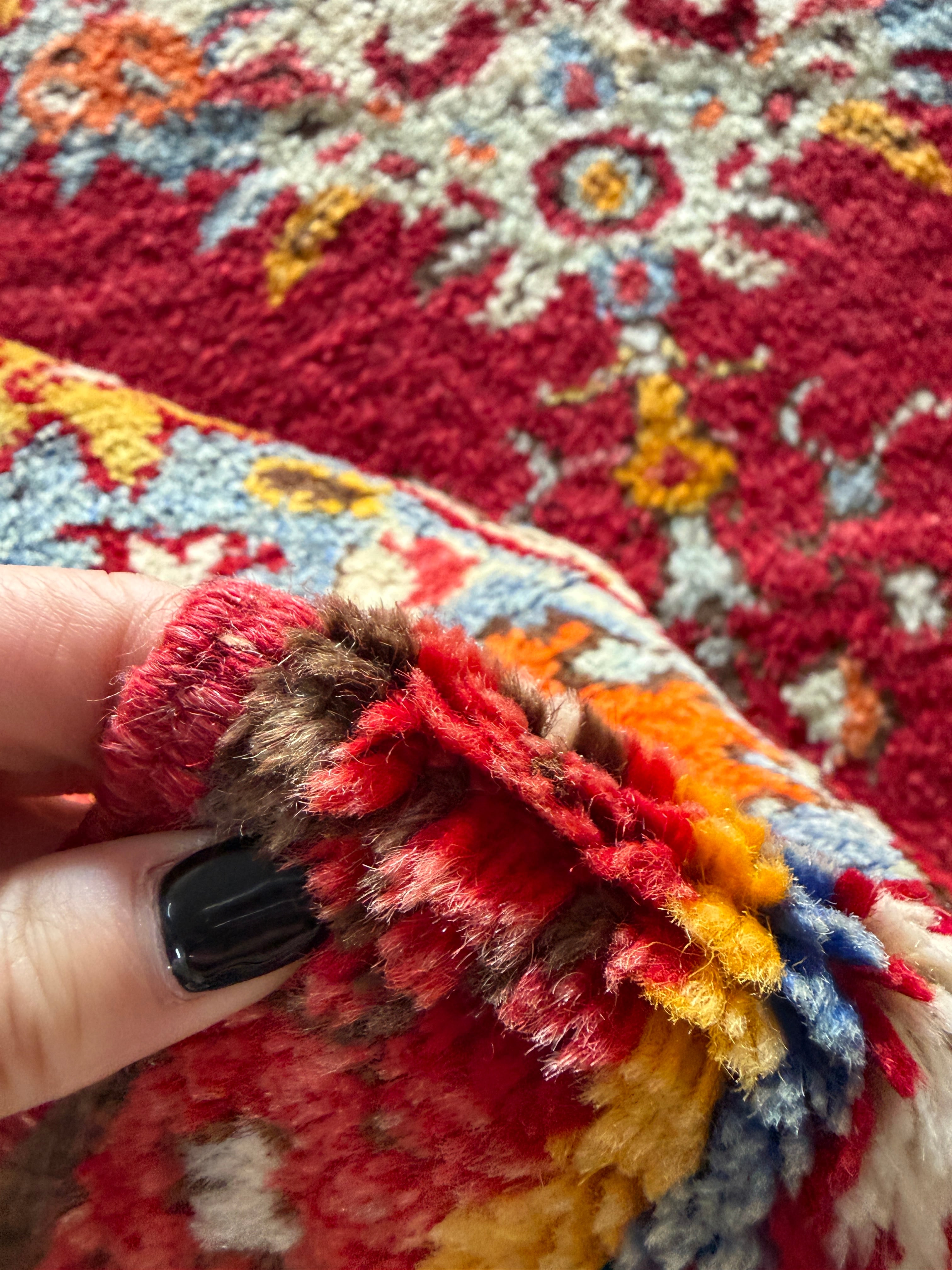 今回の絨毯もメンテナンスも素晴らしく、ウール独特の香りも少なく(こちらは個人差がありますのでご参考まで)、さっぱりとした素晴らしい洗い上がり!初めて毛足の長い絨毯ラグにチャレンジされるお客様にも自信を持っておすすめできます。ラグの基本である縦糸と横糸はコットンなので通気性も良くオールシーズン快適にお使いいただけます。