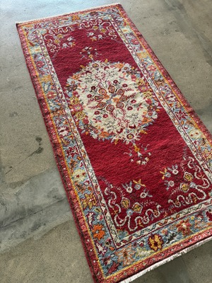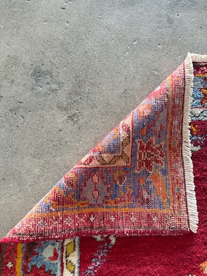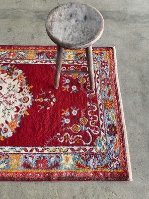 ●ヴィンテージ加工されていない絨毯は遊び毛がでる場合がございます。また、毛足の中に入り込んだチリヤホコリは可能な範囲でトルコでも当店でも除去しておりますが、100%除去は難しく、ヴィンテージ特有の事としてご理解の上ご購入をお願い致します。