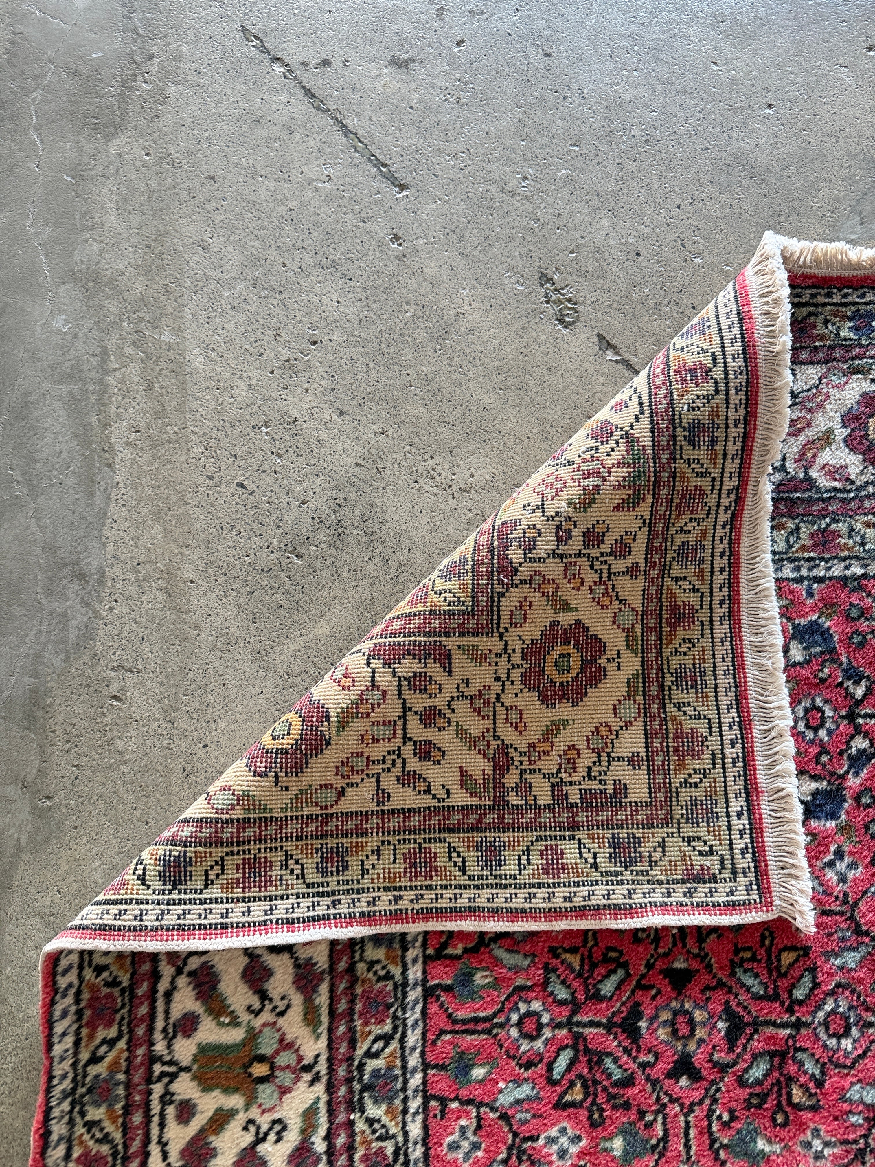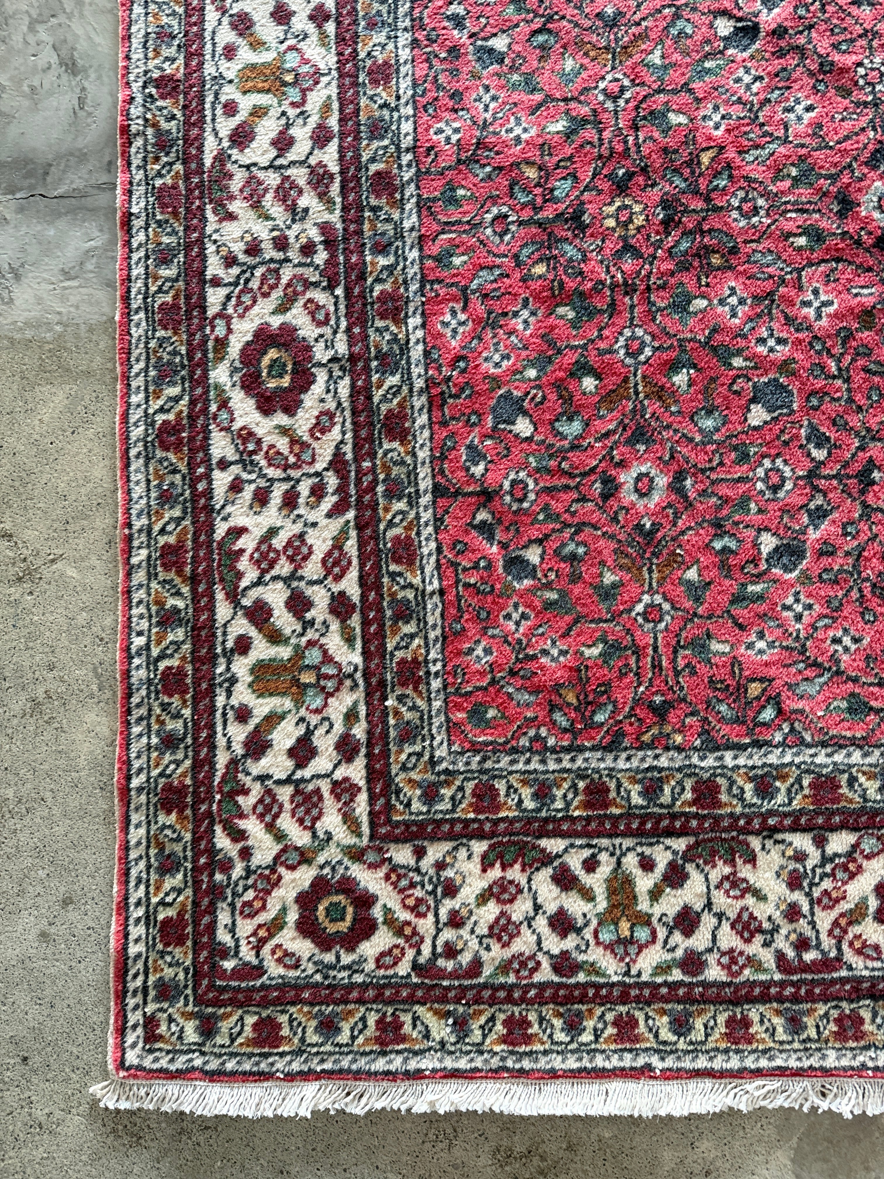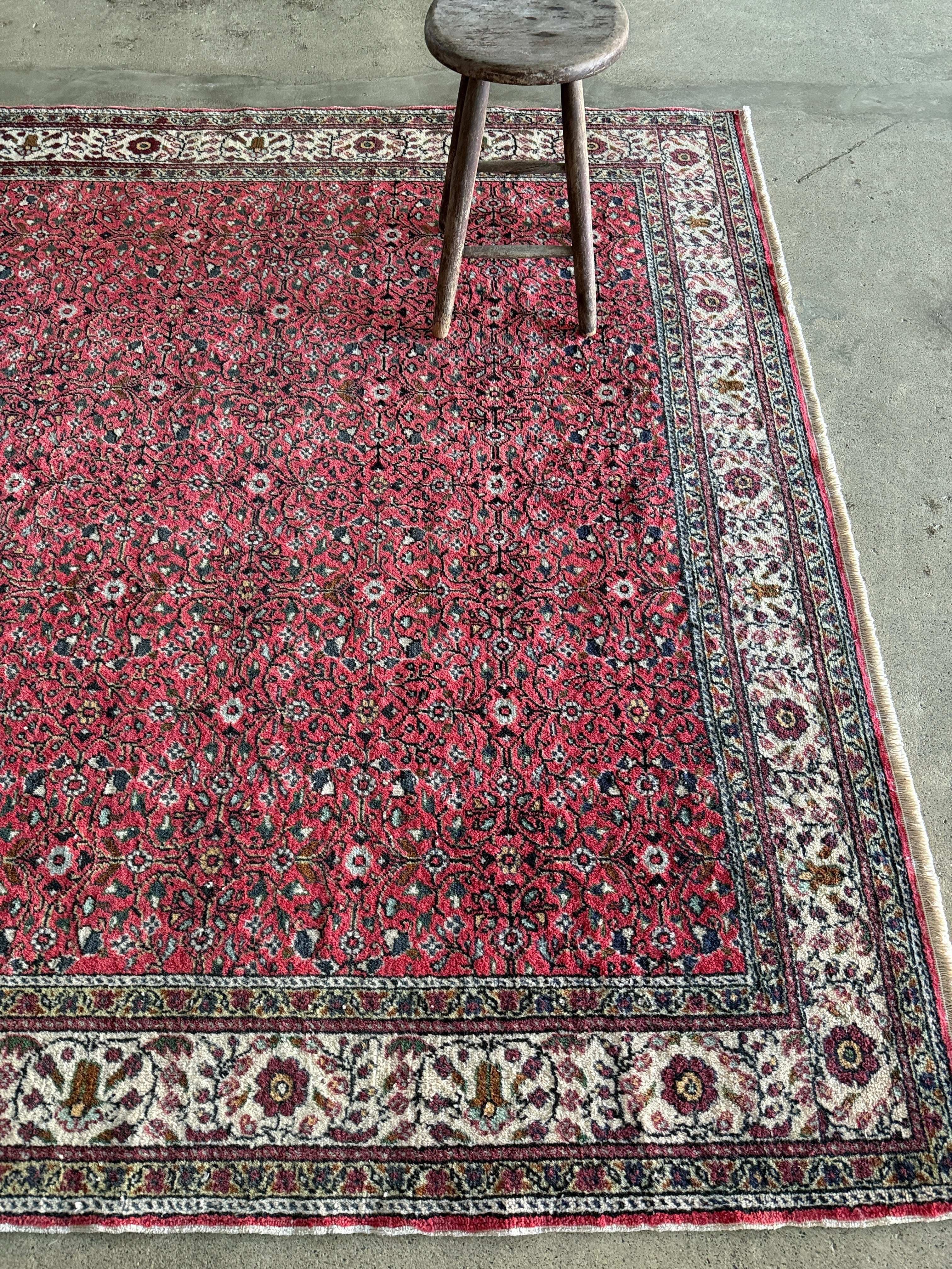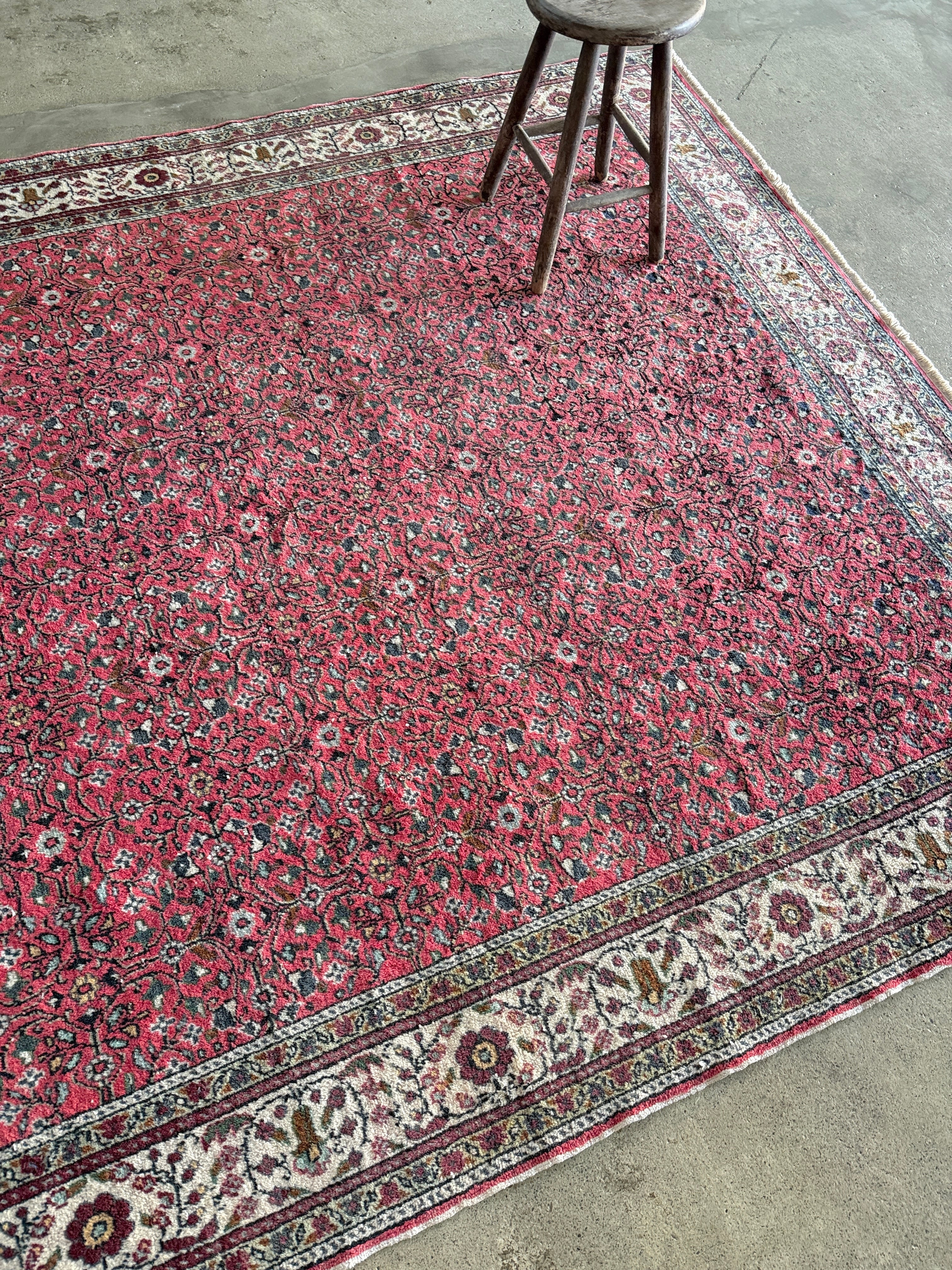 カイセリ王道の小花模様×クラシックなフューシャレッド!の可愛いらしいリビングサイズのカイセリ絨毯です。毛足も長めでやわらかくこの季節にぴったりの1枚となっております。レトロな雰囲気から古家具やアンティークとの相性も抜群かと感じております。お探しのお客様も多いデザインと色合いではないでしょうか。