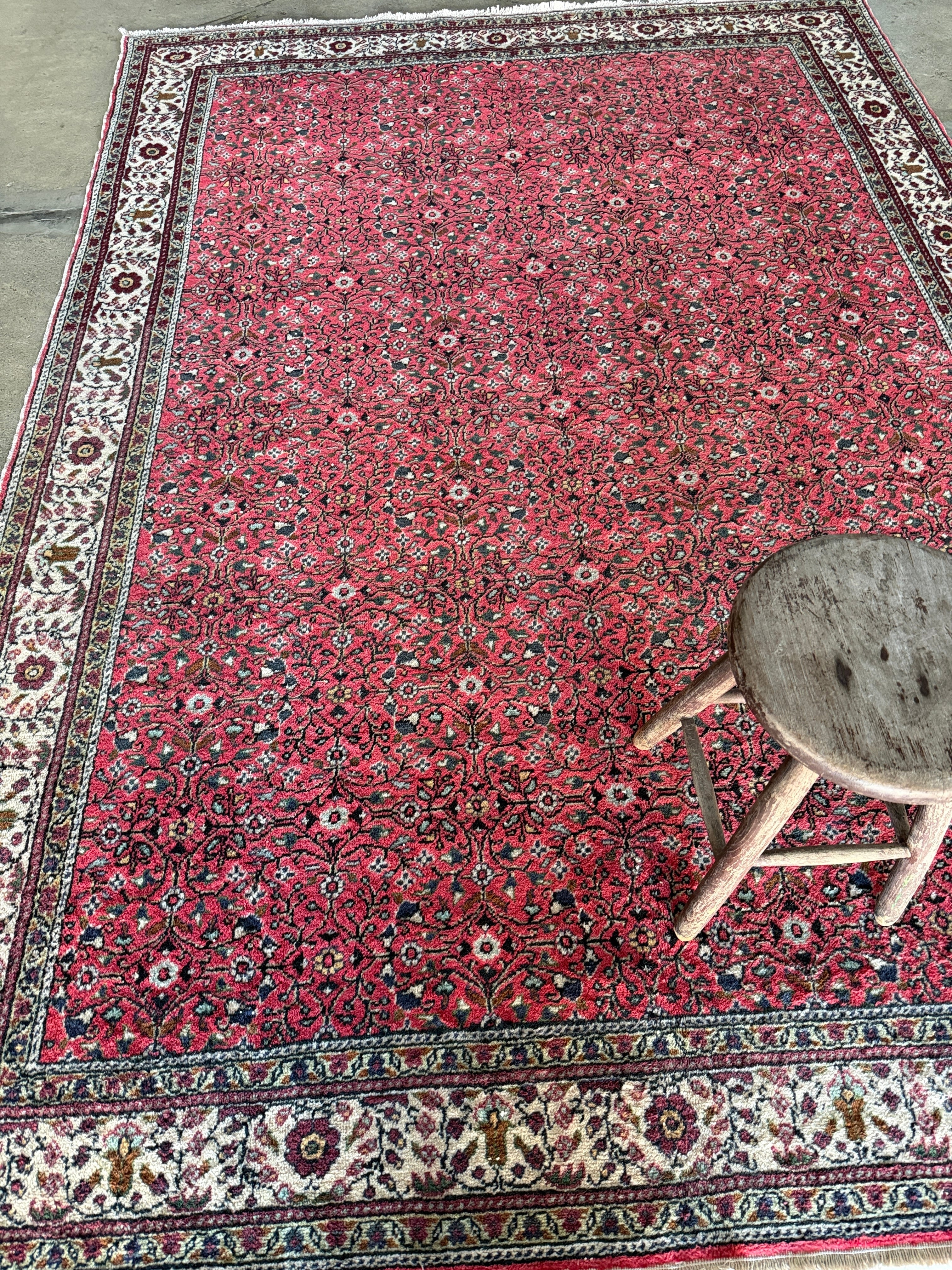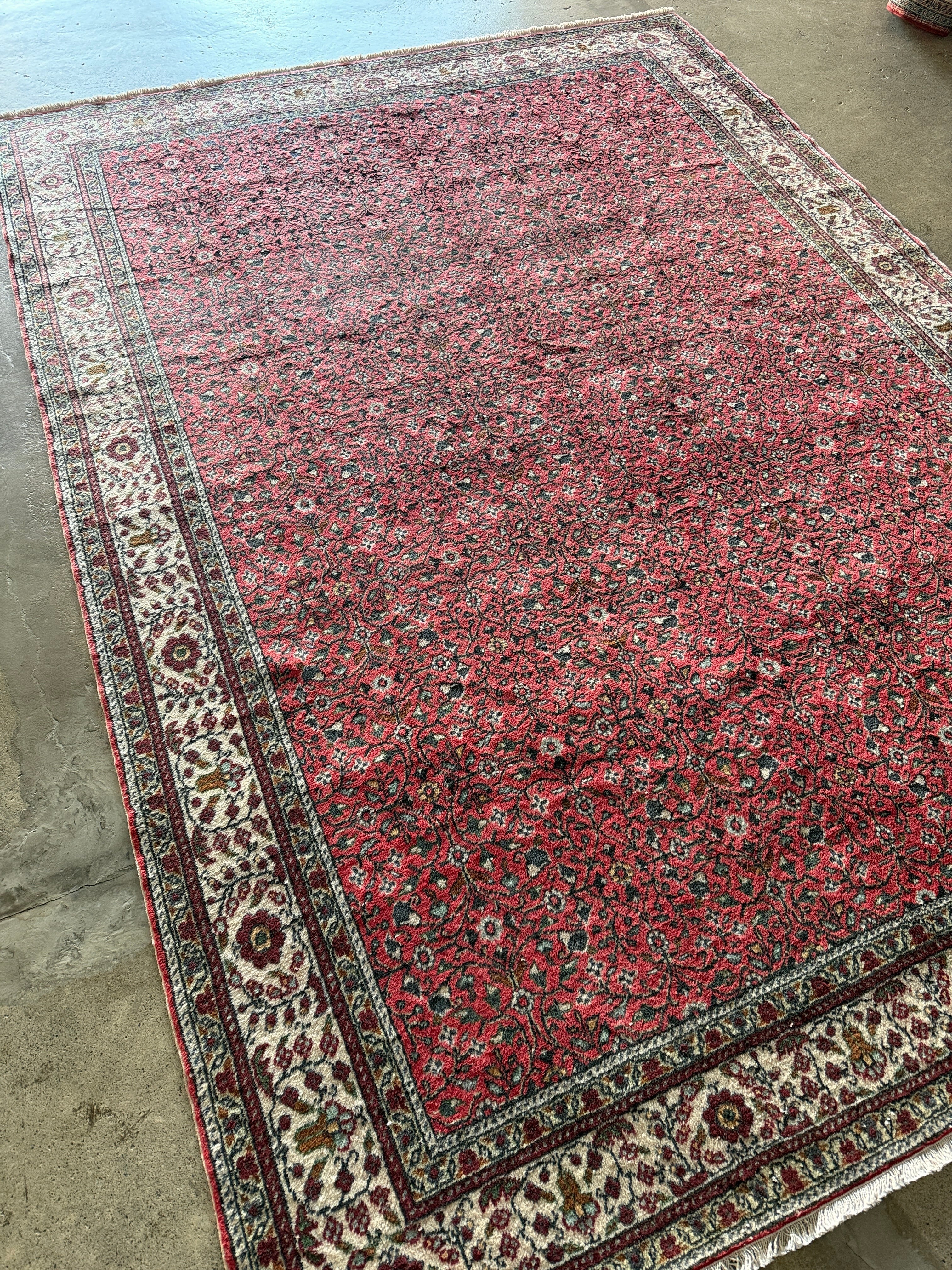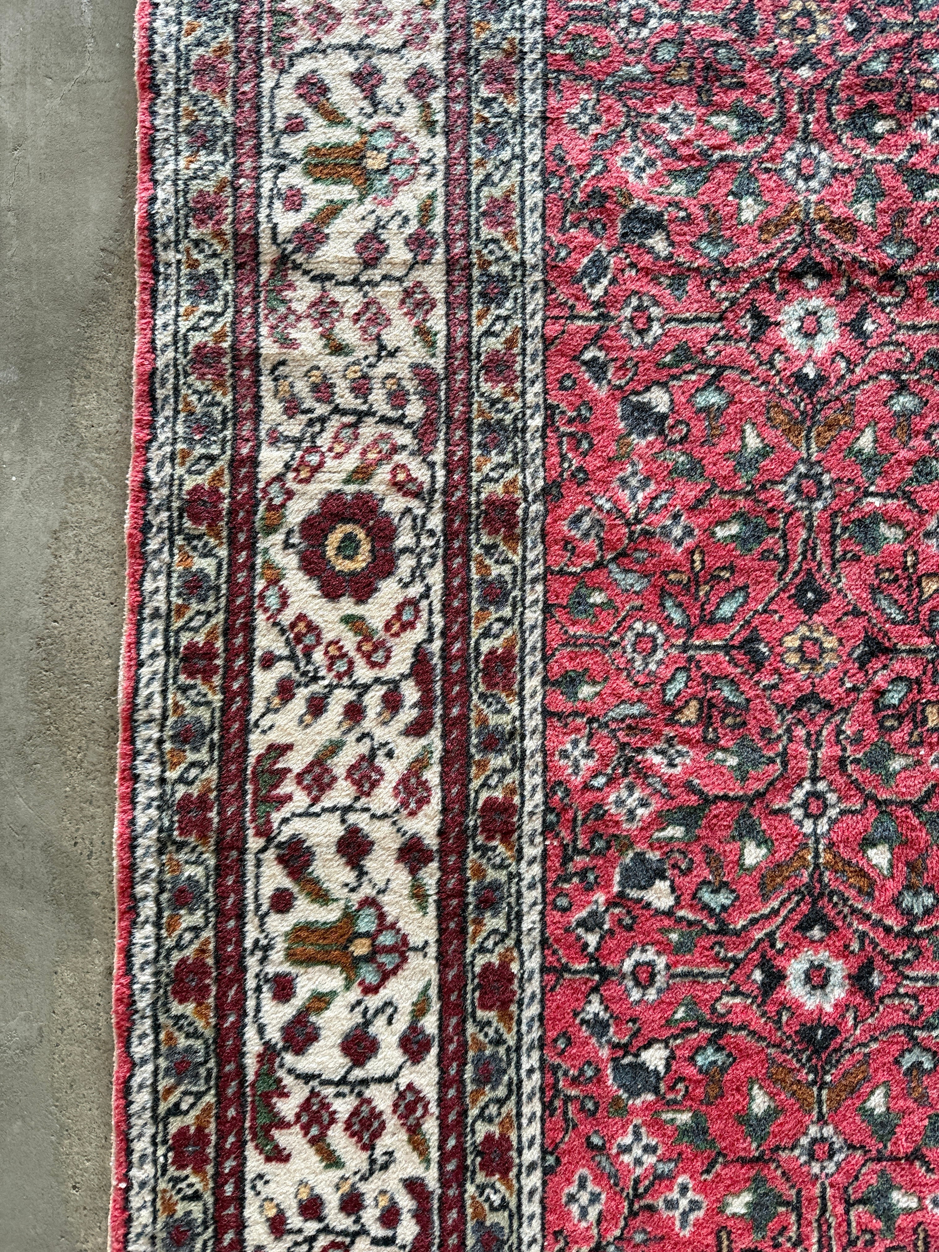 カイセリ王道の小花模様×クラシックなフューシャレッド!の可愛いらしいリビングサイズのカイセリ絨毯です。毛足も長めでやわらかくこの季節にぴったりの1枚となっております。レトロな雰囲気から古家具やアンティークとの相性も抜群かと感じております。お探しのお客様も多いデザインと色合いではないでしょうか。