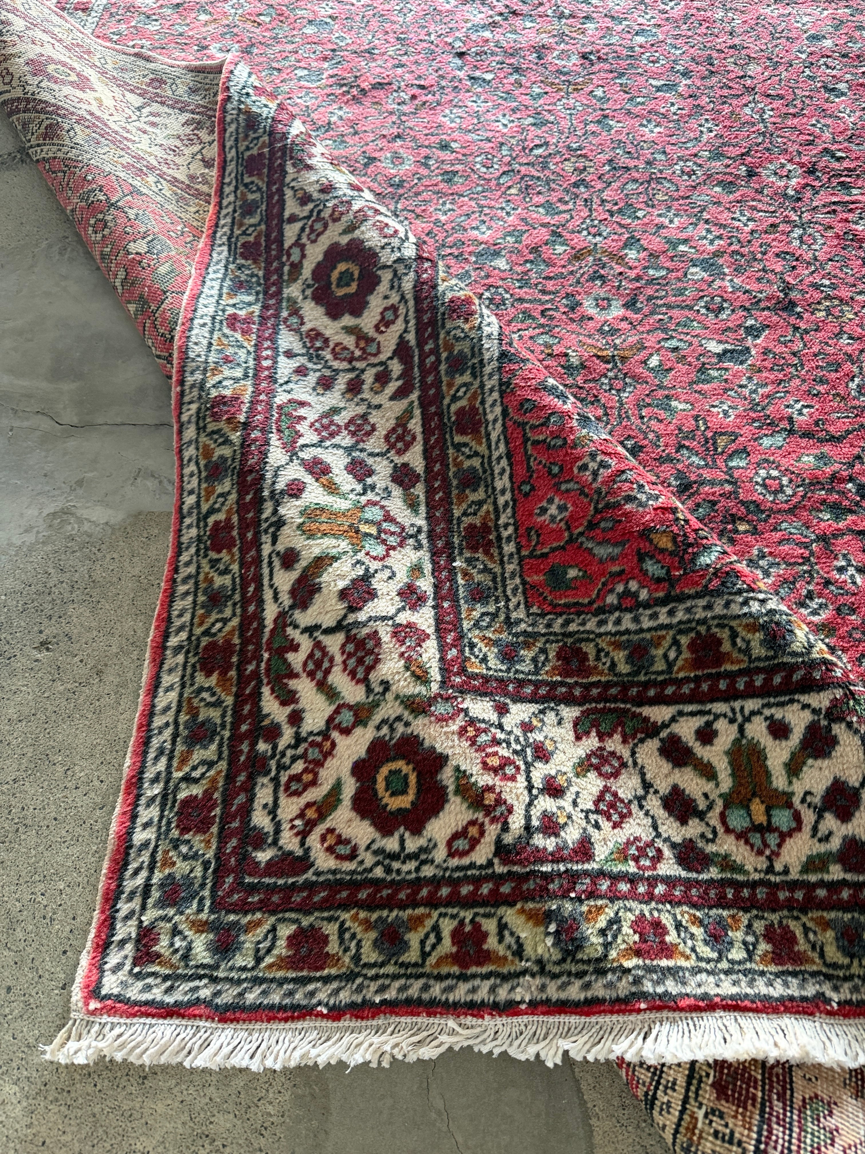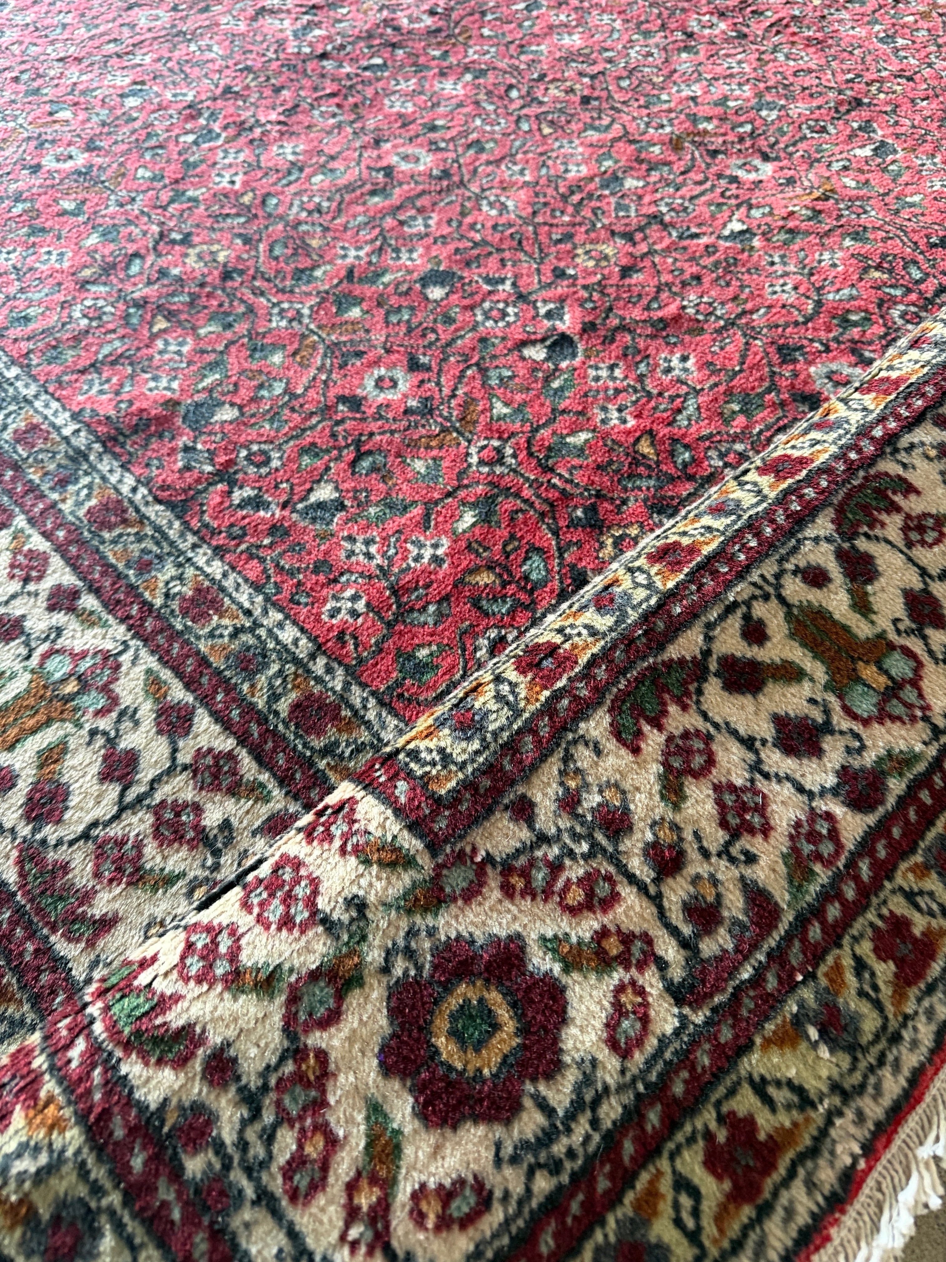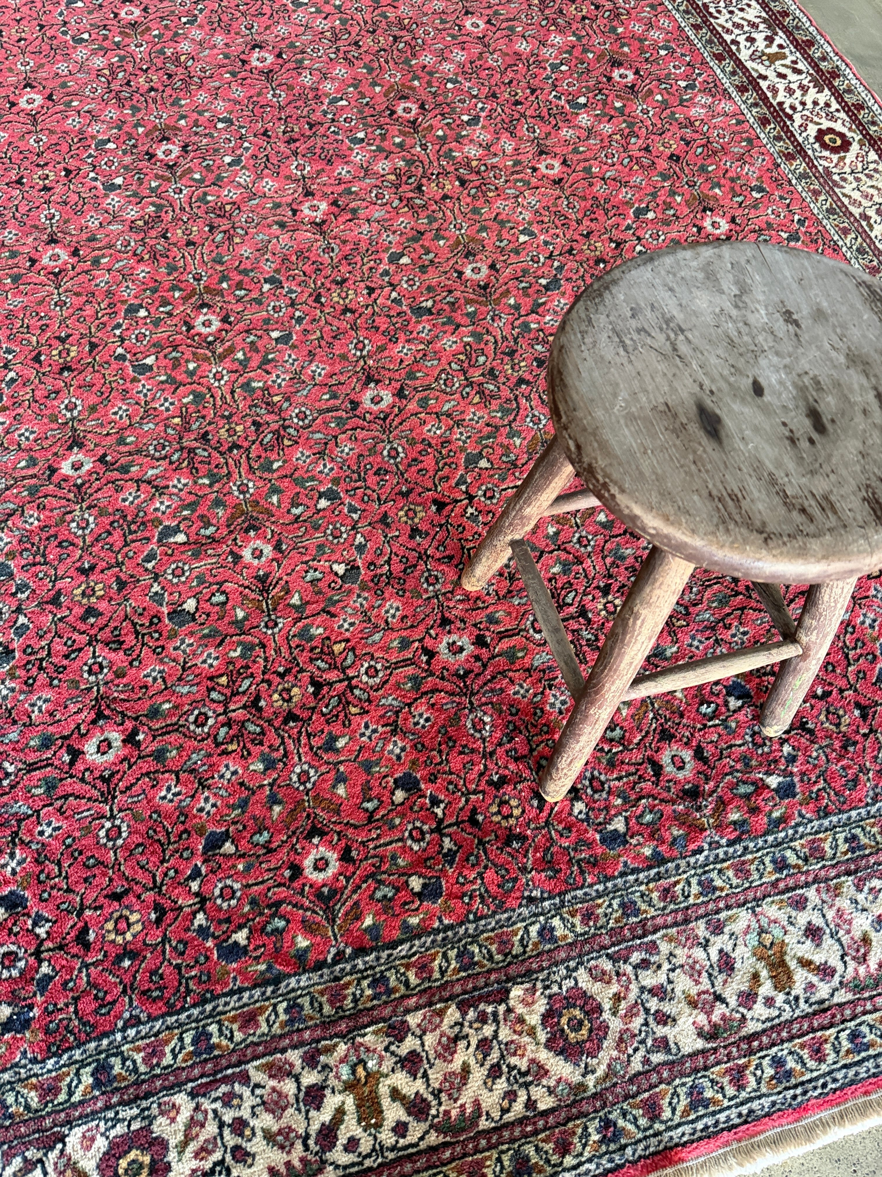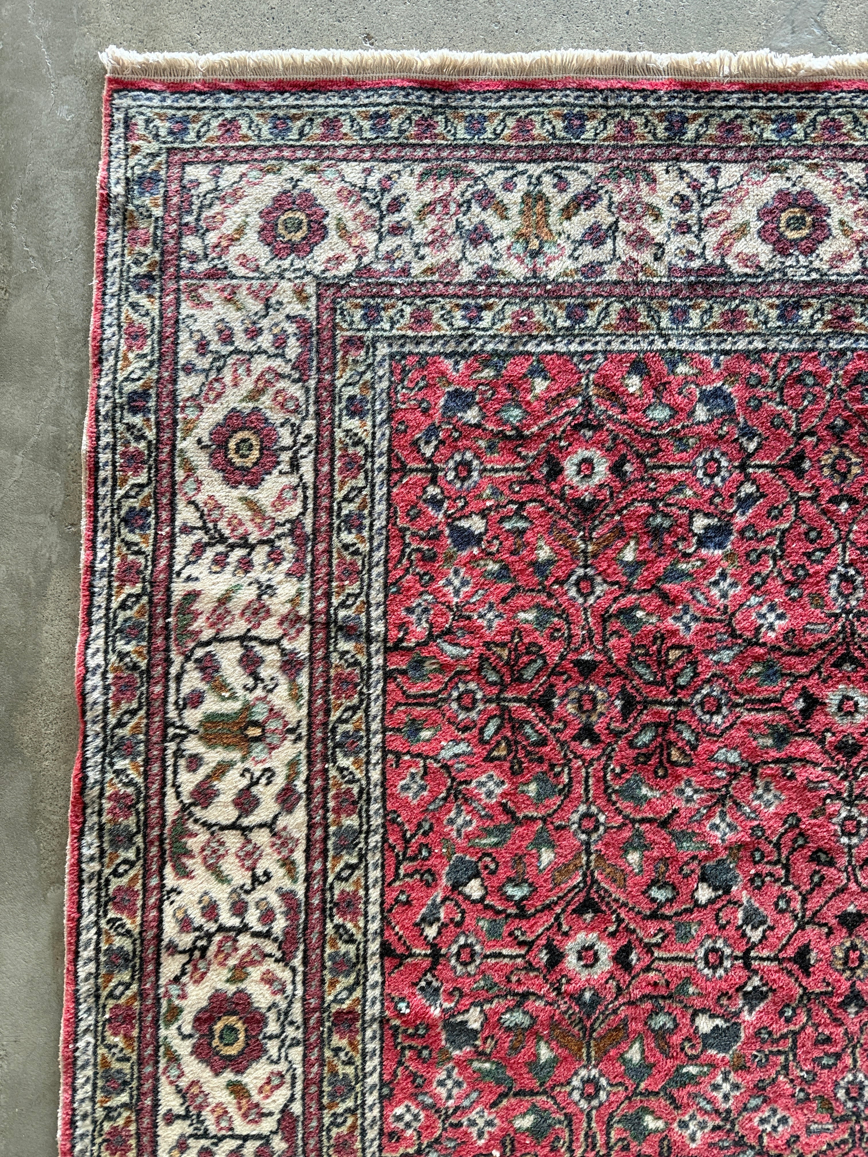 カイセリ王道の小花模様×クラシックなフューシャレッド!の可愛いらしいリビングサイズのカイセリ絨毯です。毛足も長めでやわらかくこの季節にぴったりの1枚となっております。レトロな雰囲気から古家具やアンティークとの相性も抜群かと感じております。お探しのお客様も多いデザインと色合いではないでしょうか。
