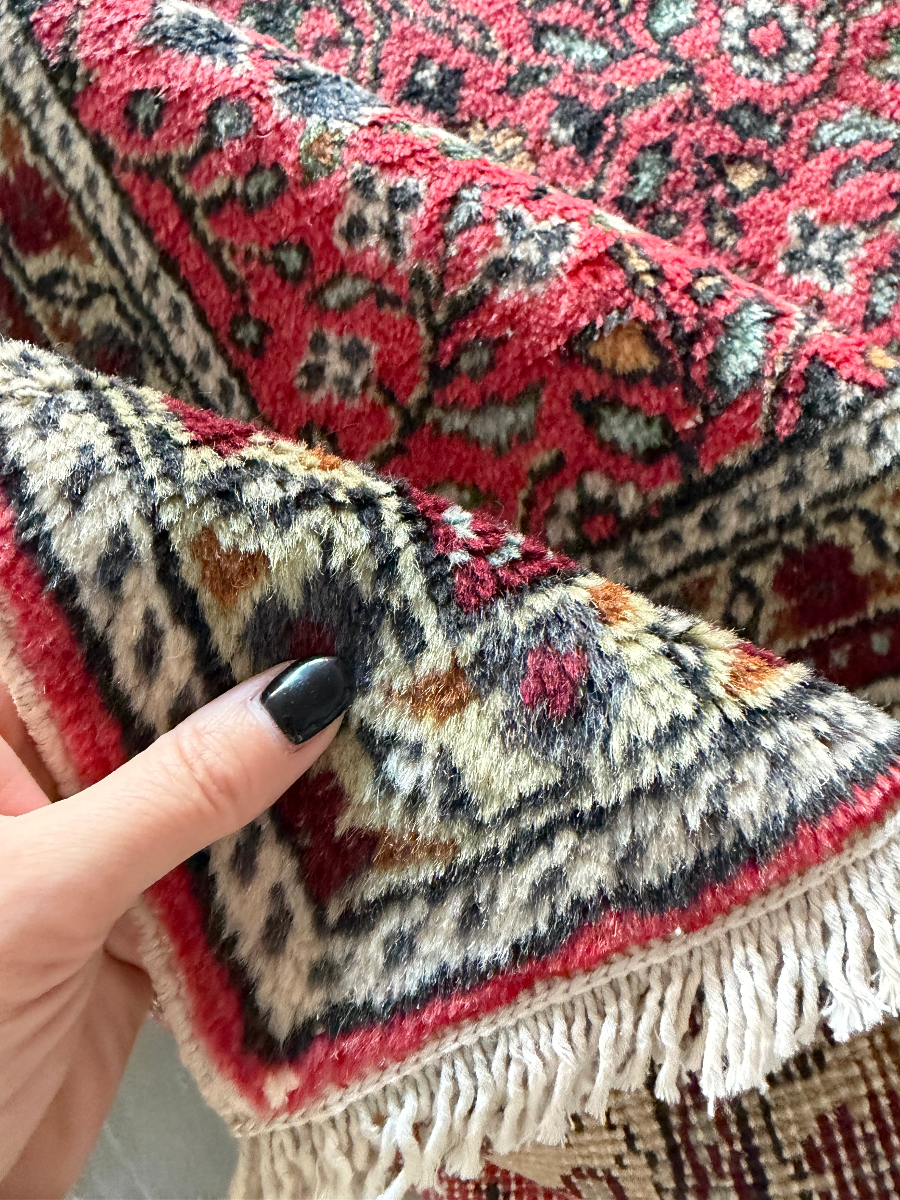 今回のカイセリ絨毯もメンテナンスも素晴らしく、ウール独特の香りも少なく(こちらは個人差がありますのでご参考まで)、さっぱりとした素晴らしい洗い上がり!初めてカイセリ絨毯ラグにチャレンジされるお客様にも自信を持っておすすめできます。ラグの基本である縦糸と横糸はコットンなので通気性も良くオールシーズン快適にお使いいただけます。