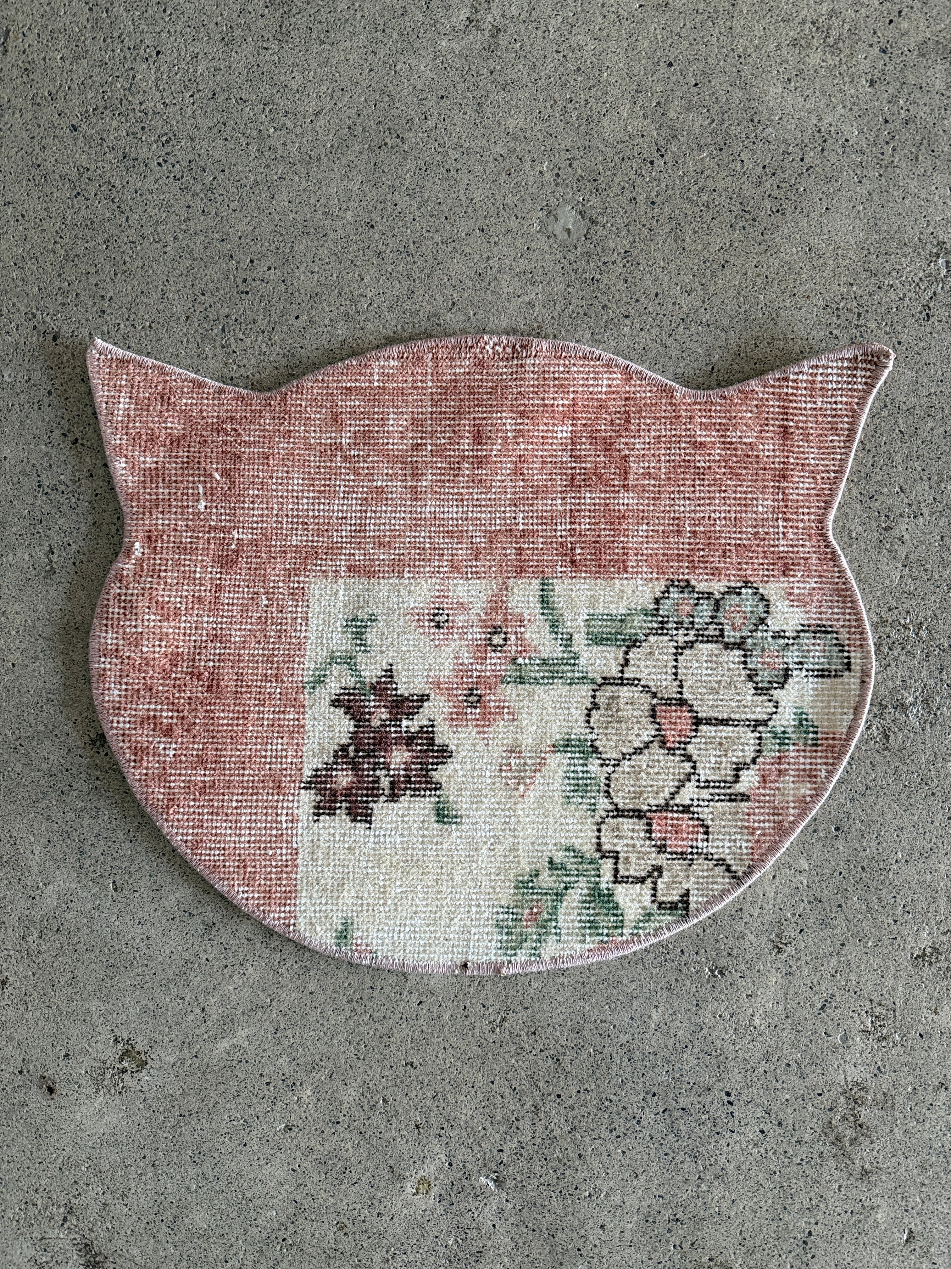 こちらはAntiques&Crafts880オリジナルオーダーメイドのキャットマットです。猫ちゃんのご飯用、お昼寝用マット等にオススメ!可愛い猫型デザインはお部屋に置いておくだけでも可愛いアイテムです♪ 猫ちゃんに似合う1枚をお探しいただけますと幸いです。