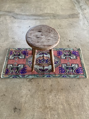 スモールサイズのヴィンテージラグは、玄関マットに人気があります。猫との暮らしで考えると彼らのトイレ用マットやご飯マット、お昼寝マットとしてお使いいただくのがオススメです!我が家もトイレ用マットとして愛用中。トイレ後の砂の飛び散りをカバーしてくれるのでお掃除が楽チンです!