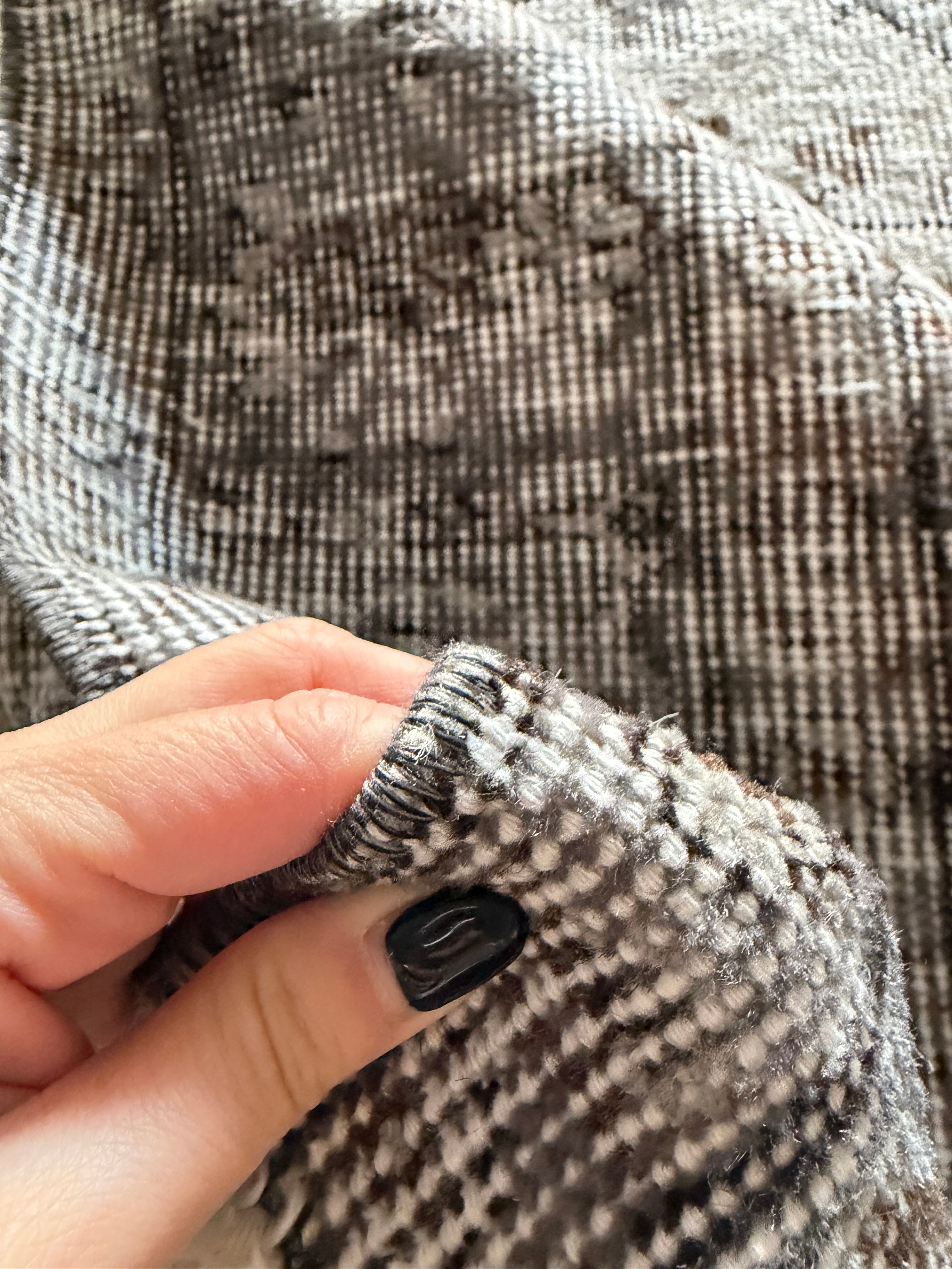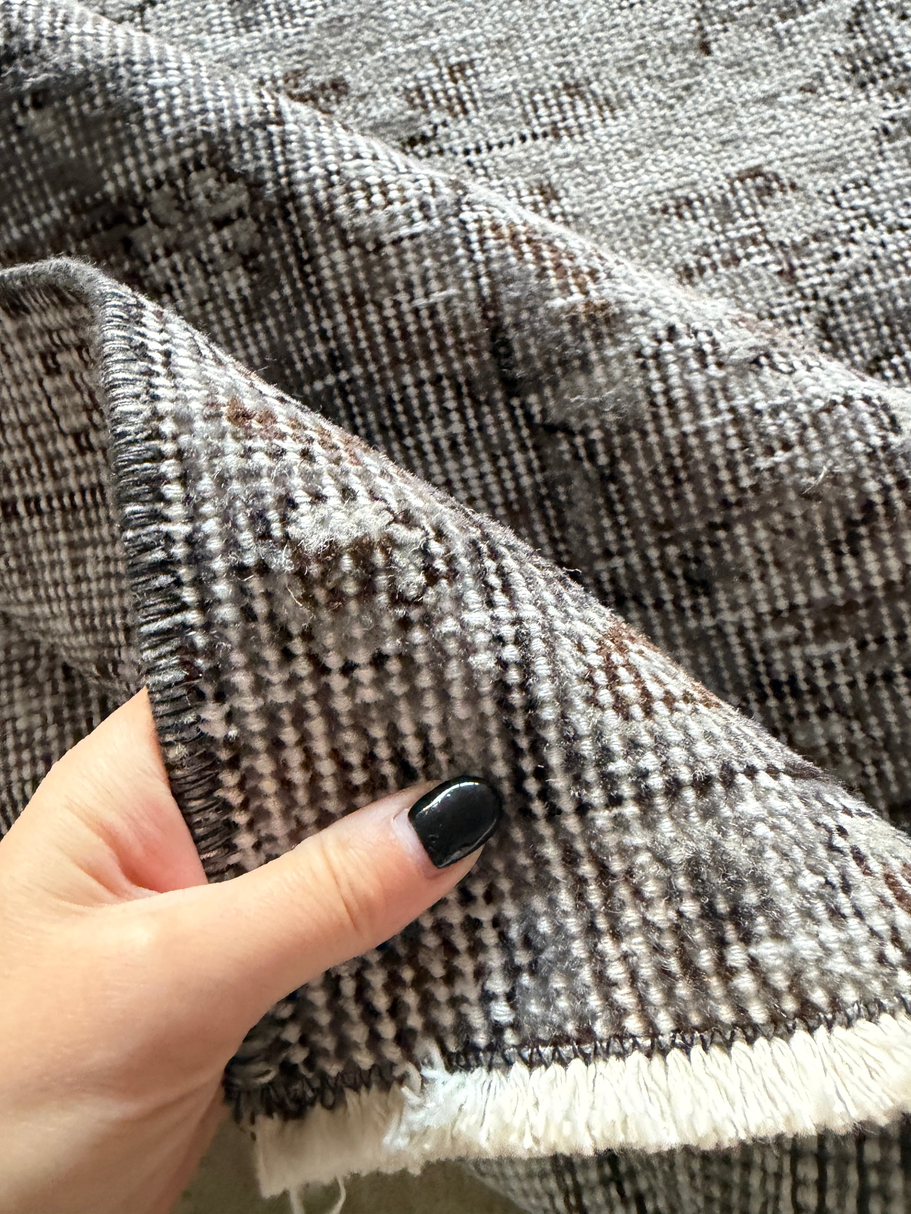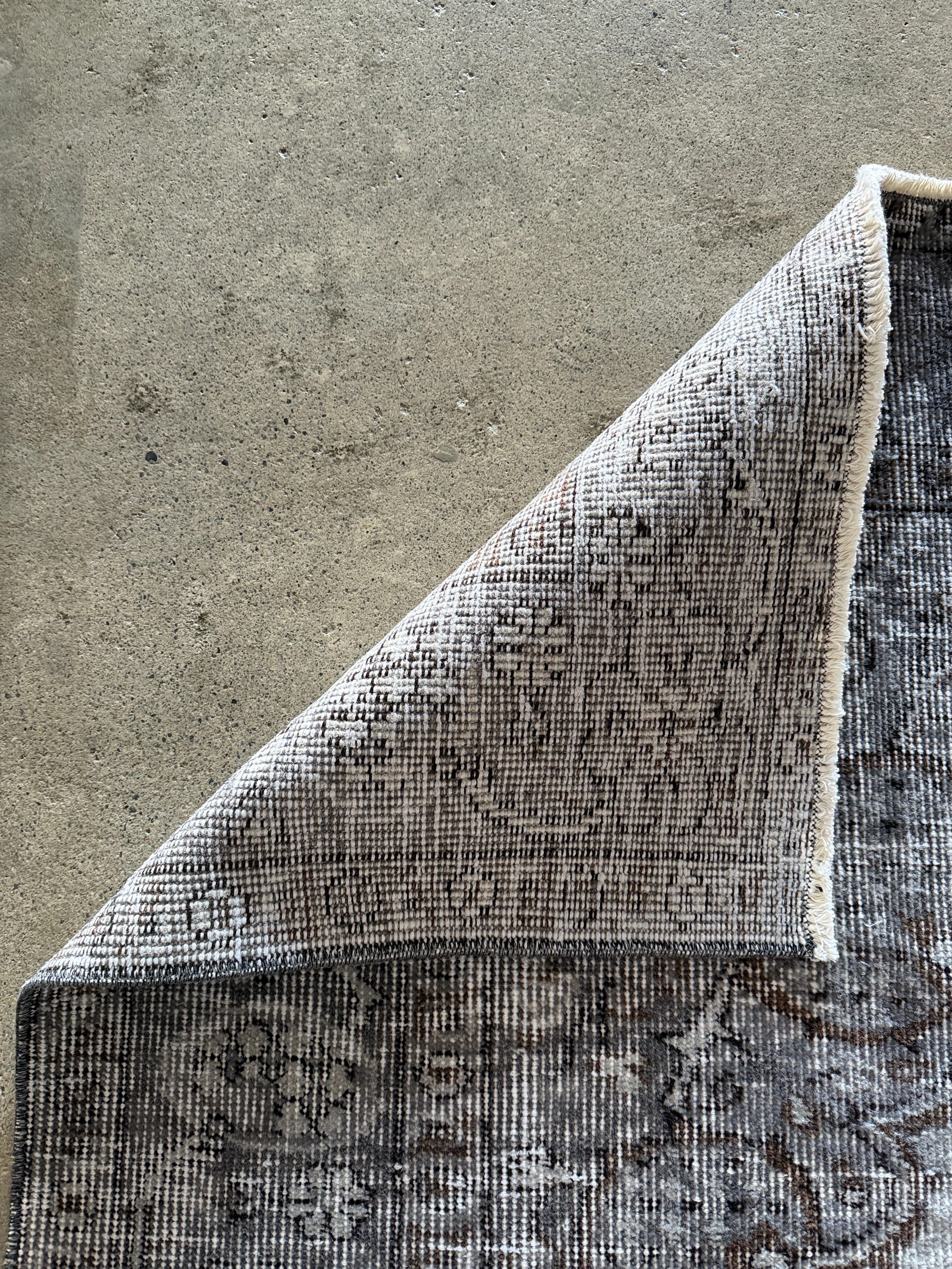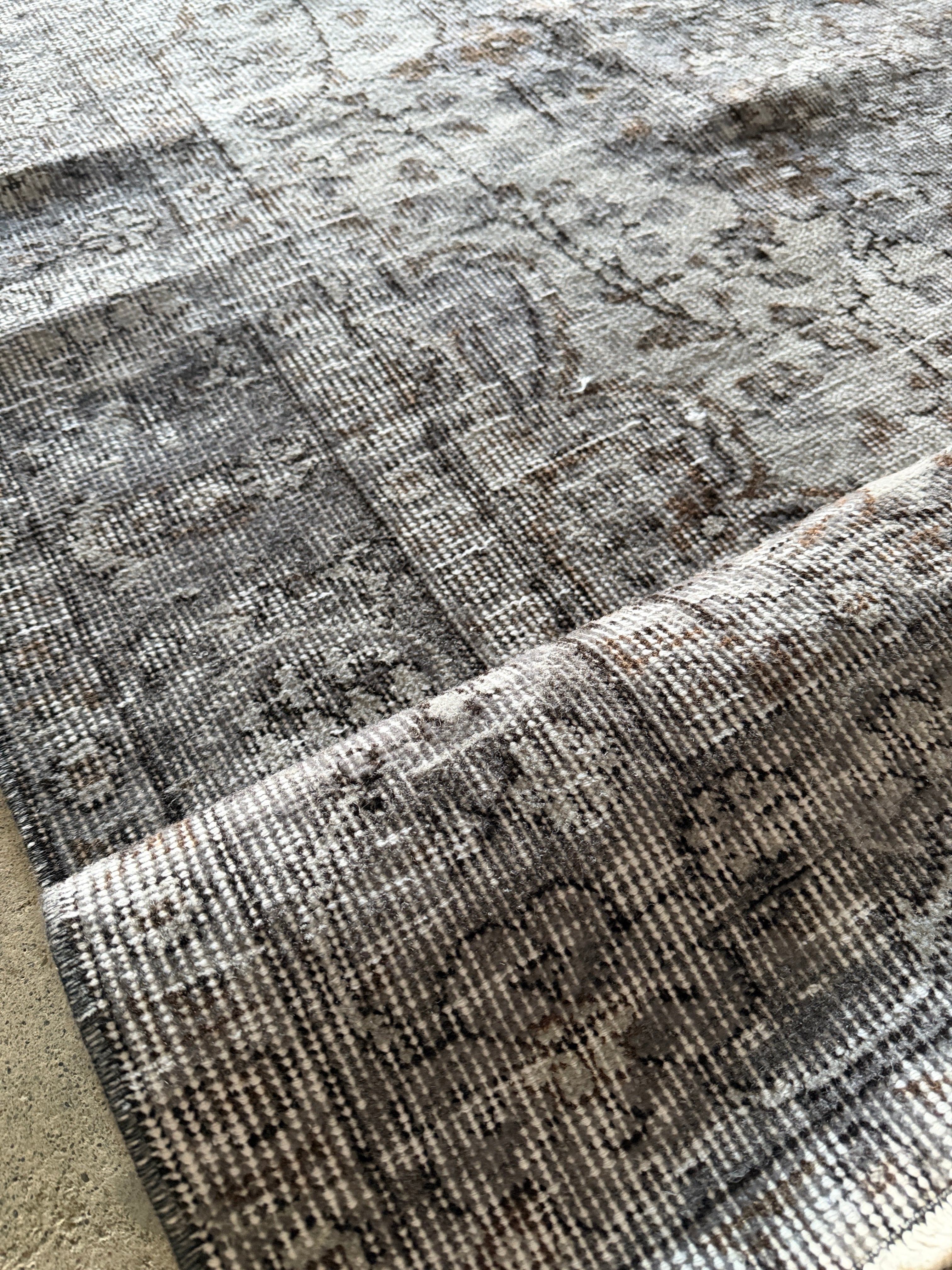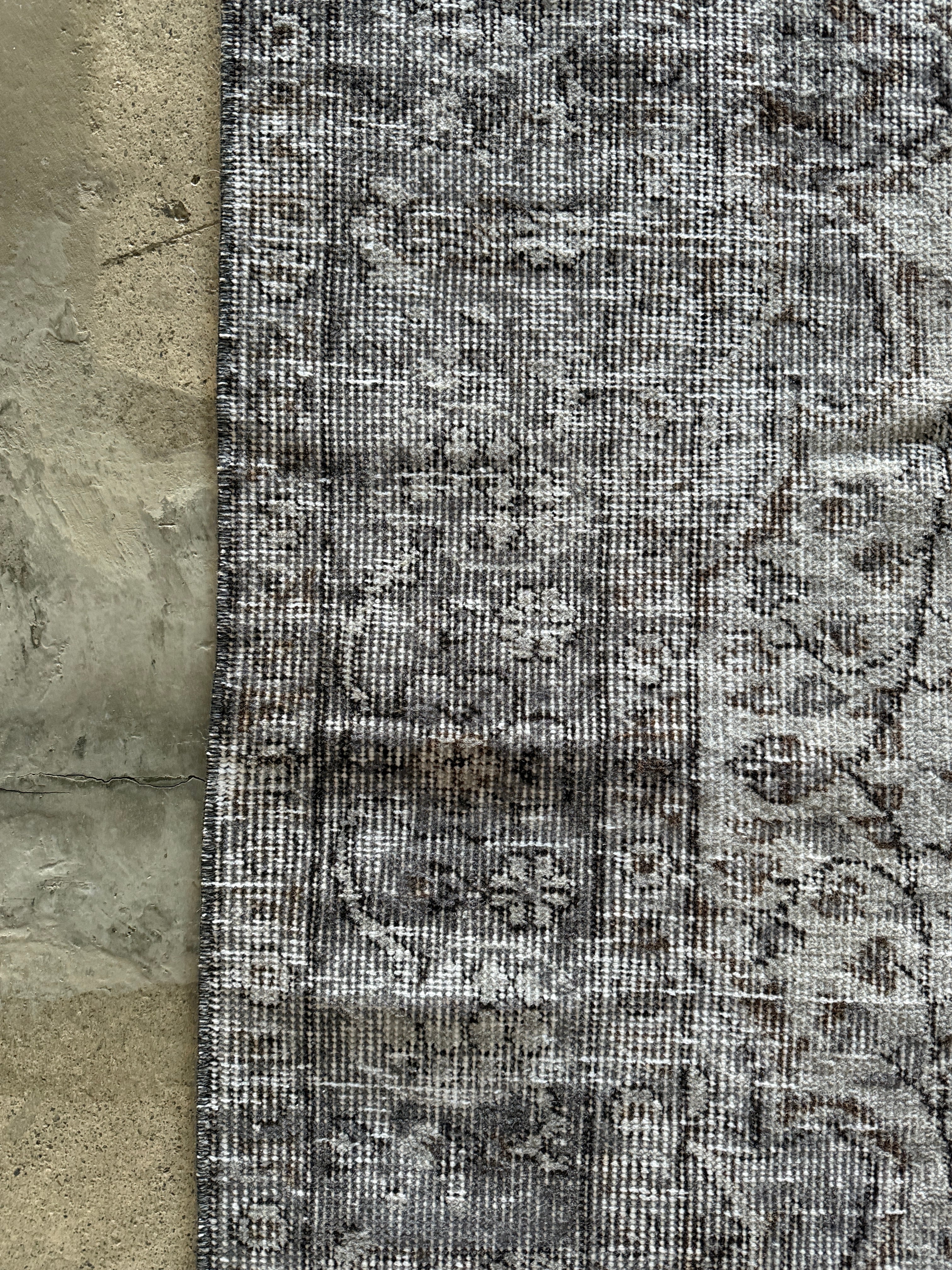 明るめのグレーにクラッシックなメダリオンという王道で人気のデザインに仕上がった1枚。グレーは使うって行くうちに、日が良く当たる場所は色合いが変化したり、良く歩く場所にはスレ感が生まれたり(デニムのようなイメージです)私はオーバーダイは暮らしの中で育てていく楽しさを感じられるラグだと思います。