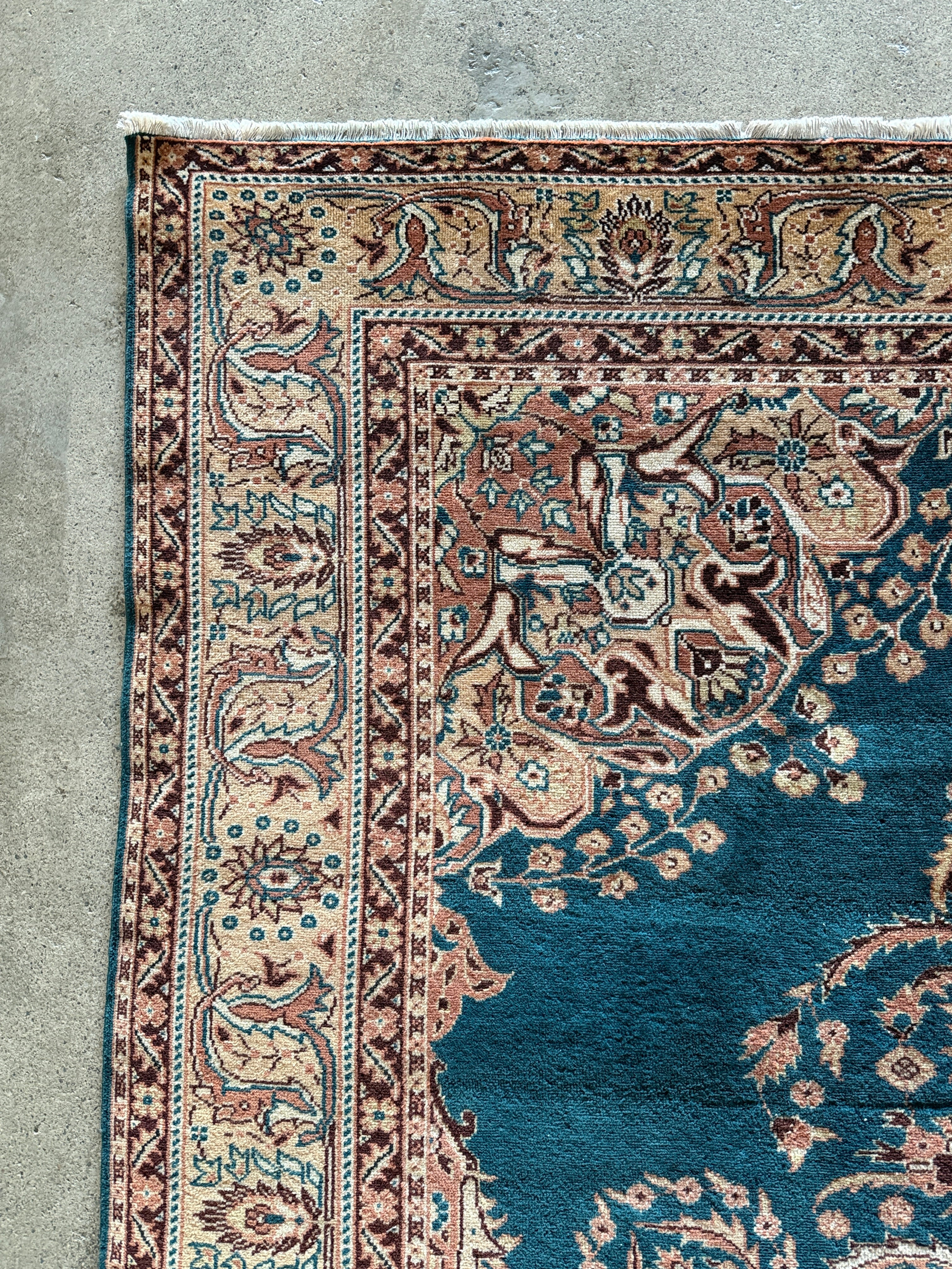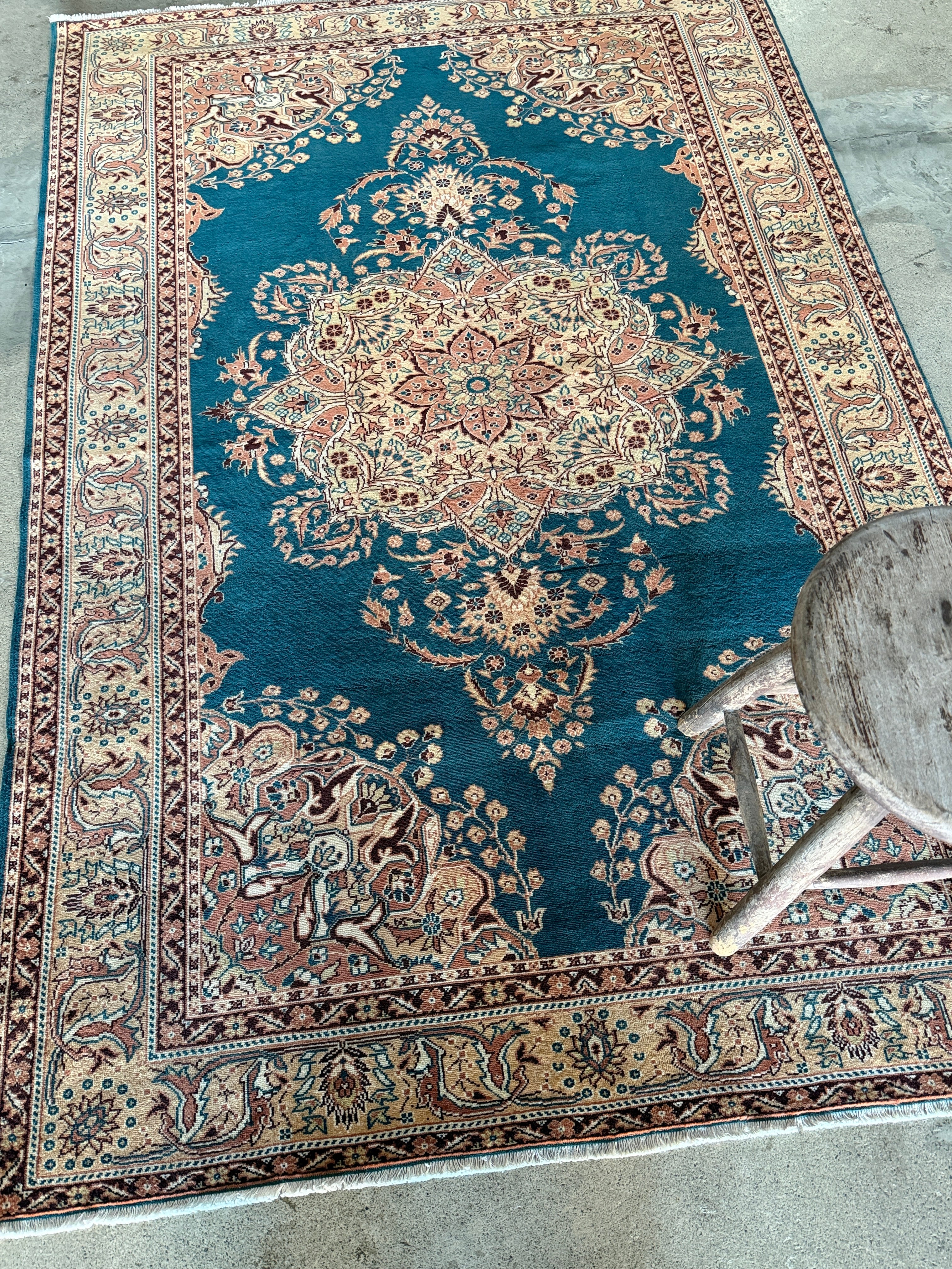 イスラム教のモスクでも使われる美しいブルーの色合いは、とても神聖で高貴な色とされています。花模様に囲まれた華やかで上品なメダリオンも存在感があります。このように鮮やかなブルーのカイセリ絨毯は非常にめずらしく貴重な1枚です。パイルの状態も良く表面も滑らかで艶が感じられます!