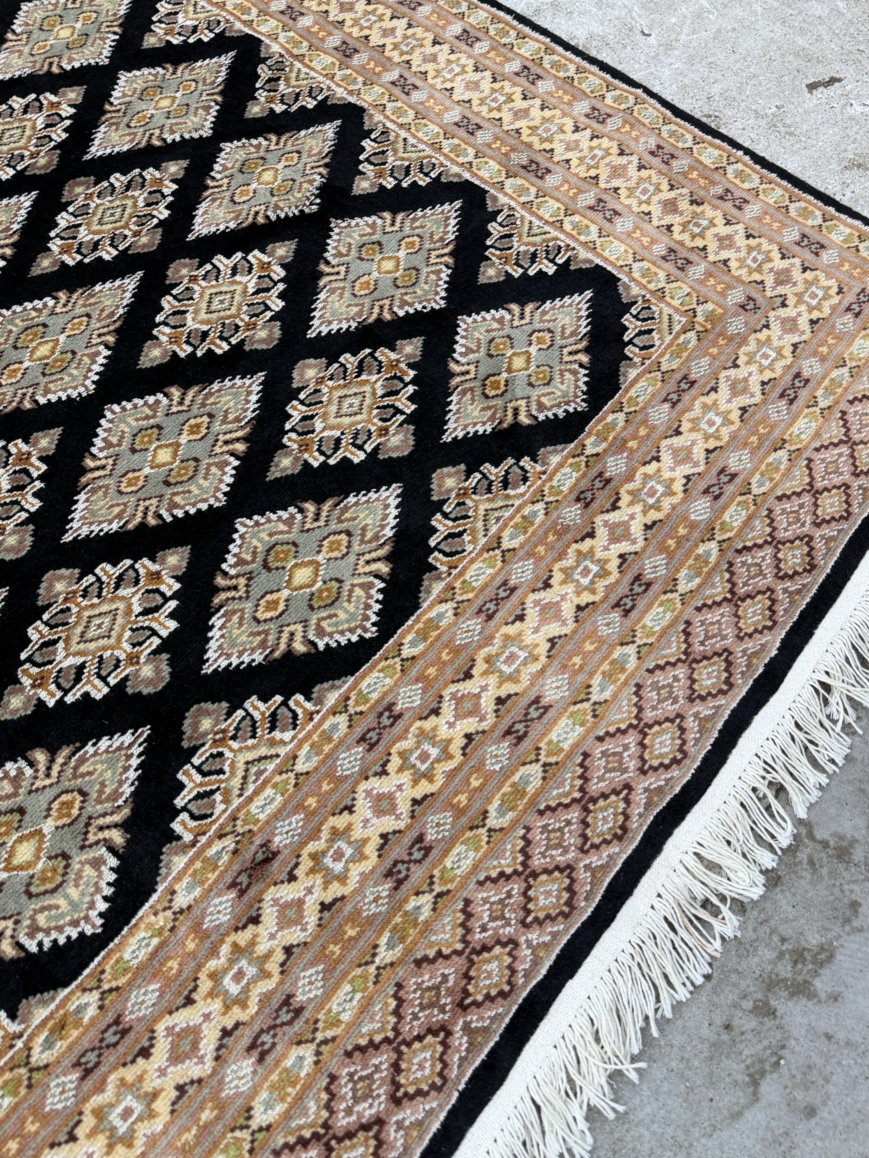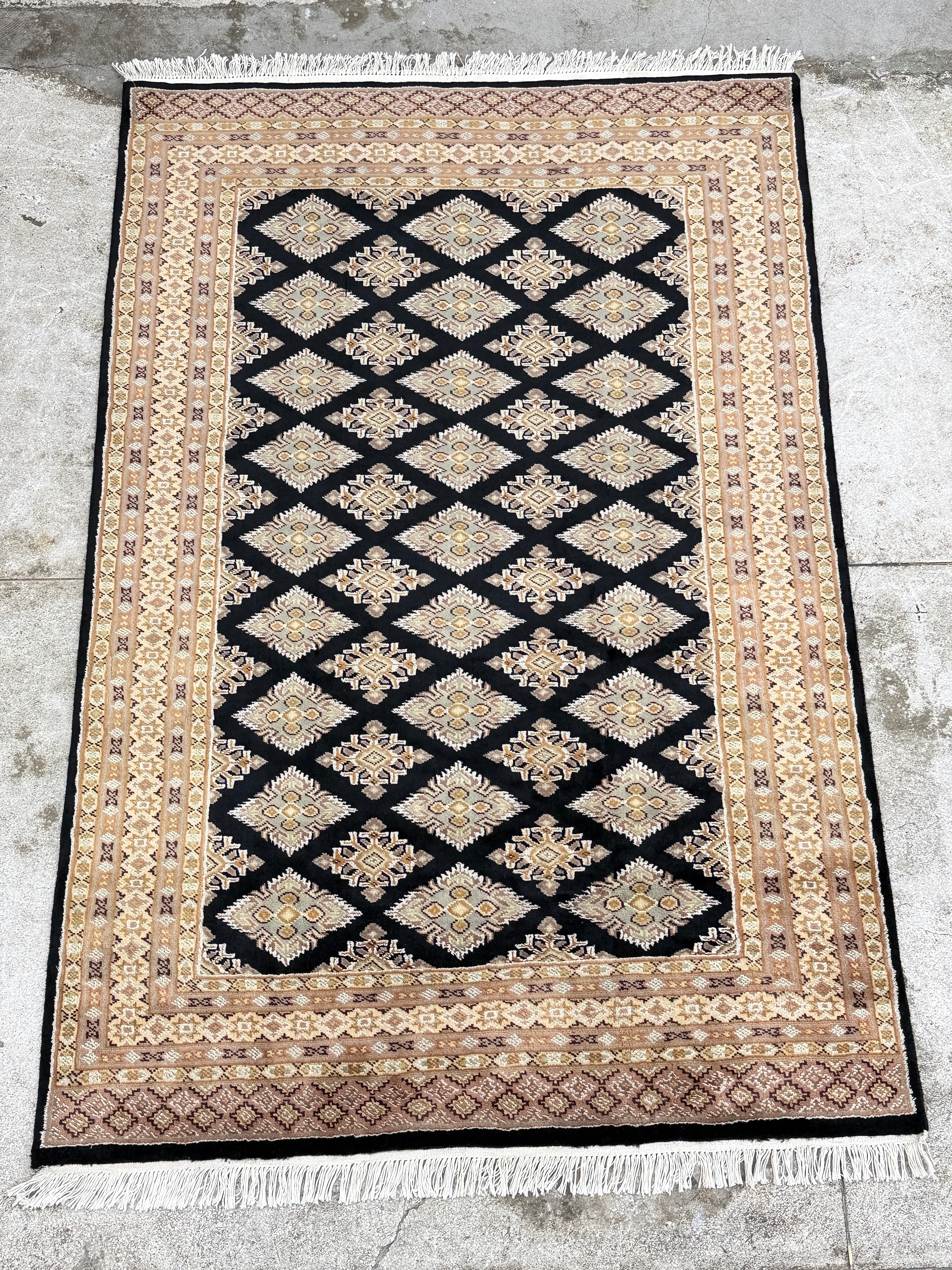 パキスタンの伝統的なトライバルデザインが美しい絨毯から今年も貴重な待望の<ブラック>が入荷しました!2000年代に生産されたデッドストック絨毯(未使用品)となりますので品質もGOOD!