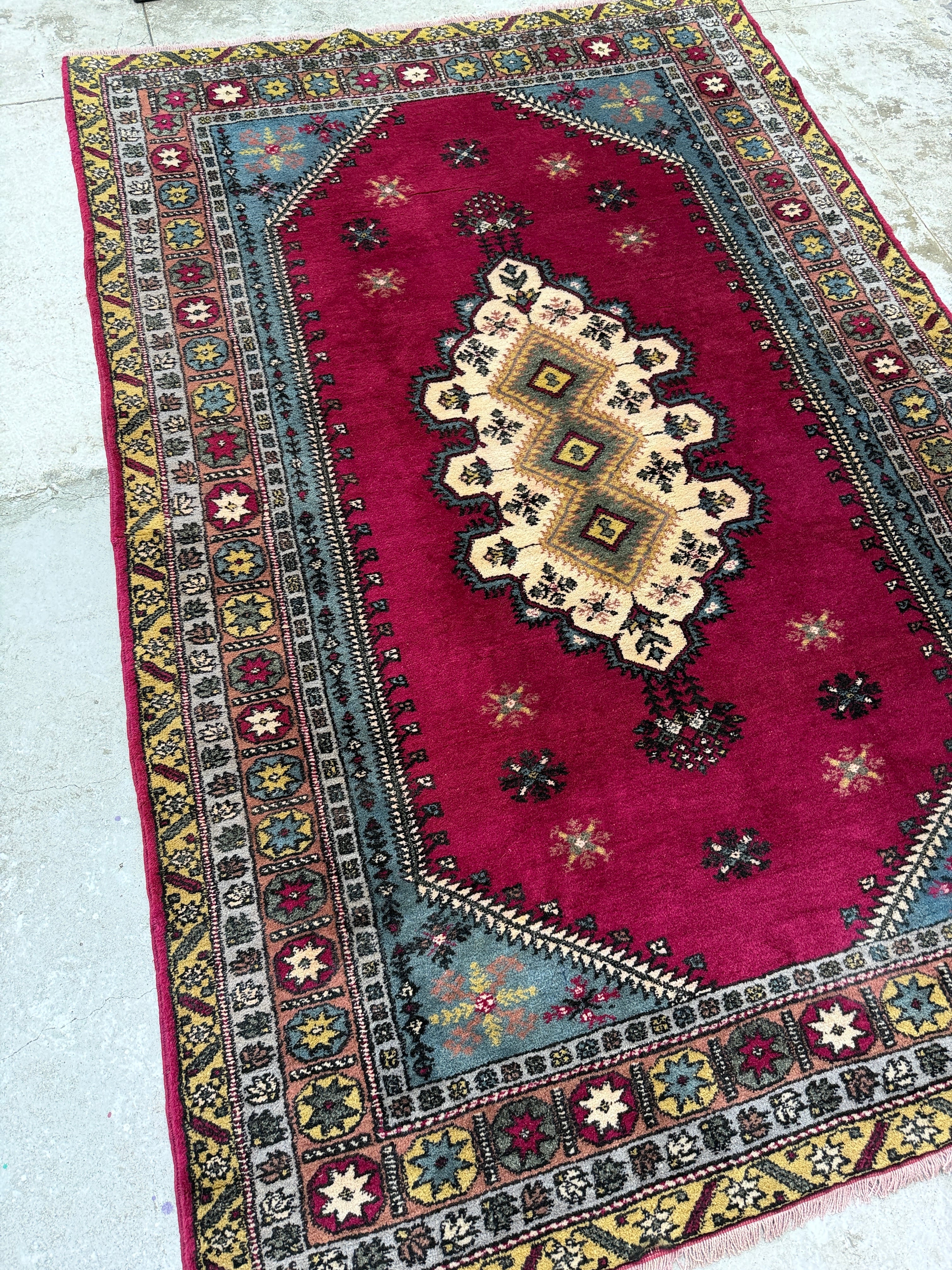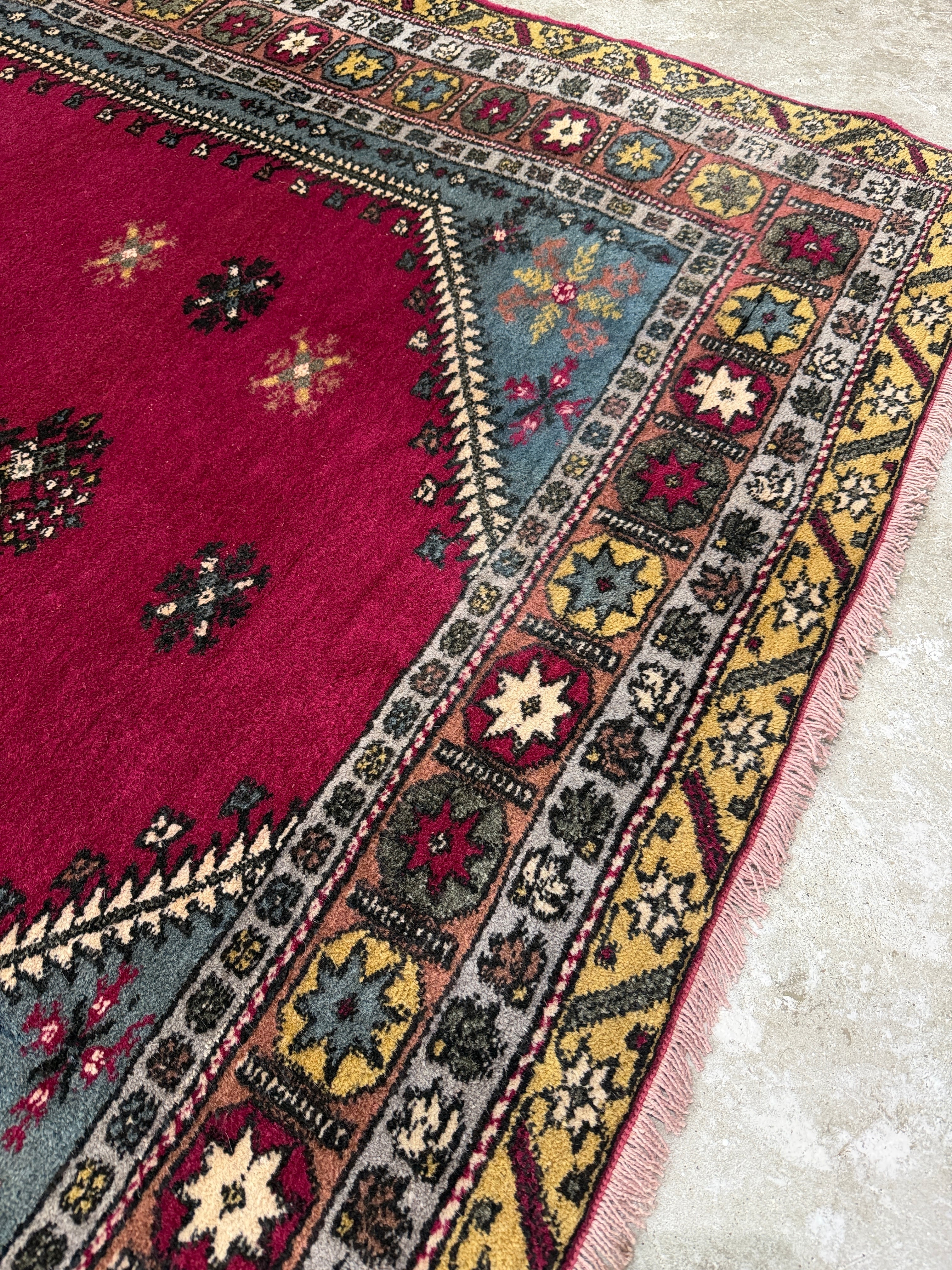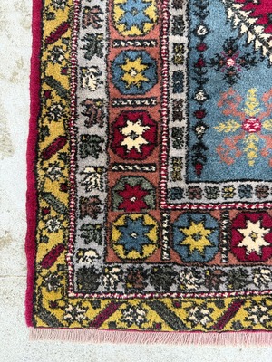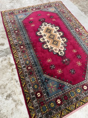 トルコの南西部のエーゲ海に近い街、クラで織られた絨毯。こちらはめずらしいデッドストック(未使用品)です!