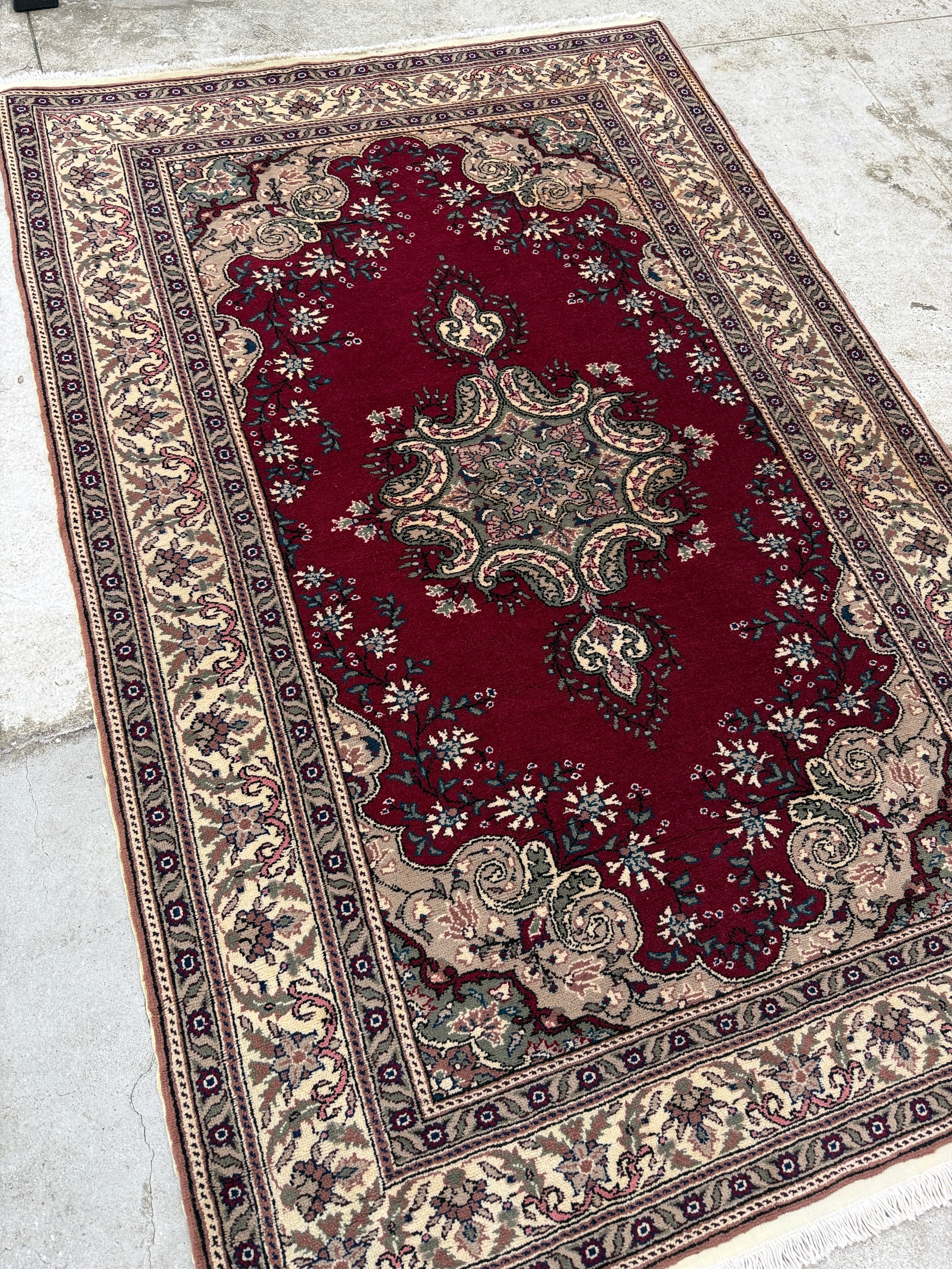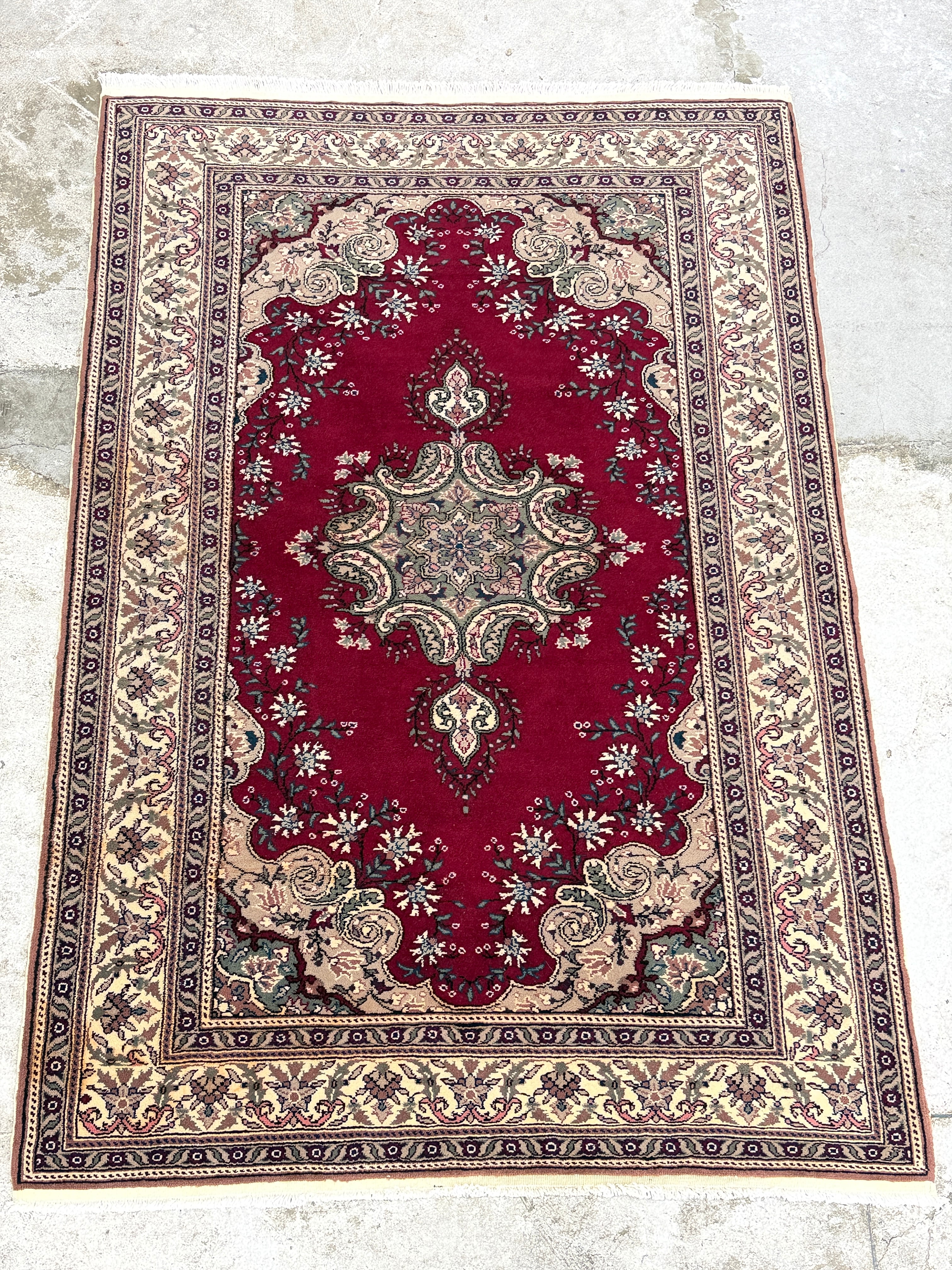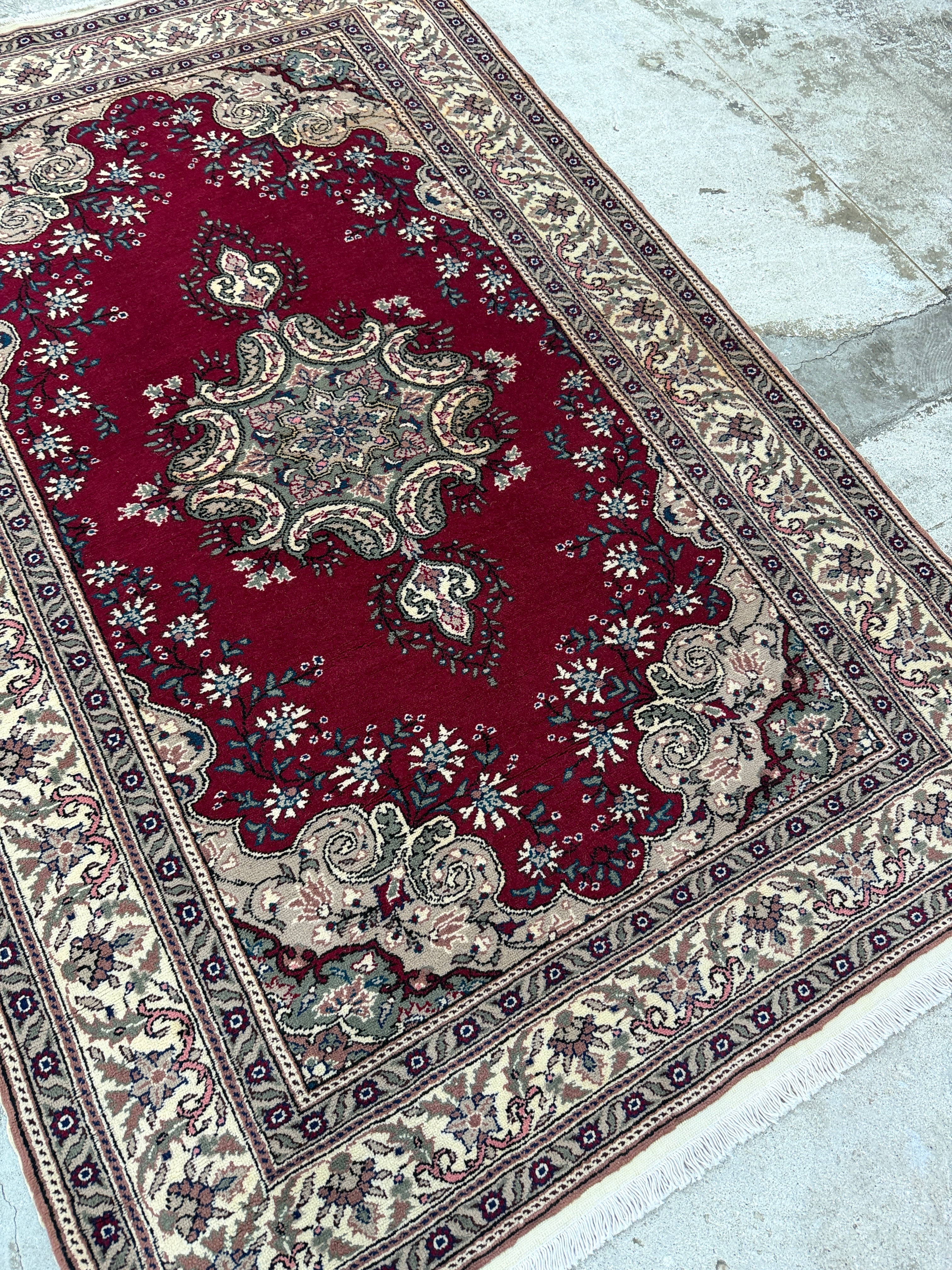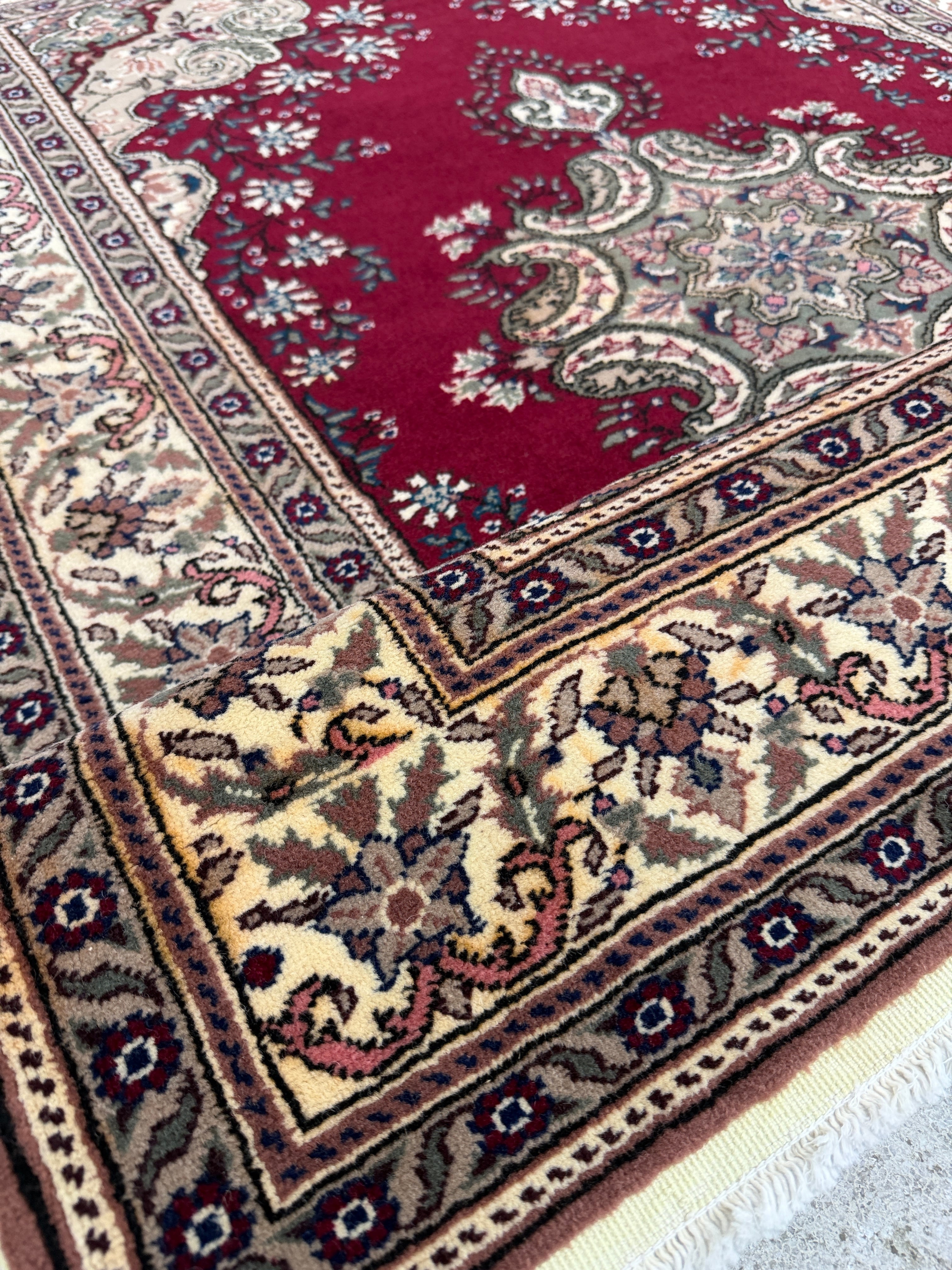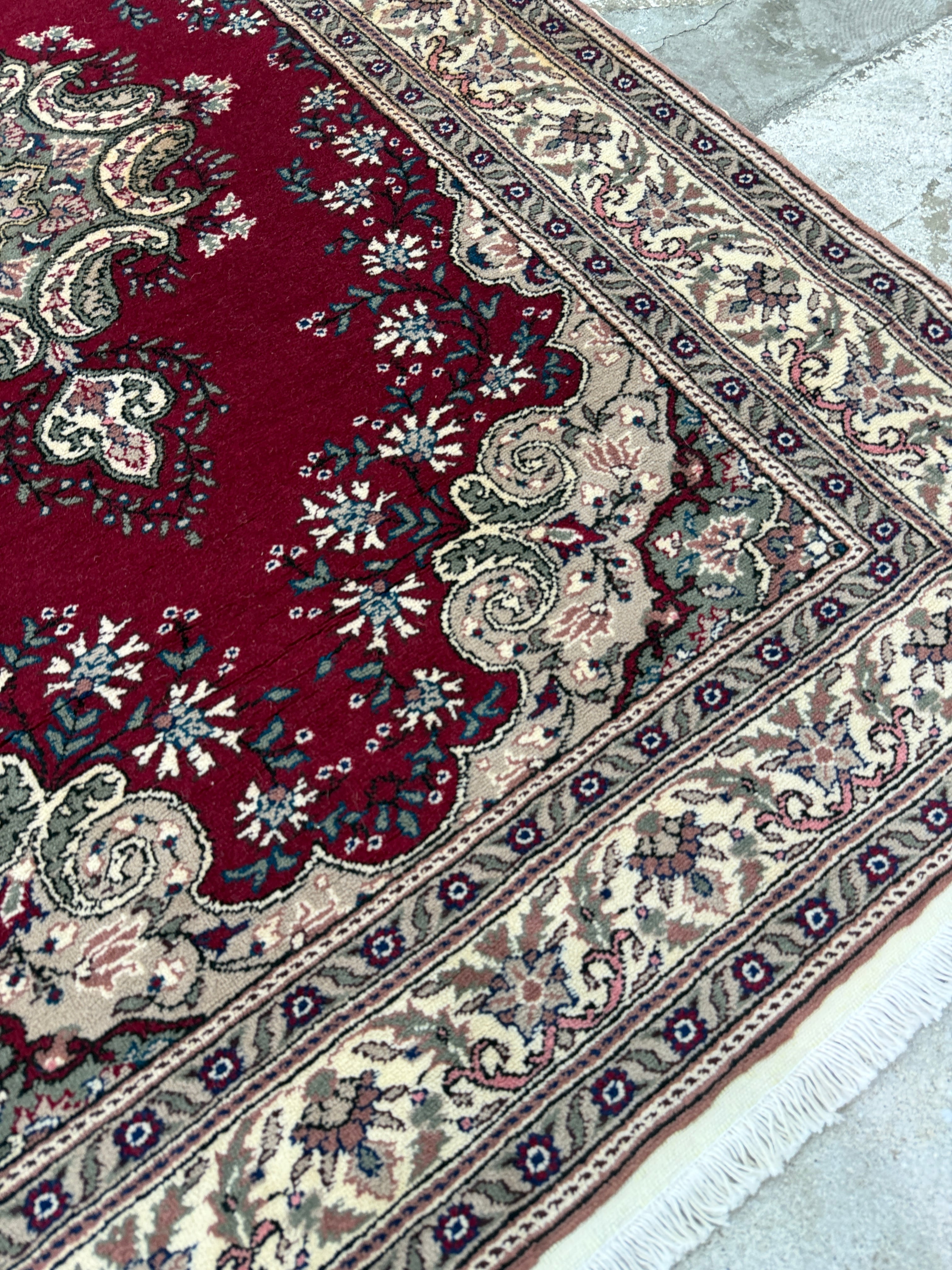 人気のデッドストック(未使用品)の中でも最高級の品質を誇る素晴らしい1枚です。深いレッドに上品な花模様。クラッシックな王道の絨毯でありながら、レトロさも感じる美しい絨毯です。重厚感と滑らかさがワンランク上の品質を感じさせてくれます!なかなか出会えない奇跡のデッドストックです。