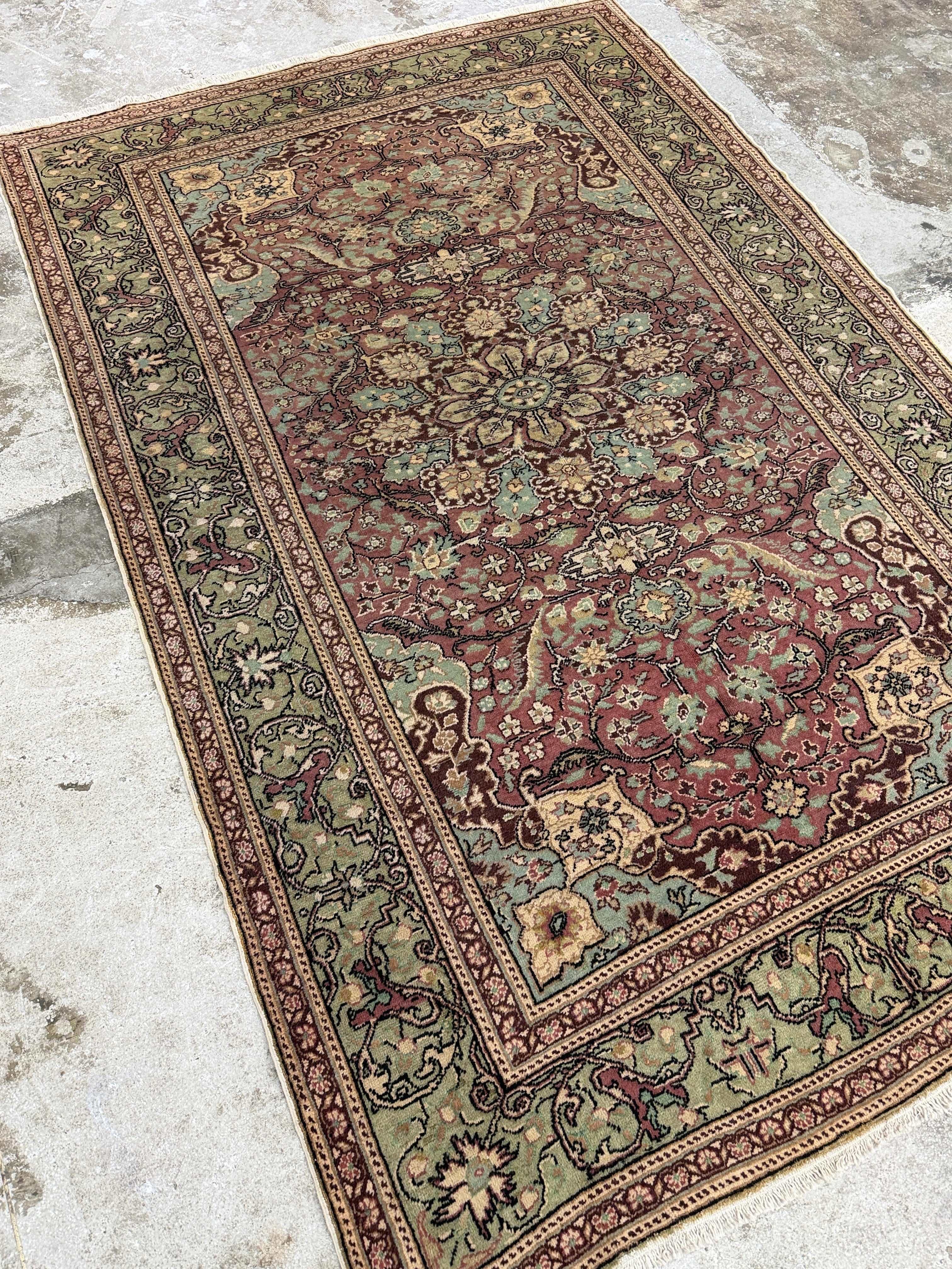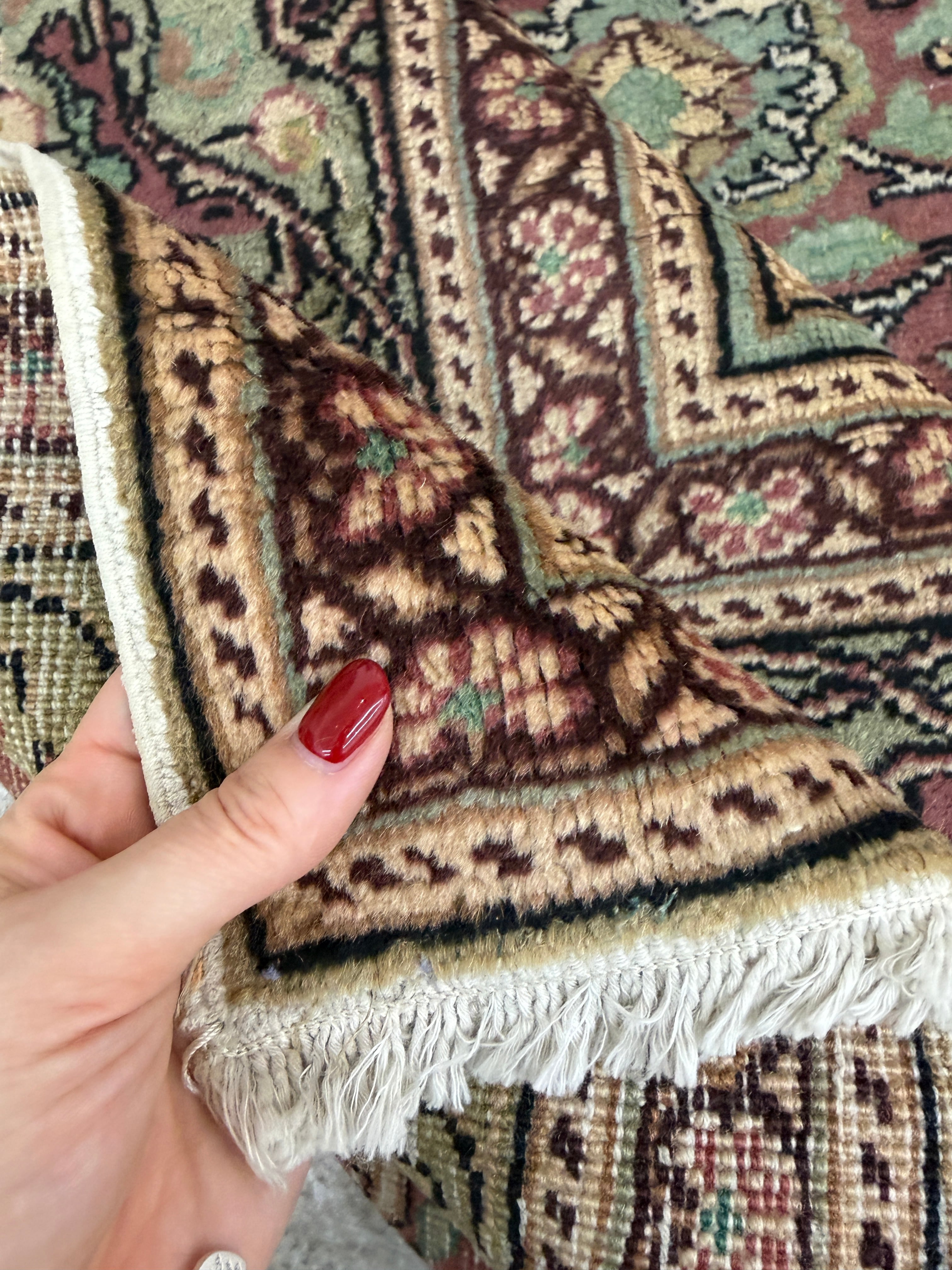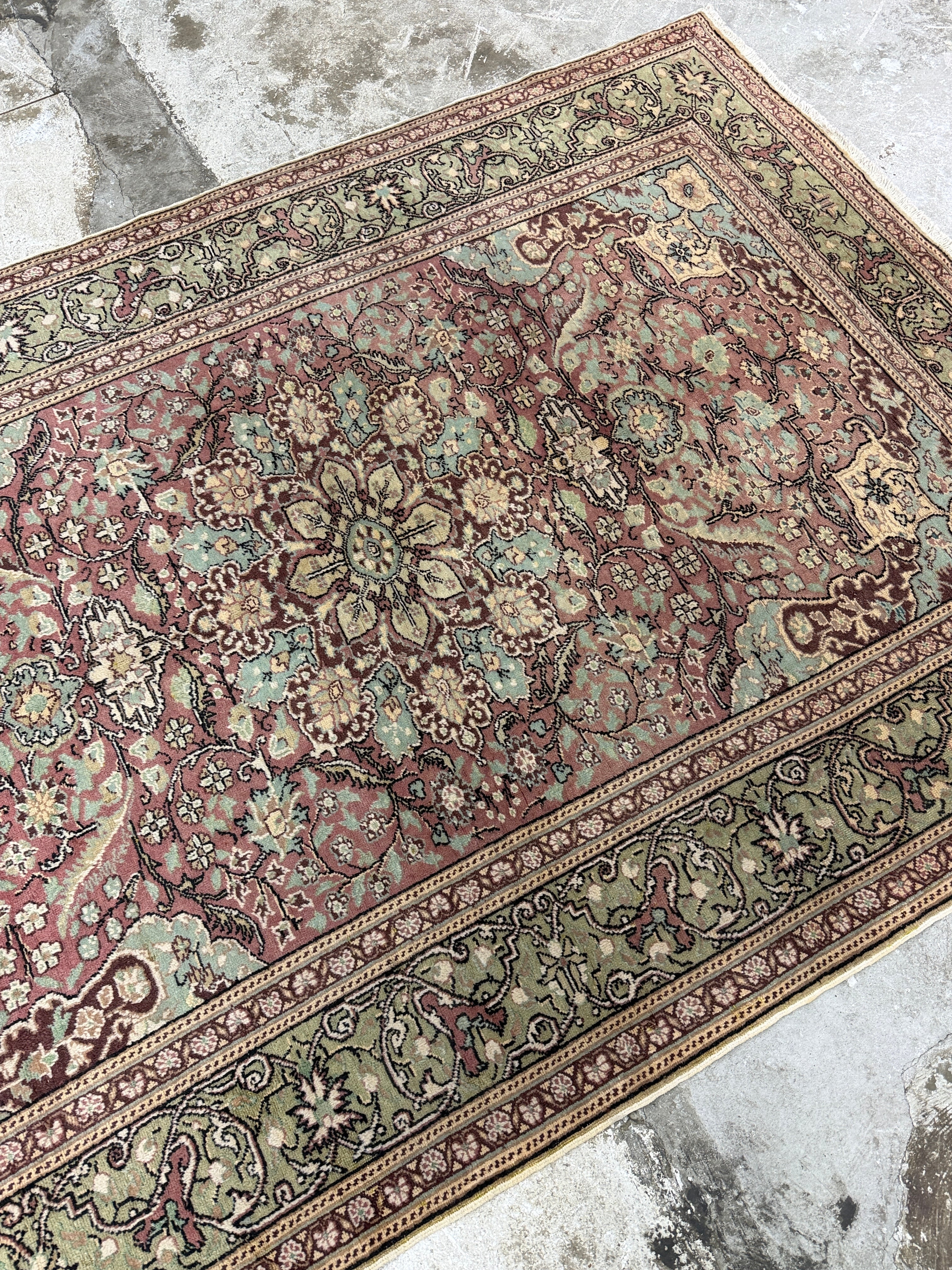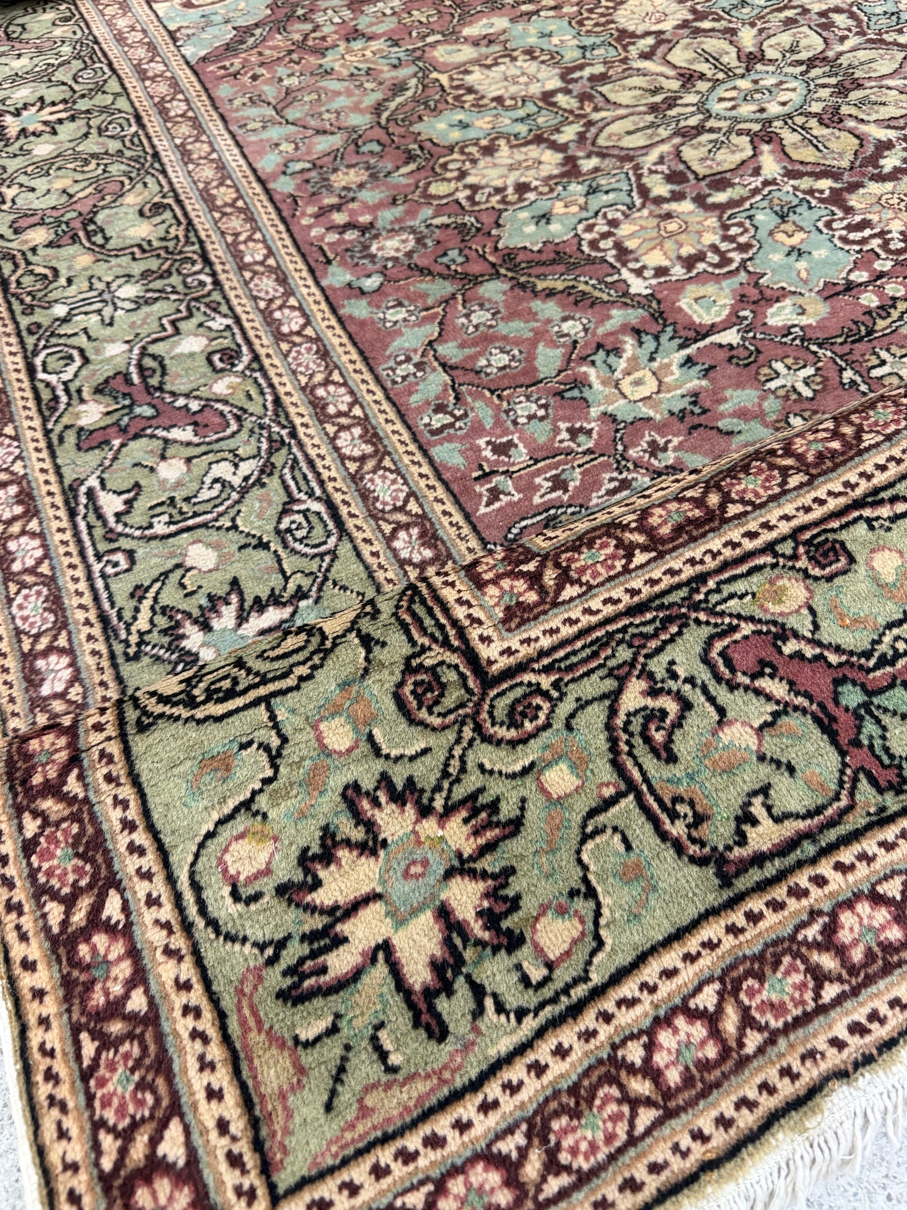 くすみカラーが美しい華やかなカイセリ絨毯です!個人的に大好きなくすみカラーはインテリアに馴染みやすく、さりげなく、そしてオシャレな雰囲気を作るのに最適!デッドストックではないものの品質は良いので個人的にはかなりお気に入りでございます。