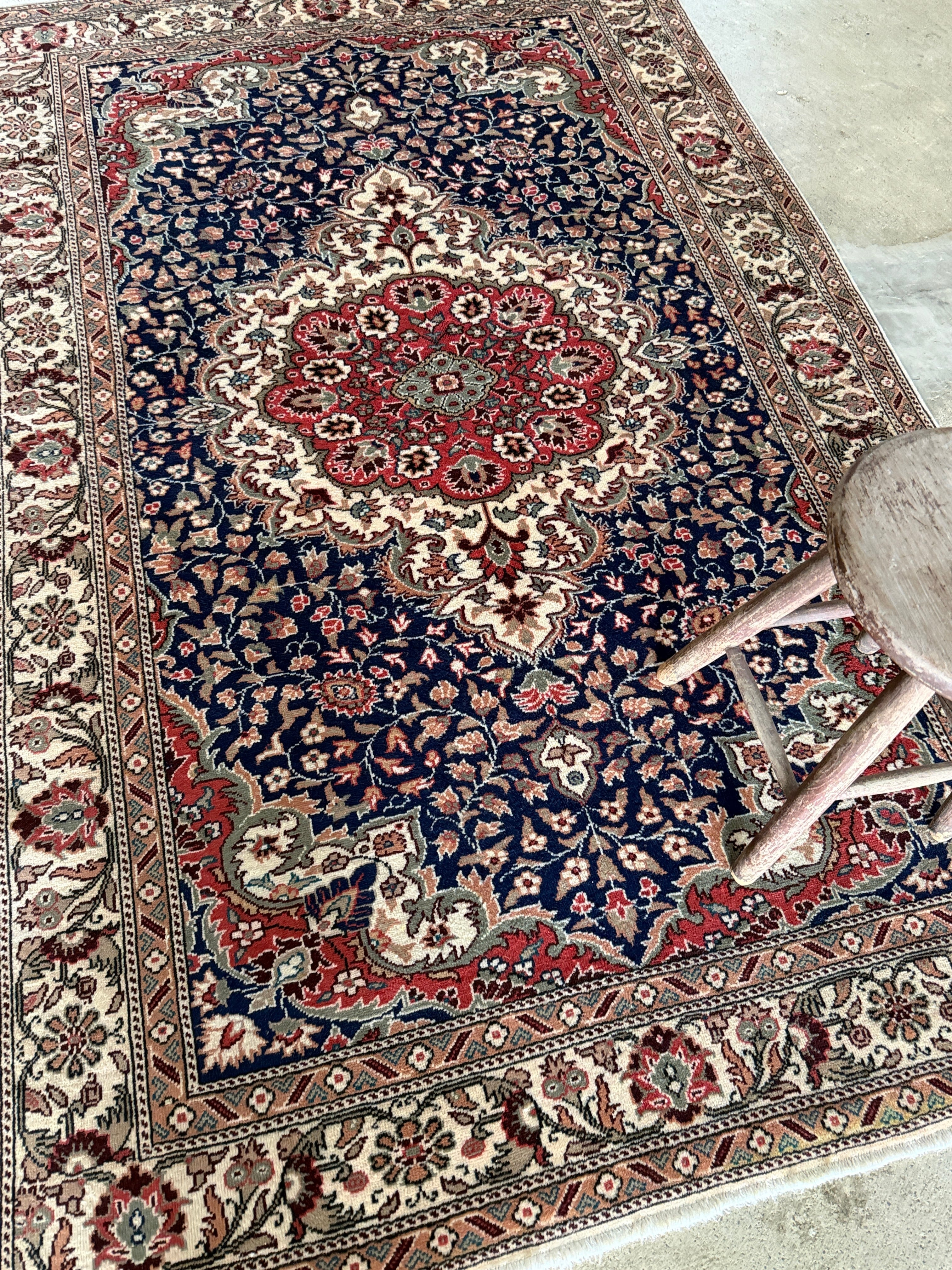 最近マイブームのレトロデザインのカイセリ絨毯から美しいロイヤルブルーと春色ピンクの組み合わせ。上品さもある落ち着いた雰囲気が気に入っています。やわらかな肌触りは素足で歩くと最高に気持ちいいです〜
