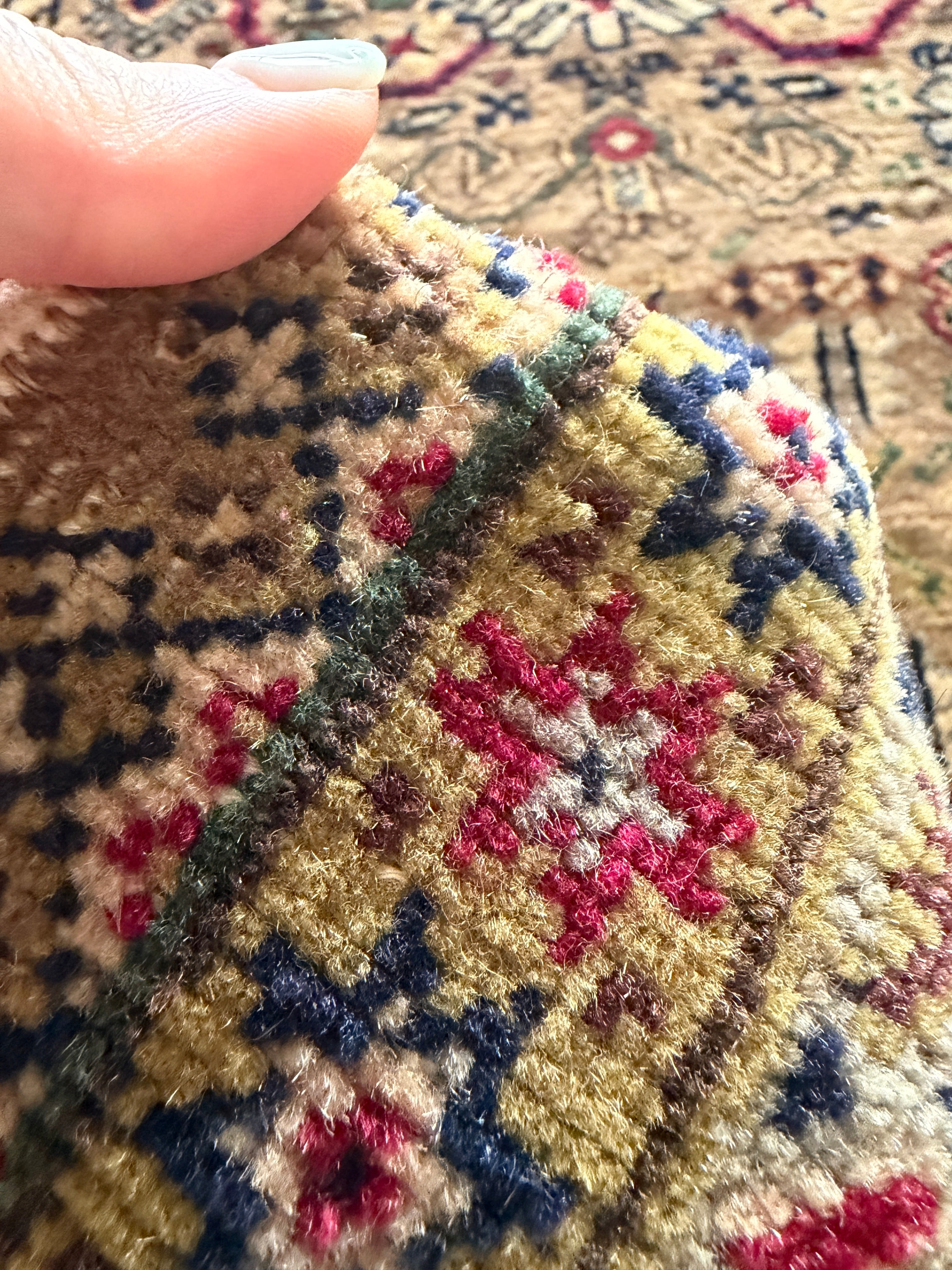 今回のカイセリ絨毯もメンテナンスも素晴らしく、ウール独特の香りも少なく(こちらは個人差がありますのでご参考まで)、さっぱりとした素晴らしい洗い上がり!初めてカイセリ絨毯ラグにチャレンジされるお客様にも自信を持っておすすめできます。ラグの基本である縦糸と横糸はコットンなので通気性も良くオールシーズン快適にお使いいただけます。