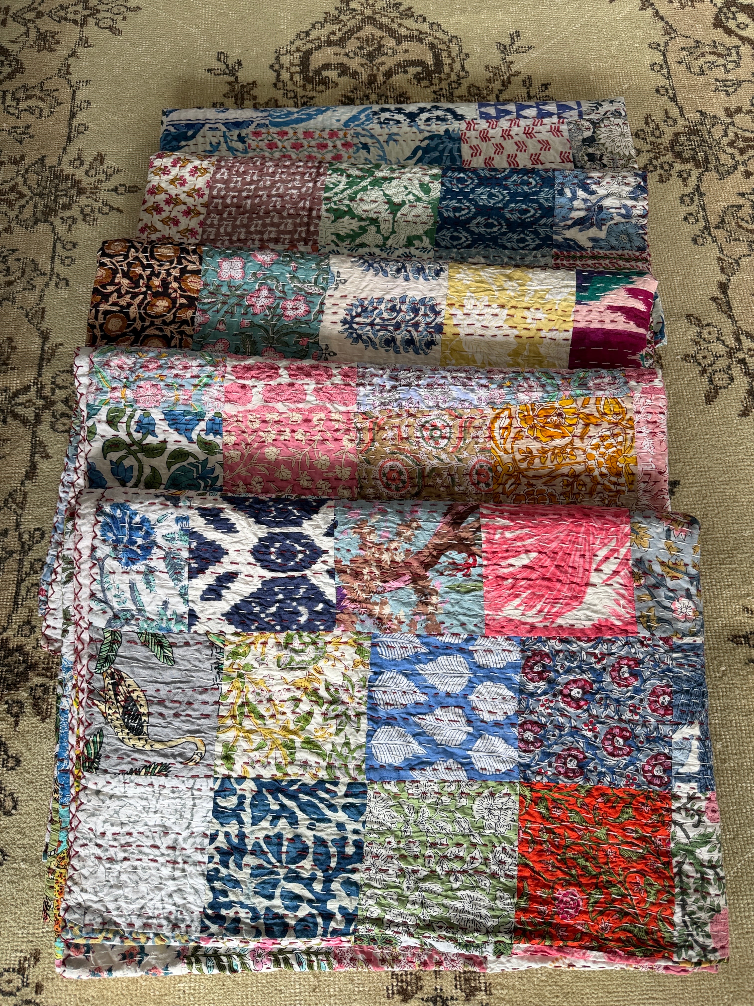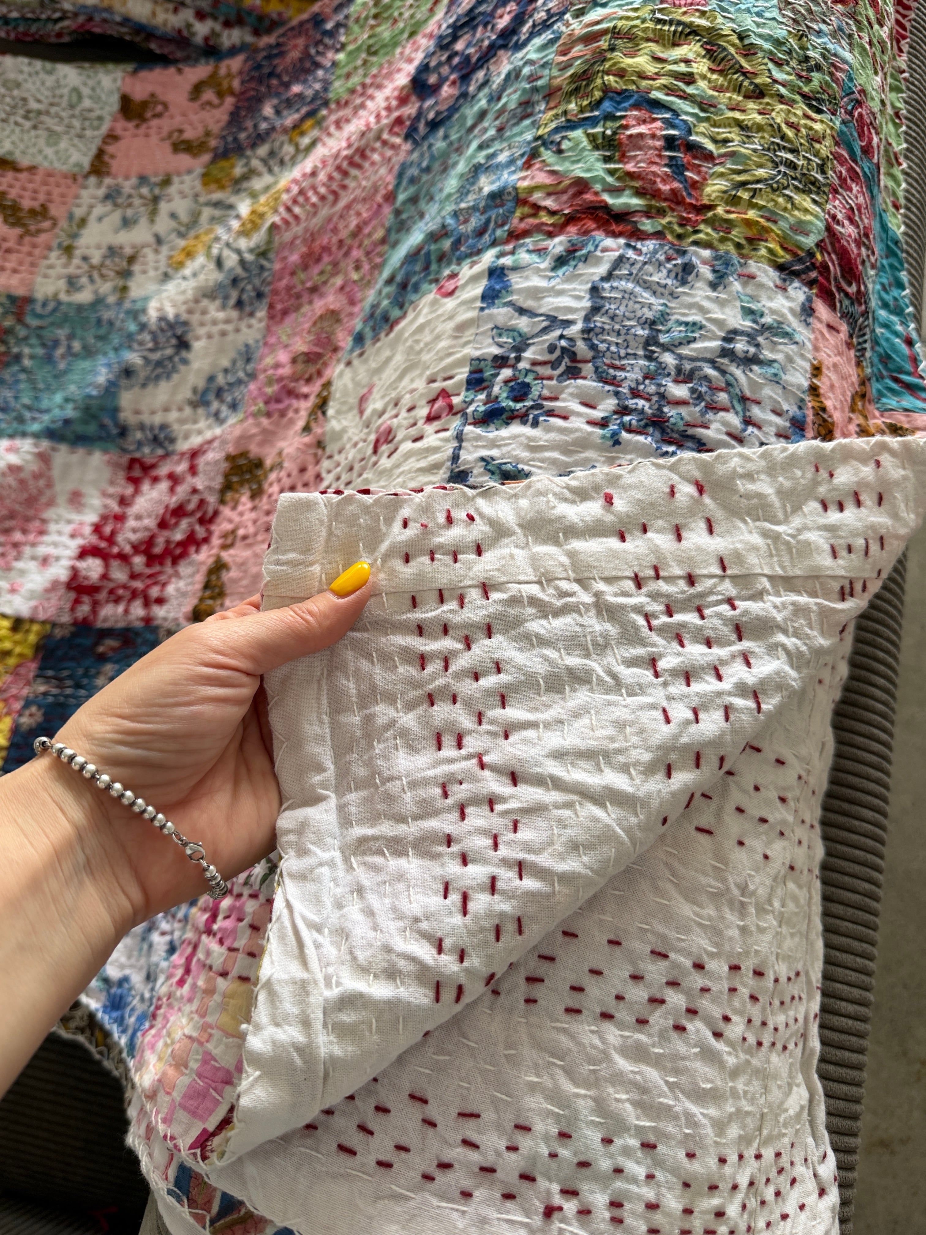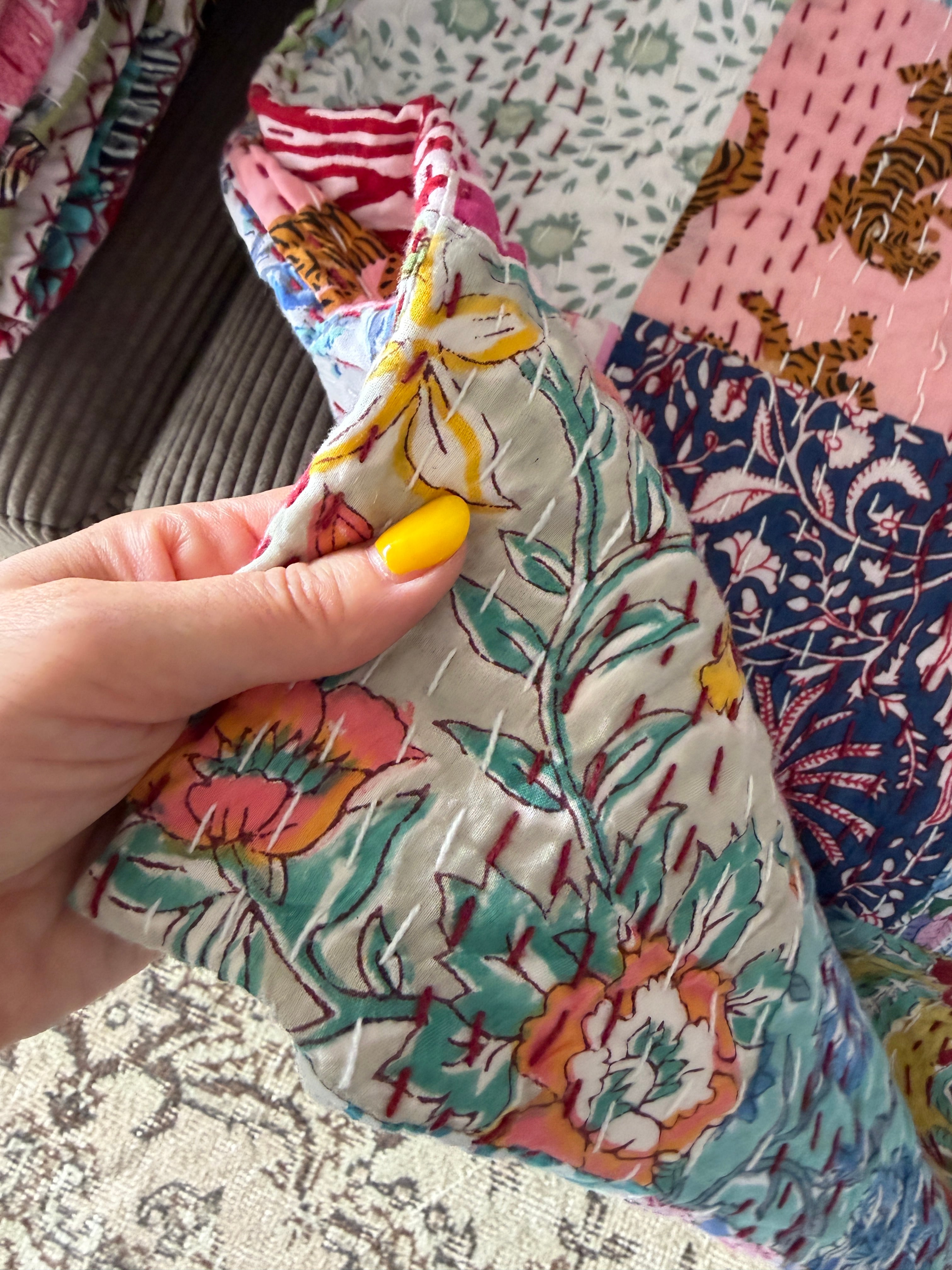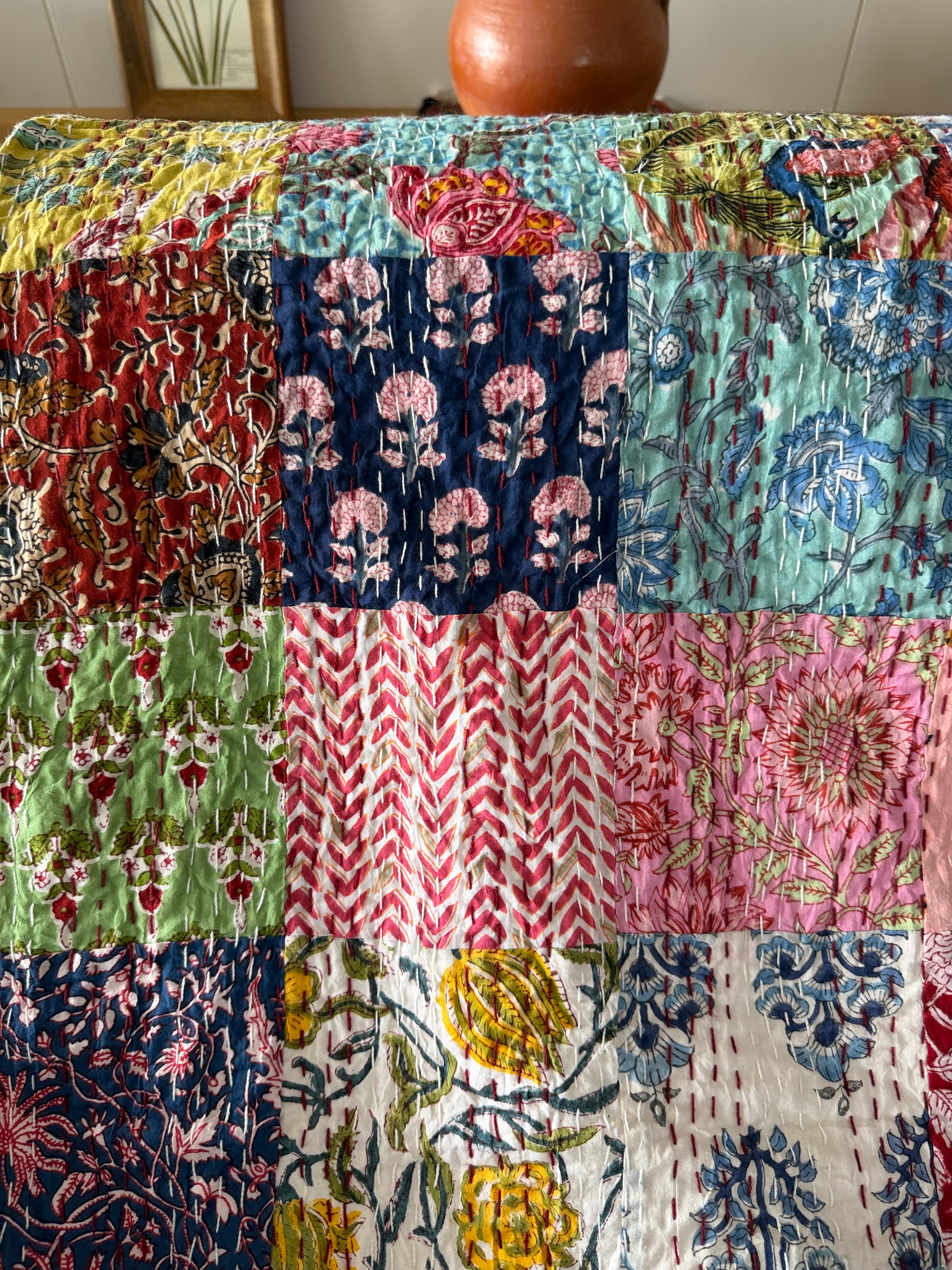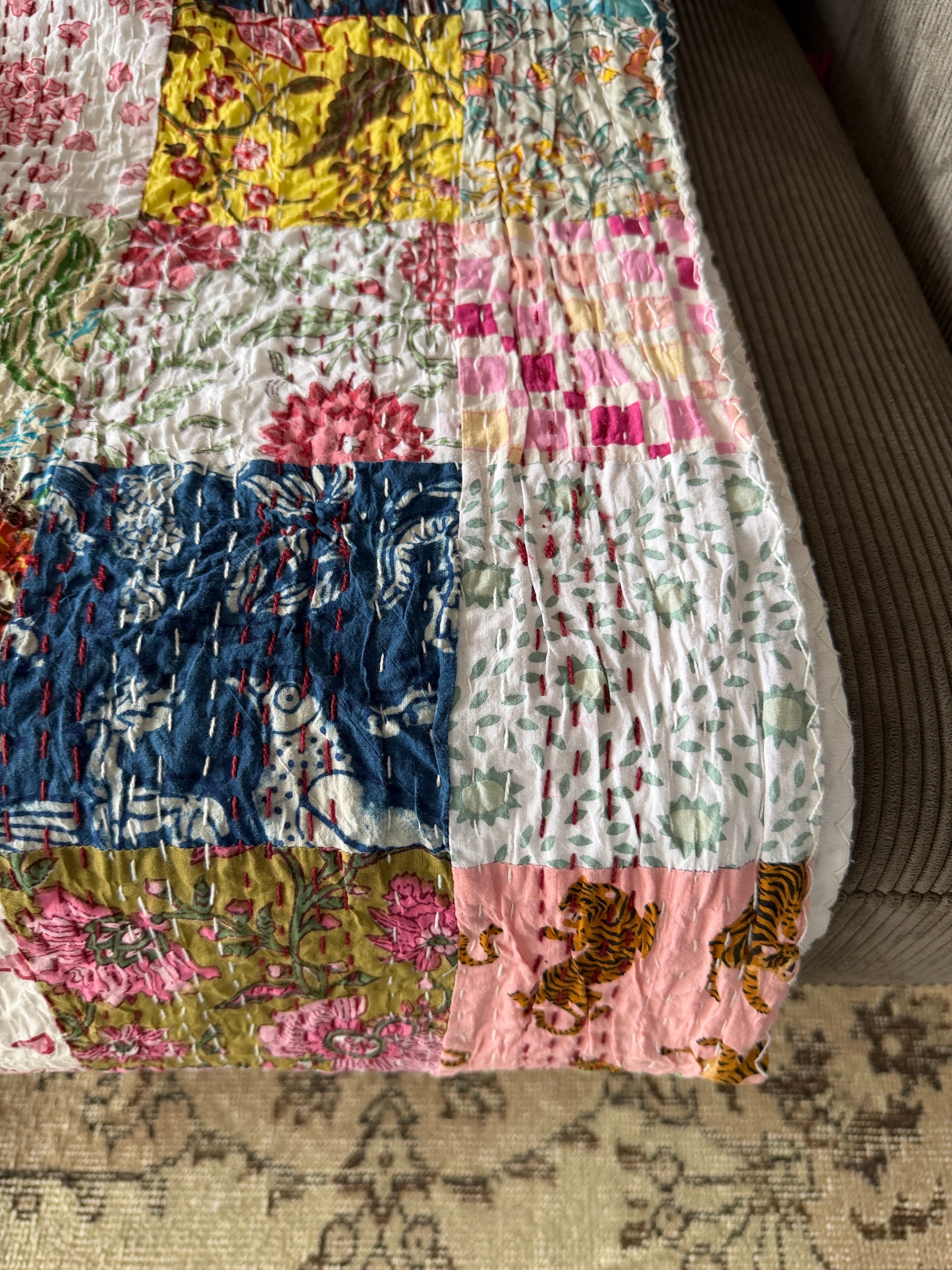 【送料込み】インド パッチワーク キルト マルチカラー IND27
