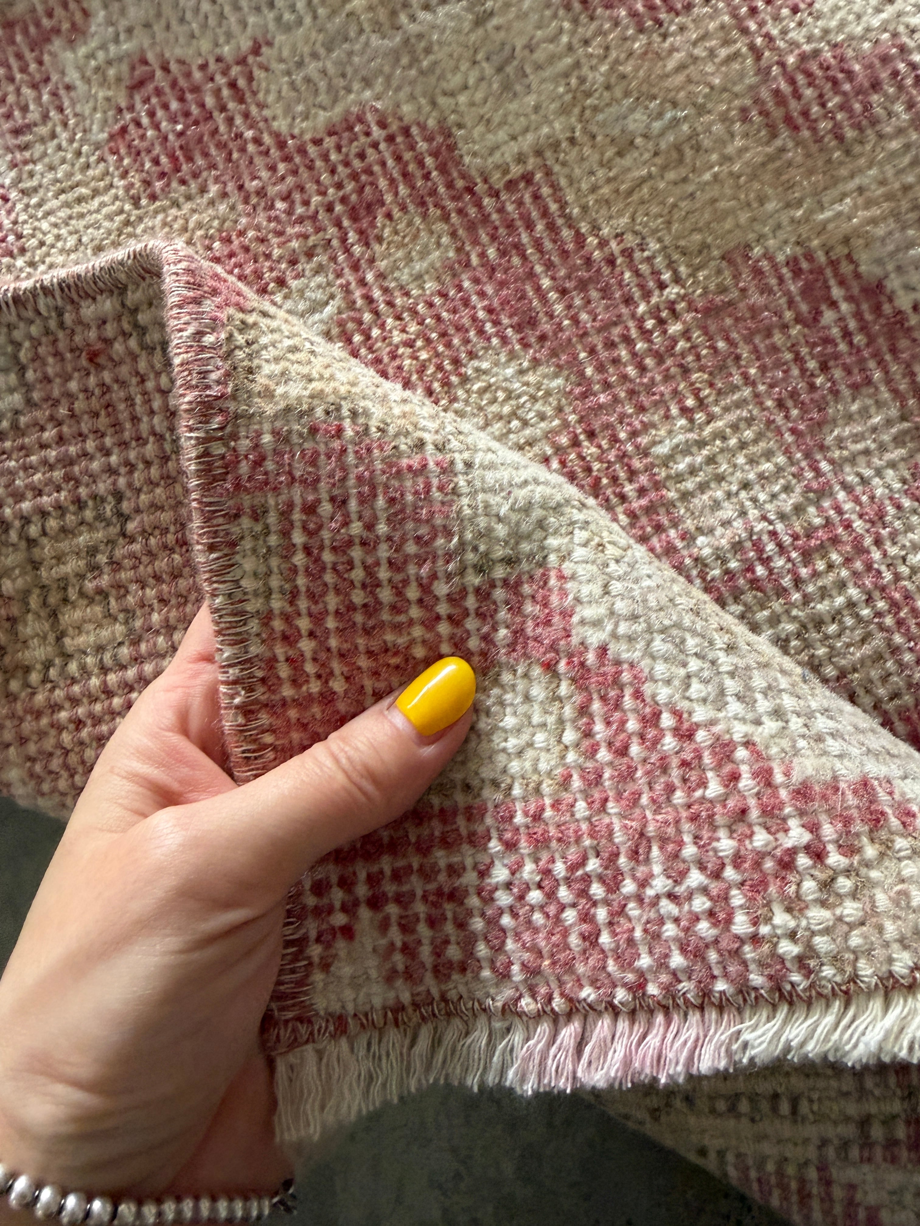 今回の絨毯もメンテナンスも素晴らしく、ウール独特の香りも少なく(こちらは個人差がありますのでご参考まで)、さっぱりとした素晴らしい洗い上がり!初めてヴィンテージラグにチャレンジされるお客様にも自信を持っておすすめできます。ラグの基本である縦糸と横糸はコットンなので通気性も良くオールシーズン快適にお使いいただけます!