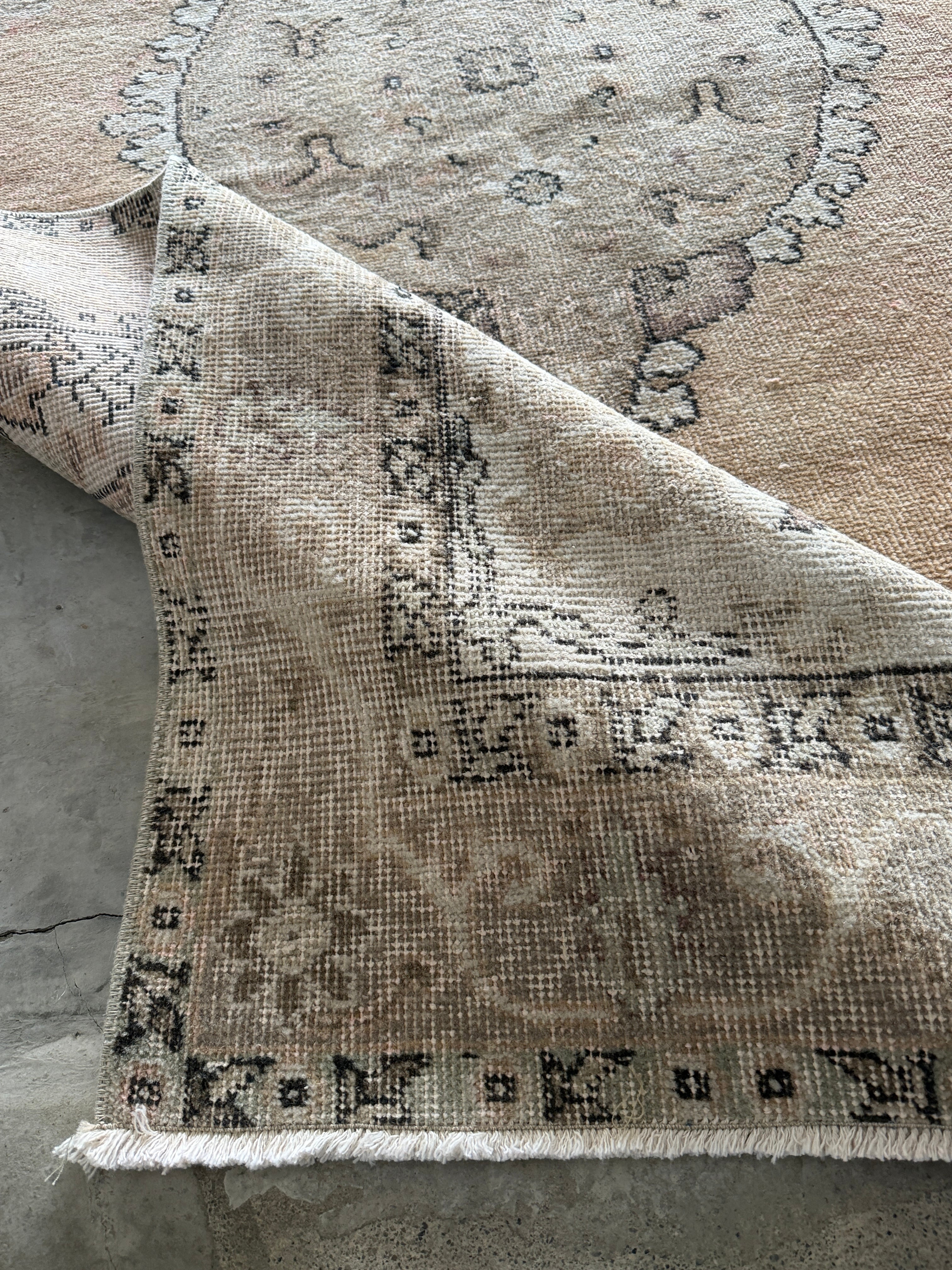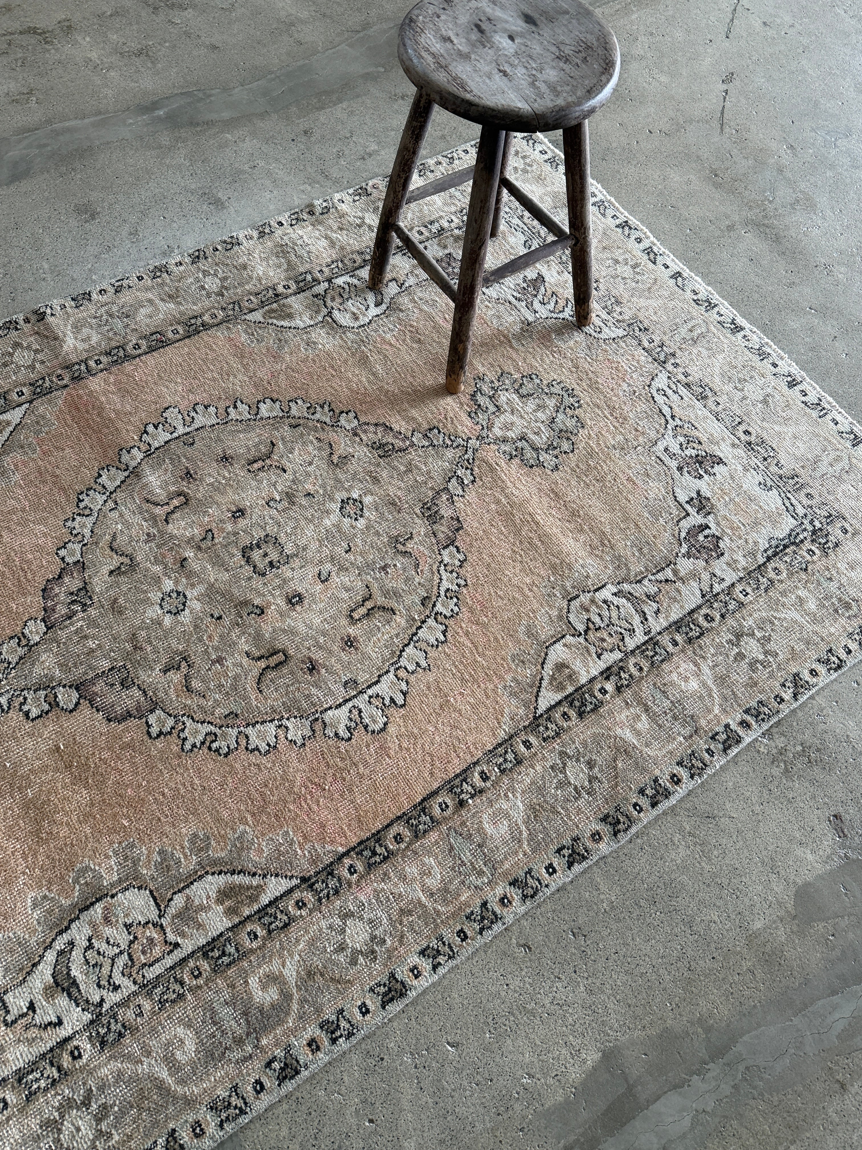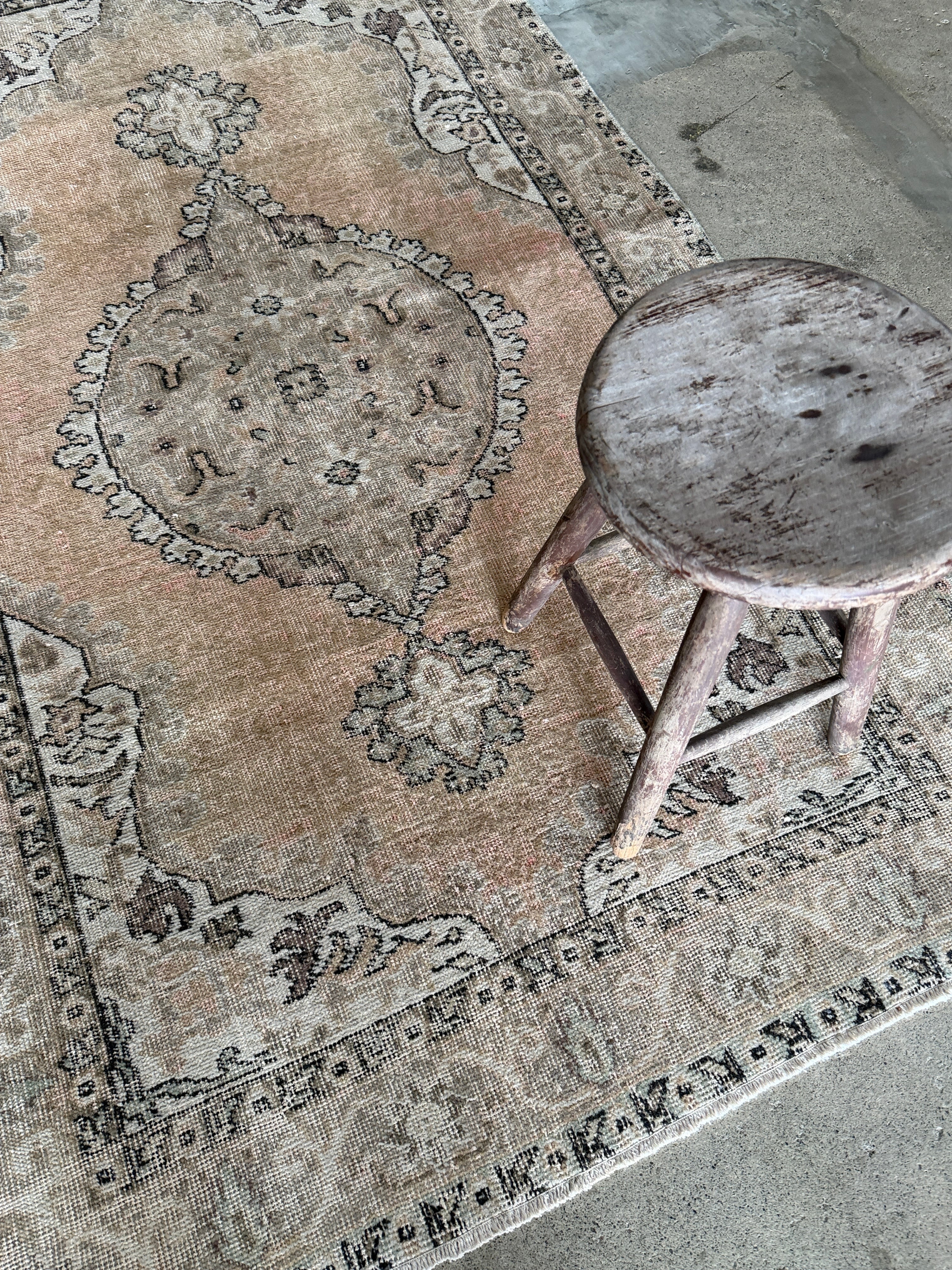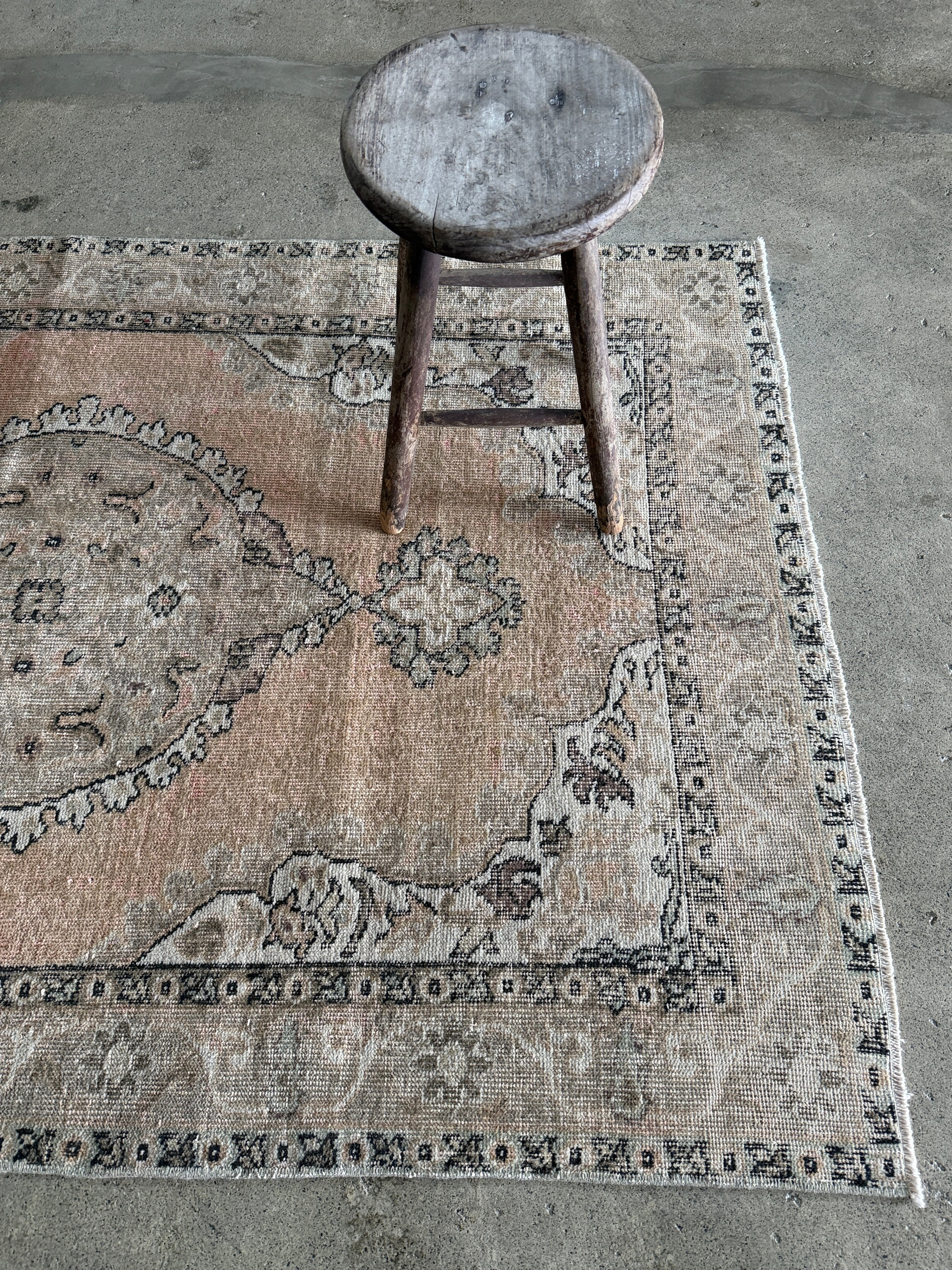 1970年代にトルコのイスパルタでハンドメイドで織られたヴィンテージラグ。こちらはとてもめずらしいデザイン。おそらく、イスパルタの小さな村で織られた貴重なモノ。絶妙な色合いとカスレ感を含め、この仕上がりはヴィンテージ好きにはかなり希少な1枚です!このような個性あふれるラグはなかなか出会えません。個人的に一目惚れした1枚でございます。