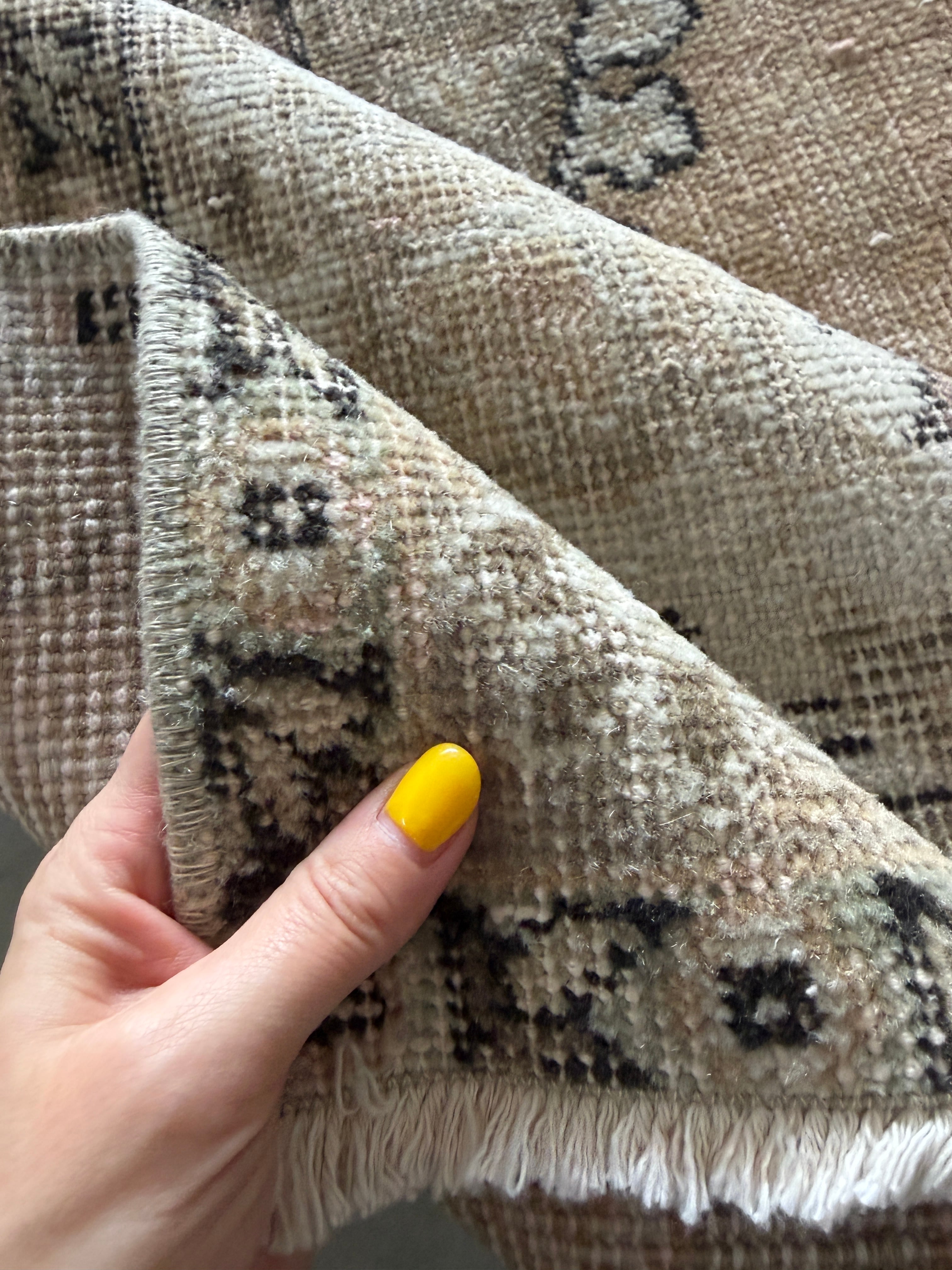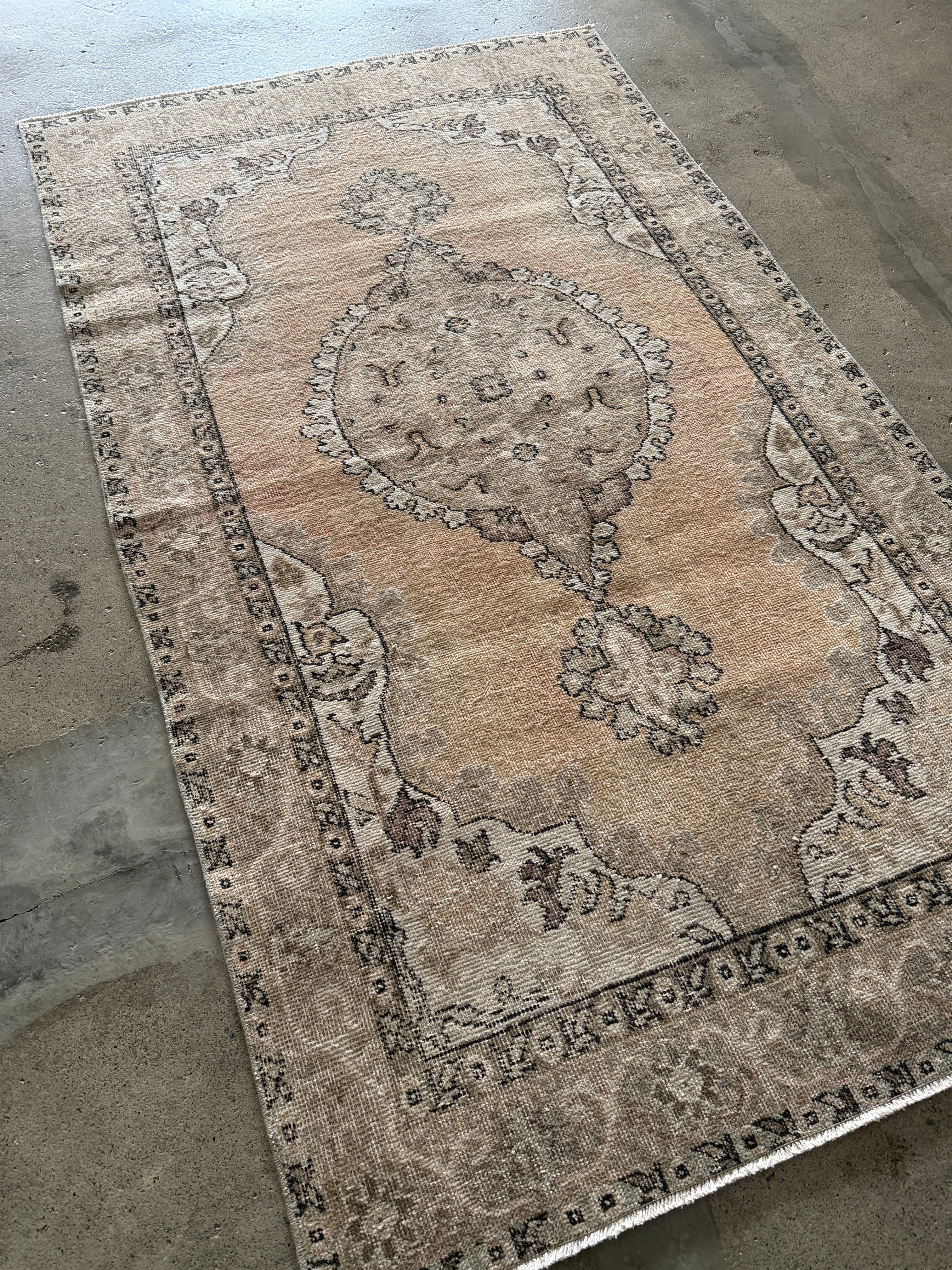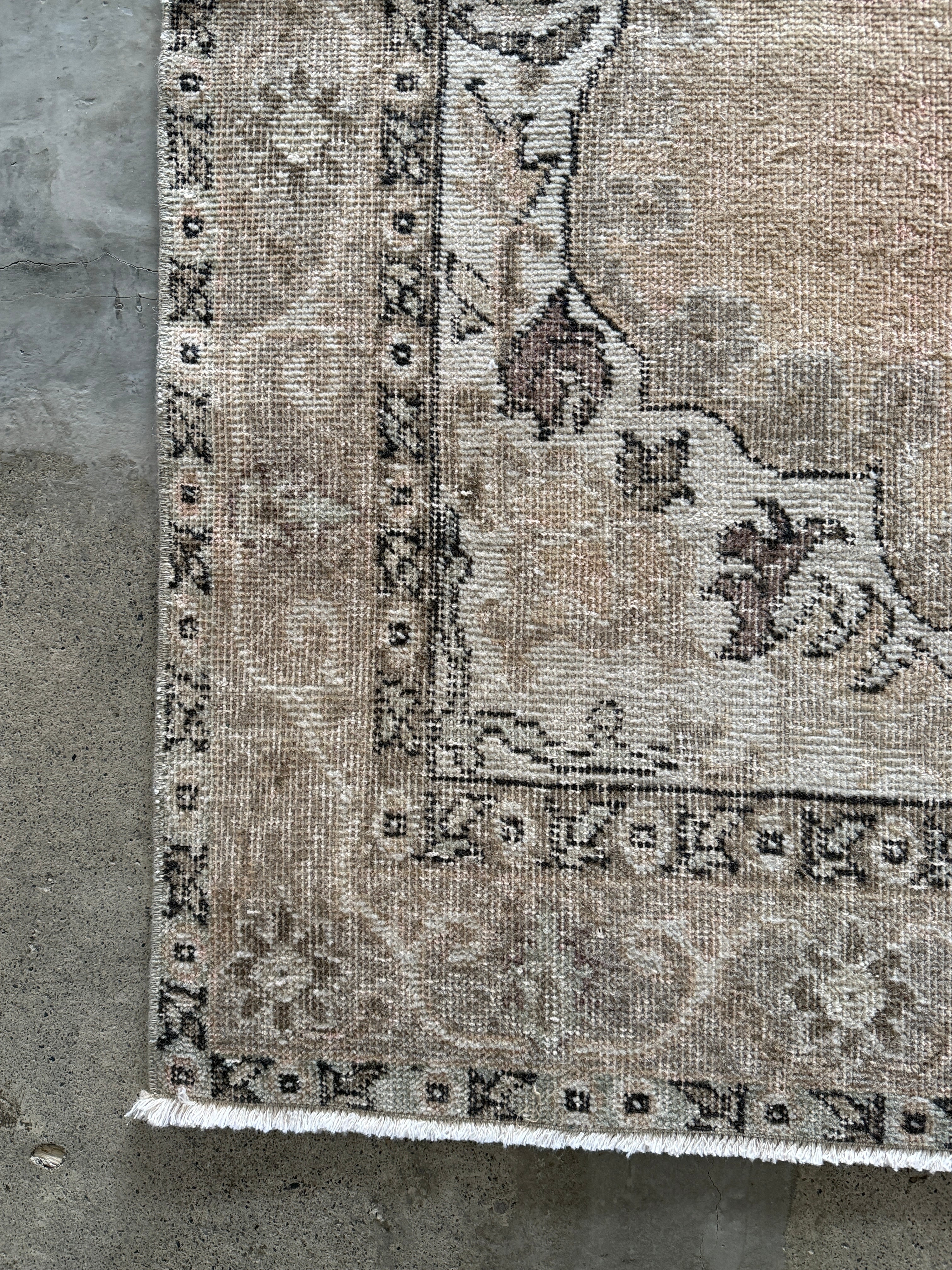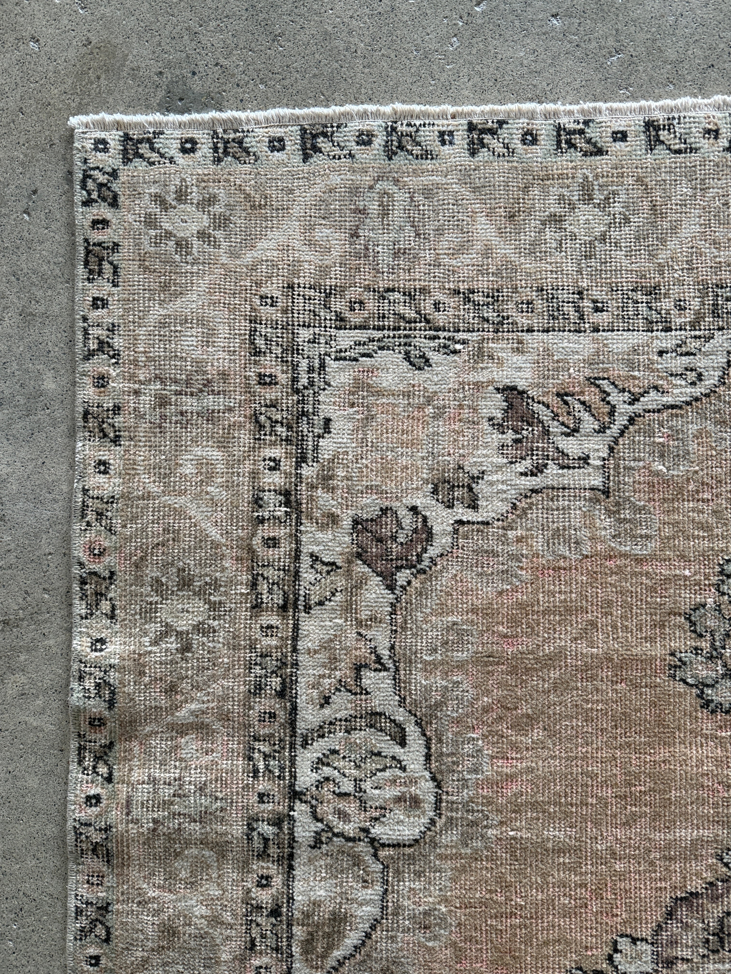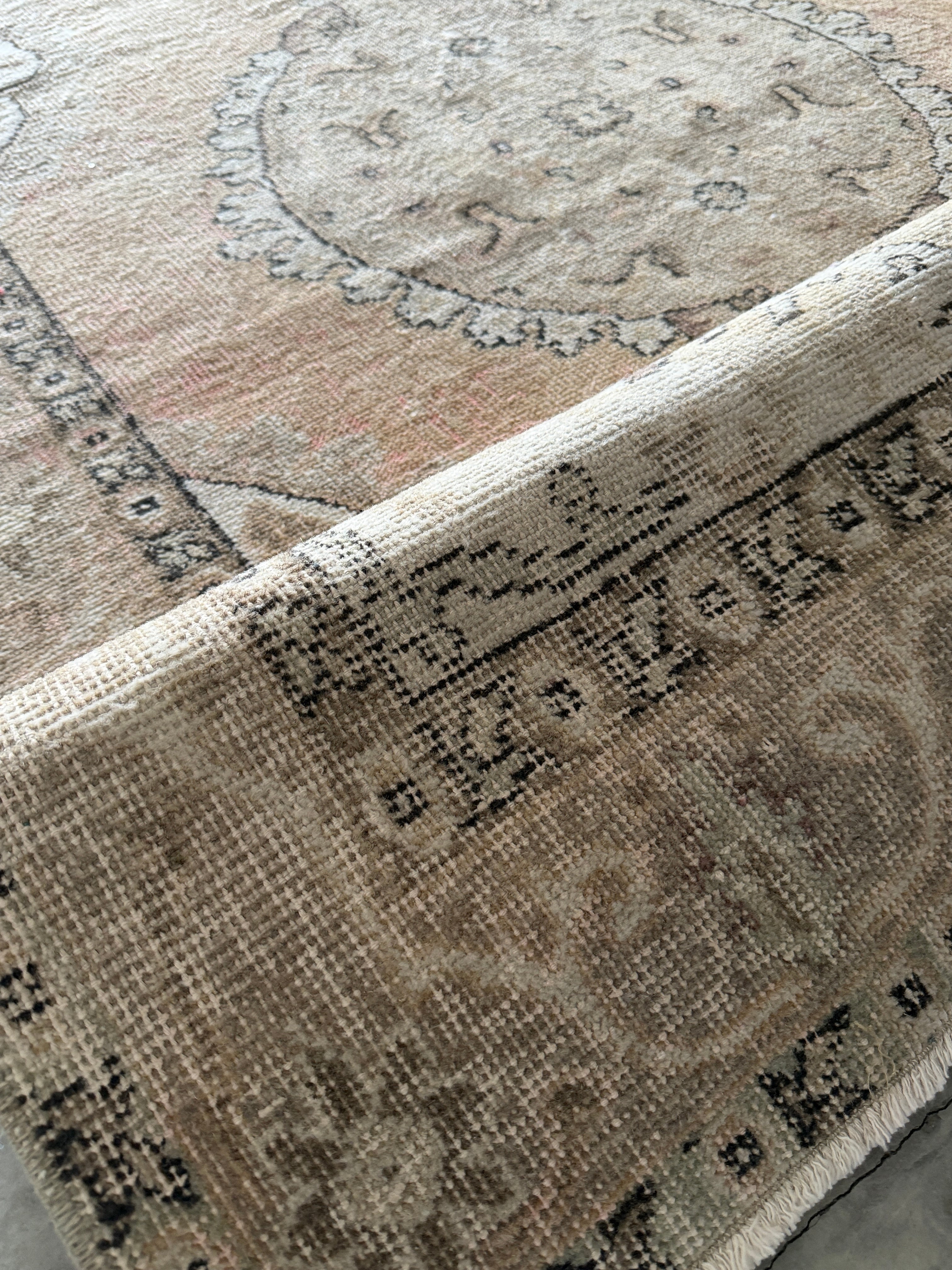 1970年代にトルコのイスパルタでハンドメイドで織られたヴィンテージラグ。こちらはとてもめずらしいデザイン。おそらく、イスパルタの小さな村で織られた貴重なモノ。絶妙な色合いとカスレ感を含め、この仕上がりはヴィンテージ好きにはかなり希少な1枚です!このような個性あふれるラグはなかなか出会えません。個人的に一目惚れした1枚でございます。