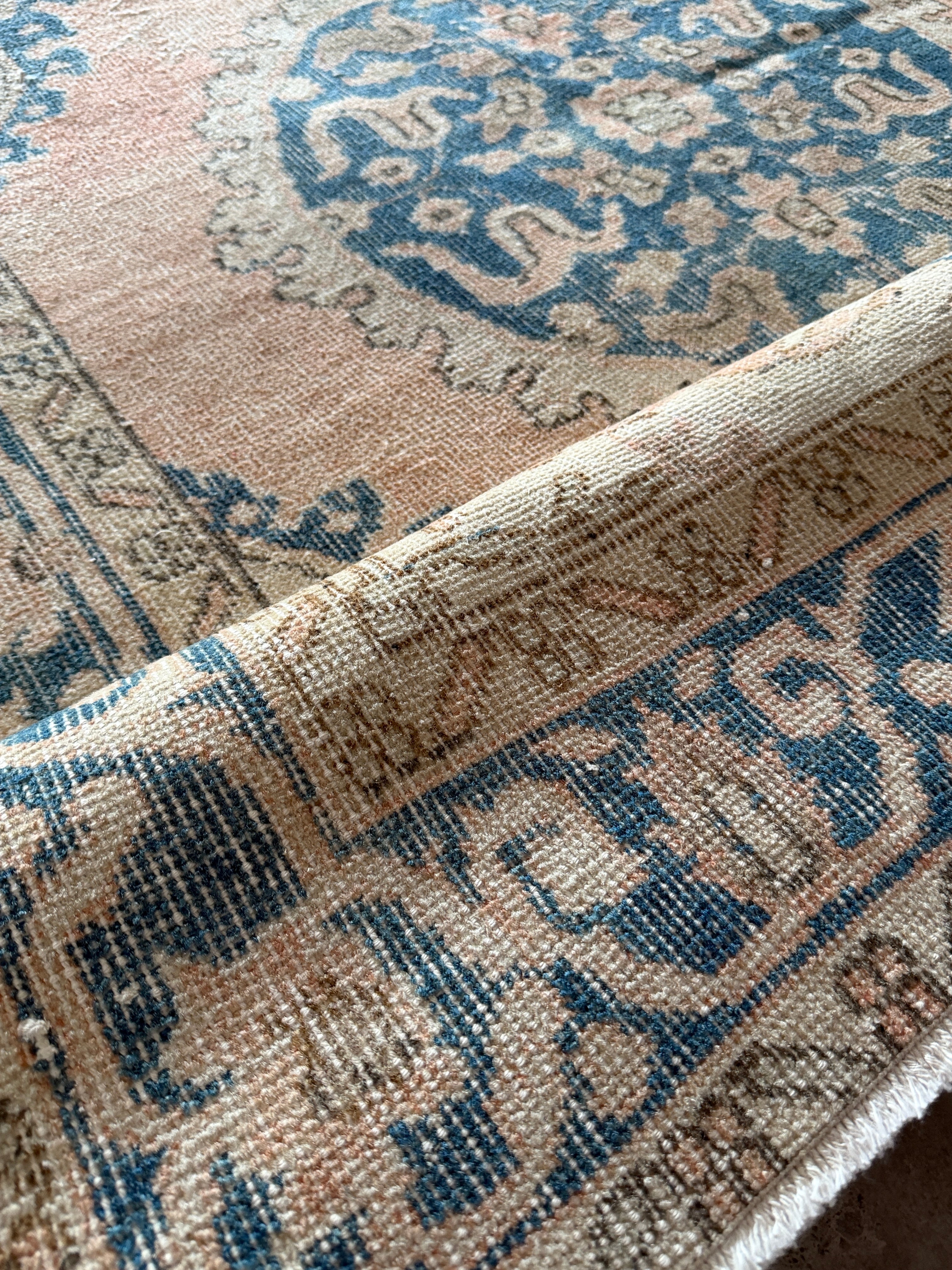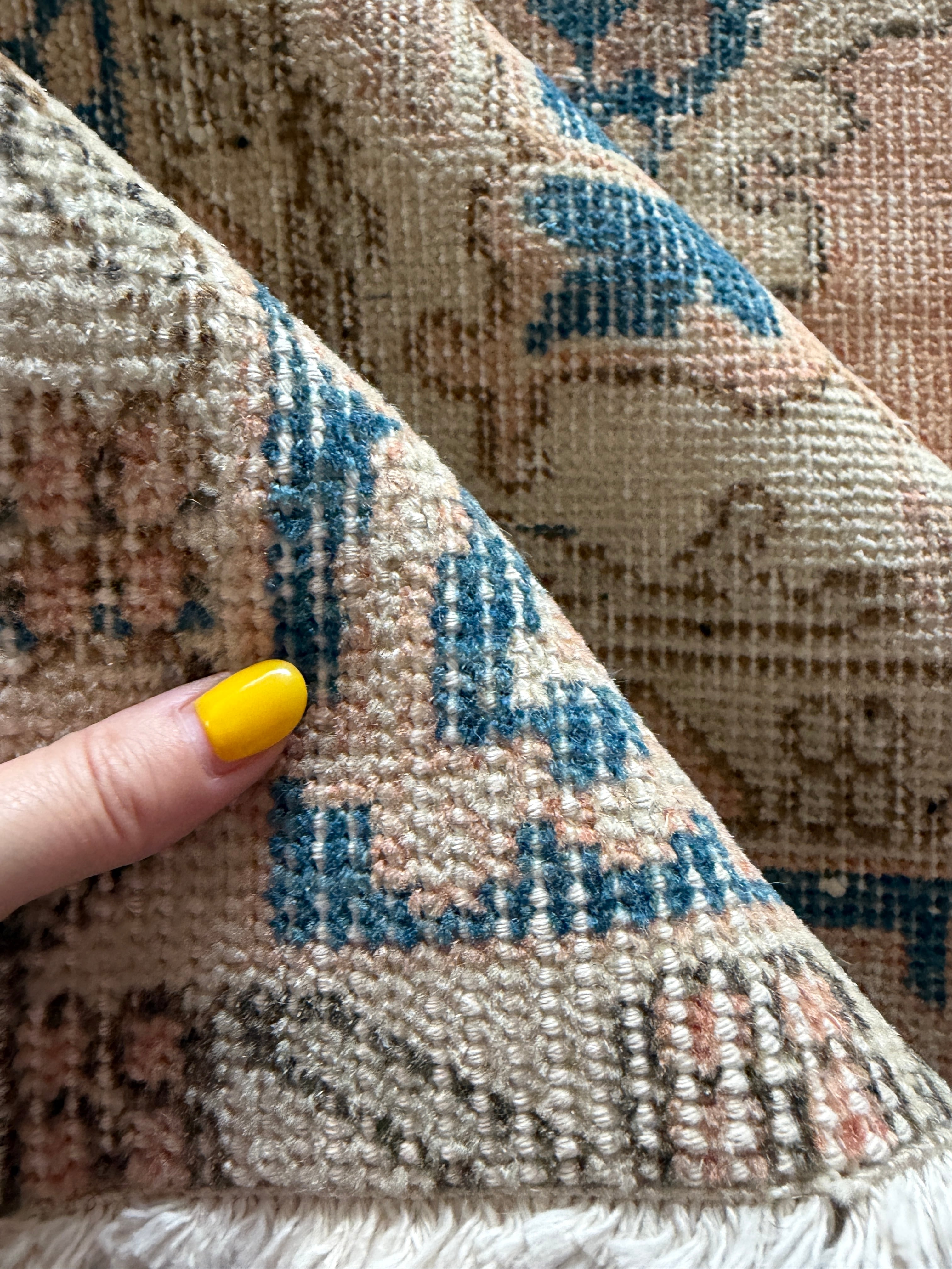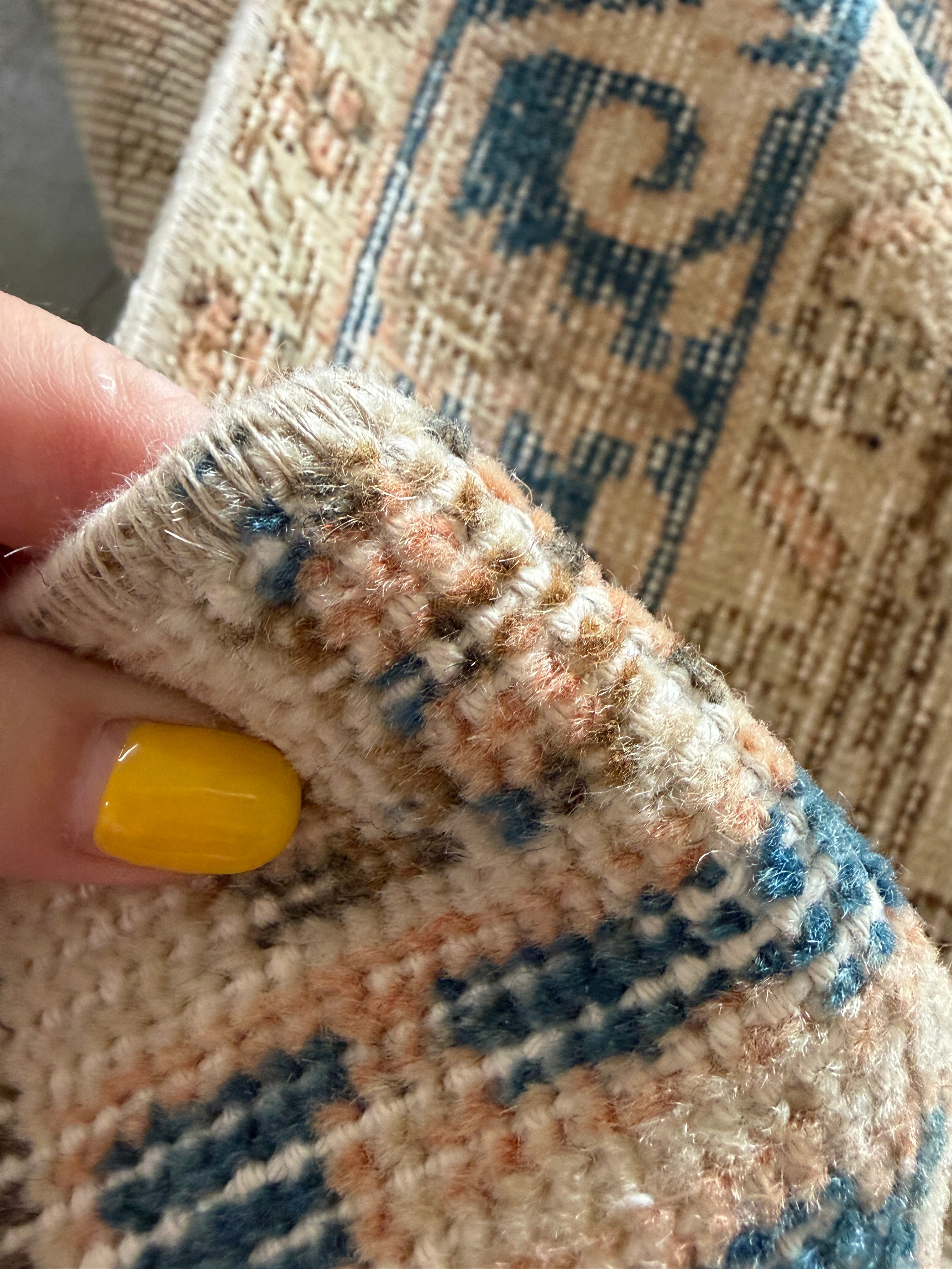 今回の絨毯もメンテナンスも素晴らしく、ウール独特の香りも少なく(こちらは個人差がありますのでご参考まで)、さっぱりとした素晴らしい洗い上がり!初めてヴィンテージラグにチャレンジされるお客様にも自信を持っておすすめできます。ラグの基本である縦糸と横糸はコットンなので通気性も良くオールシーズン快適にお使いいただけます!