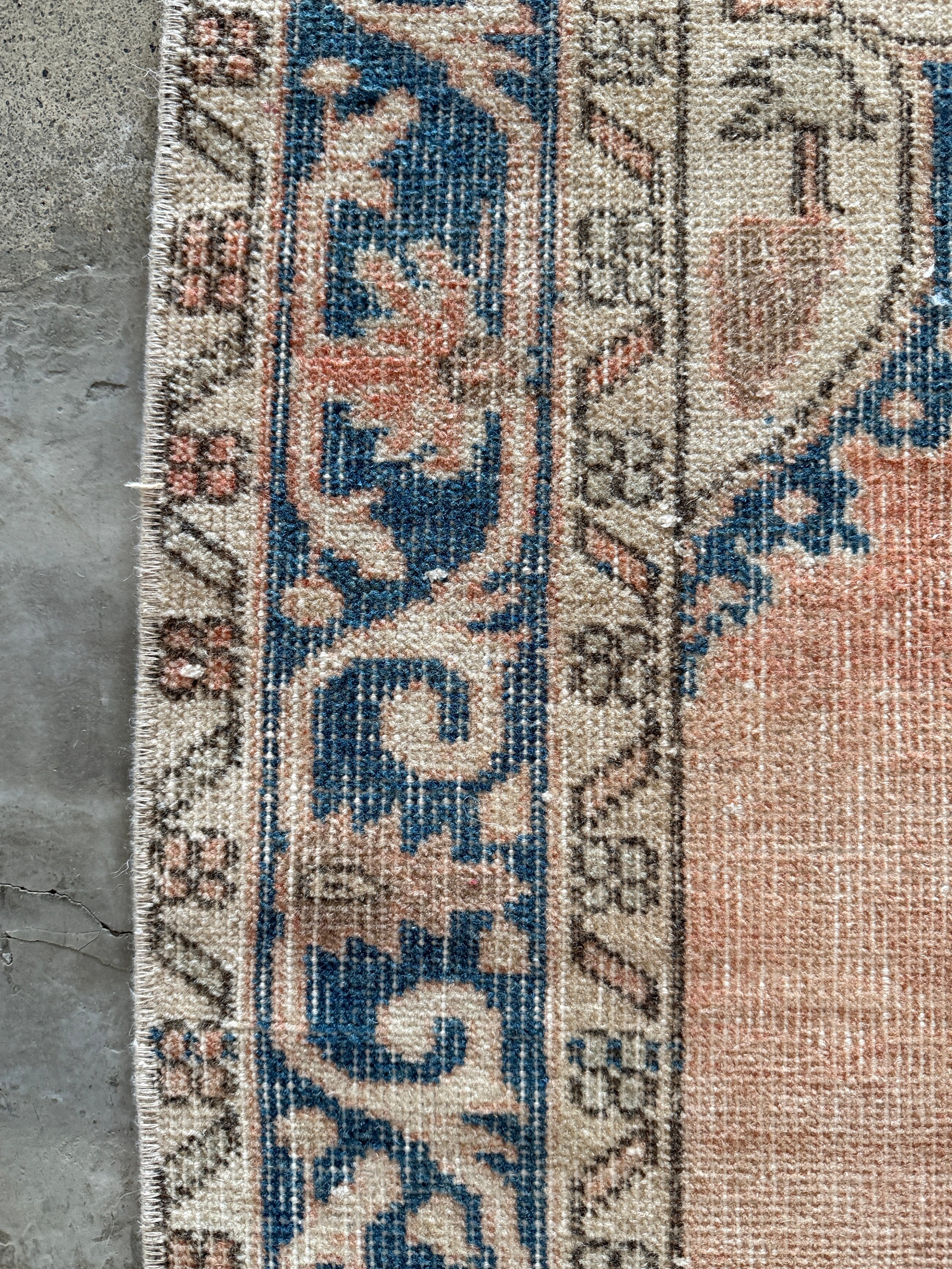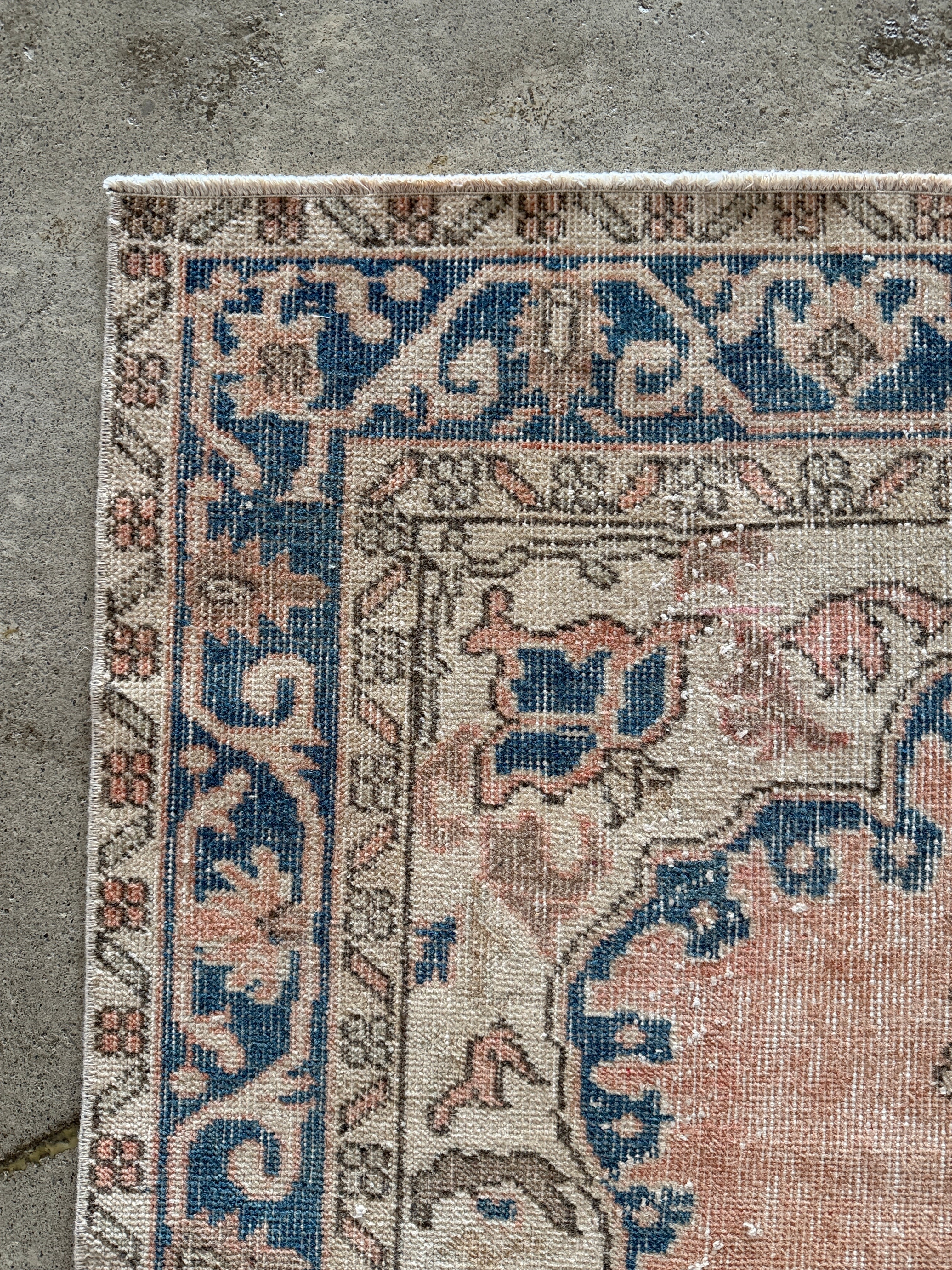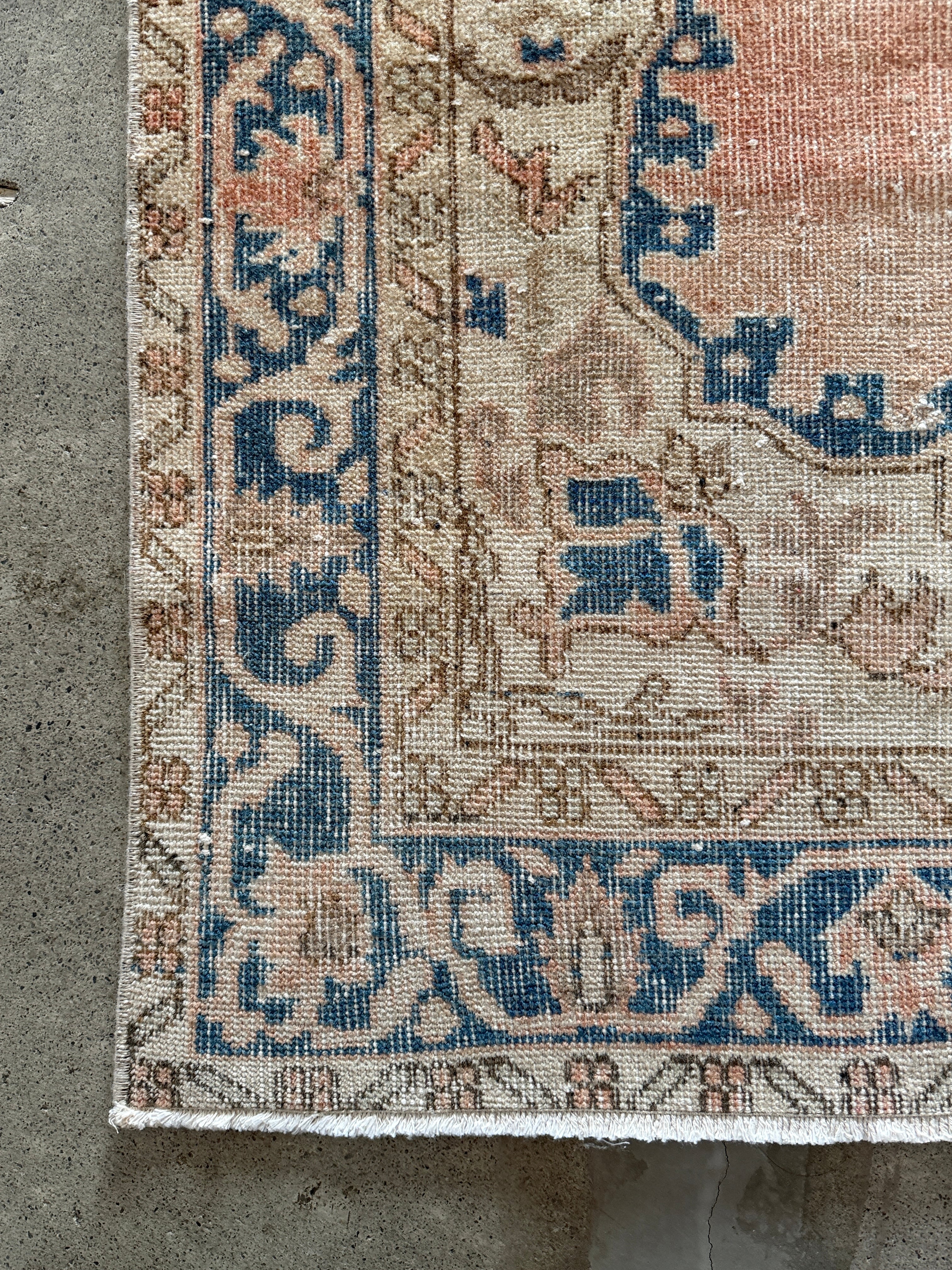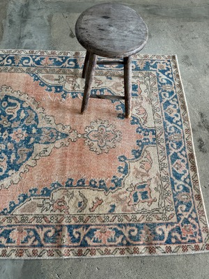 春色パステルピンク×ブルーの人気の色合わせ。上品さと優しい華やかさのある素敵な1枚です。存在感のある春色ヴィンテージラグです!
