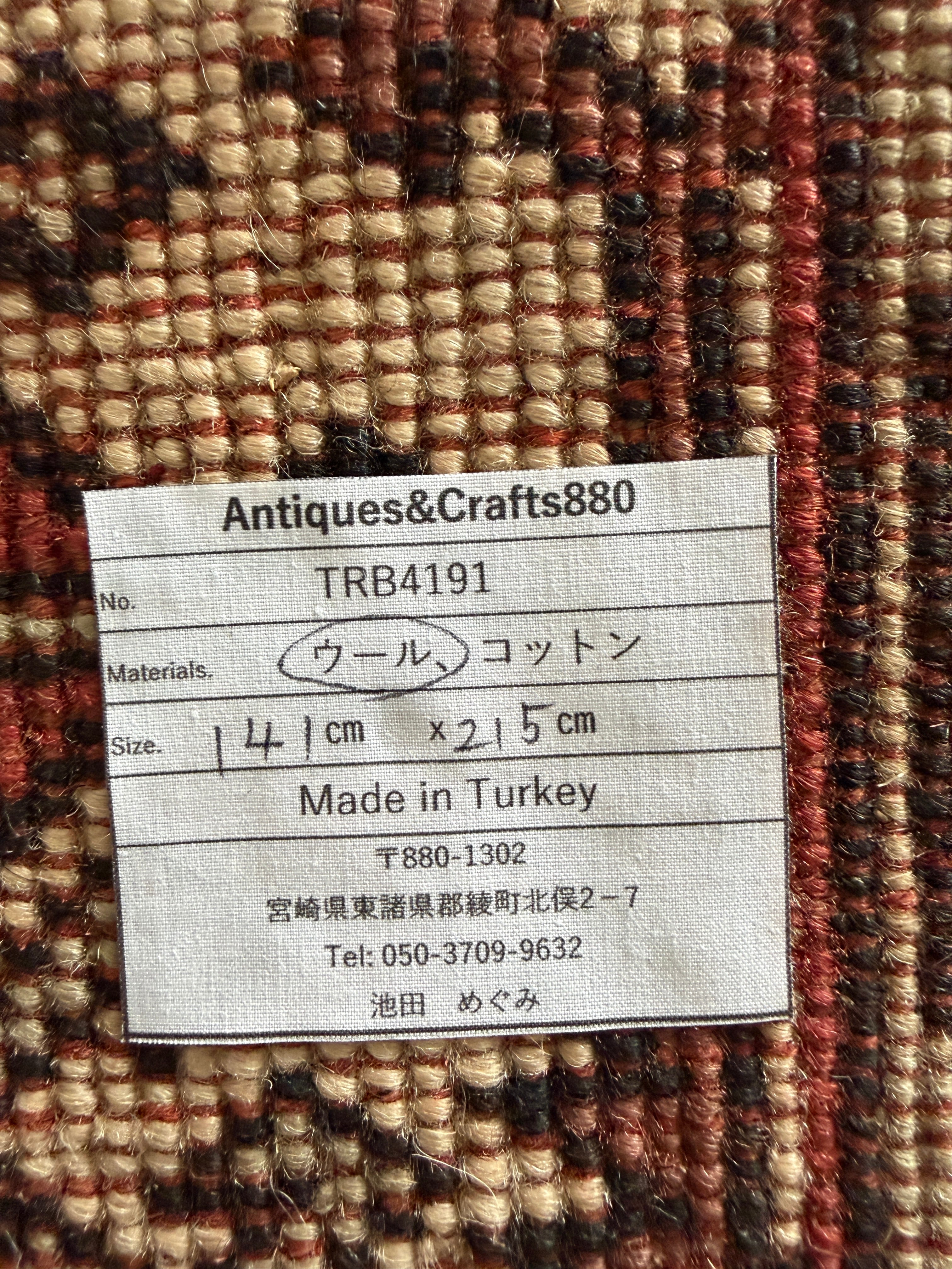 【送料込み】デッドストック 未使用品 トルコラグ クラ絨毯 TRB4191
