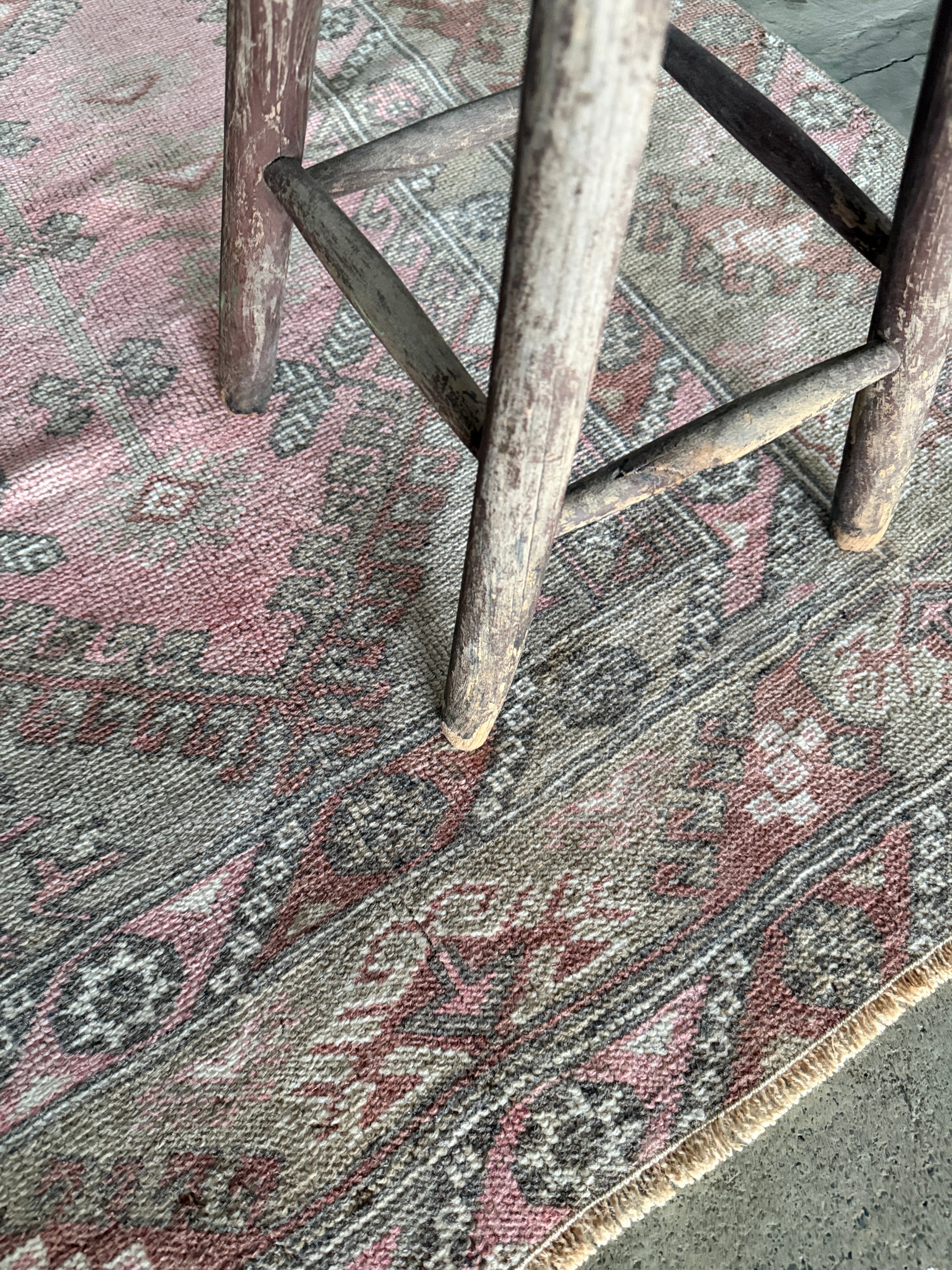 トルコのエーゲ界エリアのリゾート地、アンタルヤはエネルギッシュな色合いの絨毯が多くみられます。今回は春ということであえてウォッシュ加工で色を落とし、やわらかな春らしい色合いに仕上がったモノをセレクトさせていただきました。ナチュラルなピンクに花模様が印象的な1枚です。春らしく、お部屋に馴染みやすく取り入れやすい1枚となっております。
