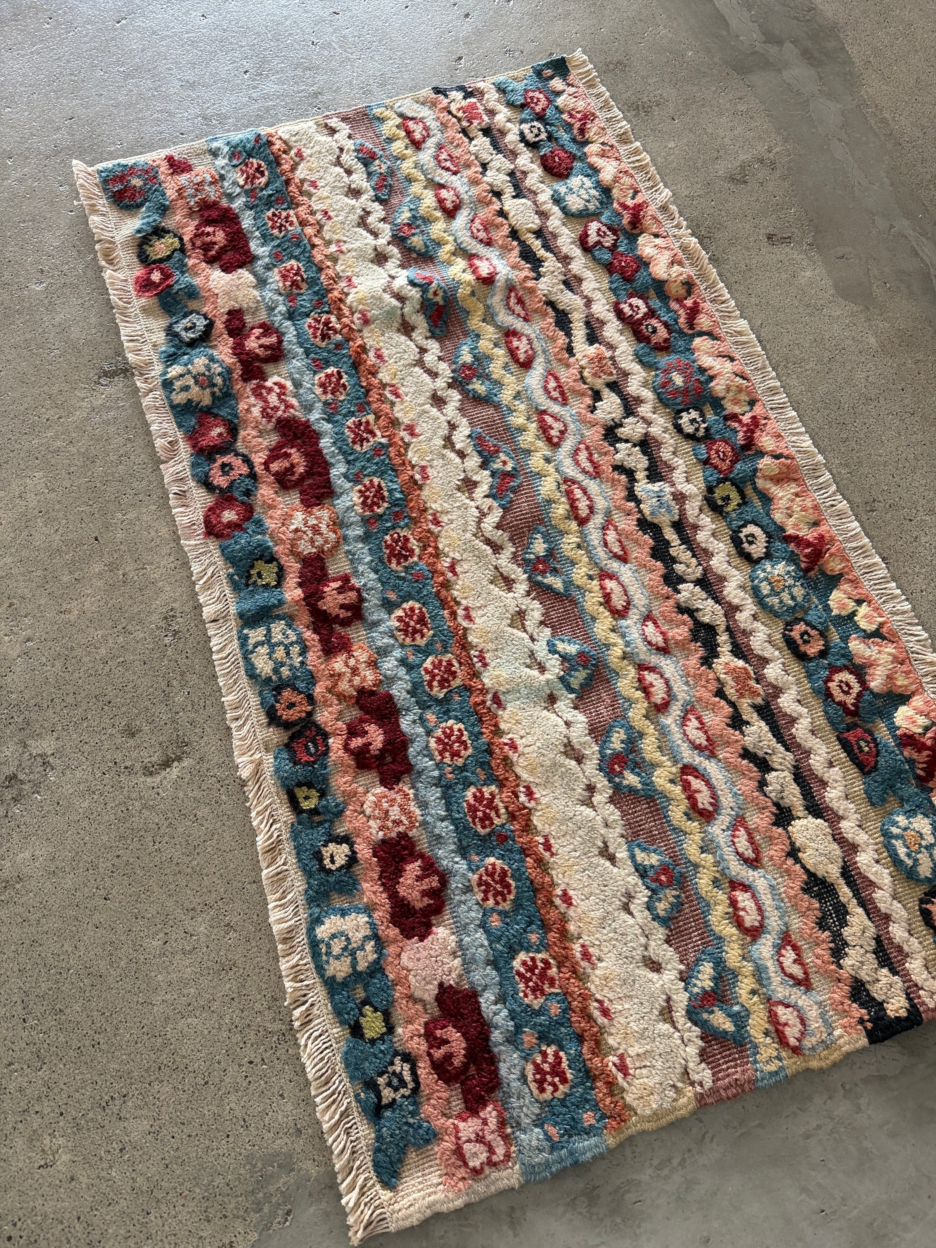 トルコアナトリアの北東、sivas(シヴァス)で作られた、キリム織と絨毯織を掛け合わせたとてもめずらしい絨毯を見つけました!これはかなりの激レア商品になります。凹凸のある花模様のデザインにはトルコ国花のチューリップをはじめ、可愛いらしい刺繍が描かれています。<職人の技>が光る、なかなか出会えない貴重な1枚です。個性ある1枚をお探しのお客様にオススメです。