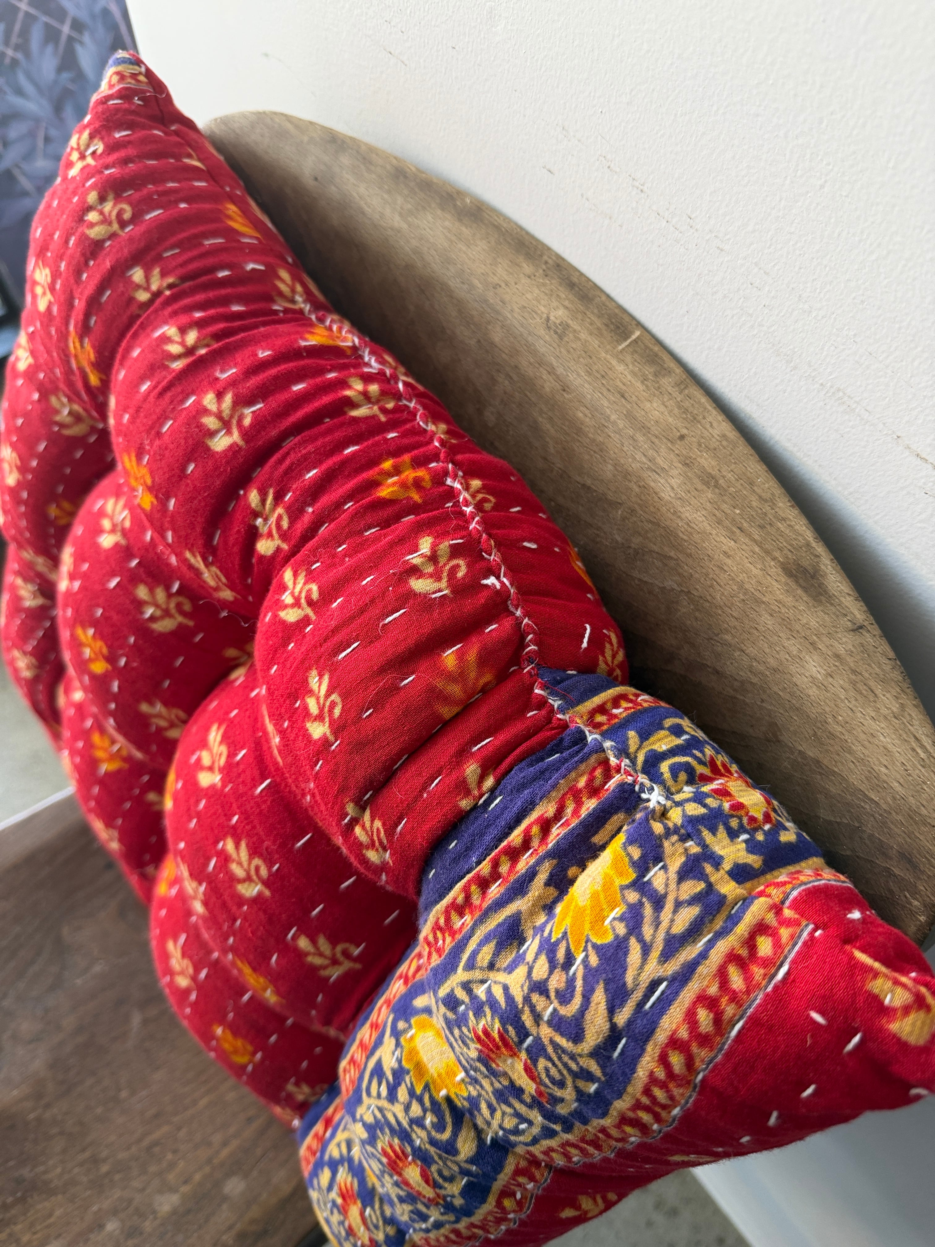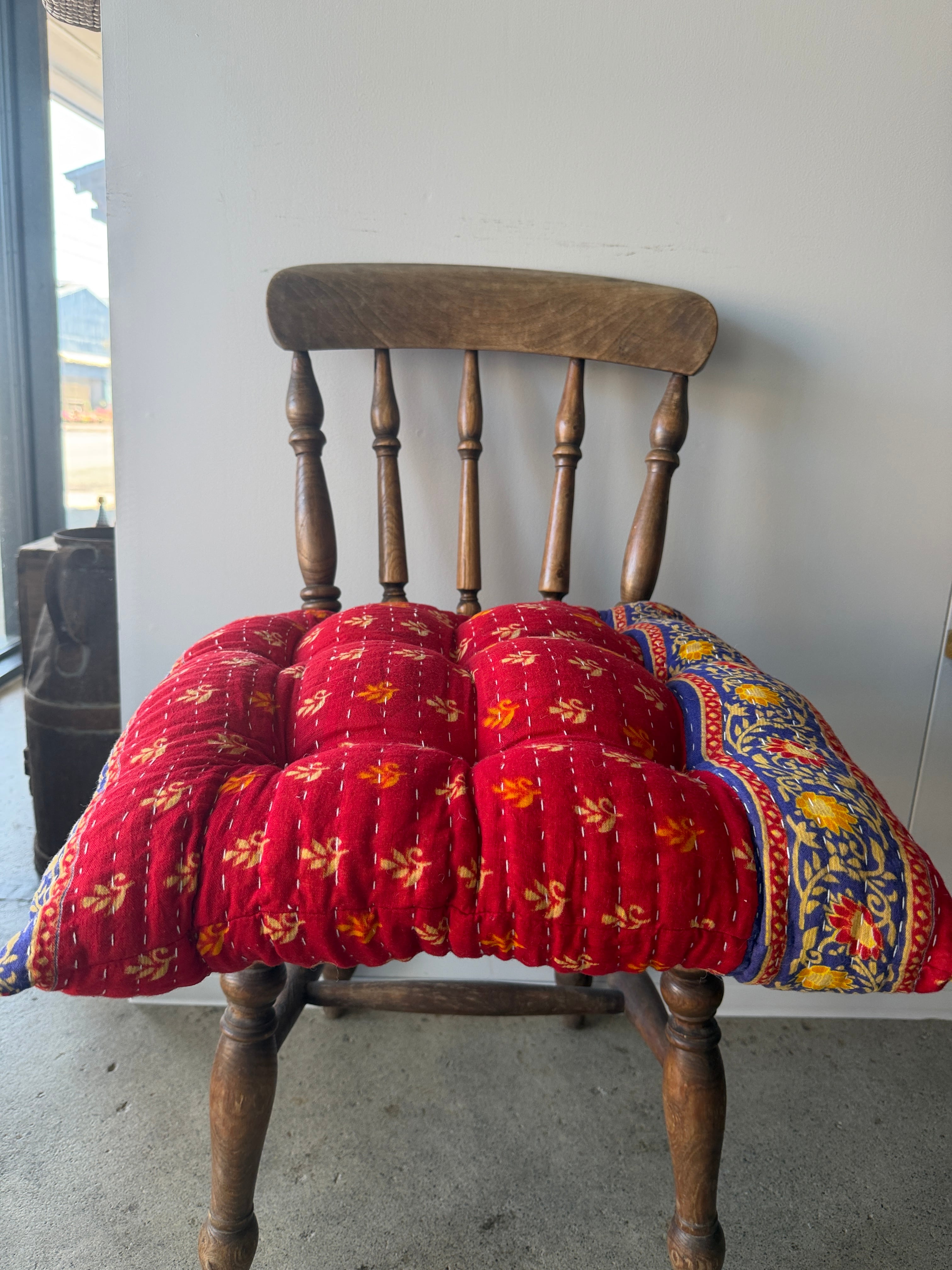コットン100%のヴィンテージキルトを使用した新作座布団が完成しました。