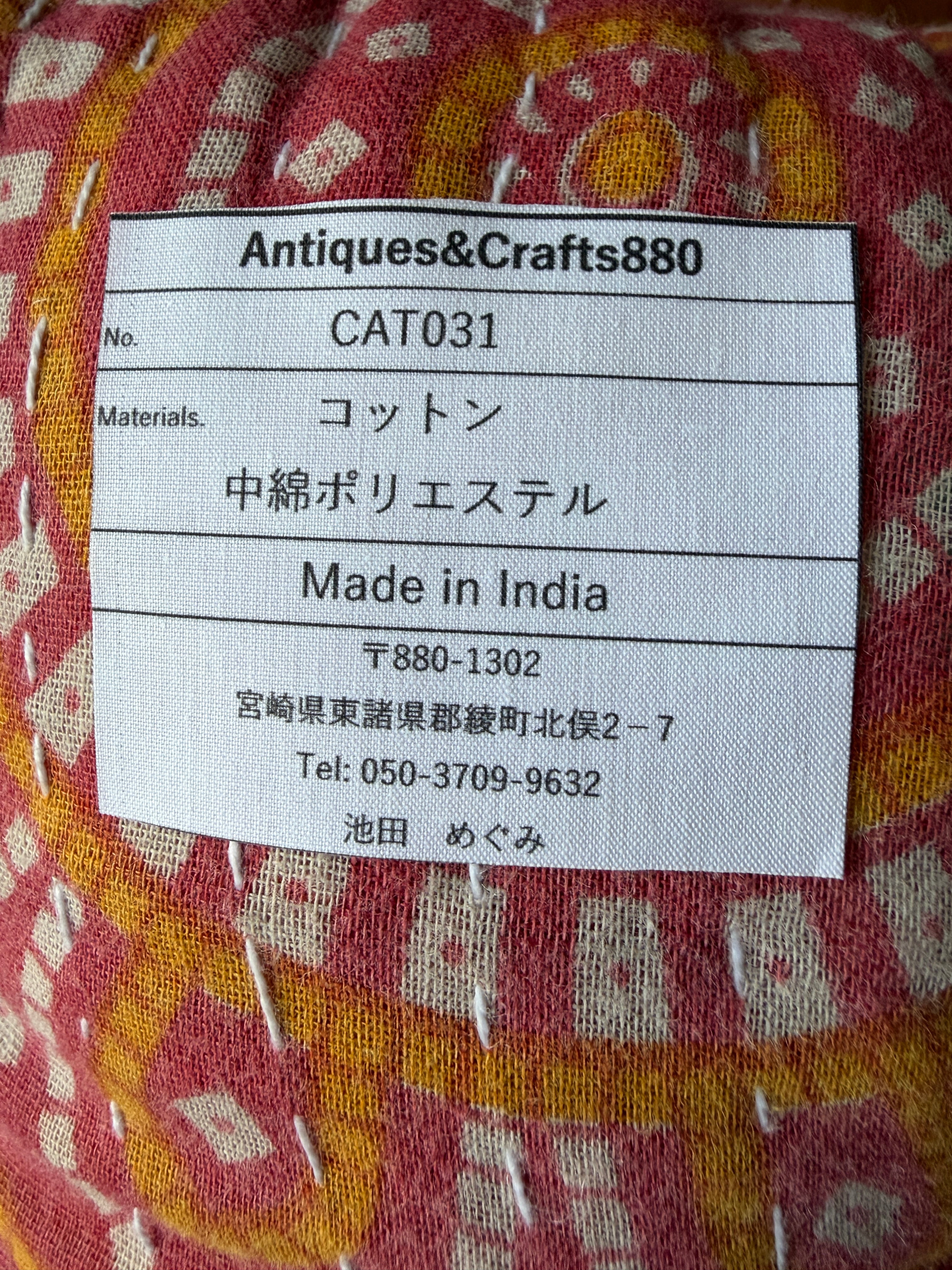 インドのジャイプルから届いたAntiques&Crafts880の完全オーダー商品です。ジャイプルの市場で1枚ずつ選び抜いたヴィンテージキルトを使用しています。