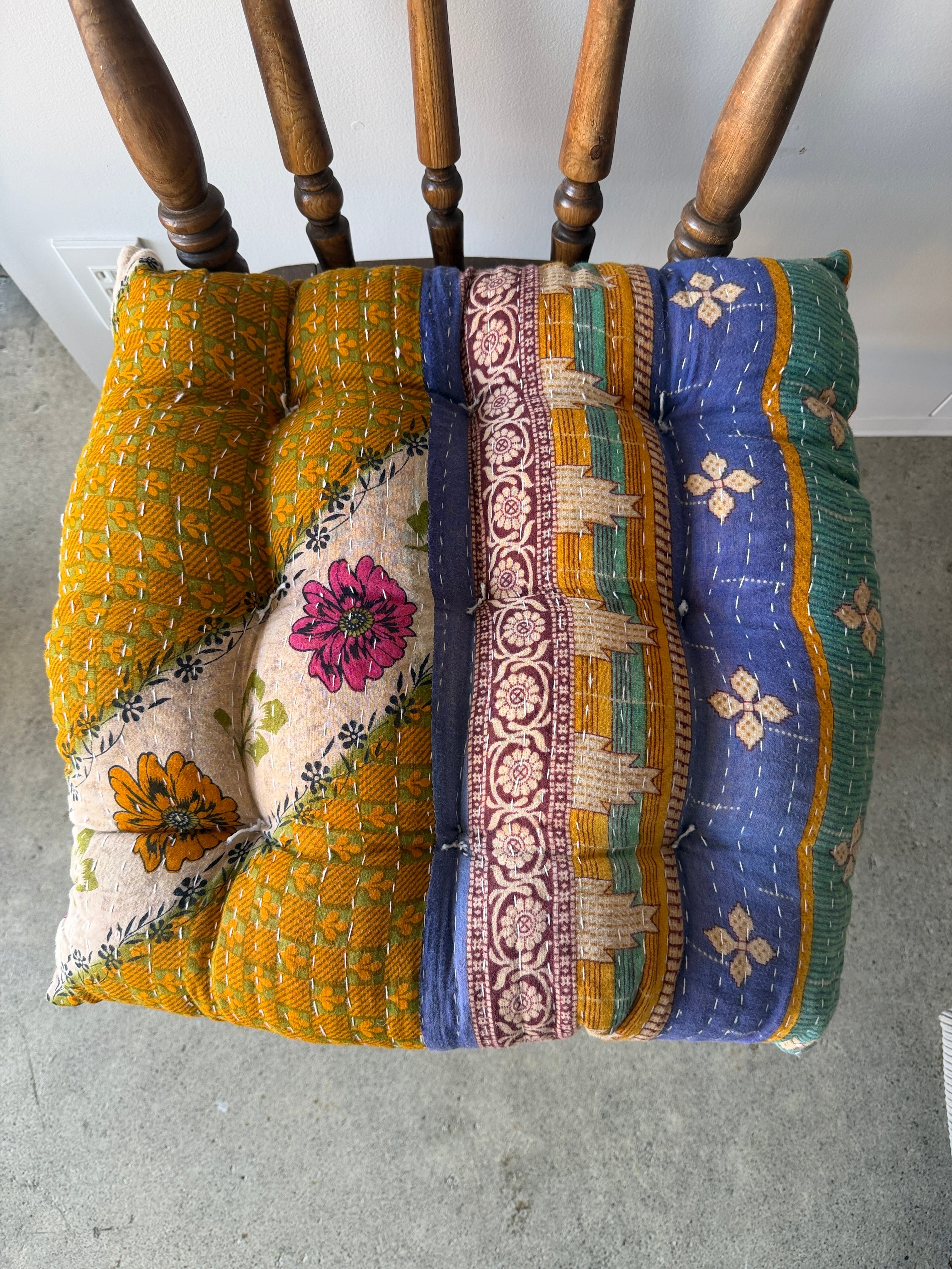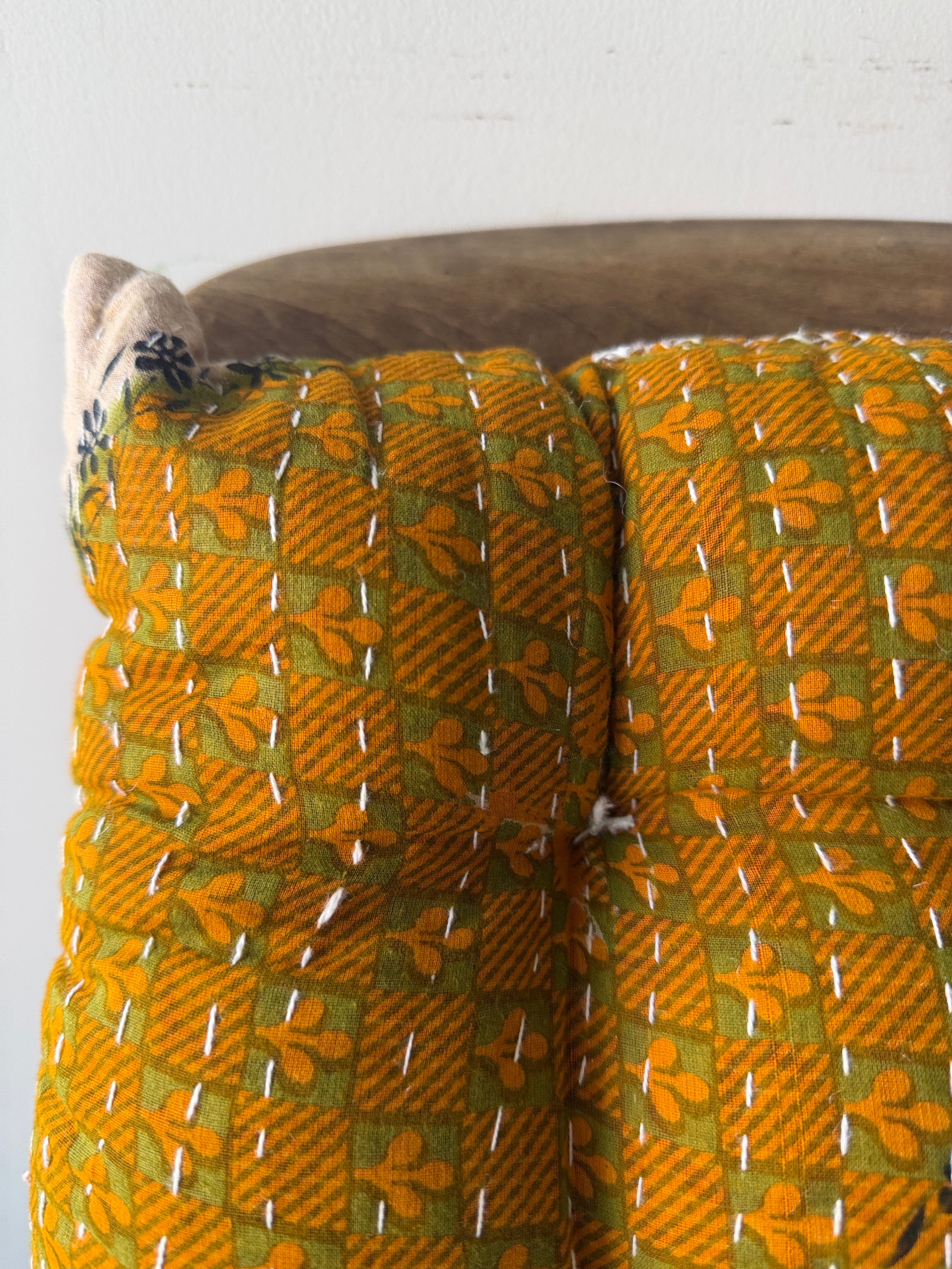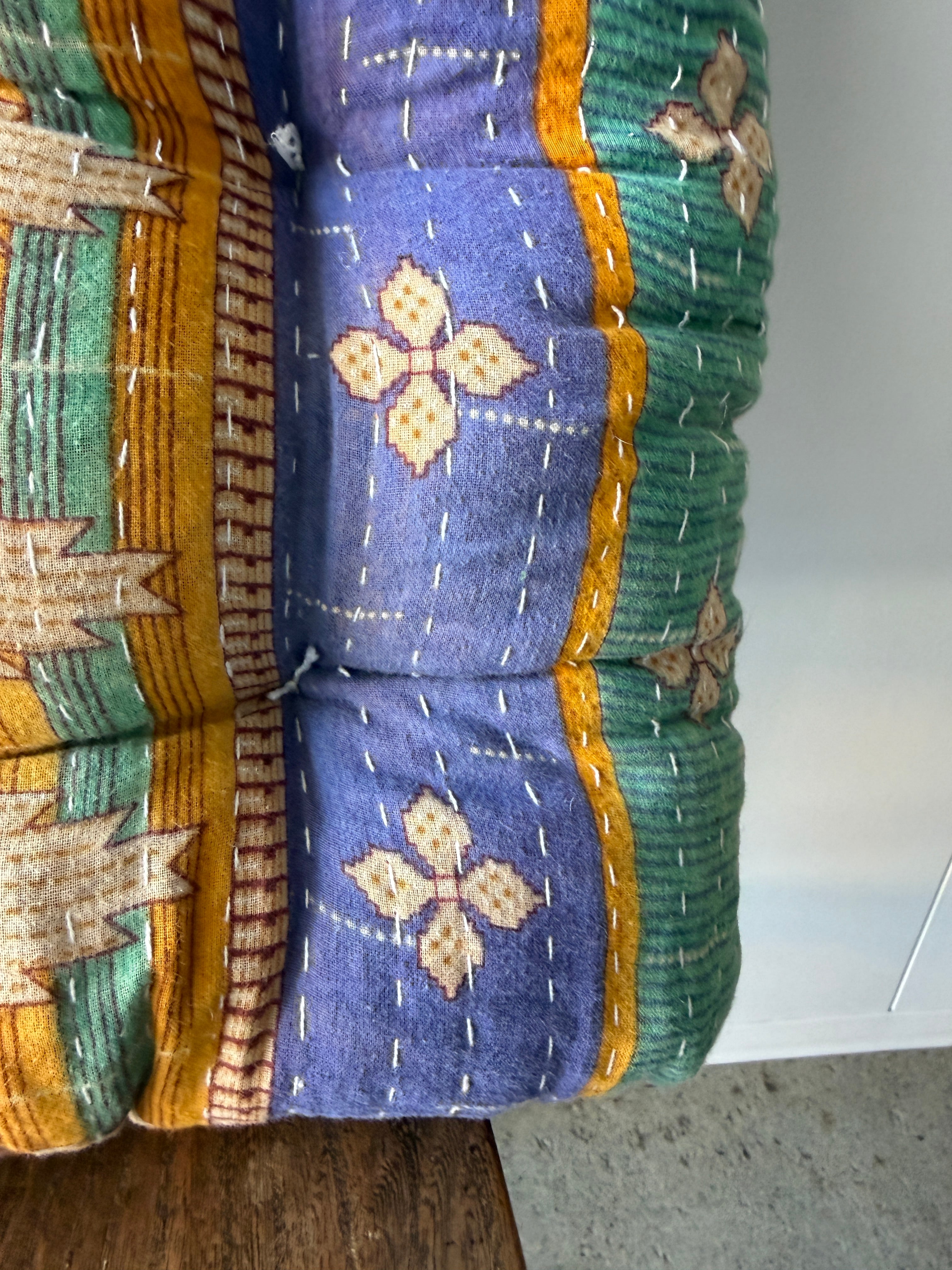 コットン100%のヴィンテージキルトを使用した新作座布団が完成しました。