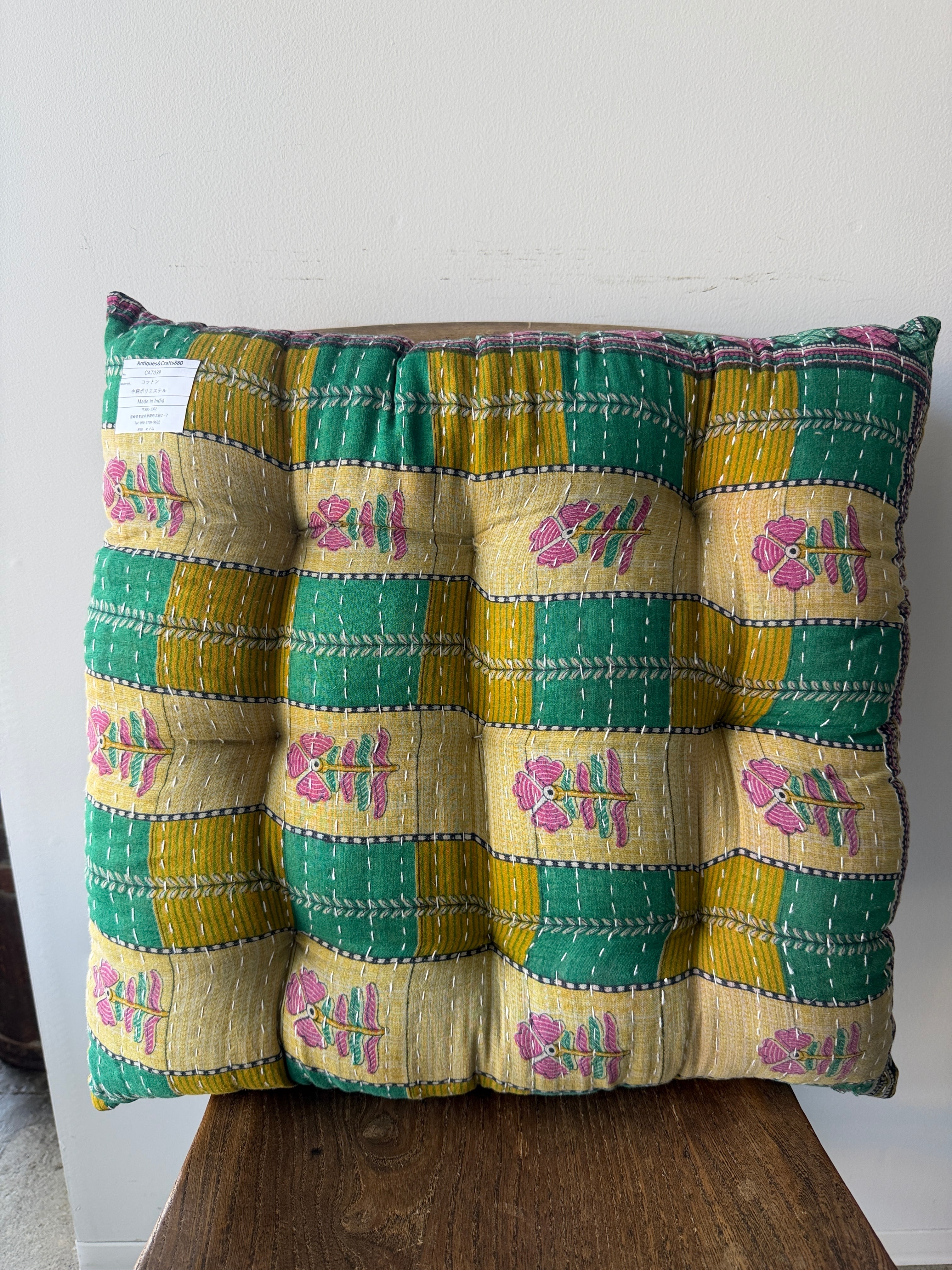 インド ヴィンテージ キルト 猫座布団 IN039
