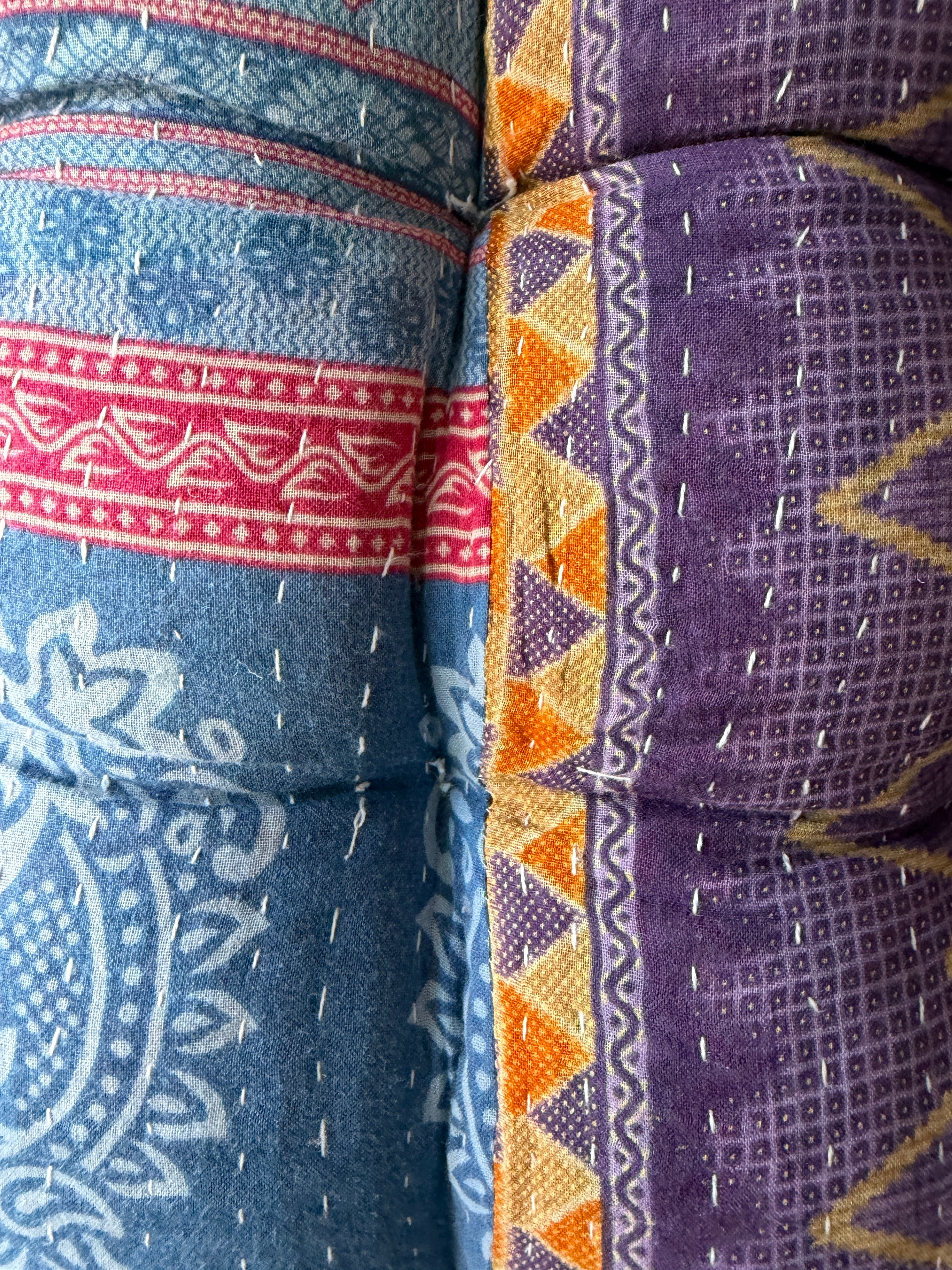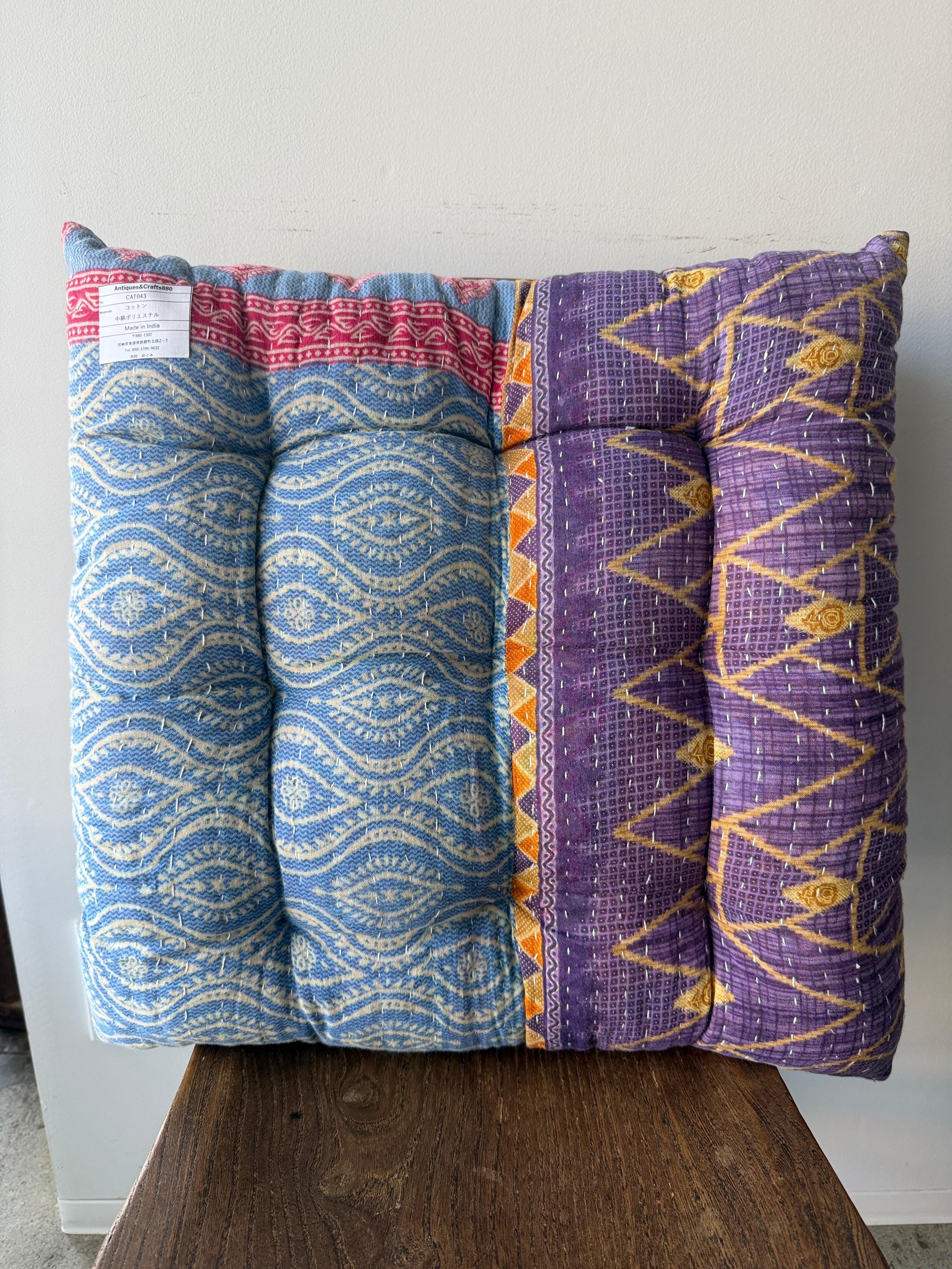 コットン100%のヴィンテージキルトを使用した新作座布団が完成しました。