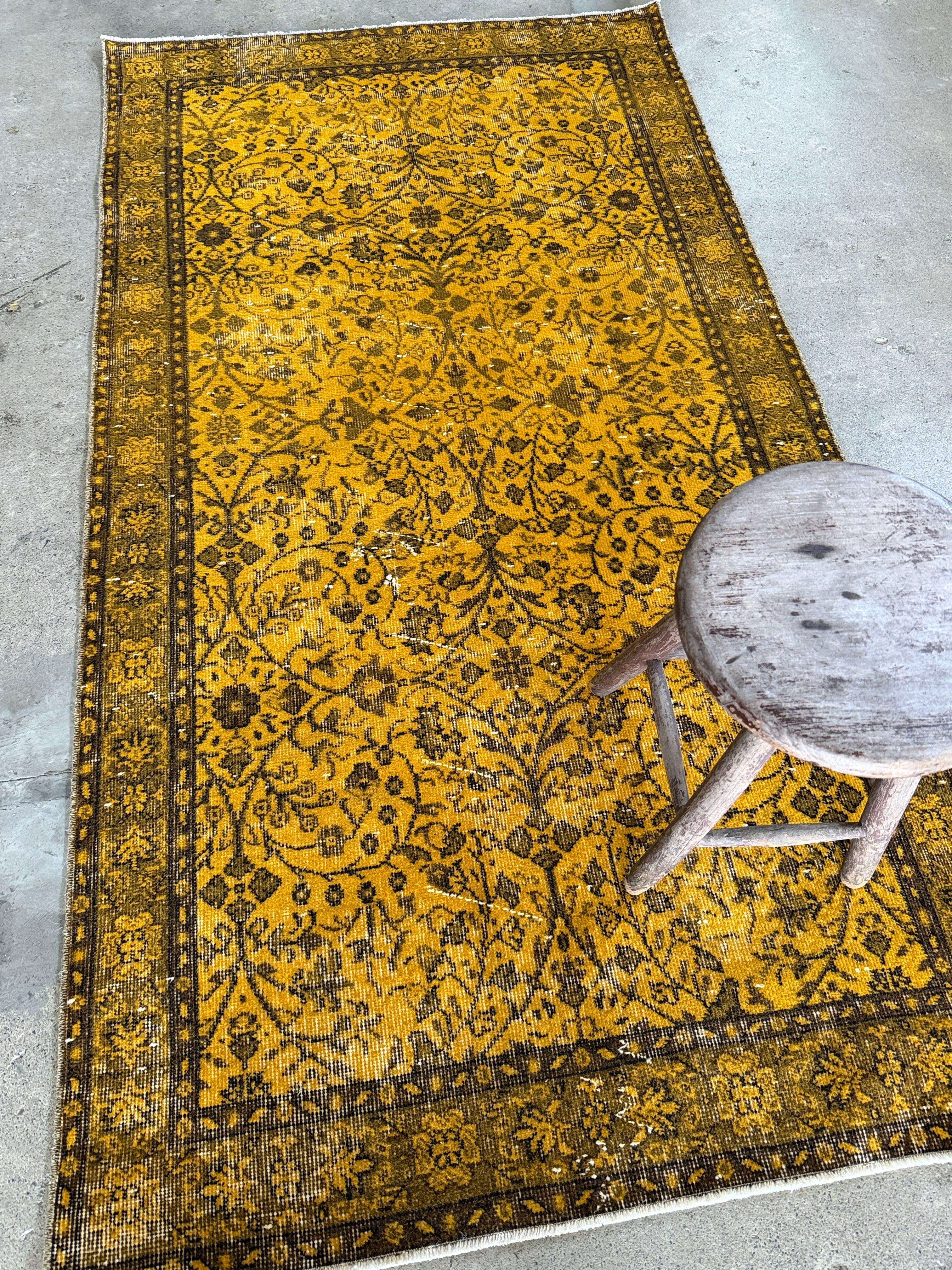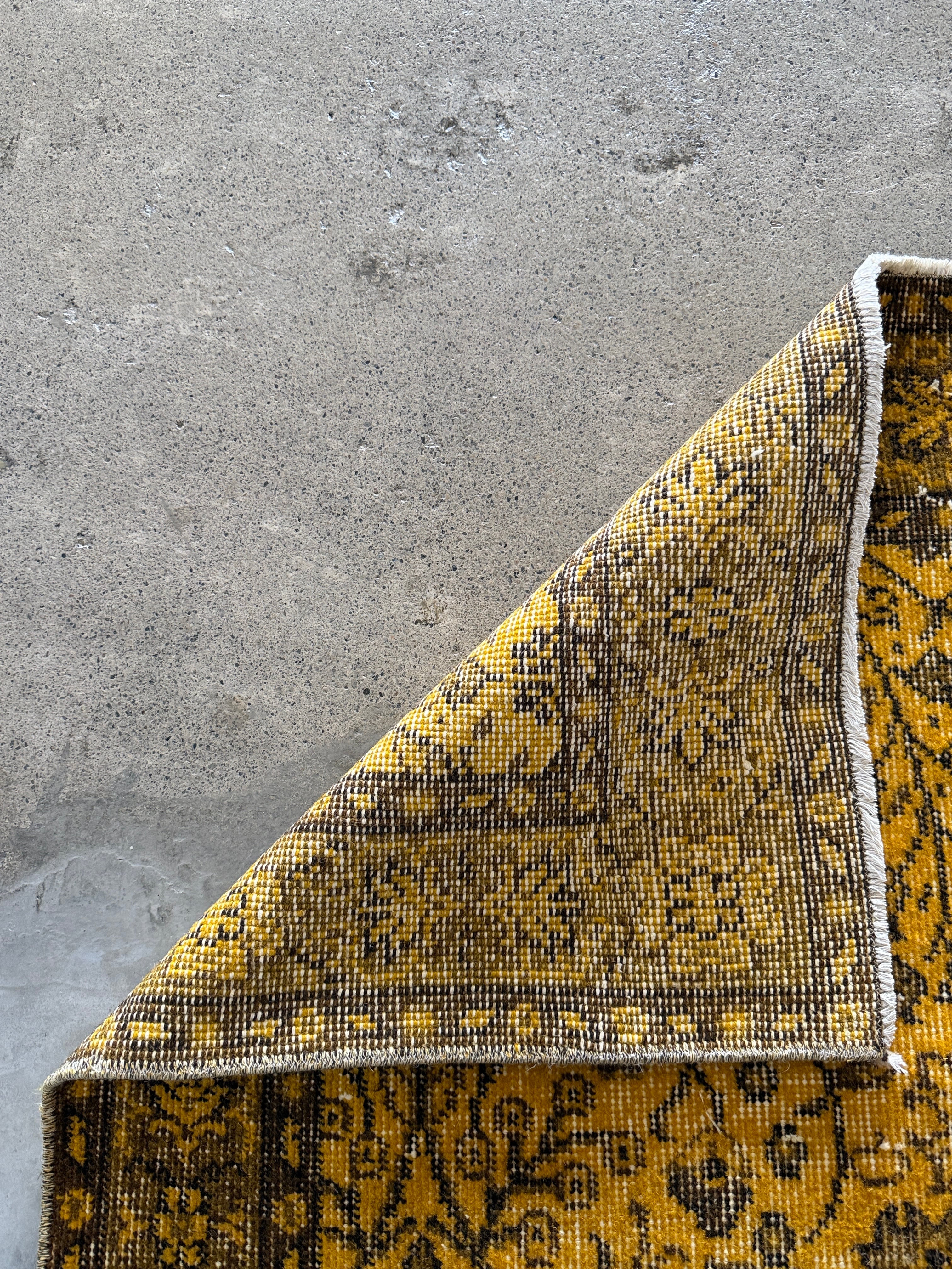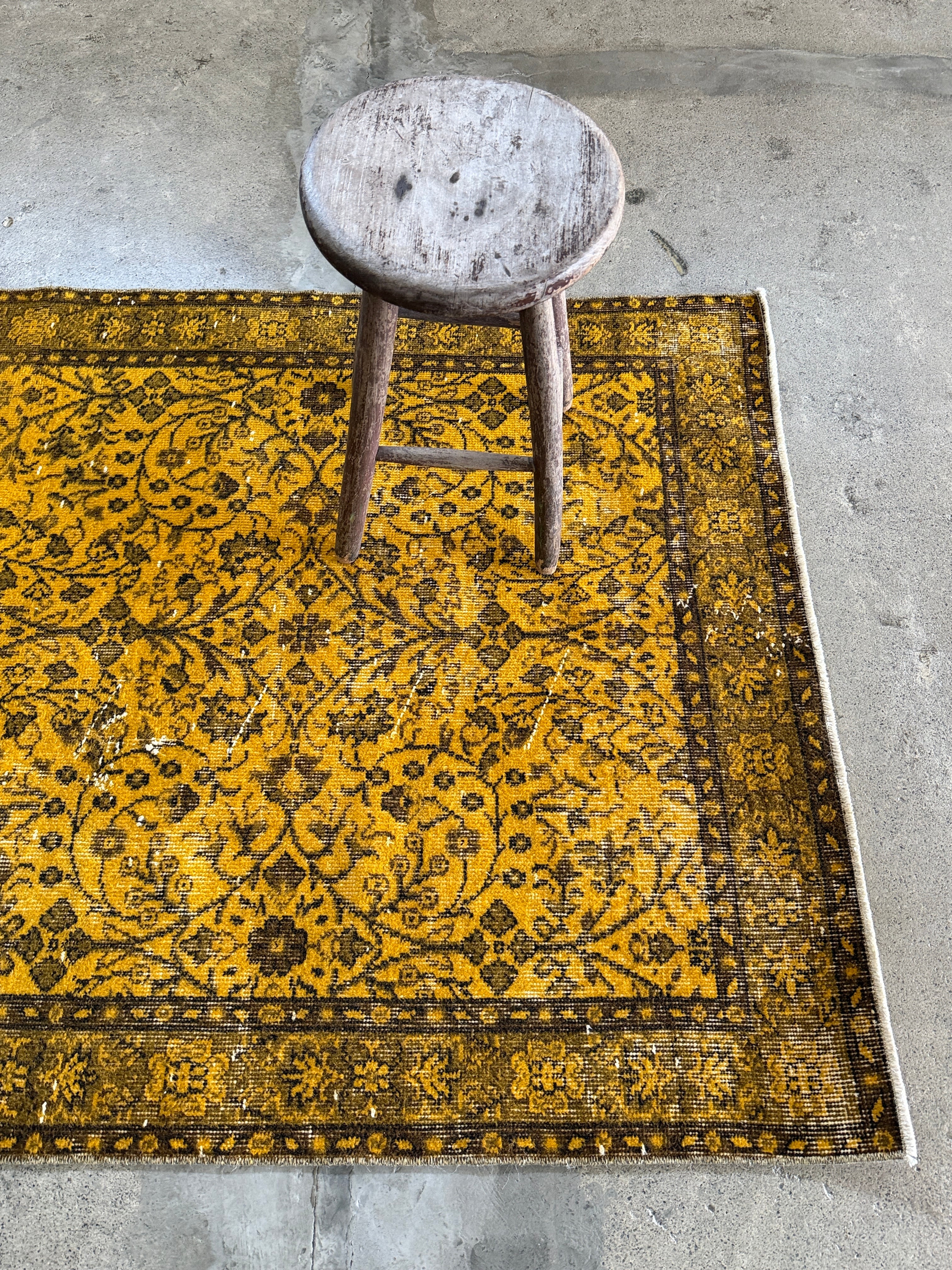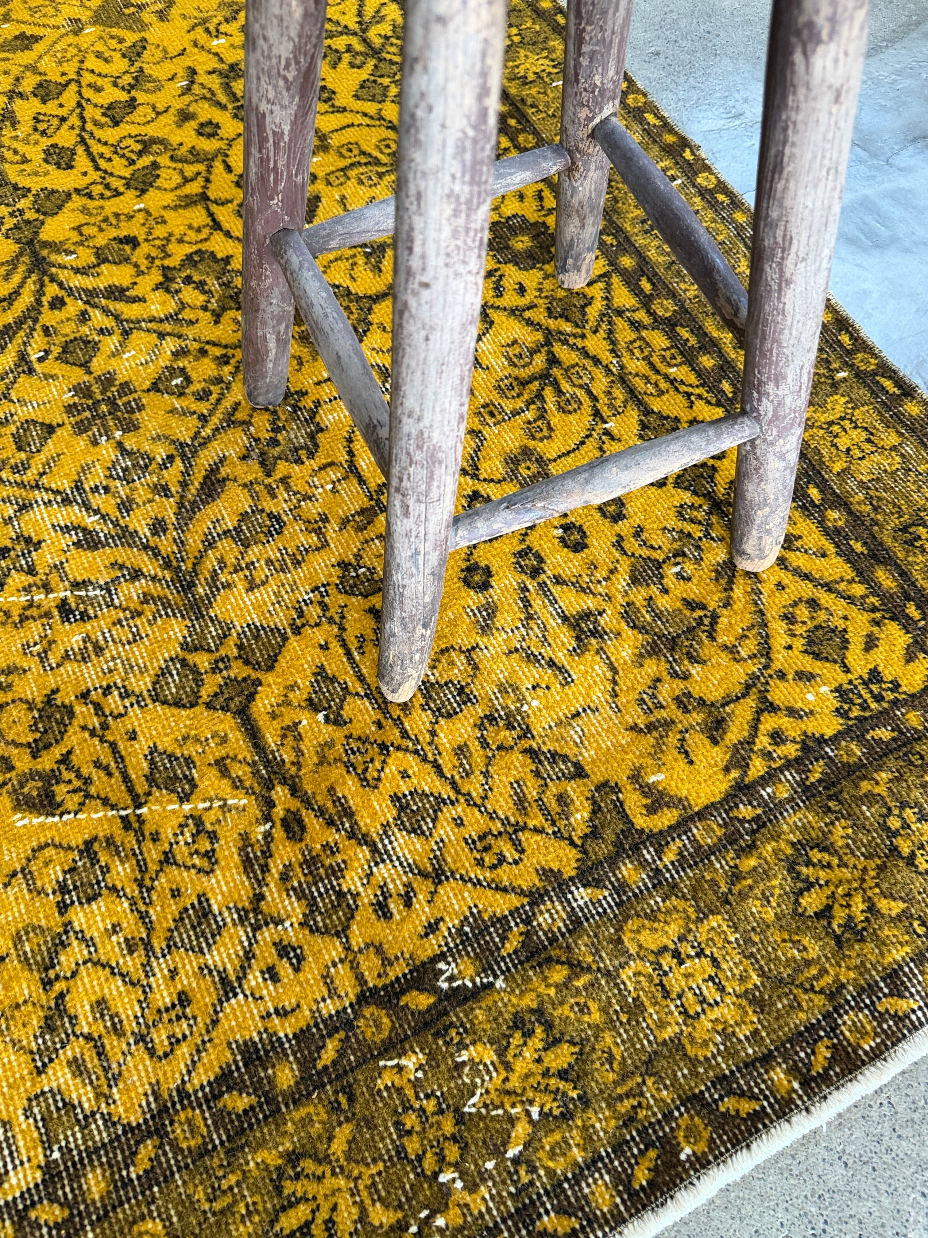 我が家でも永らく愛用している「イエローオーバーダイ」は個性がありながら、どんなインテリアにも馴染む優れものです。今回も信頼できるパートナーへオーダーし、2ヶ月かけてようやく思い通りのデザインに仕上がりました!今やイエロー絨毯はヴィンテージトルコラグ界でも貴重な存在となり、完全オーダーでなければ好みのモノは見つからなくなりました。