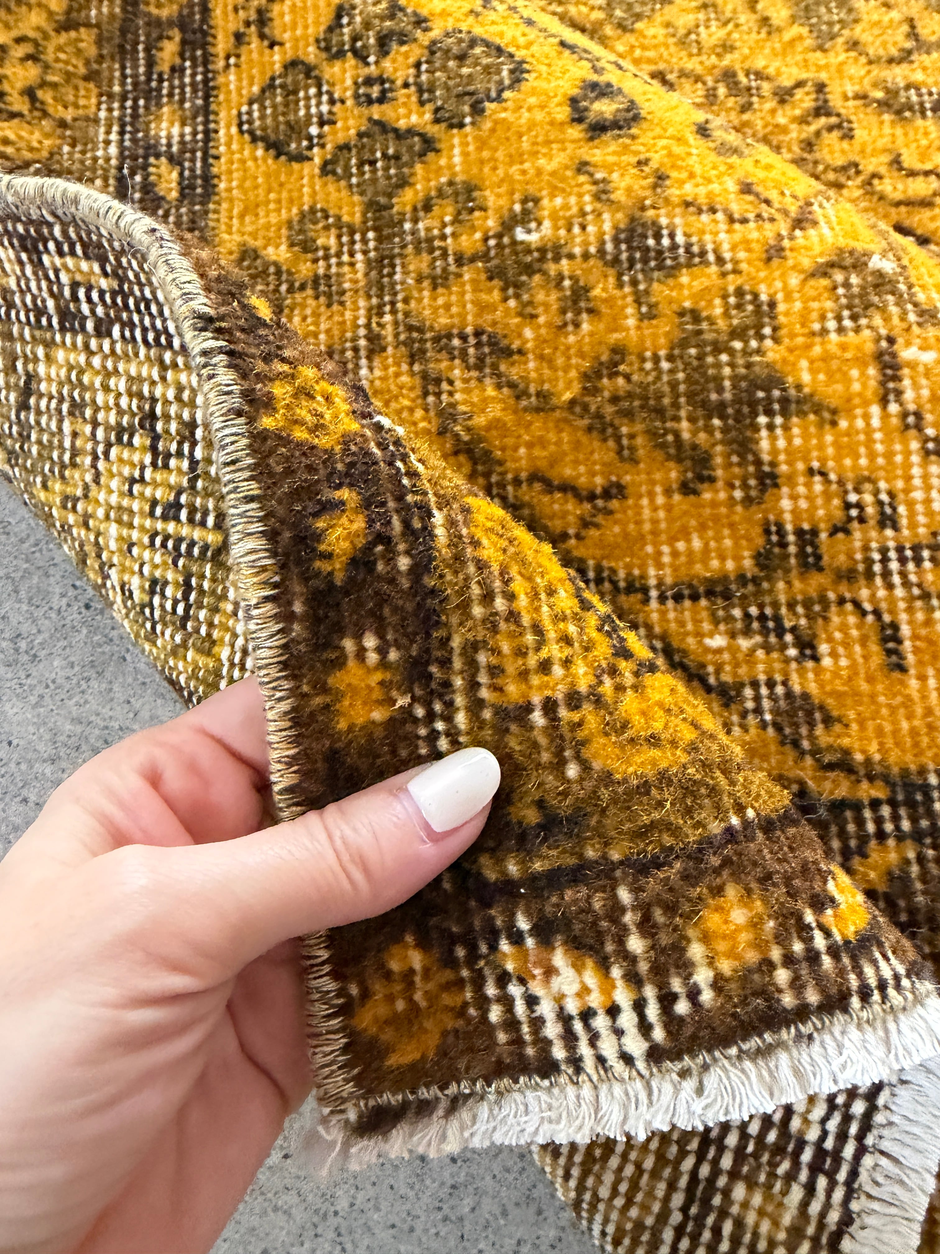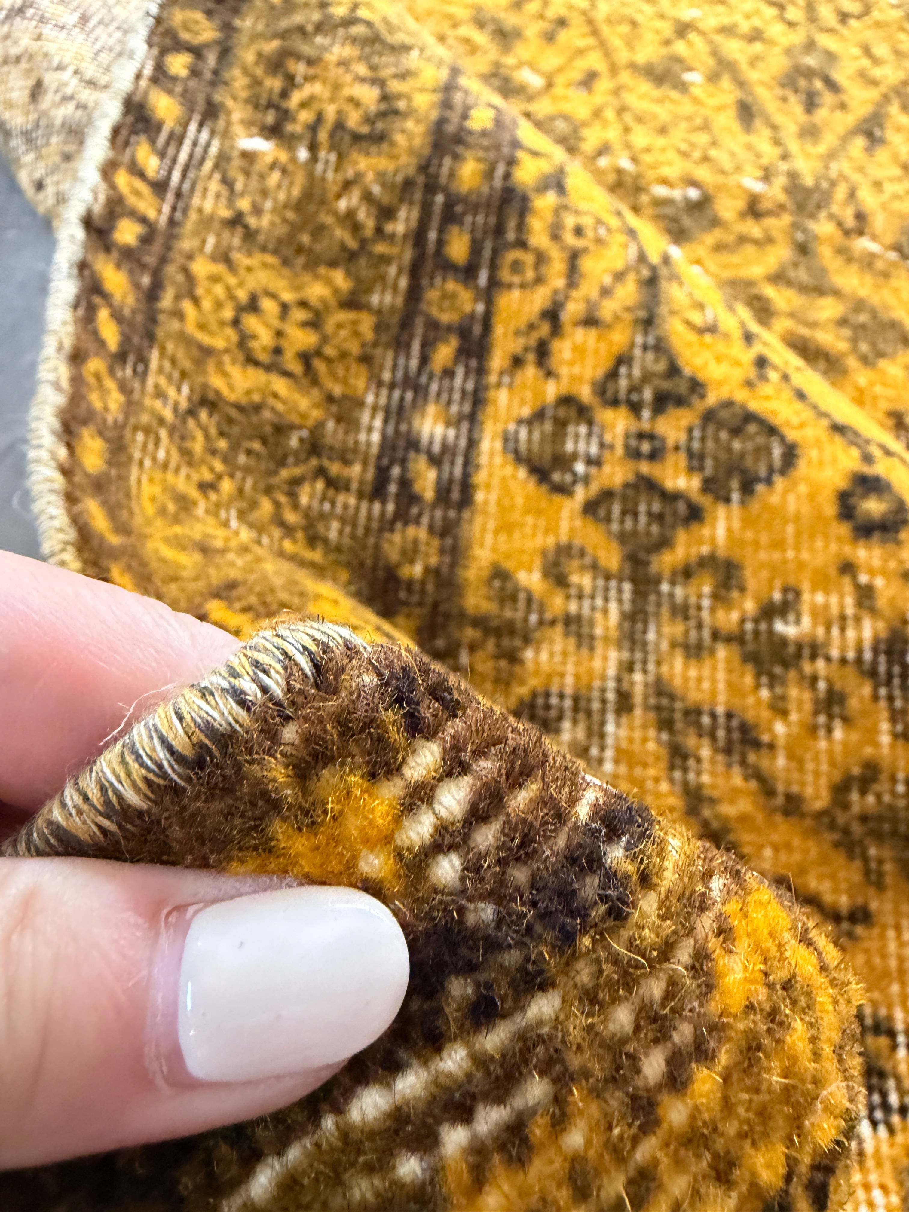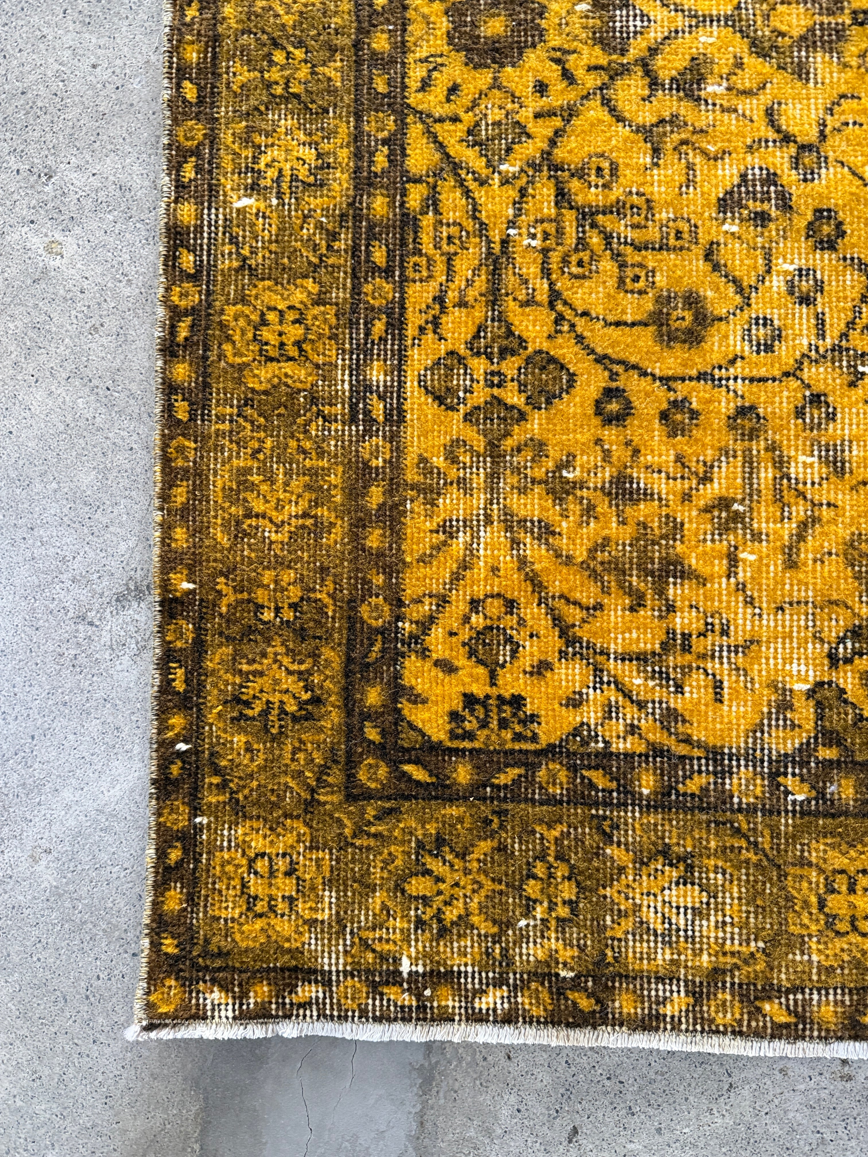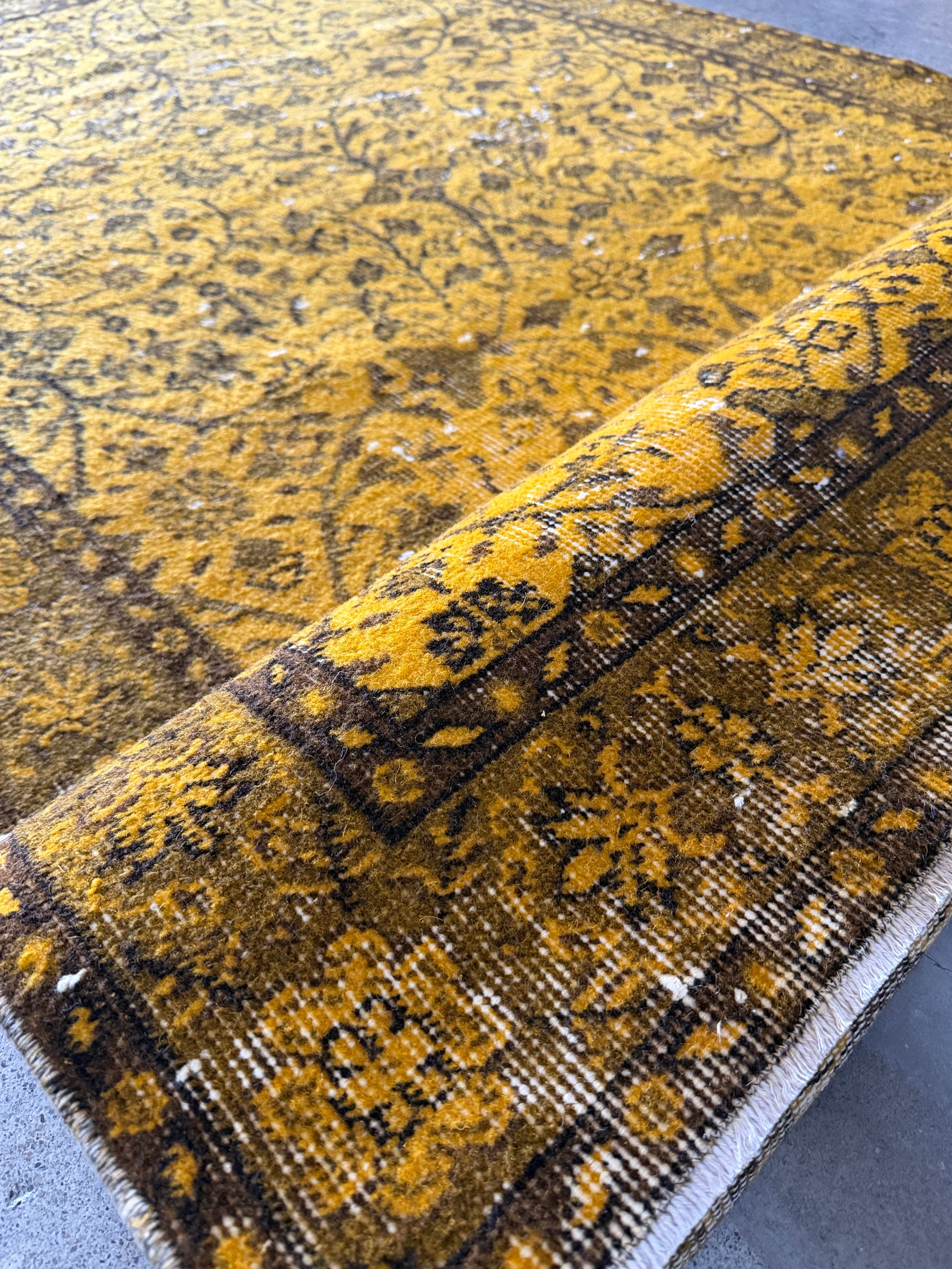 我が家でも永らく愛用している「イエローオーバーダイ」は個性がありながら、どんなインテリアにも馴染む優れものです。今回も信頼できるパートナーへオーダーし、2ヶ月かけてようやく思い通りのデザインに仕上がりました!今やイエロー絨毯はヴィンテージトルコラグ界でも貴重な存在となり、完全オーダーでなければ好みのモノは見つからなくなりました。