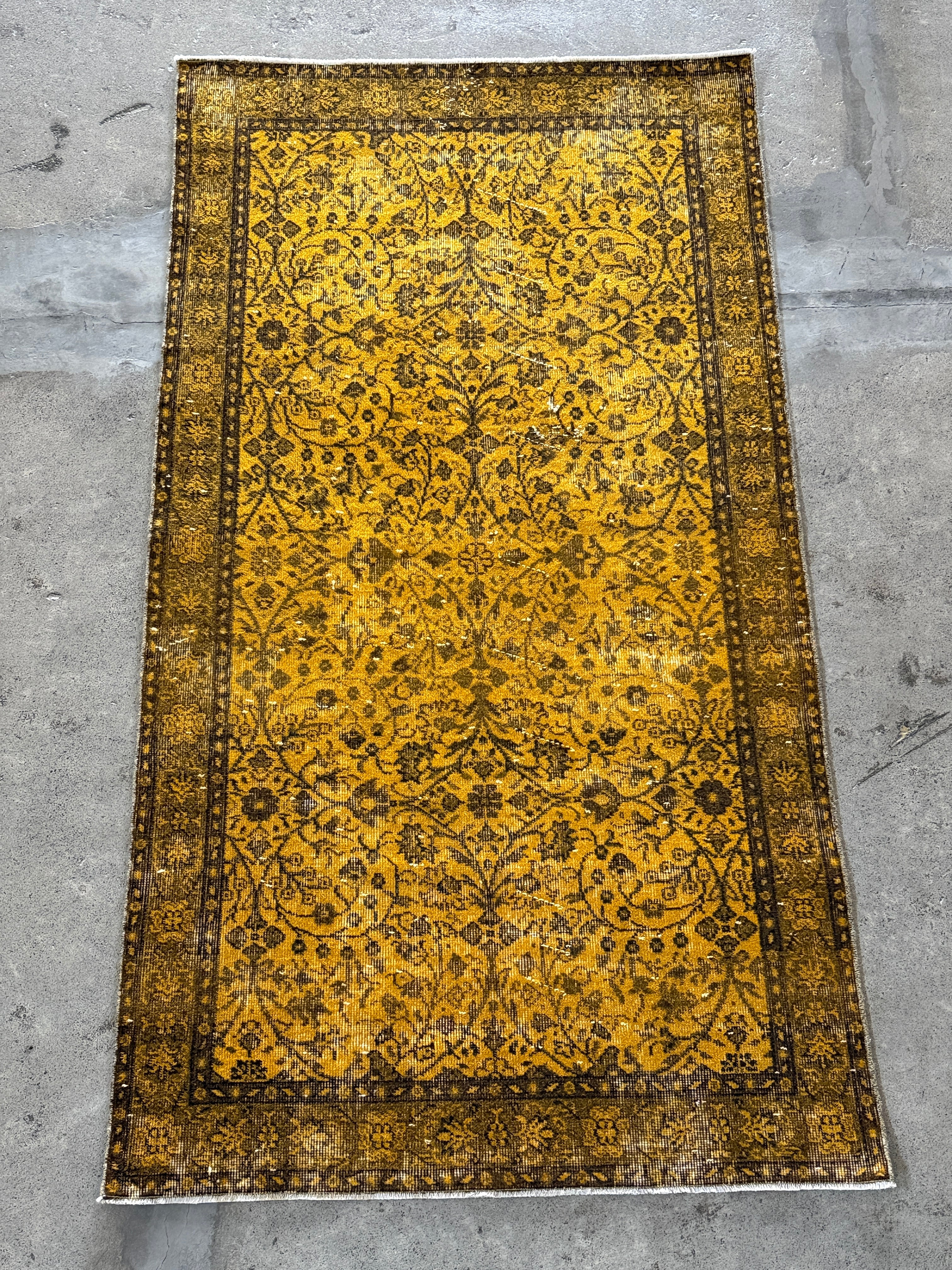 【送料込み】ヴィンテージ トルコラグ イスパルタ絨毯 オーバーダイ 112x211 TRB4228