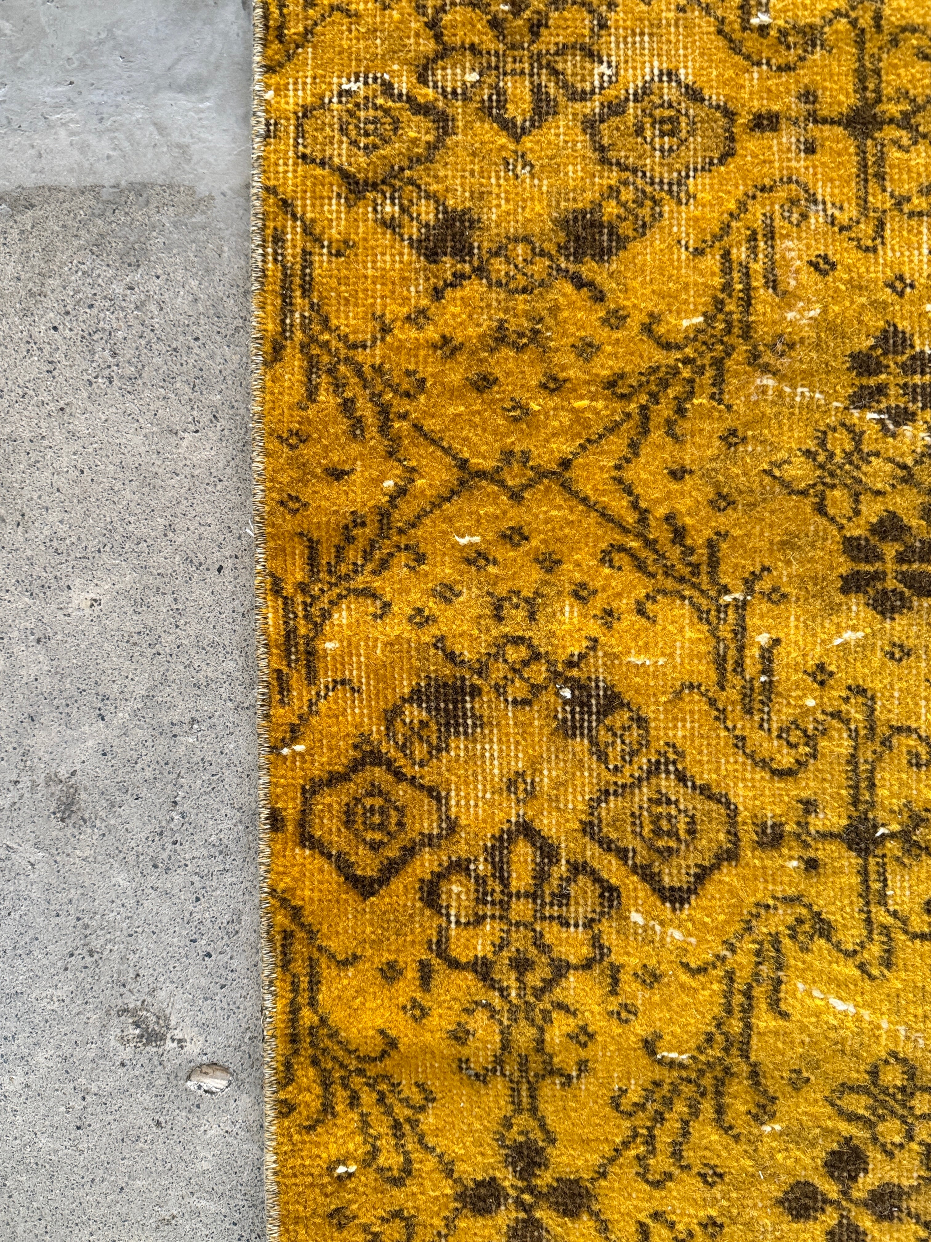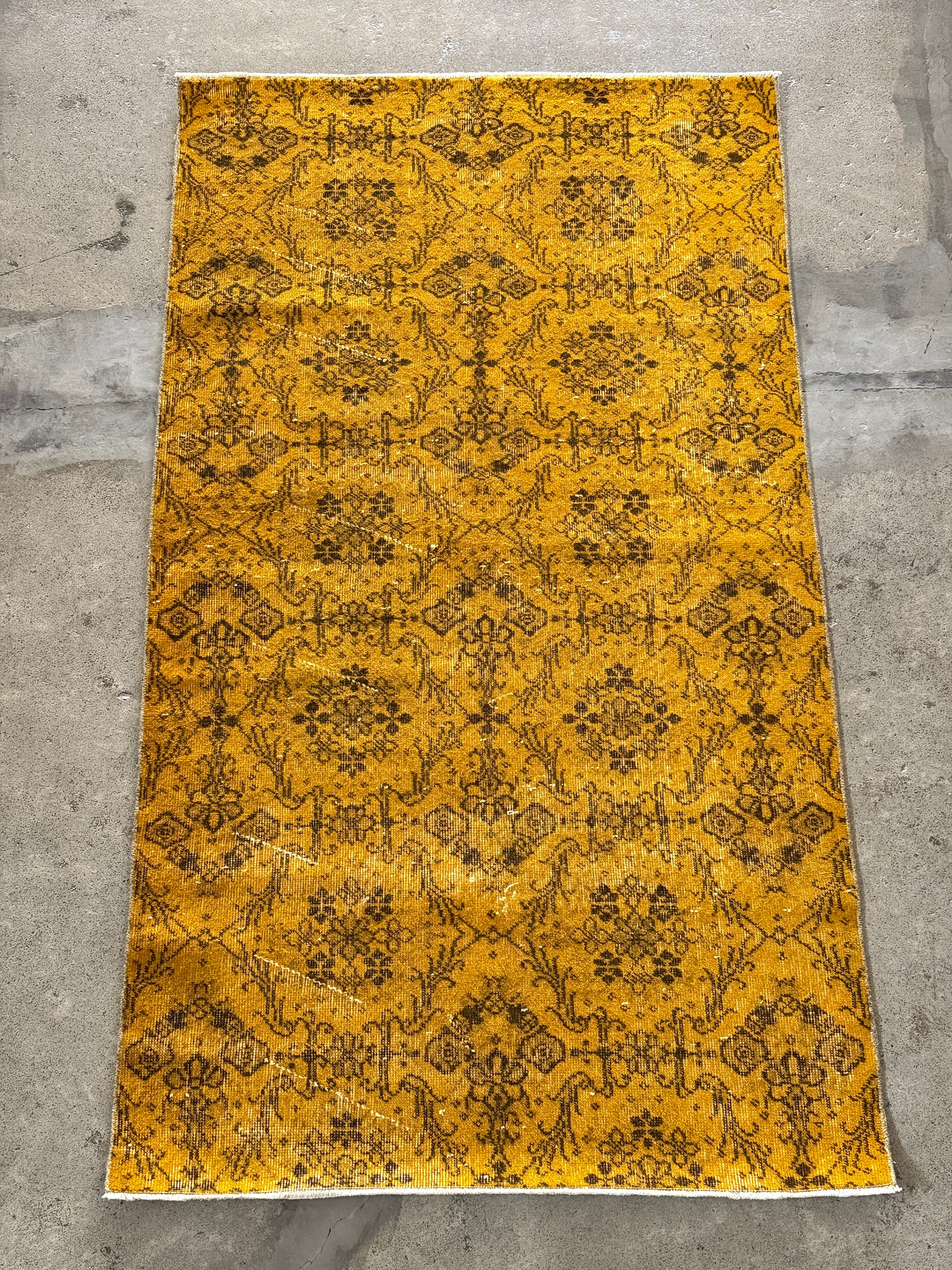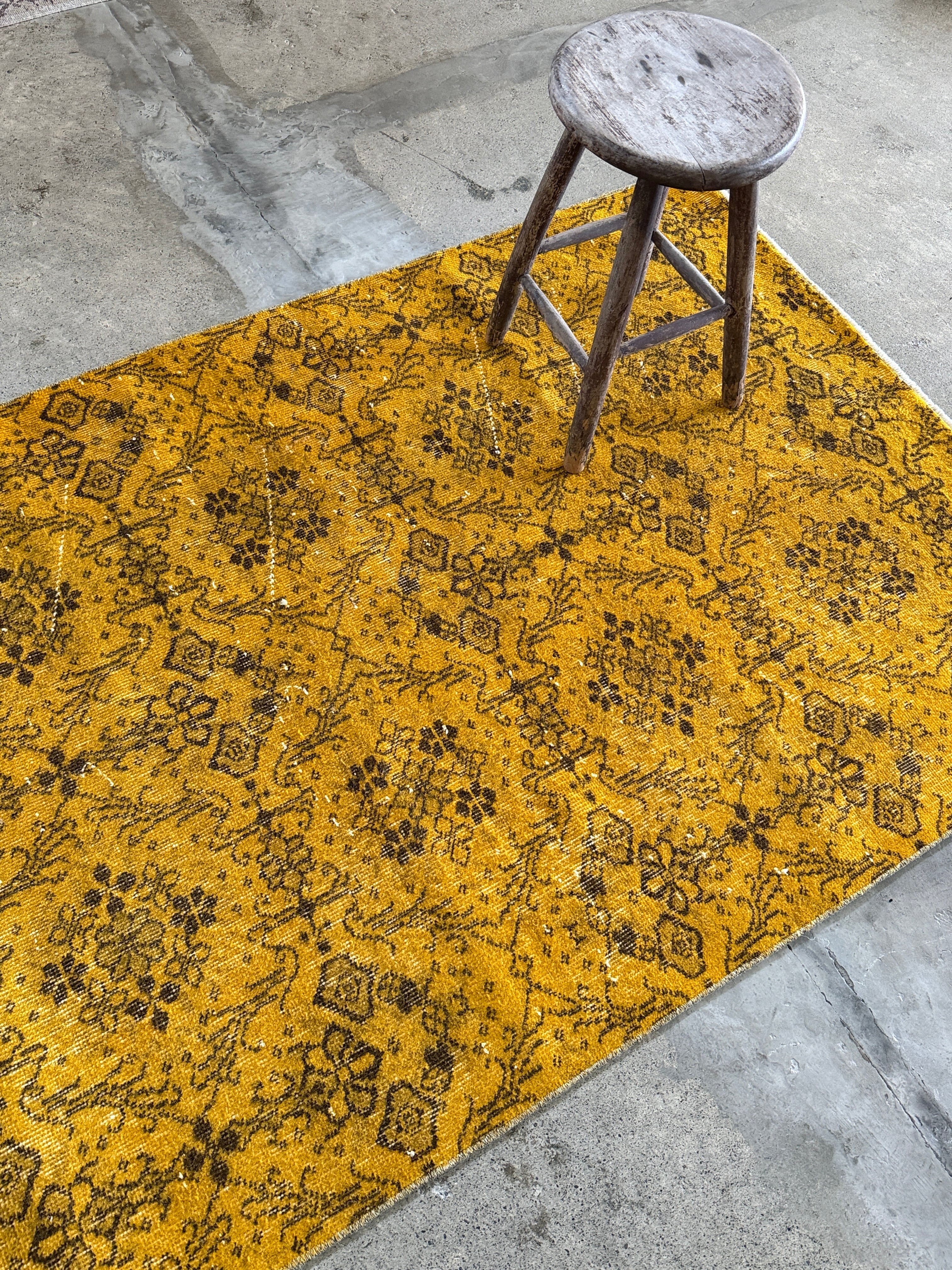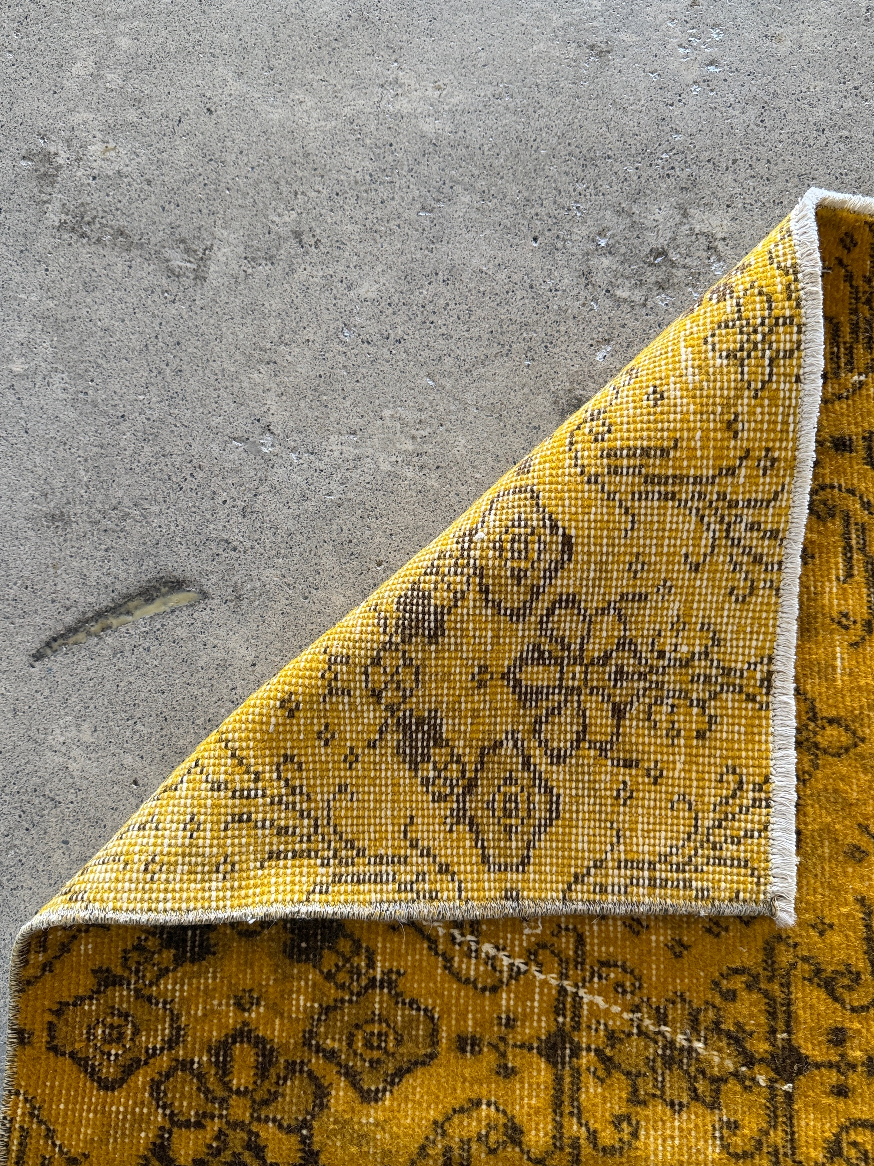 我が家でも永らく愛用している「イエローオーバーダイ」は個性がありながら、どんなインテリアにも馴染む優れものです。今回も信頼できるパートナーへオーダーし、2ヶ月かけてようやく思い通りのデザインに仕上がりました!今やイエロー絨毯はヴィンテージトルコラグ界でも貴重な存在となり、完全オーダーでなければ好みのモノは見つからなくなりました。