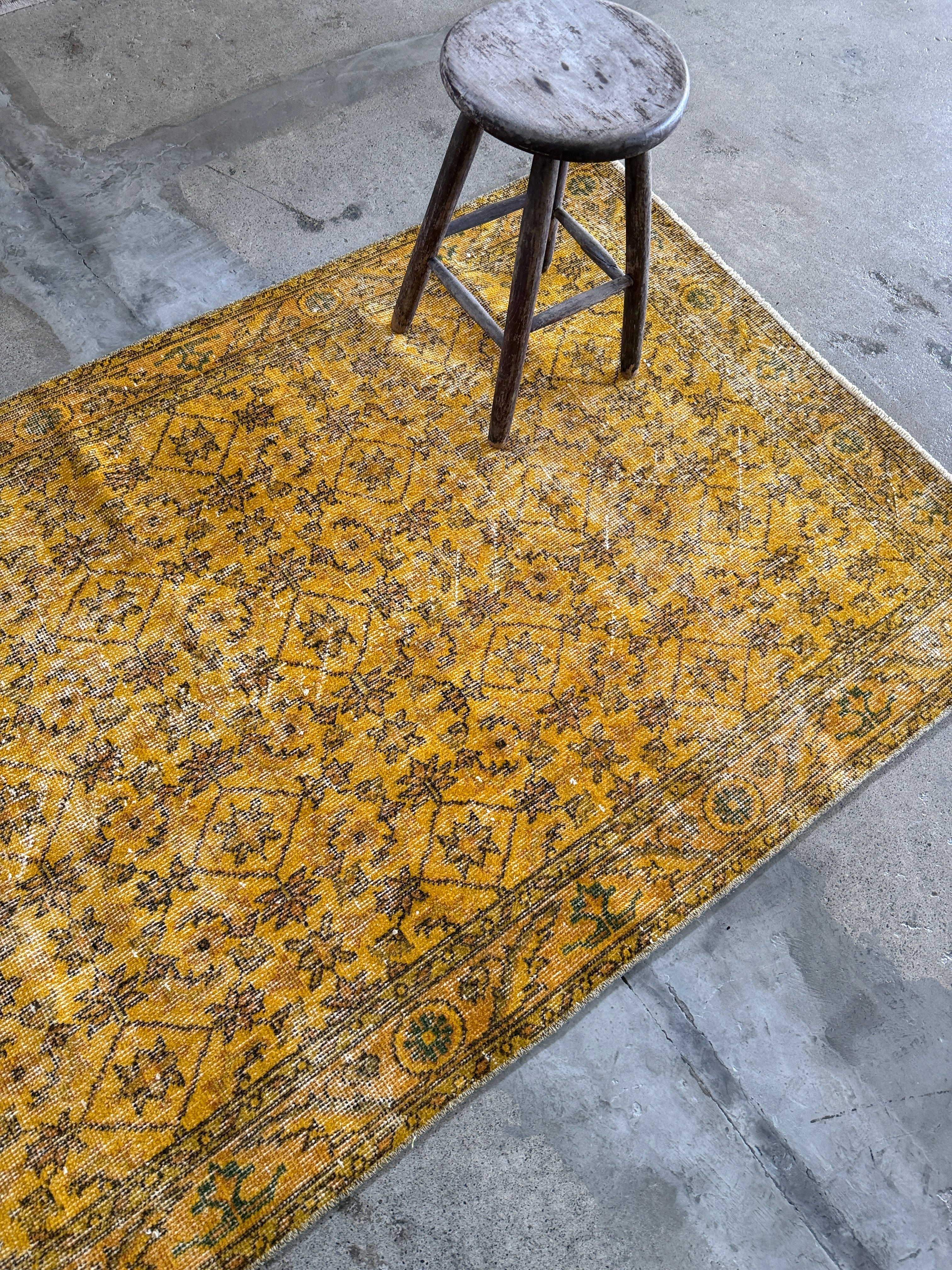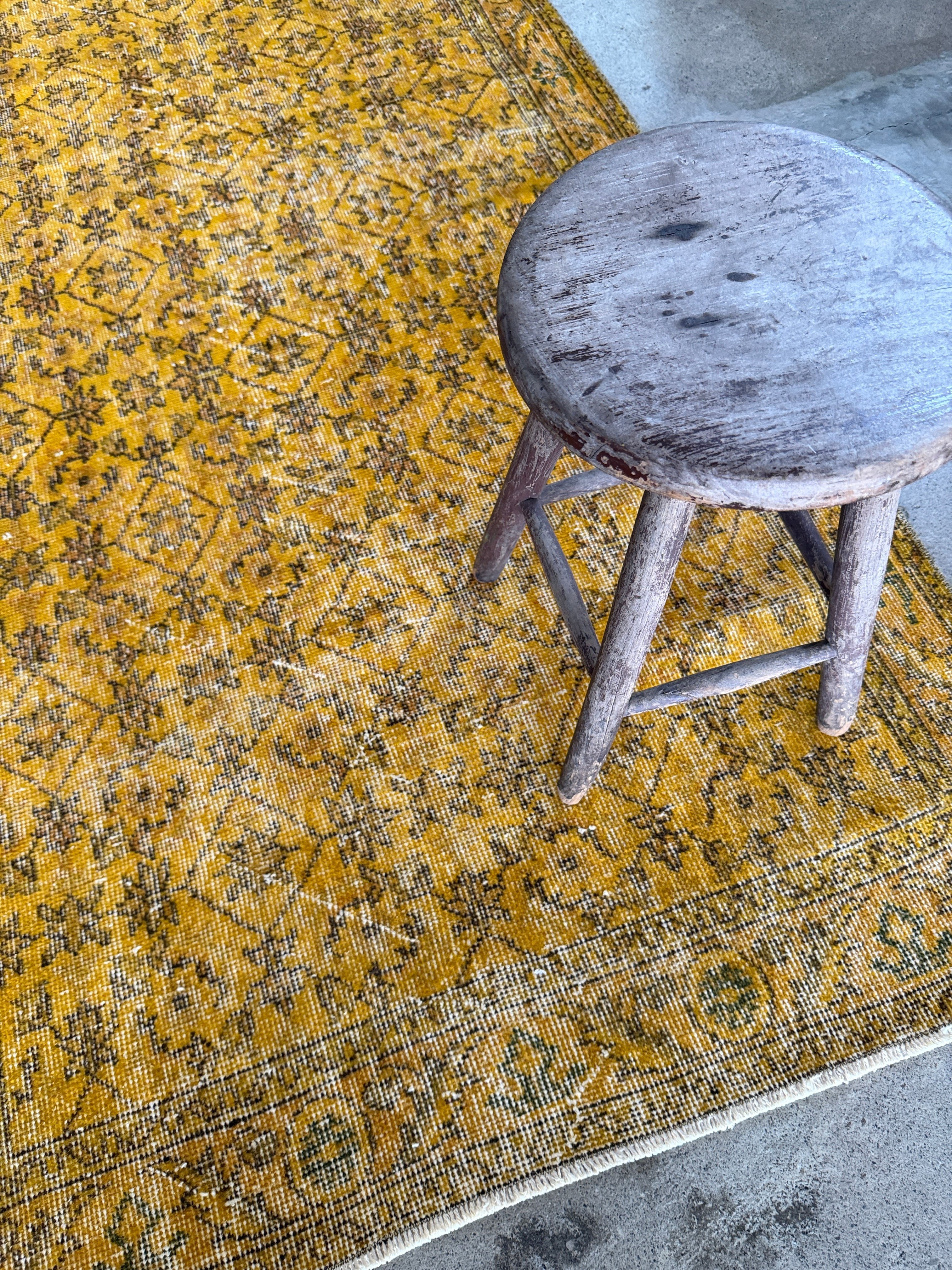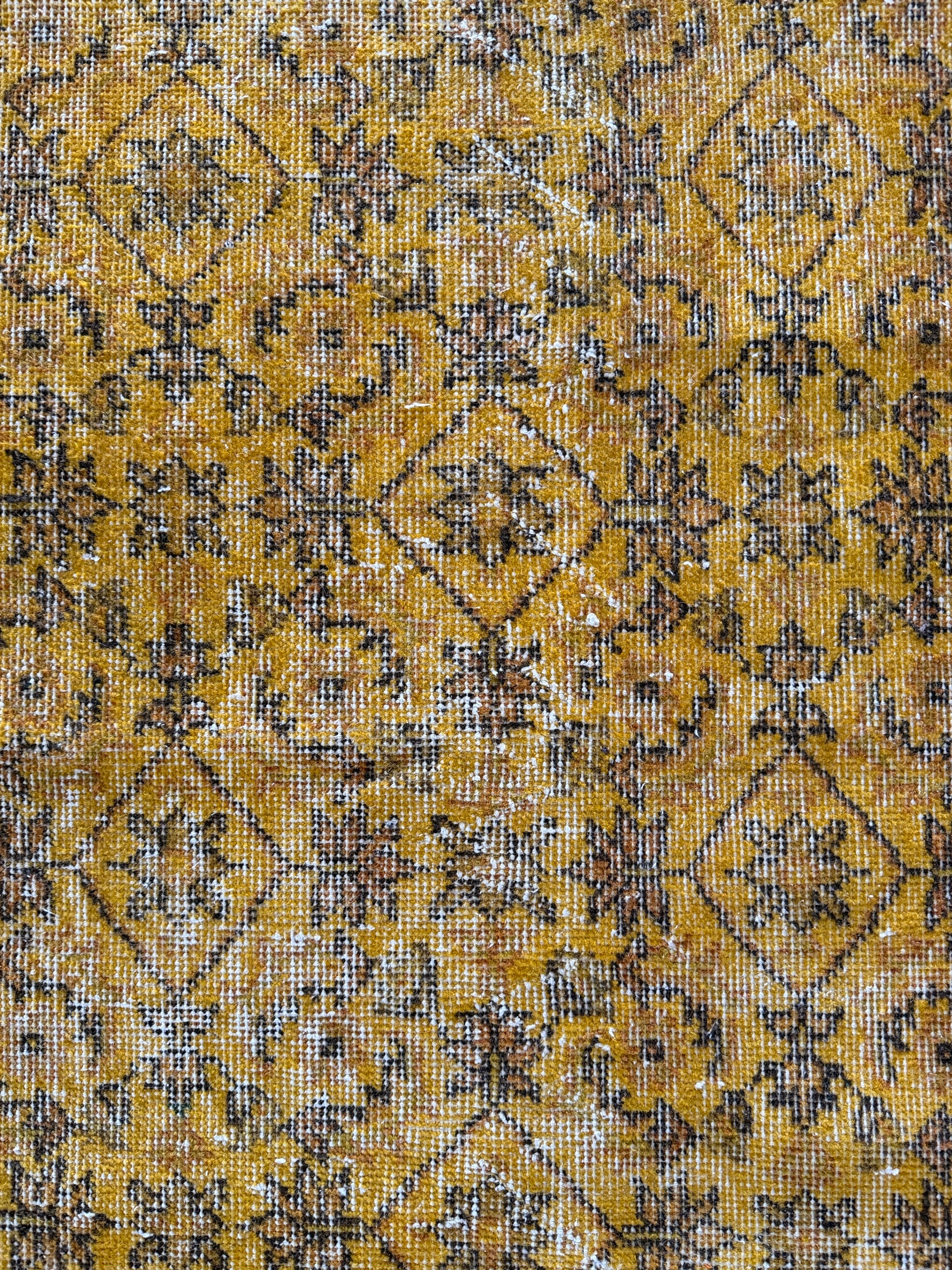 我が家でも永らく愛用している「イエローオーバーダイ」は個性がありながら、どんなインテリアにも馴染む優れものです。今回も信頼できるパートナーへオーダーし、2ヶ月かけてようやく思い通りのデザインに仕上がりました!今やイエロー絨毯はヴィンテージトルコラグ界でも貴重な存在となり、完全オーダーでなければ好みのモノは見つからなくなりました。