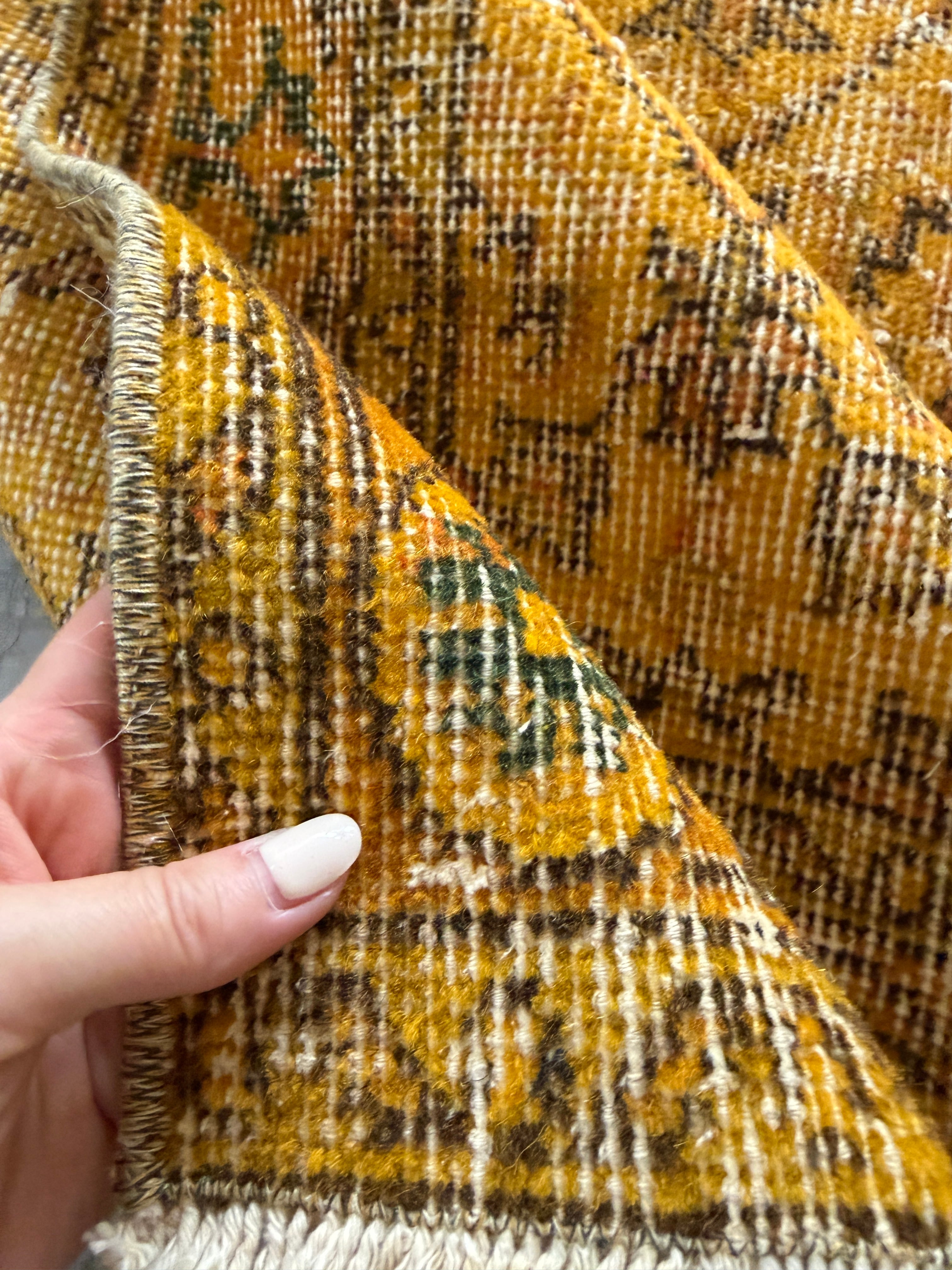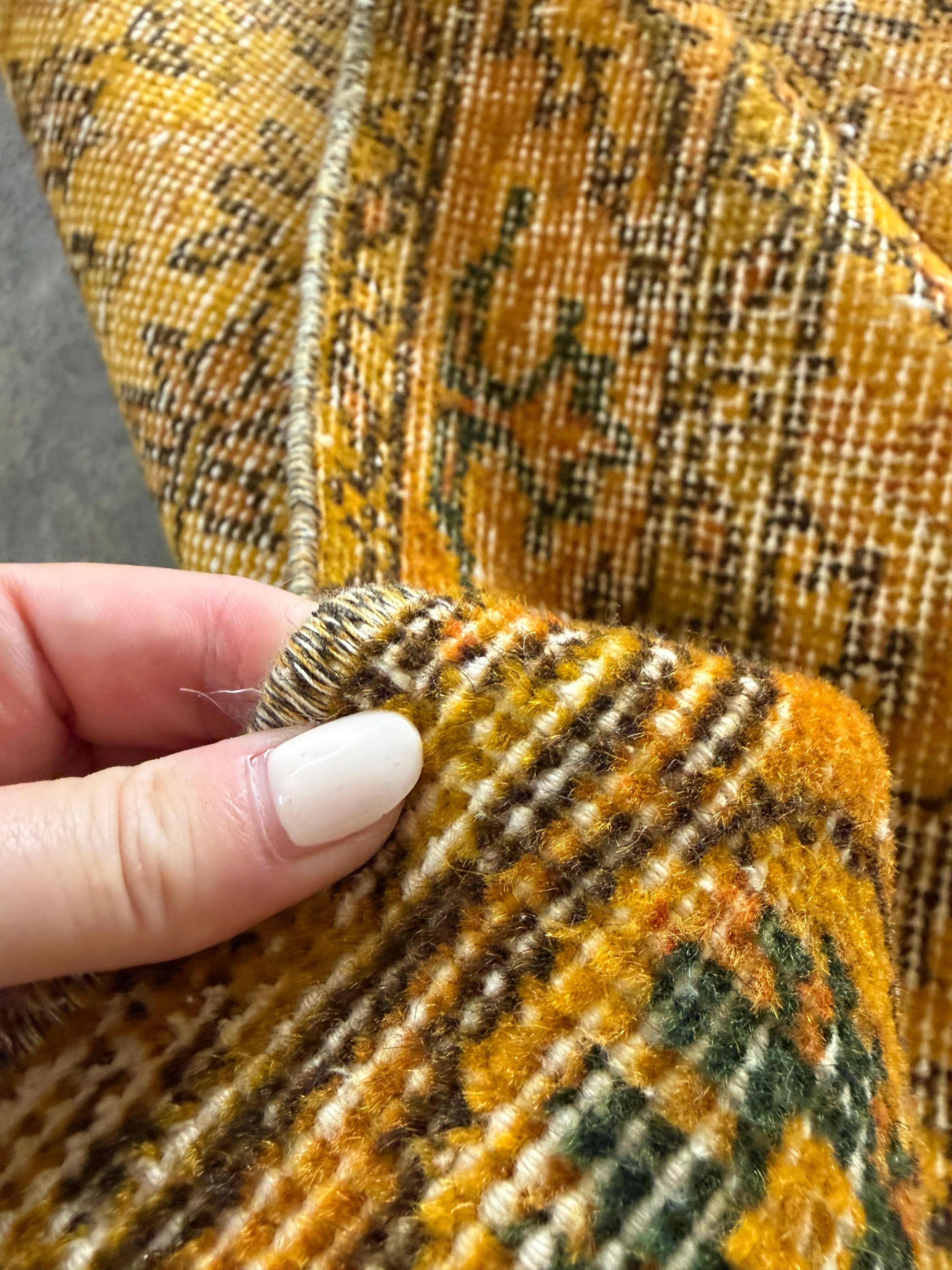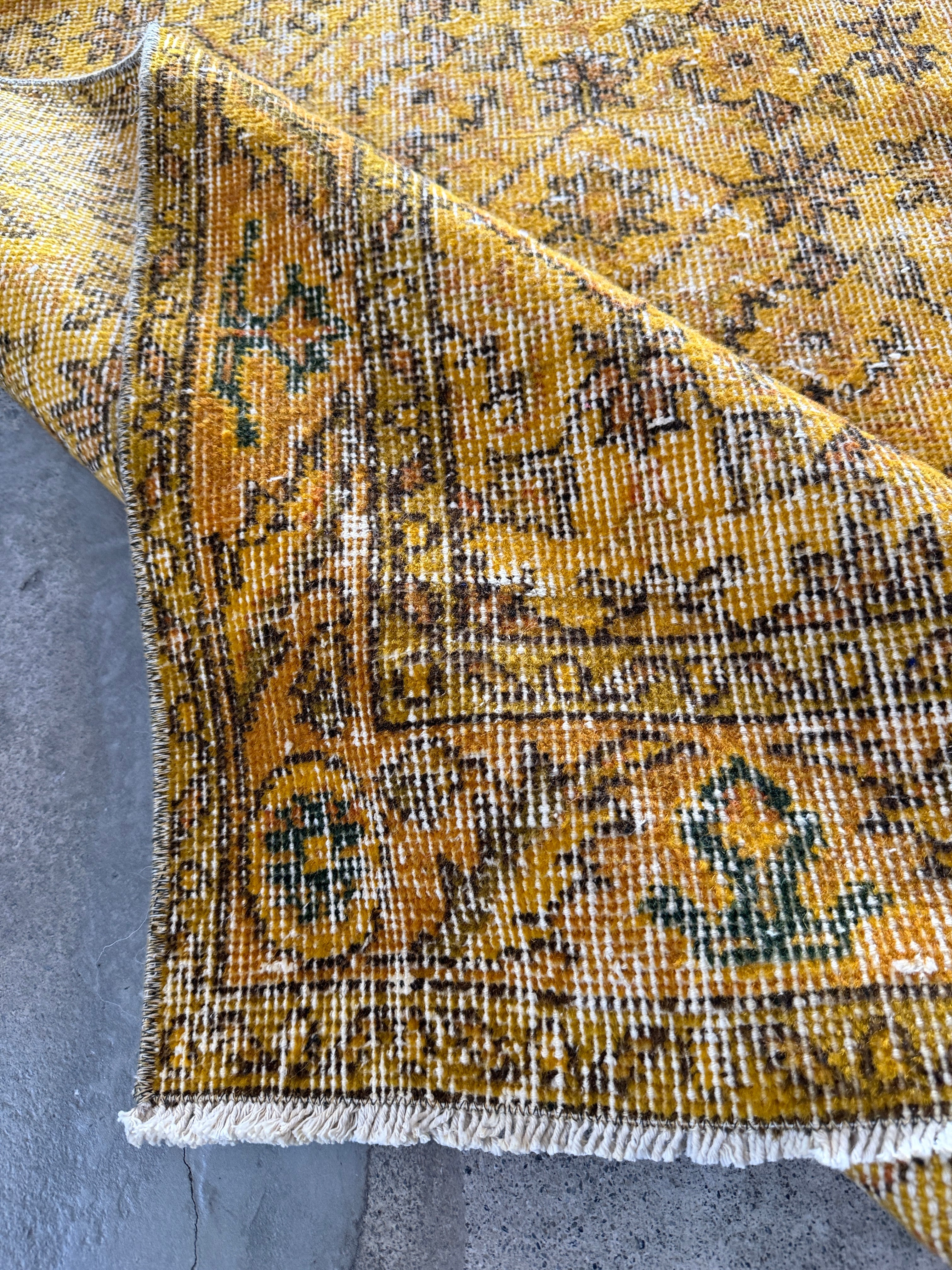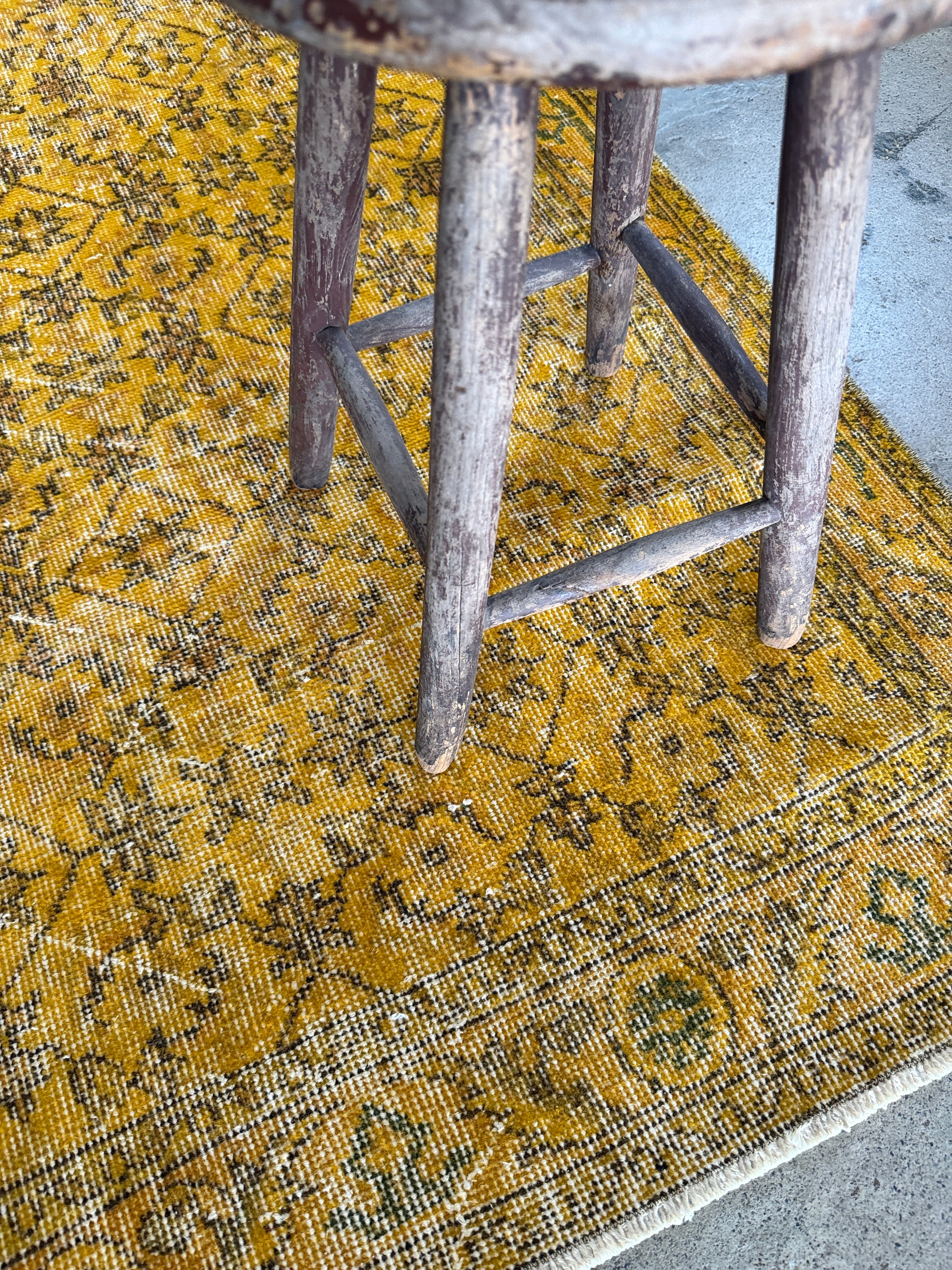 我が家でも永らく愛用している「イエローオーバーダイ」は個性がありながら、どんなインテリアにも馴染む優れものです。今回も信頼できるパートナーへオーダーし、2ヶ月かけてようやく思い通りのデザインに仕上がりました!今やイエロー絨毯はヴィンテージトルコラグ界でも貴重な存在となり、完全オーダーでなければ好みのモノは見つからなくなりました。