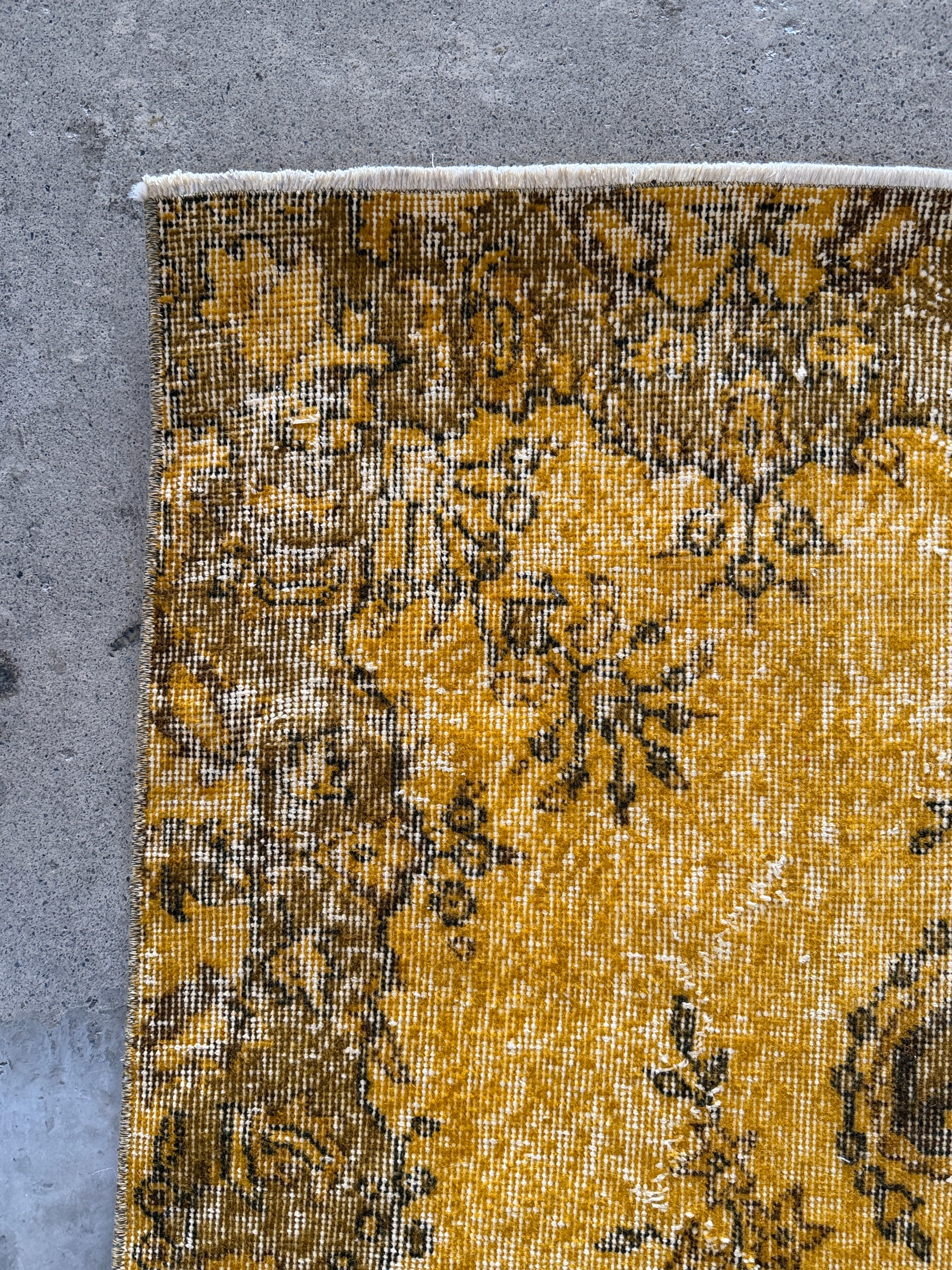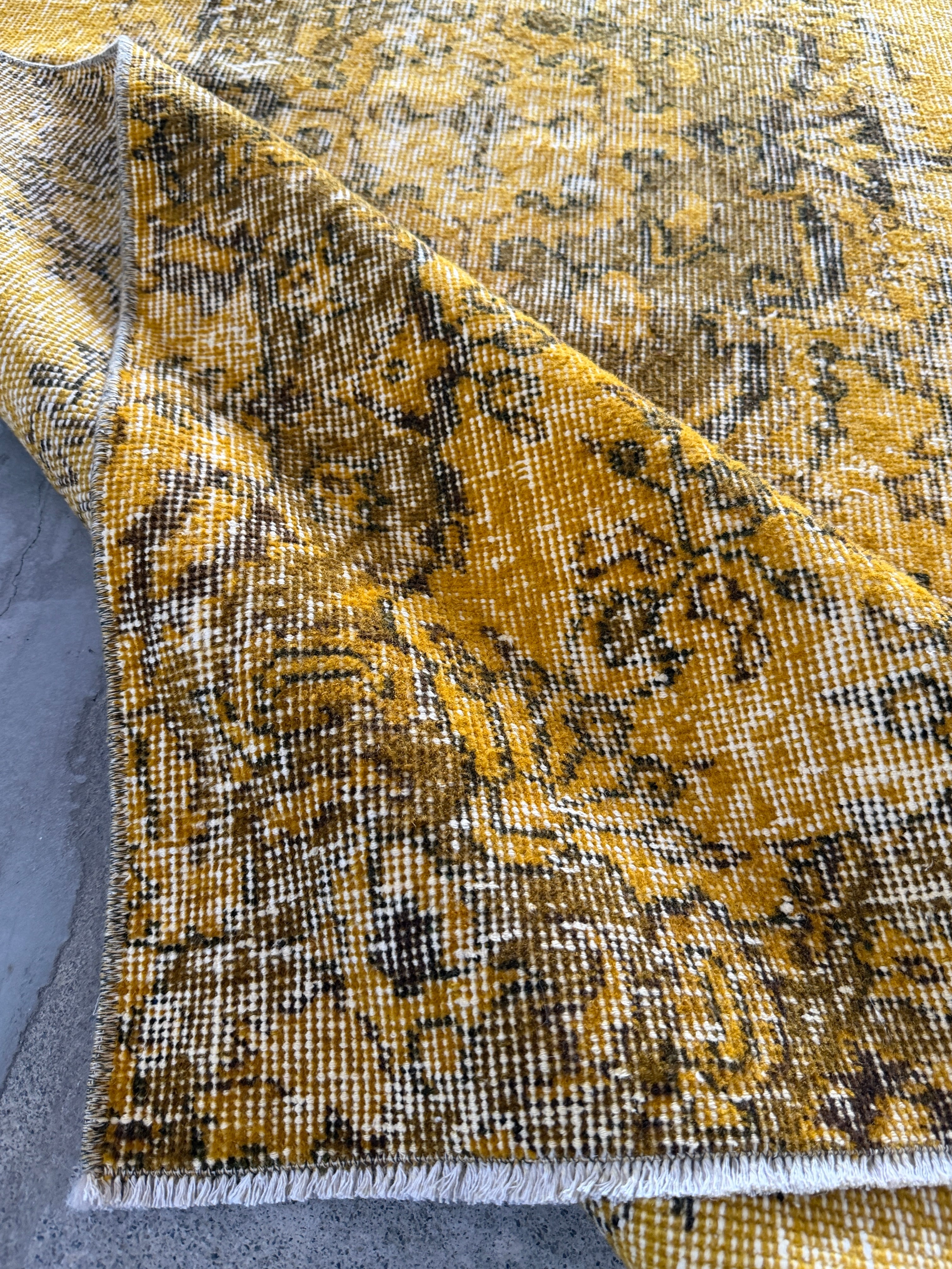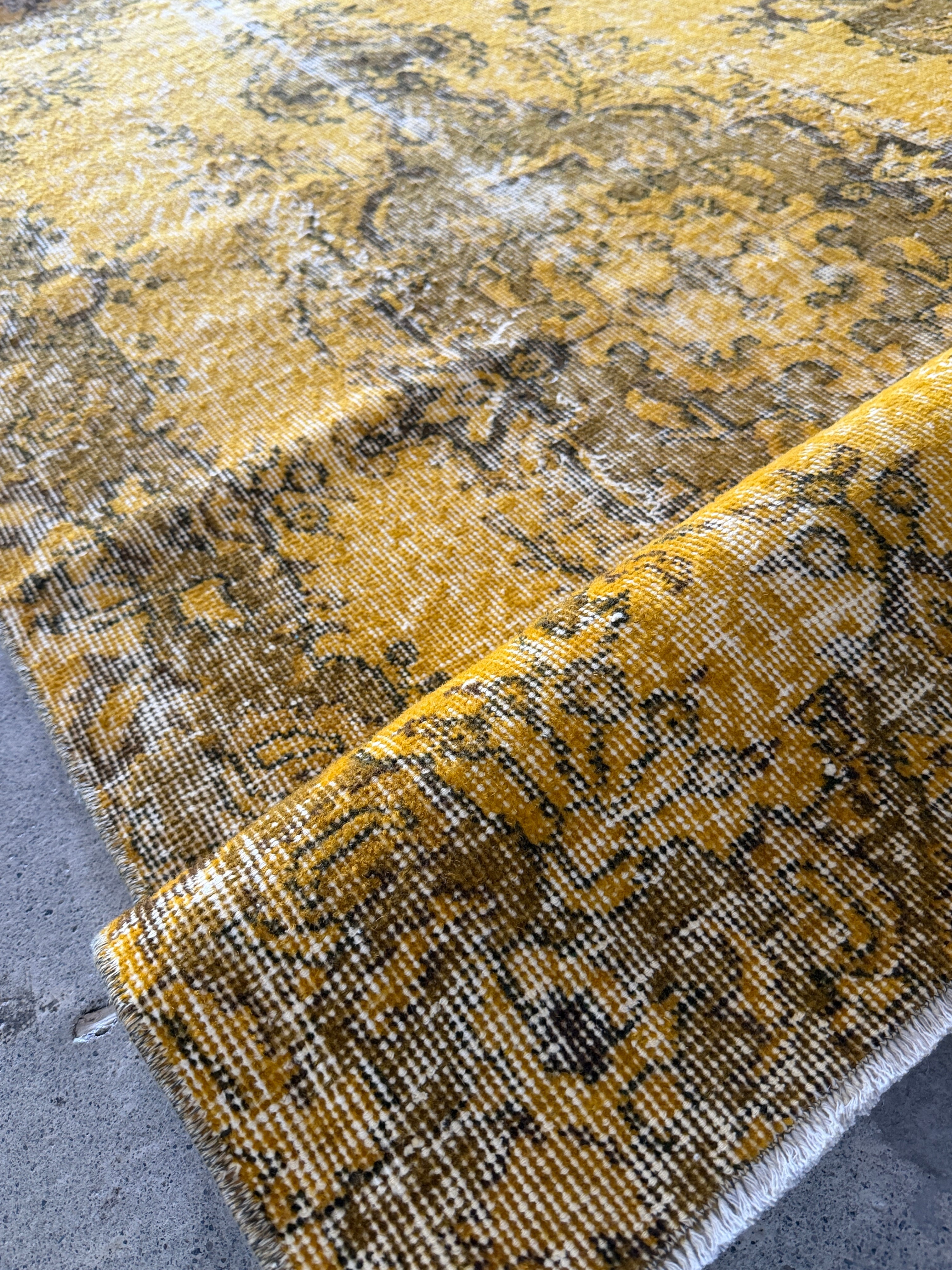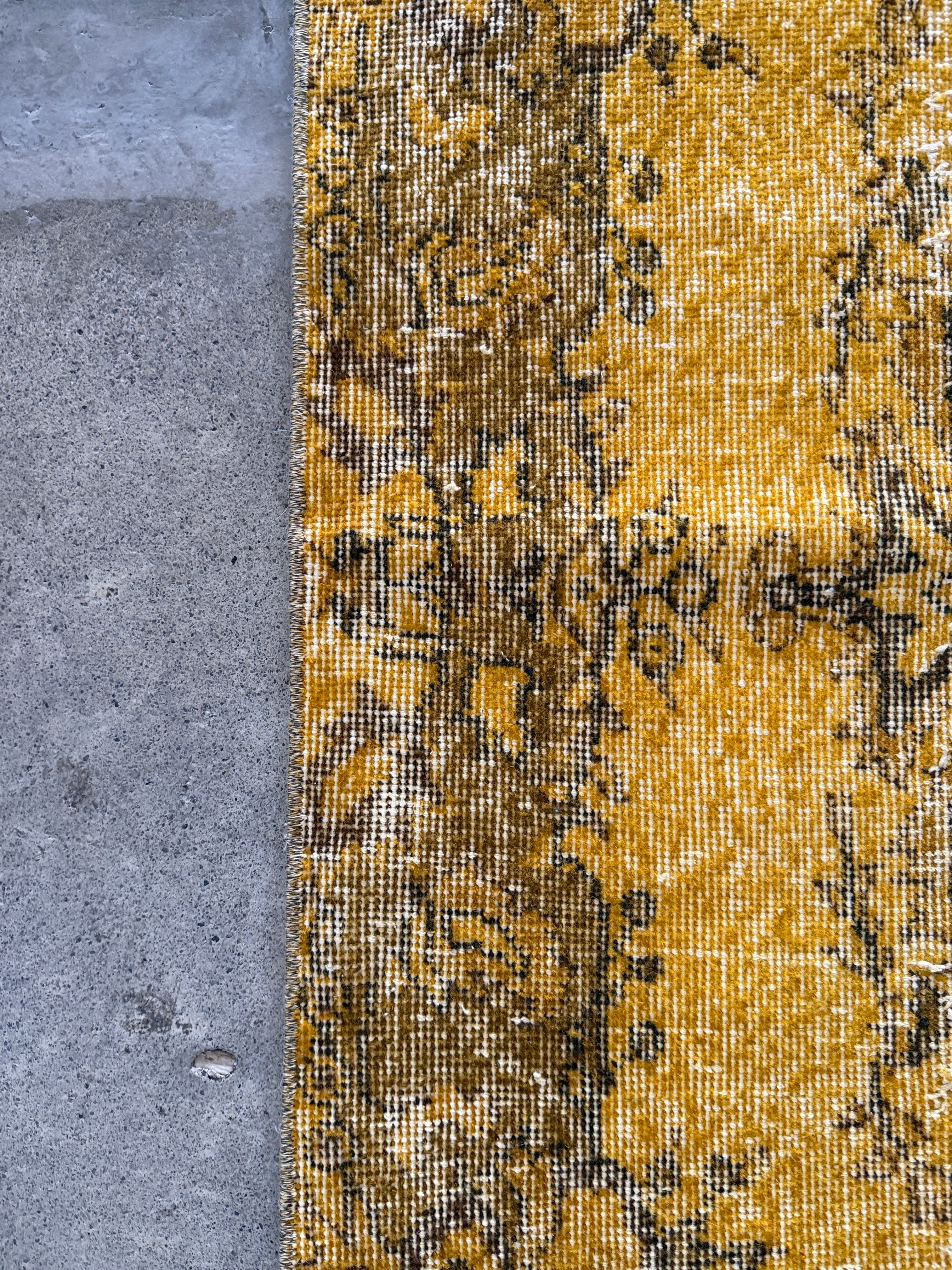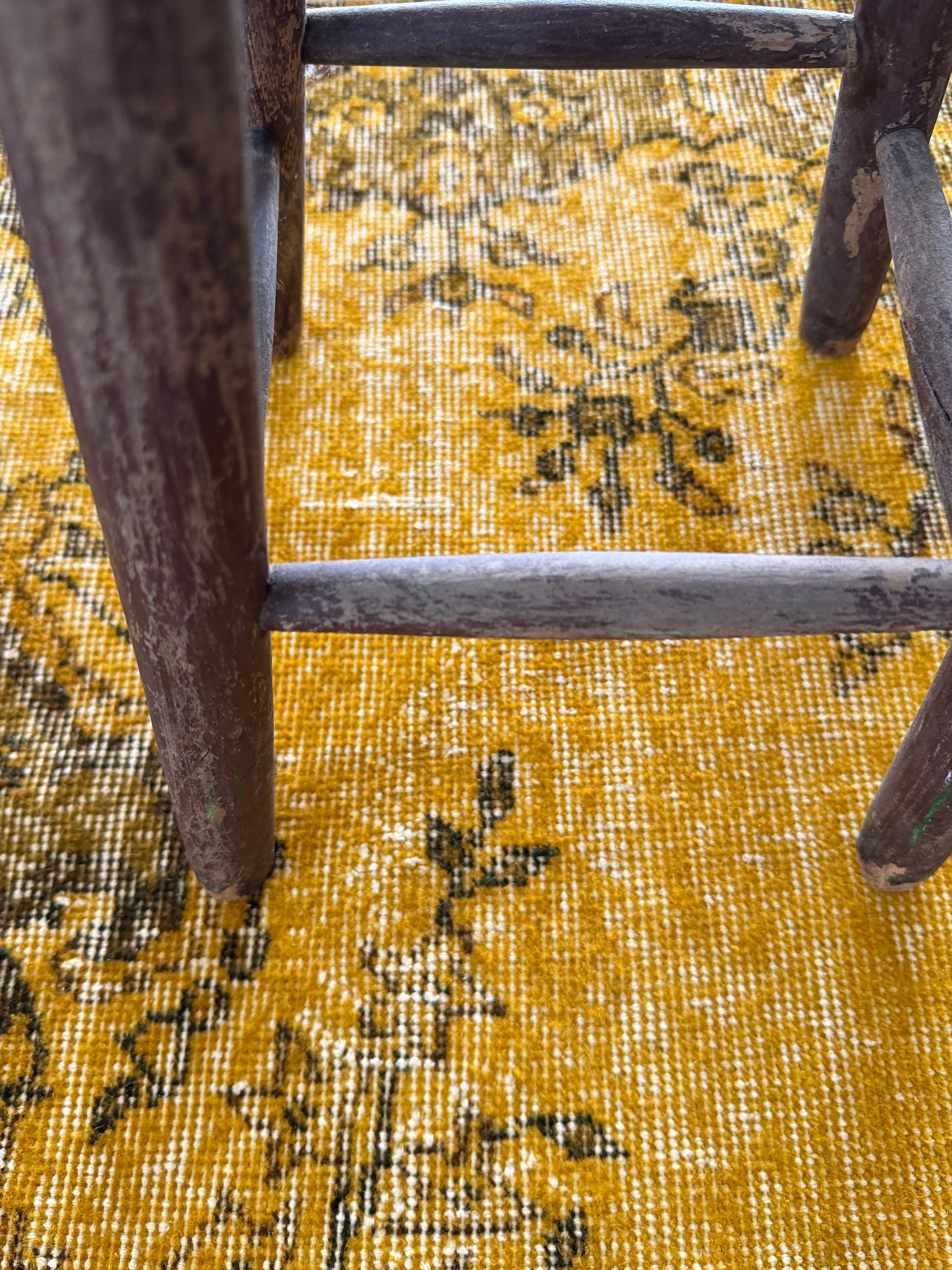 我が家でも永らく愛用している「イエローオーバーダイ」は個性がありながら、どんなインテリアにも馴染む優れものです。今回も信頼できるパートナーへオーダーし、2ヶ月かけてようやく思い通りのデザインに仕上がりました!今やイエロー絨毯はヴィンテージトルコラグ界でも貴重な存在となり、完全オーダーでなければ好みのモノは見つからなくなりました。